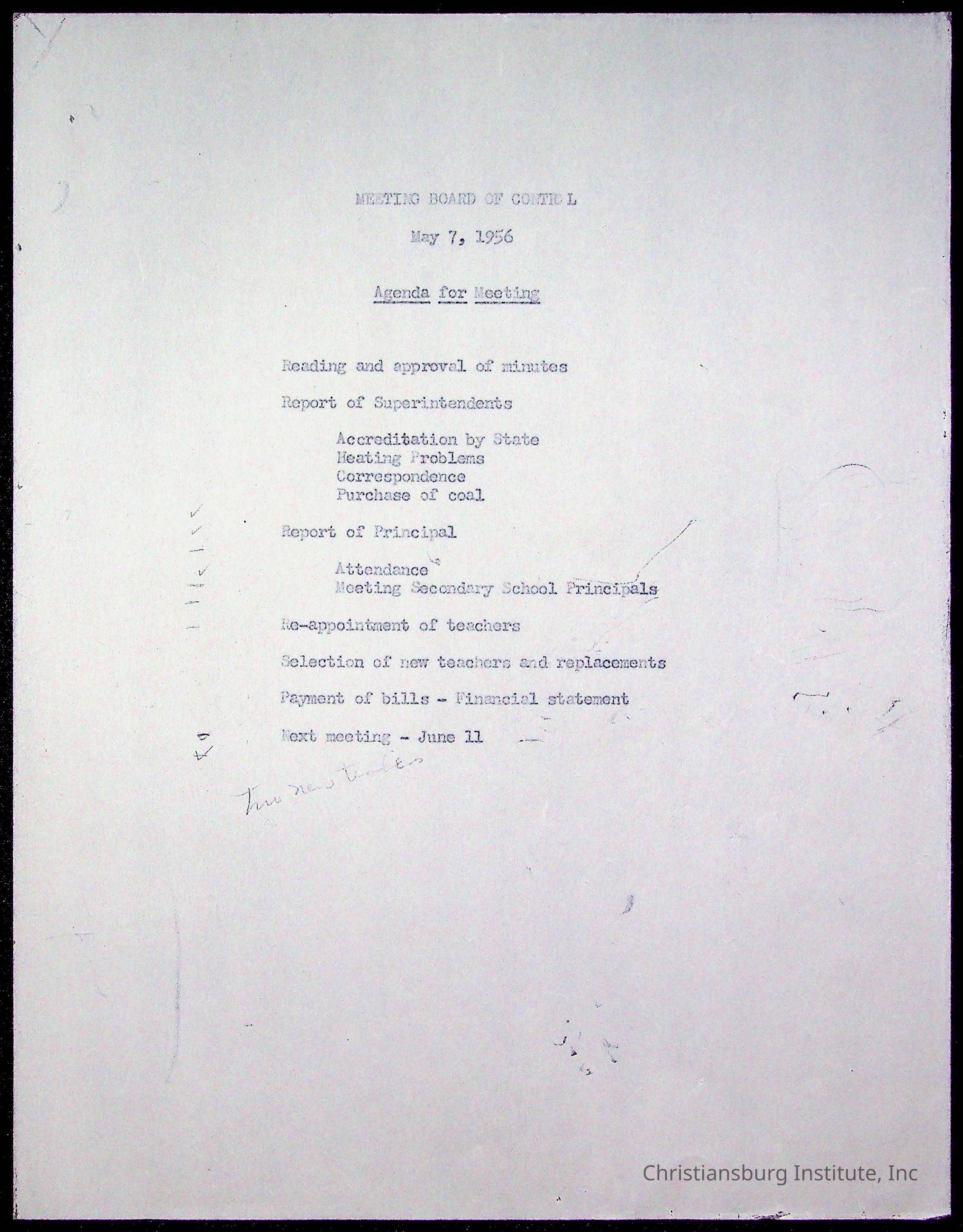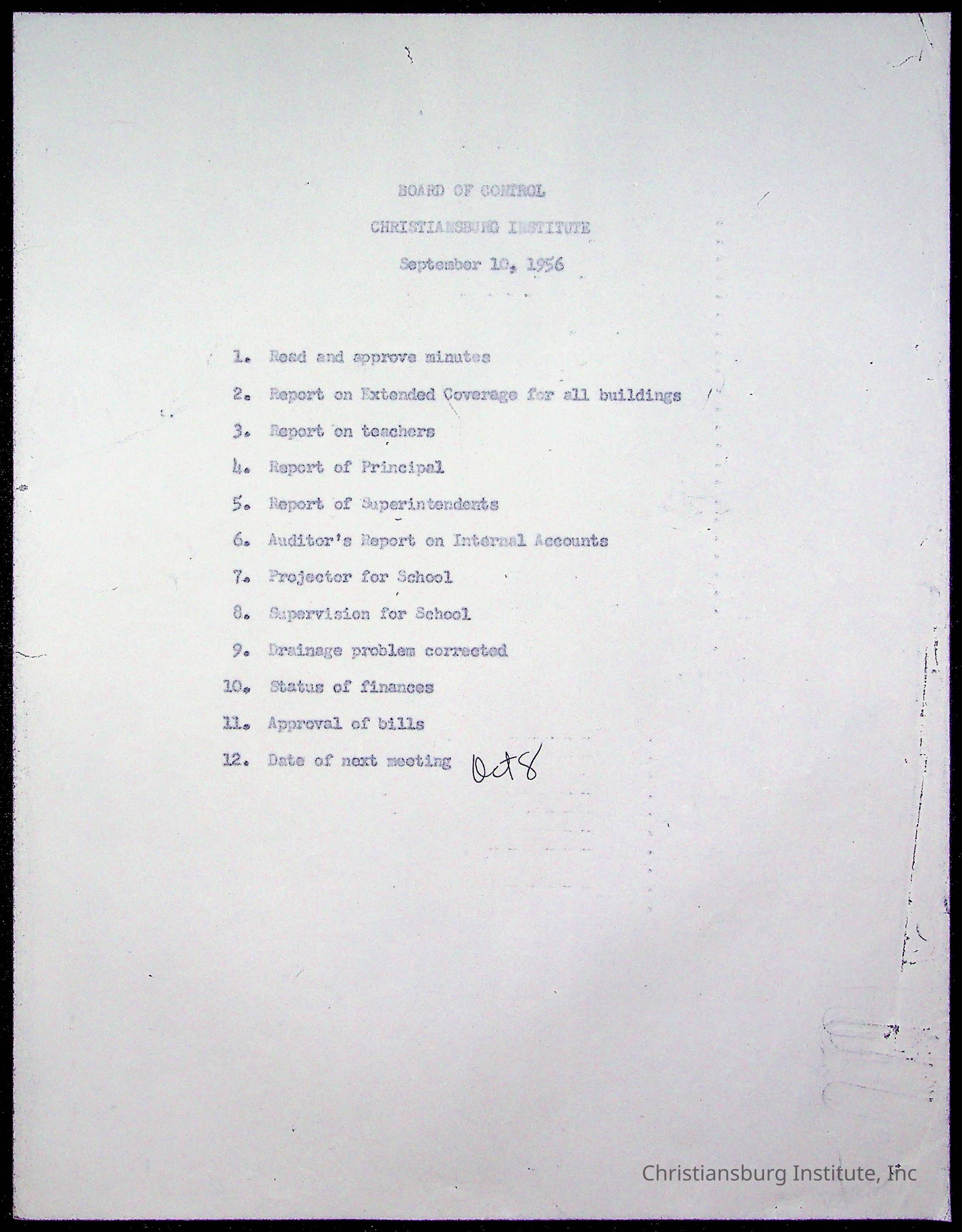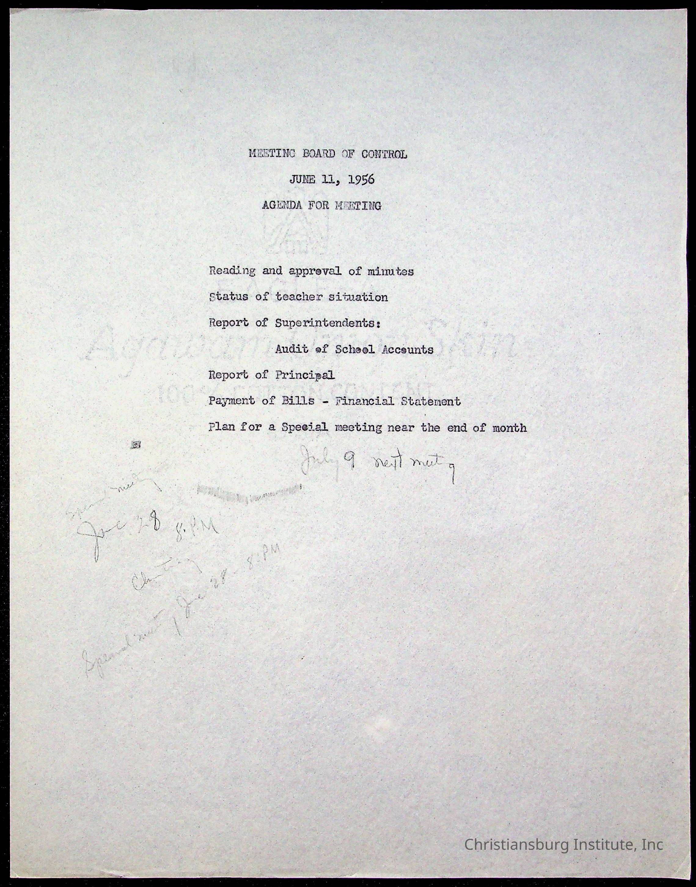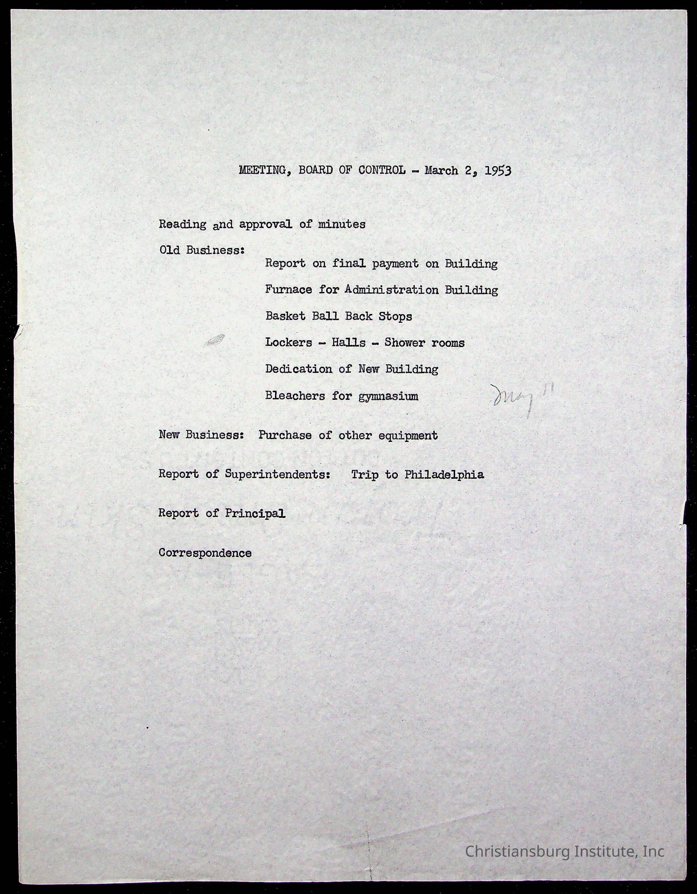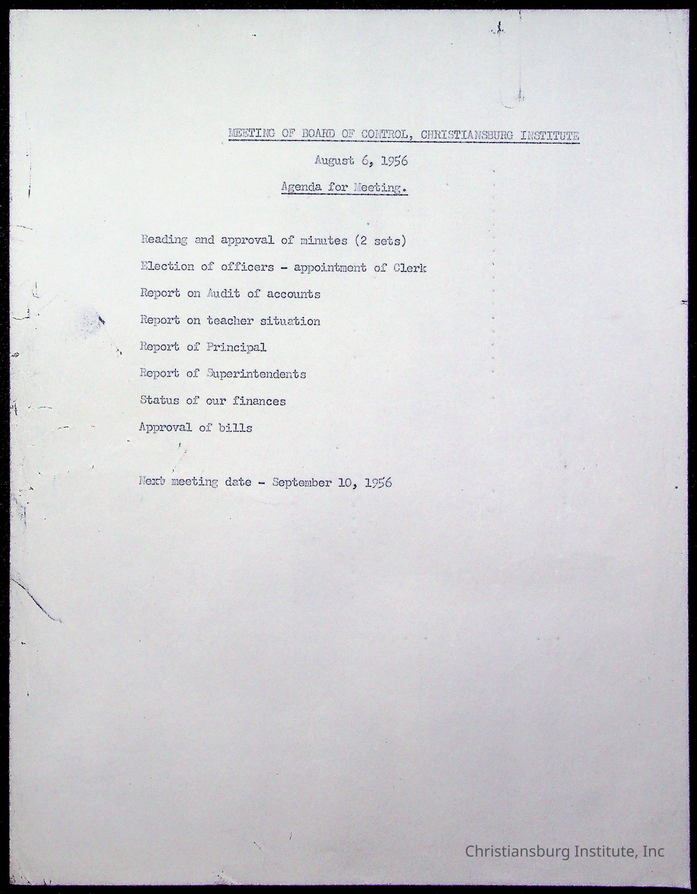 An archive of materials relating to the Board of Control for Christiansburg Institute, dated 1900s.