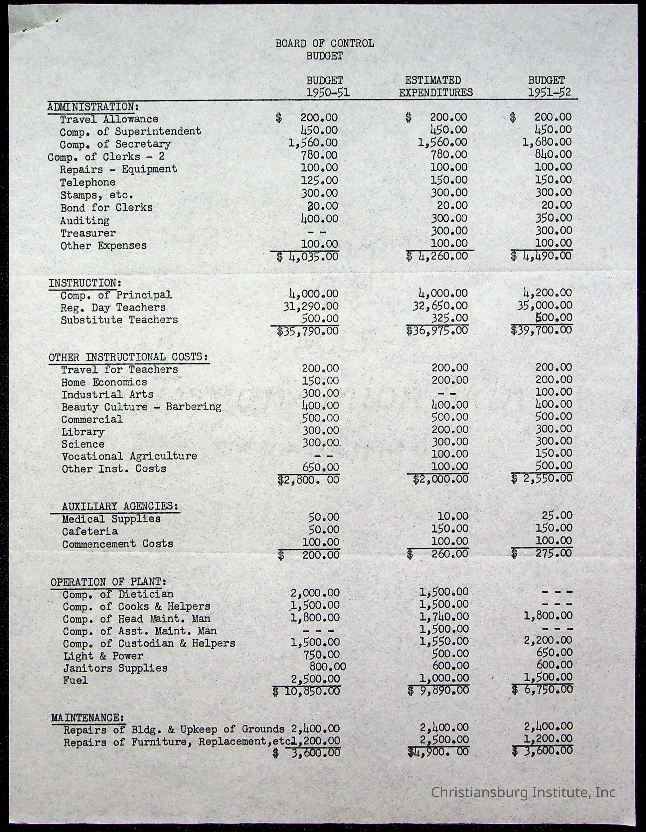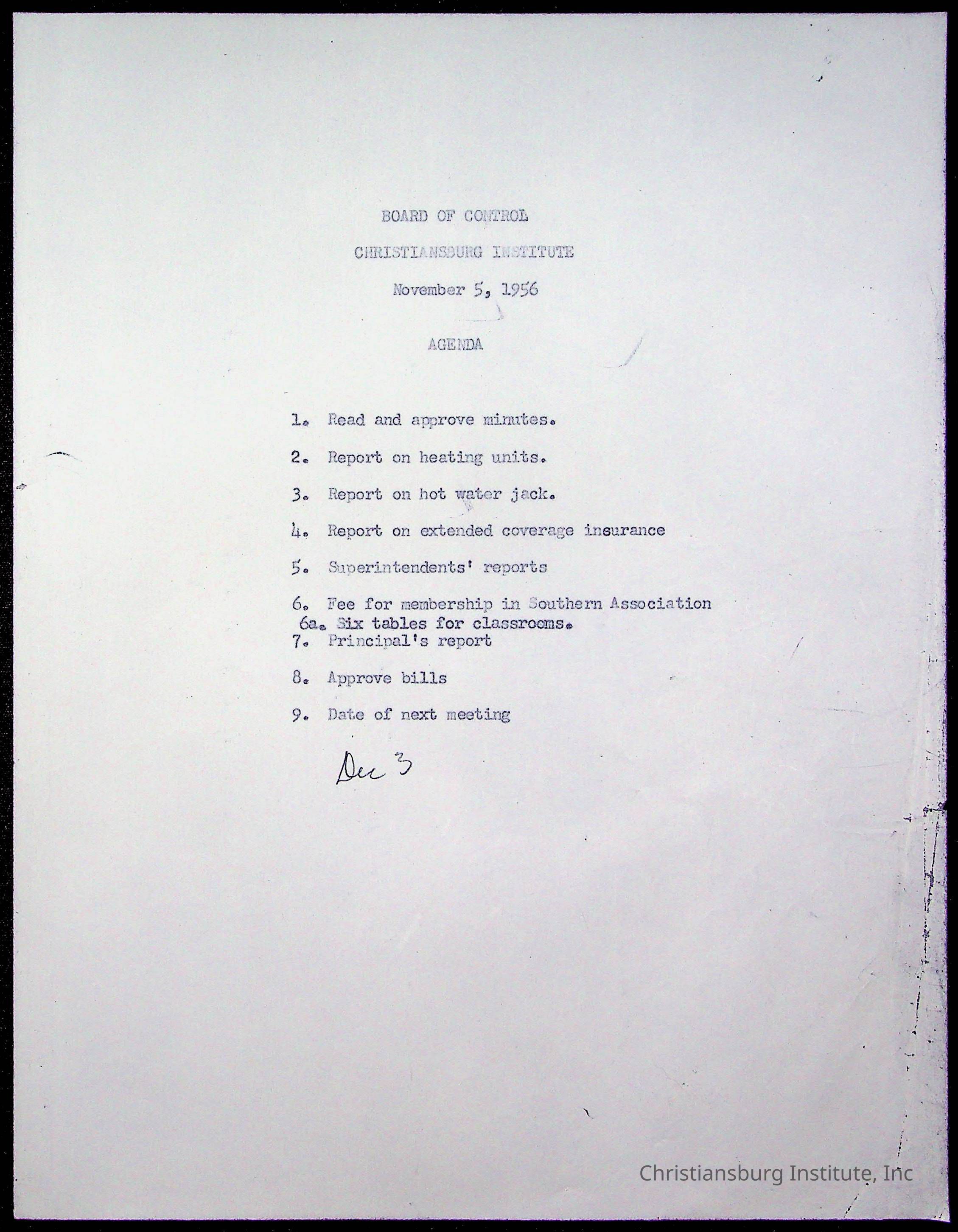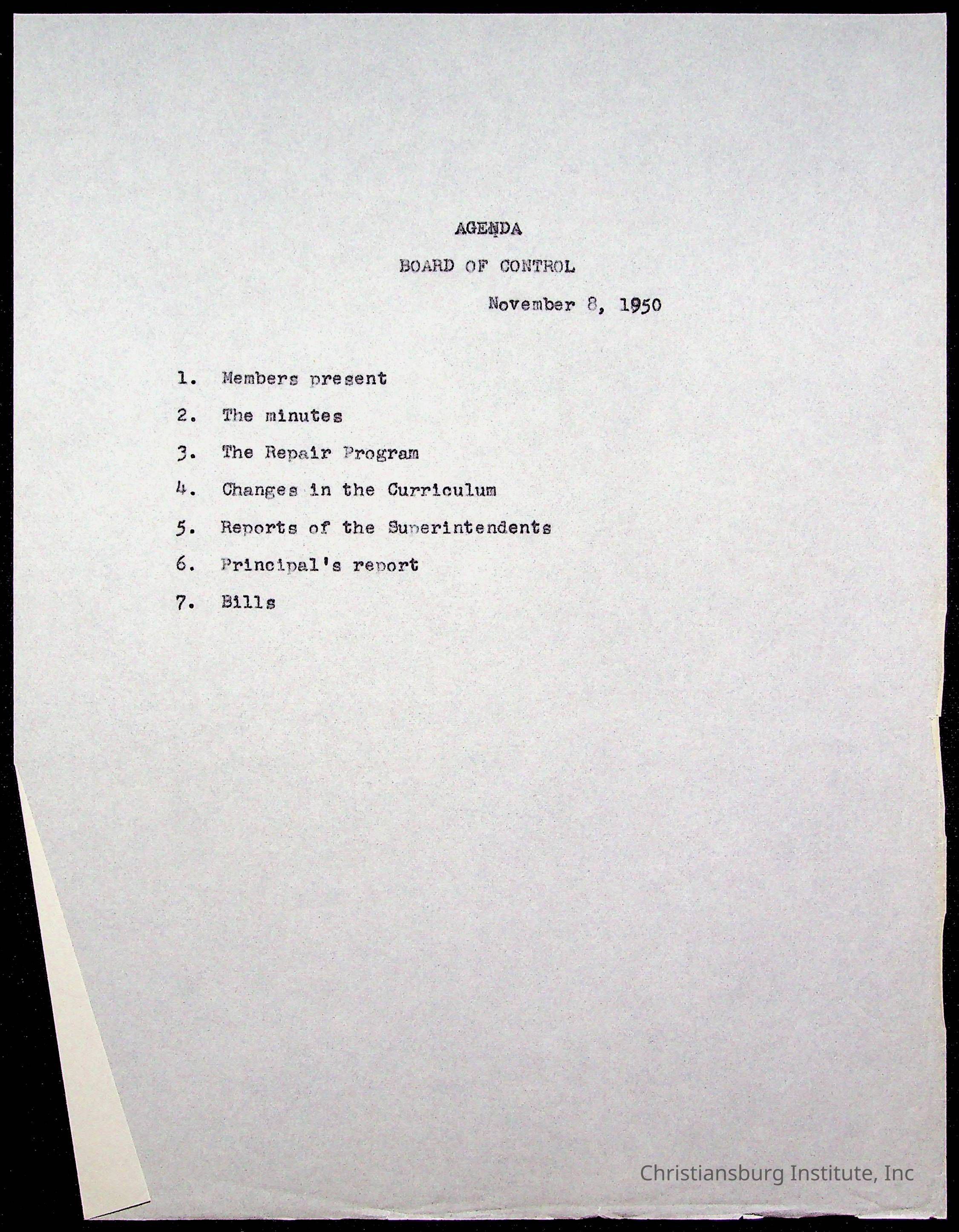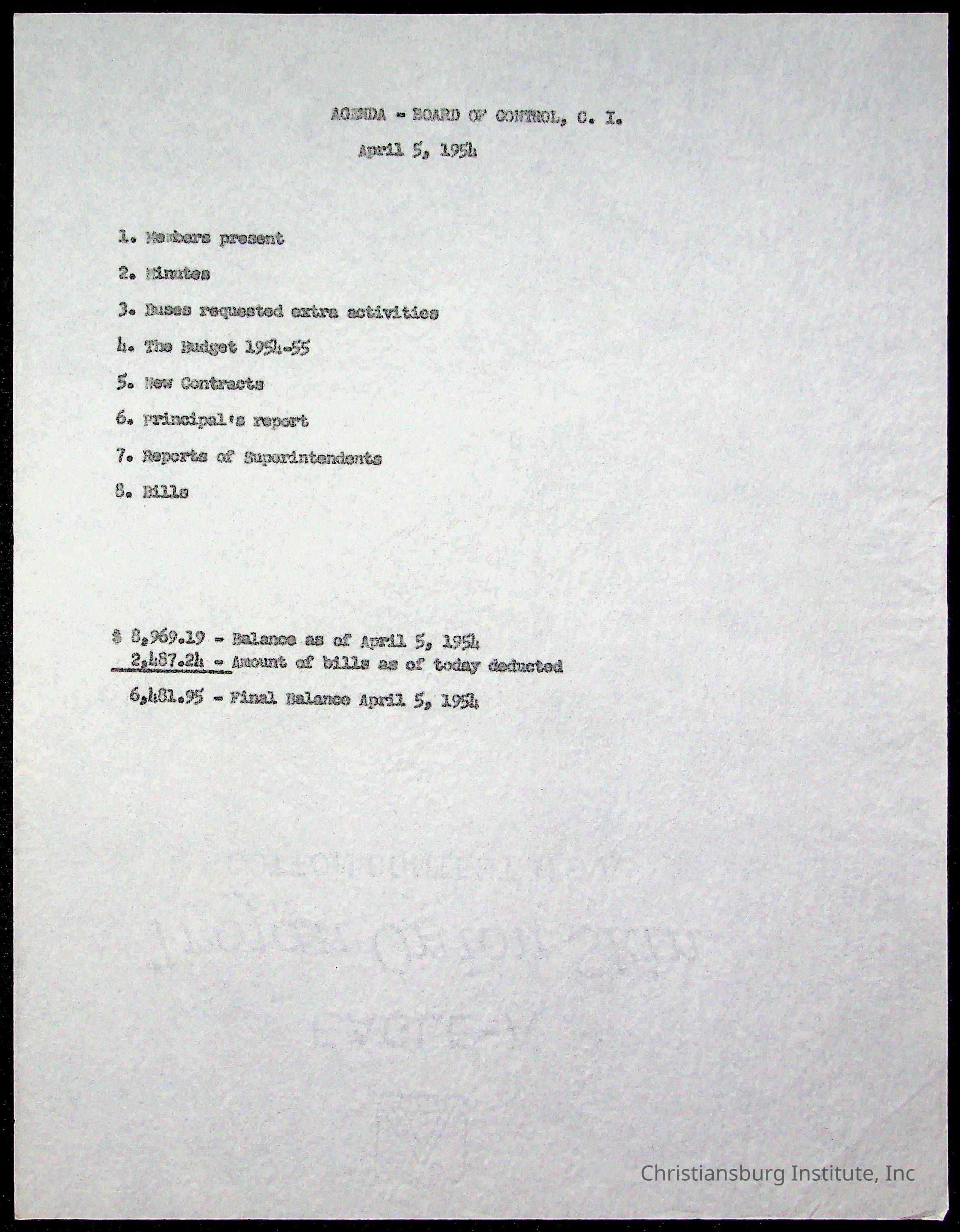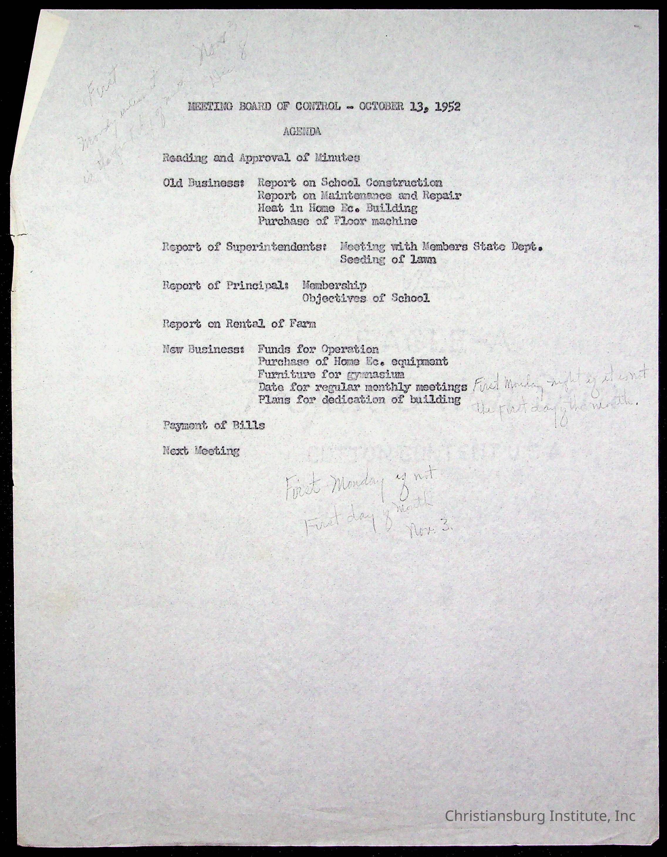 An archive of materials relating to the Board of Control for Christiansburg Institute, dated 1900s.