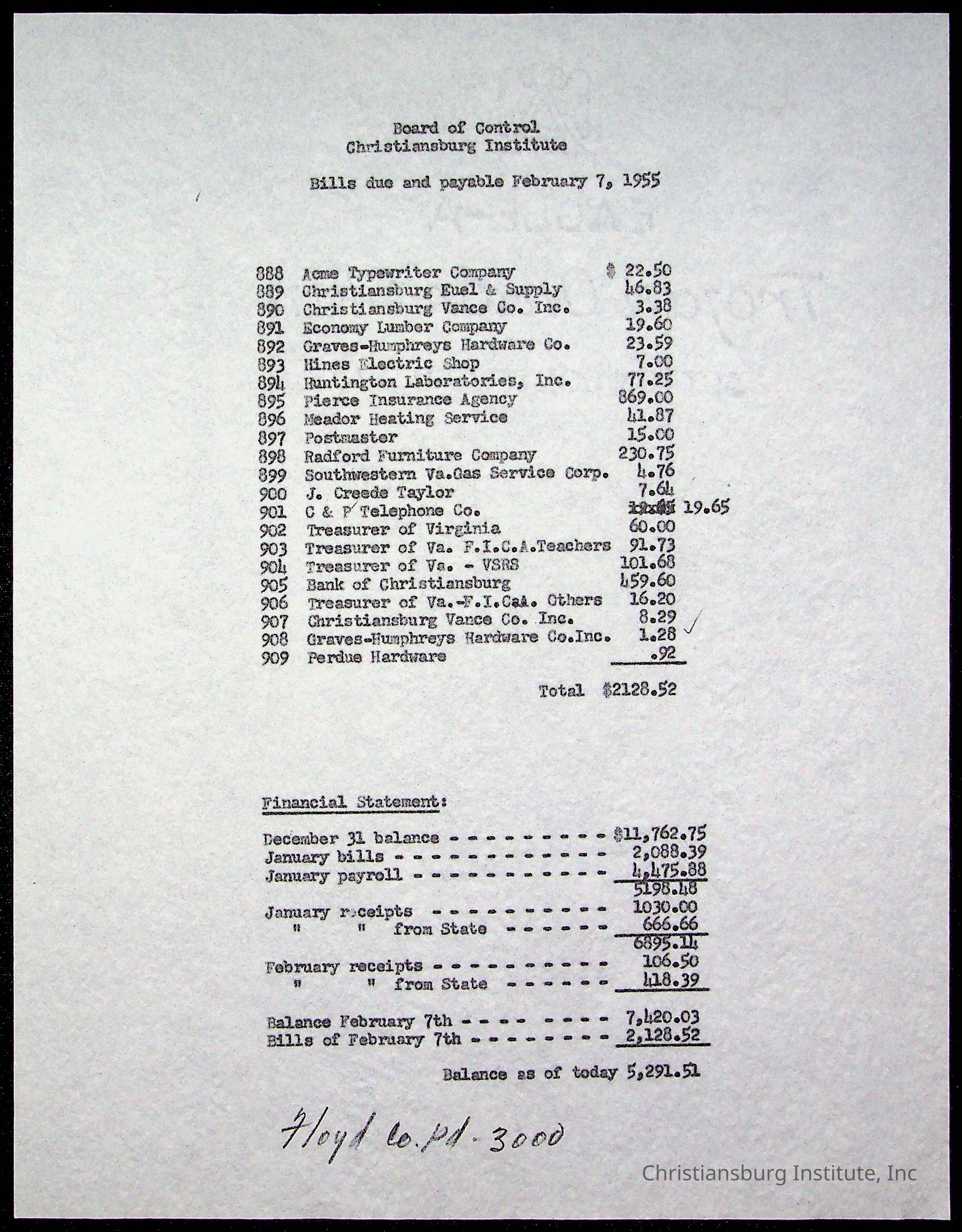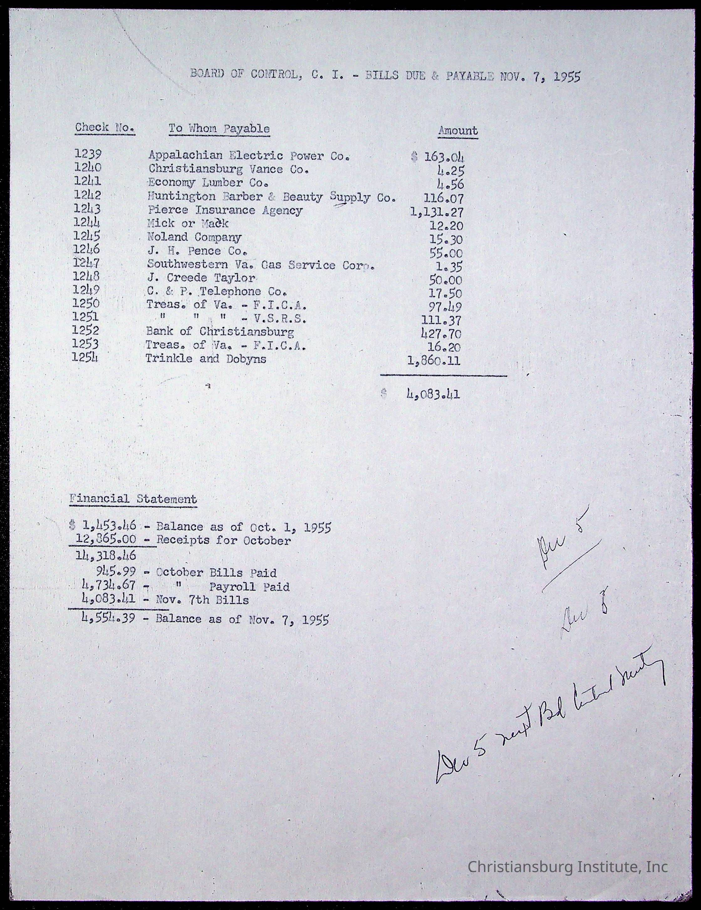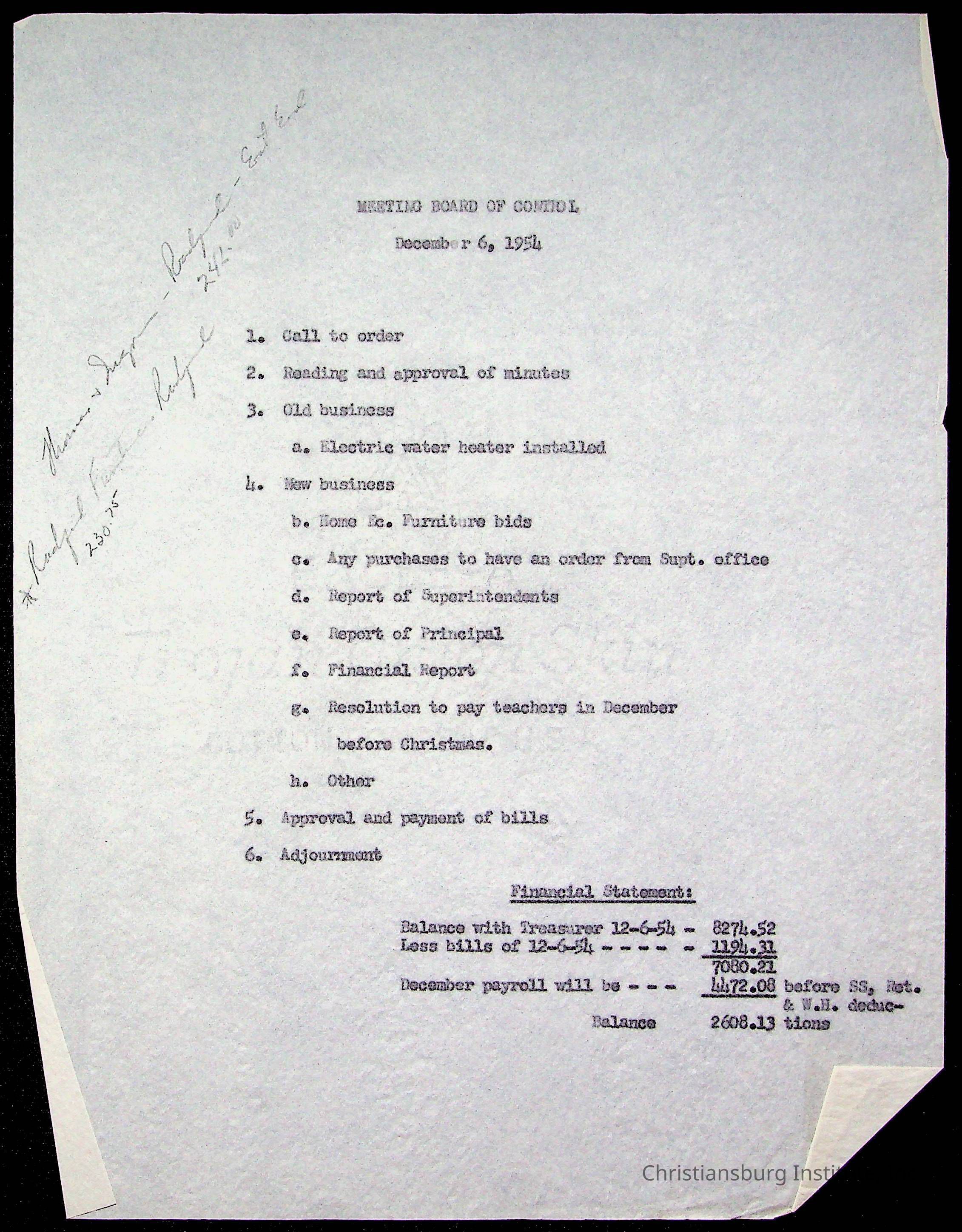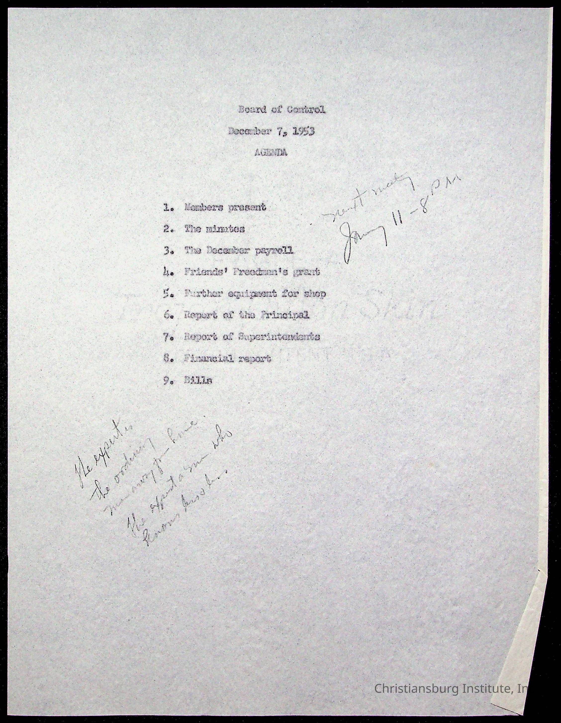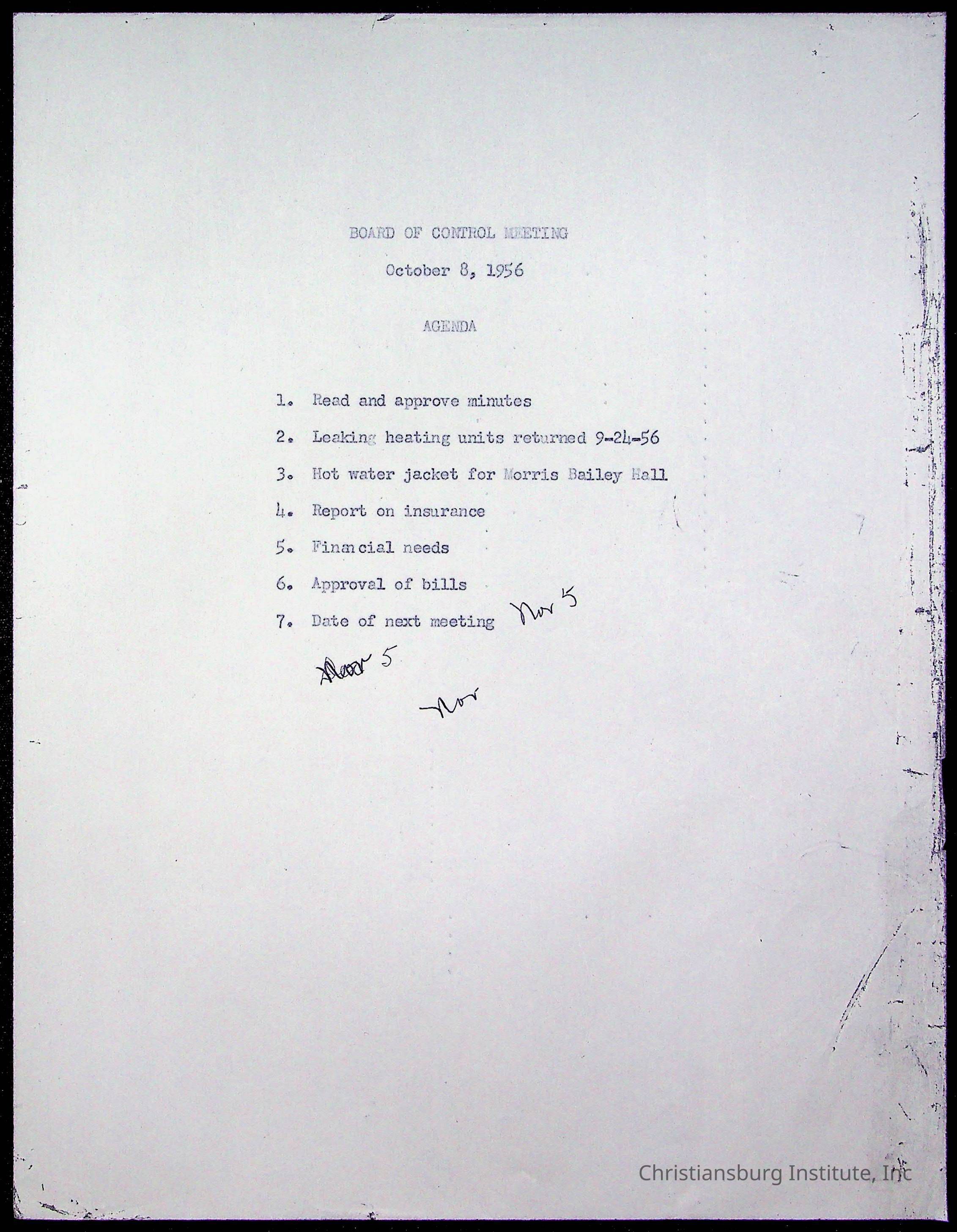 An archive of materials relating to the Board of Control for Christiansburg Institute, dated 1900s.