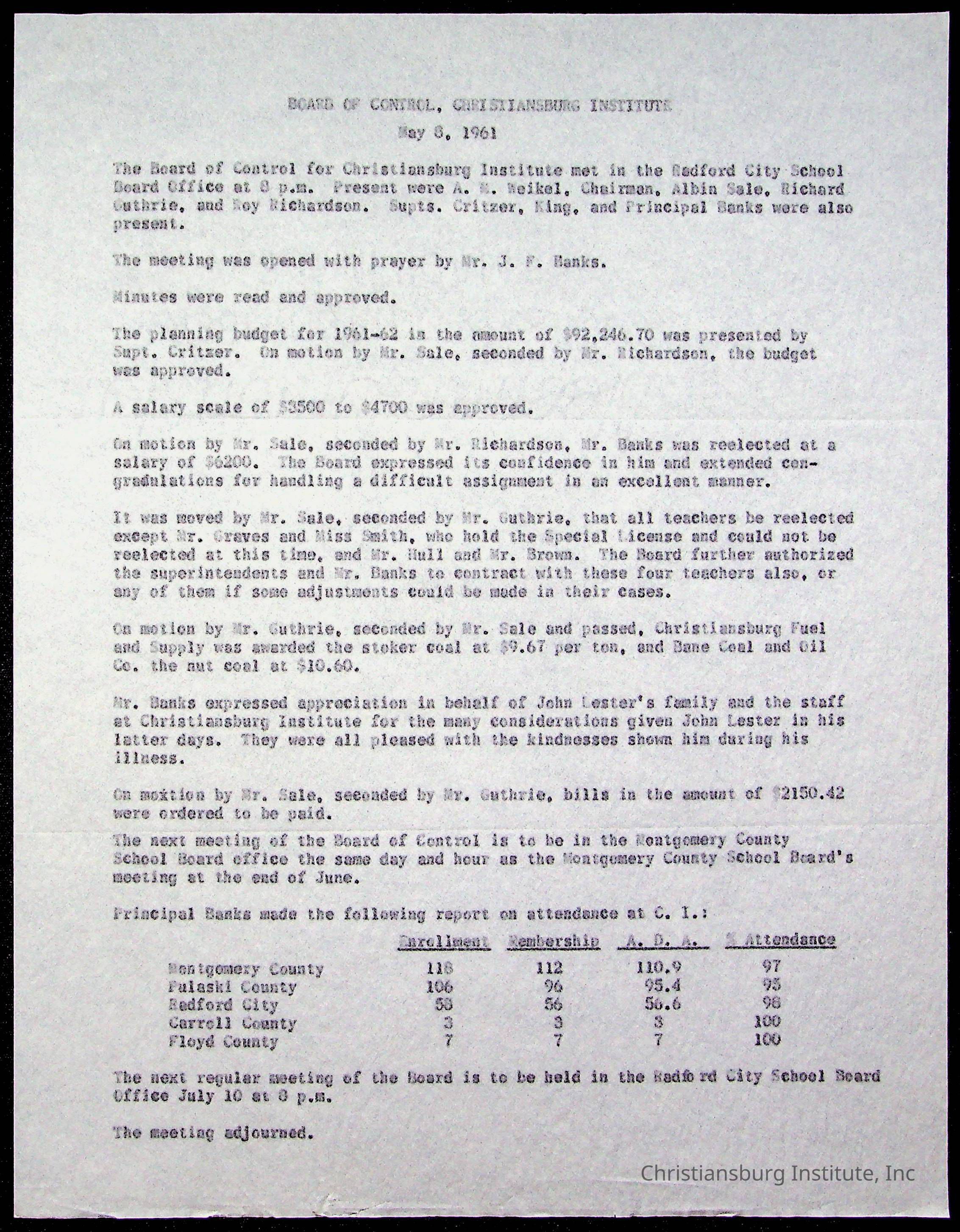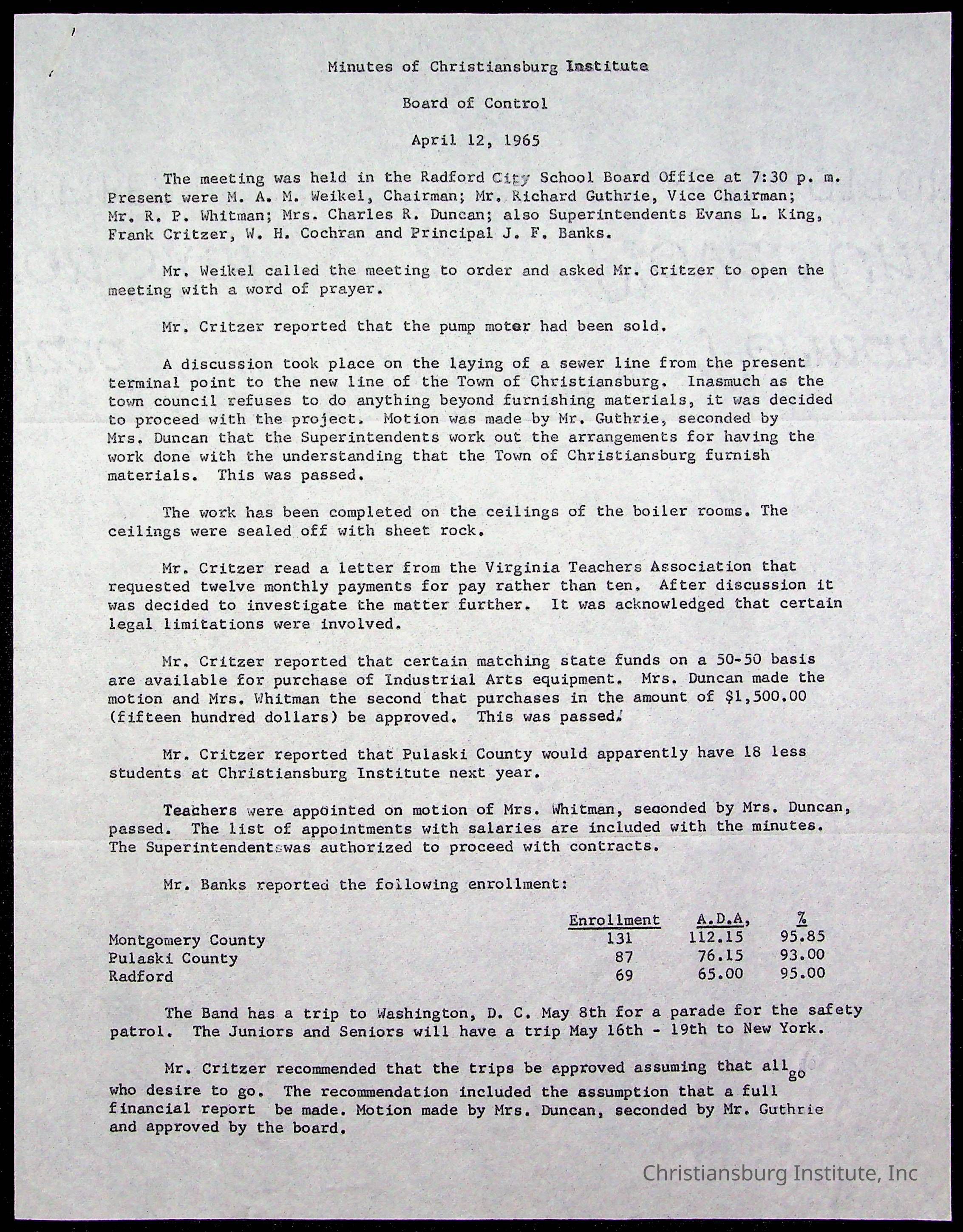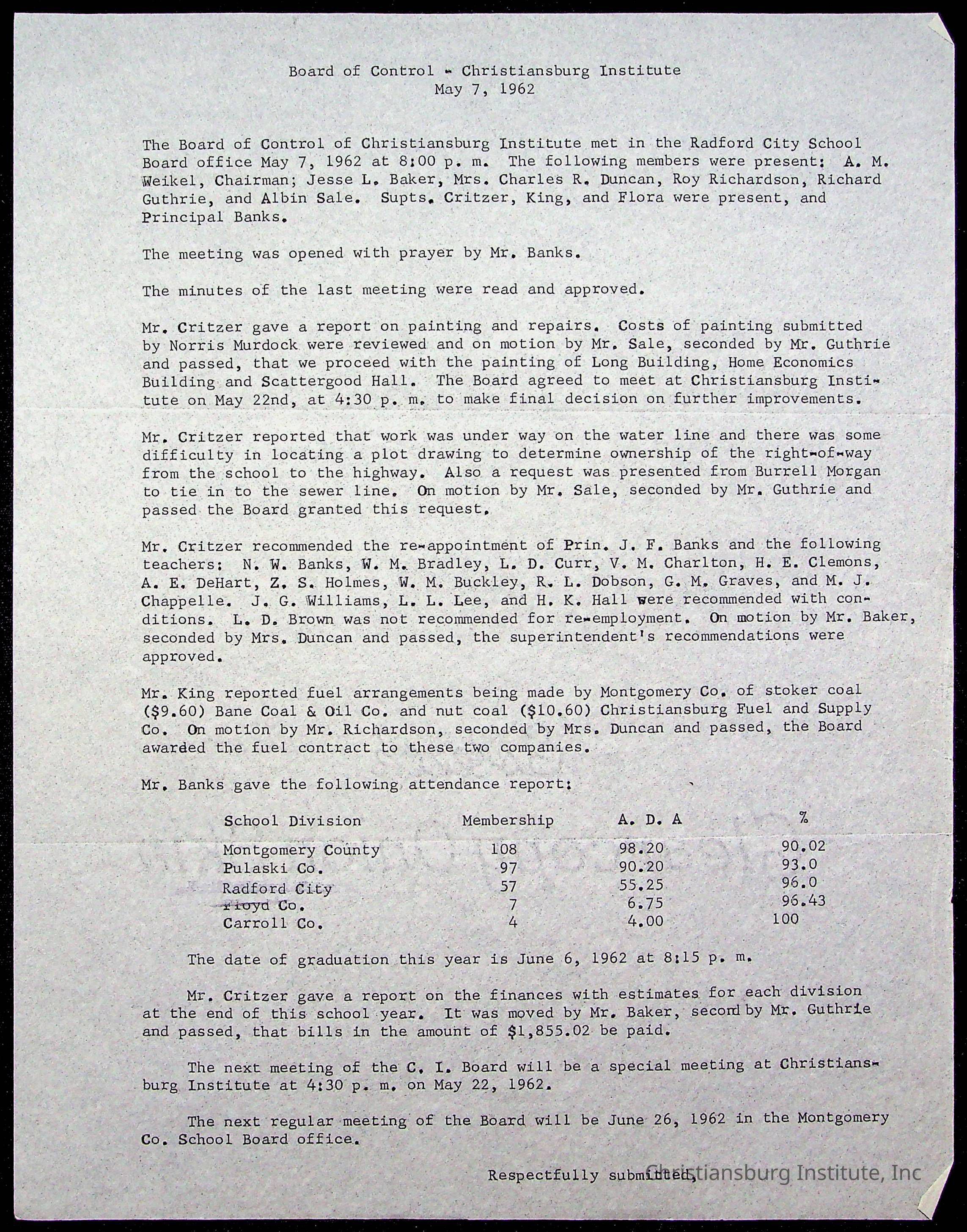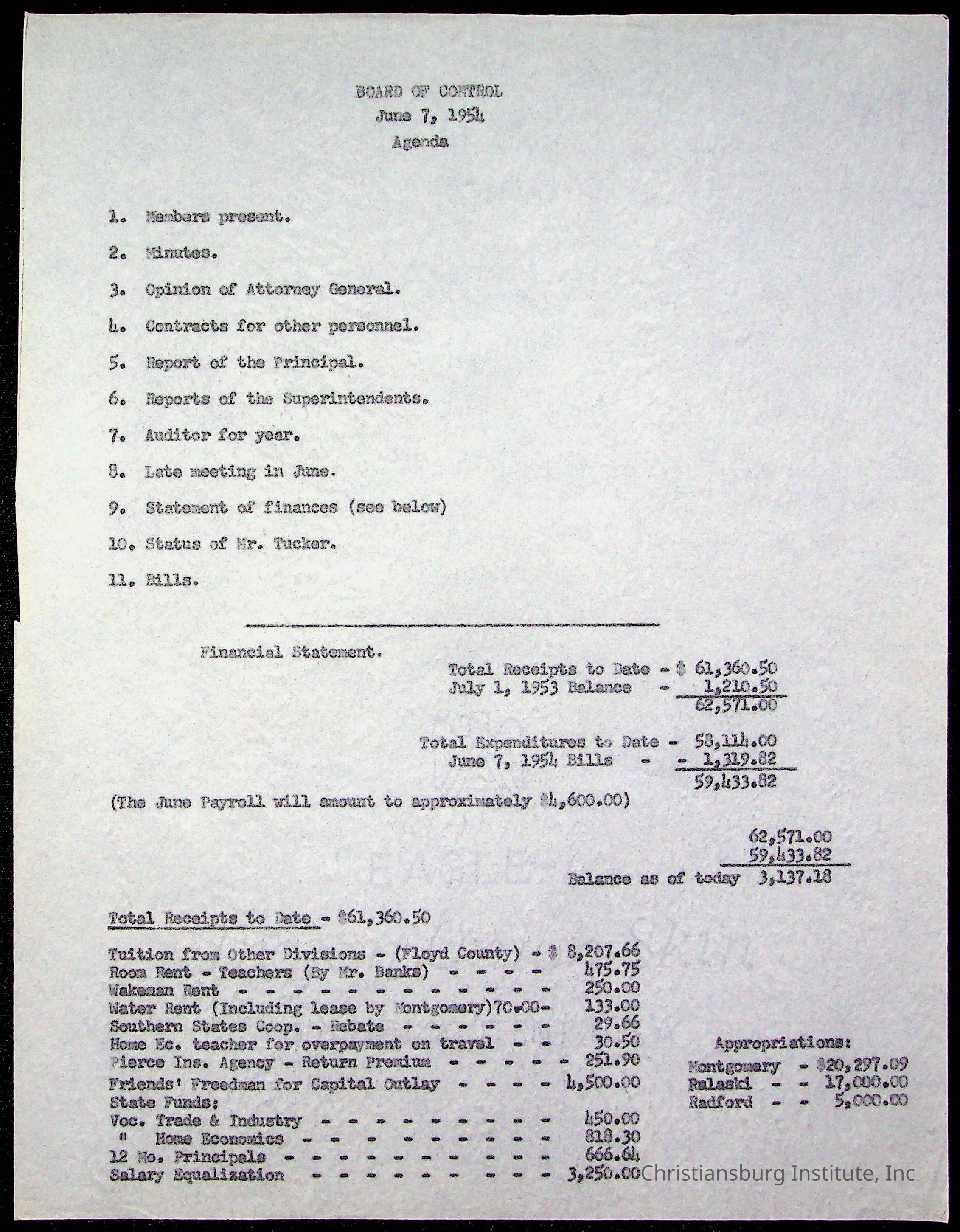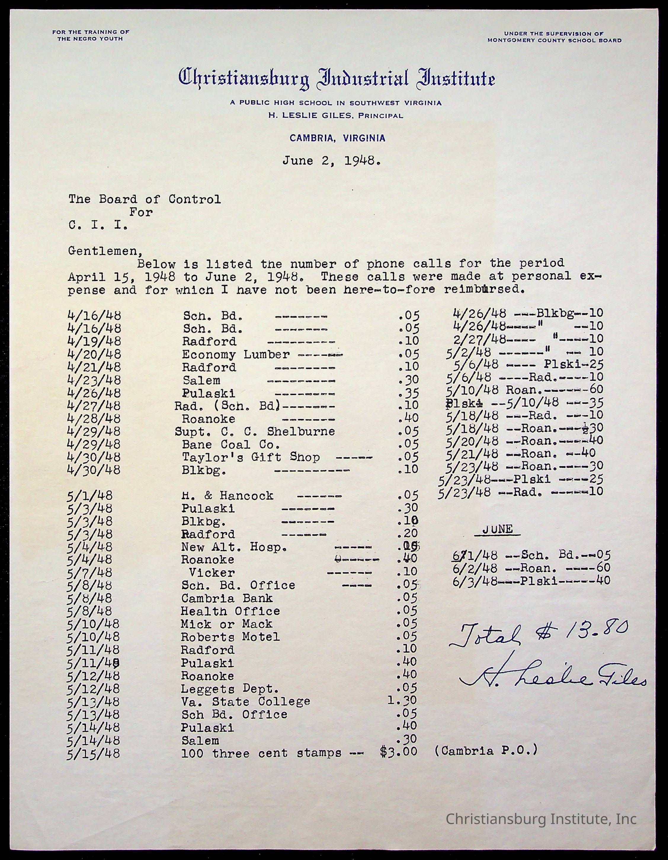 The Board of Control, Christiansburg Institute, Montgomery County School Board