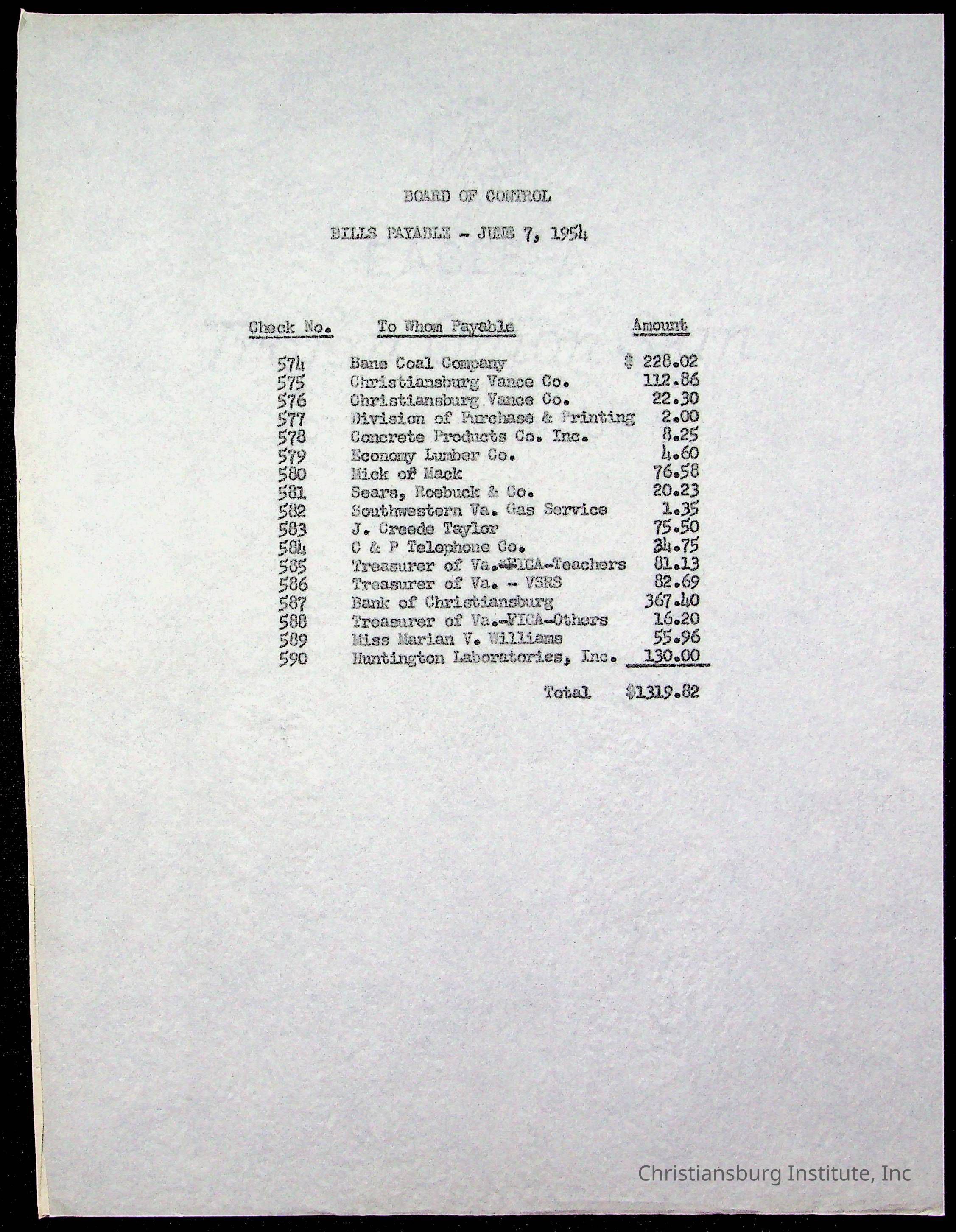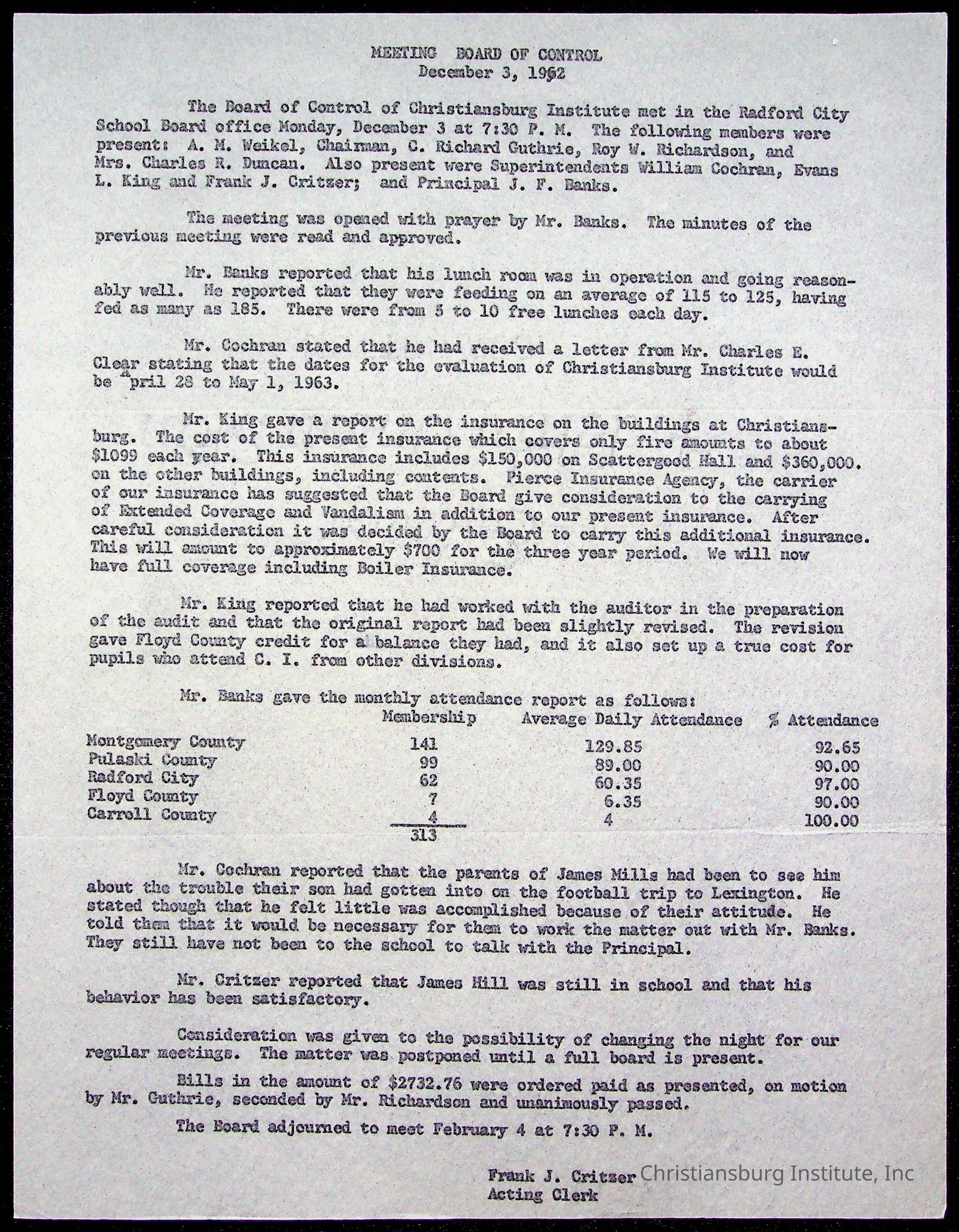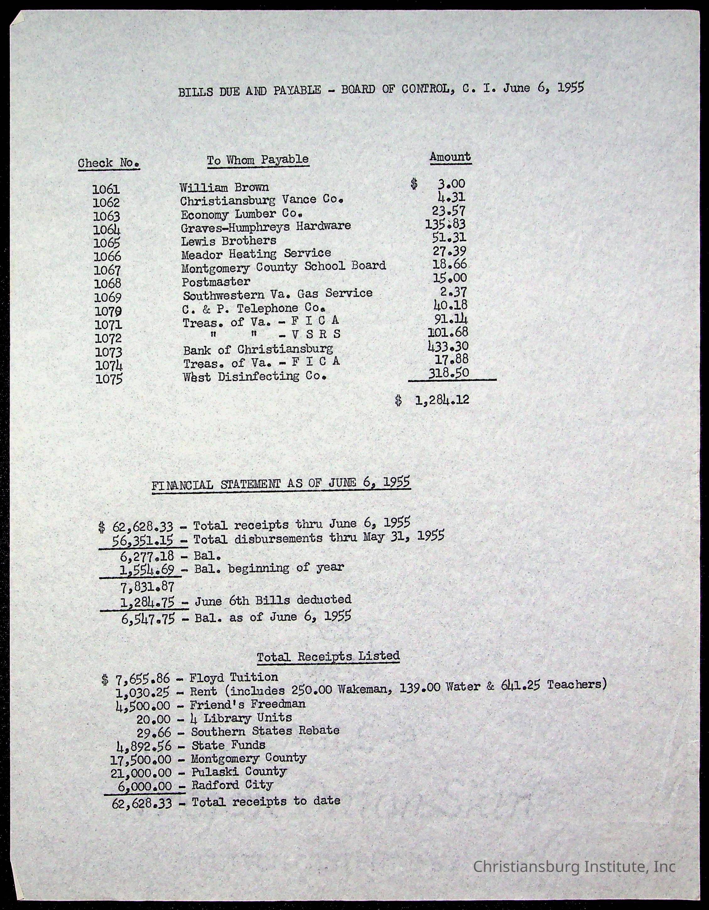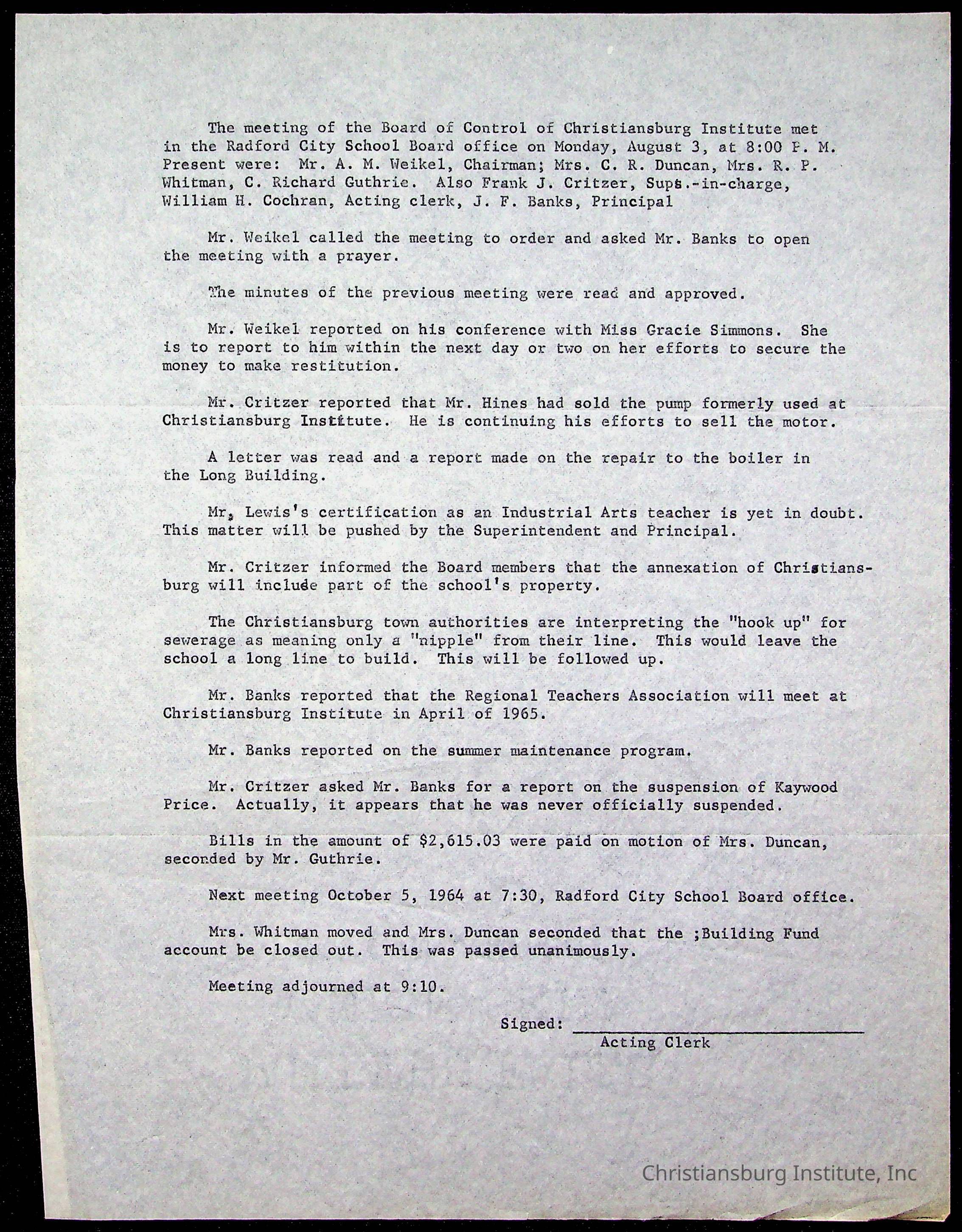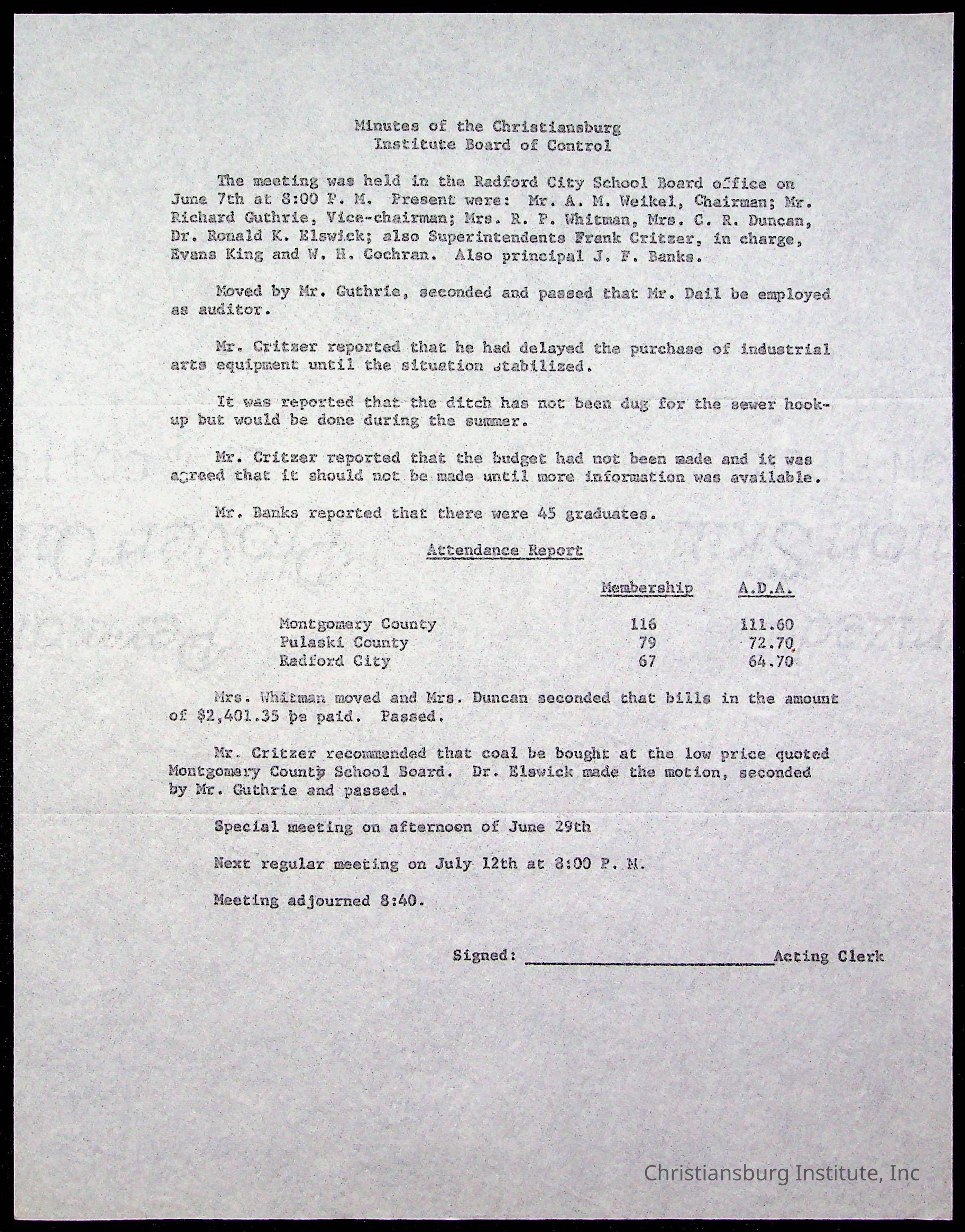 The Board of Control, Christiansburg Institute, Montgomery County School Board