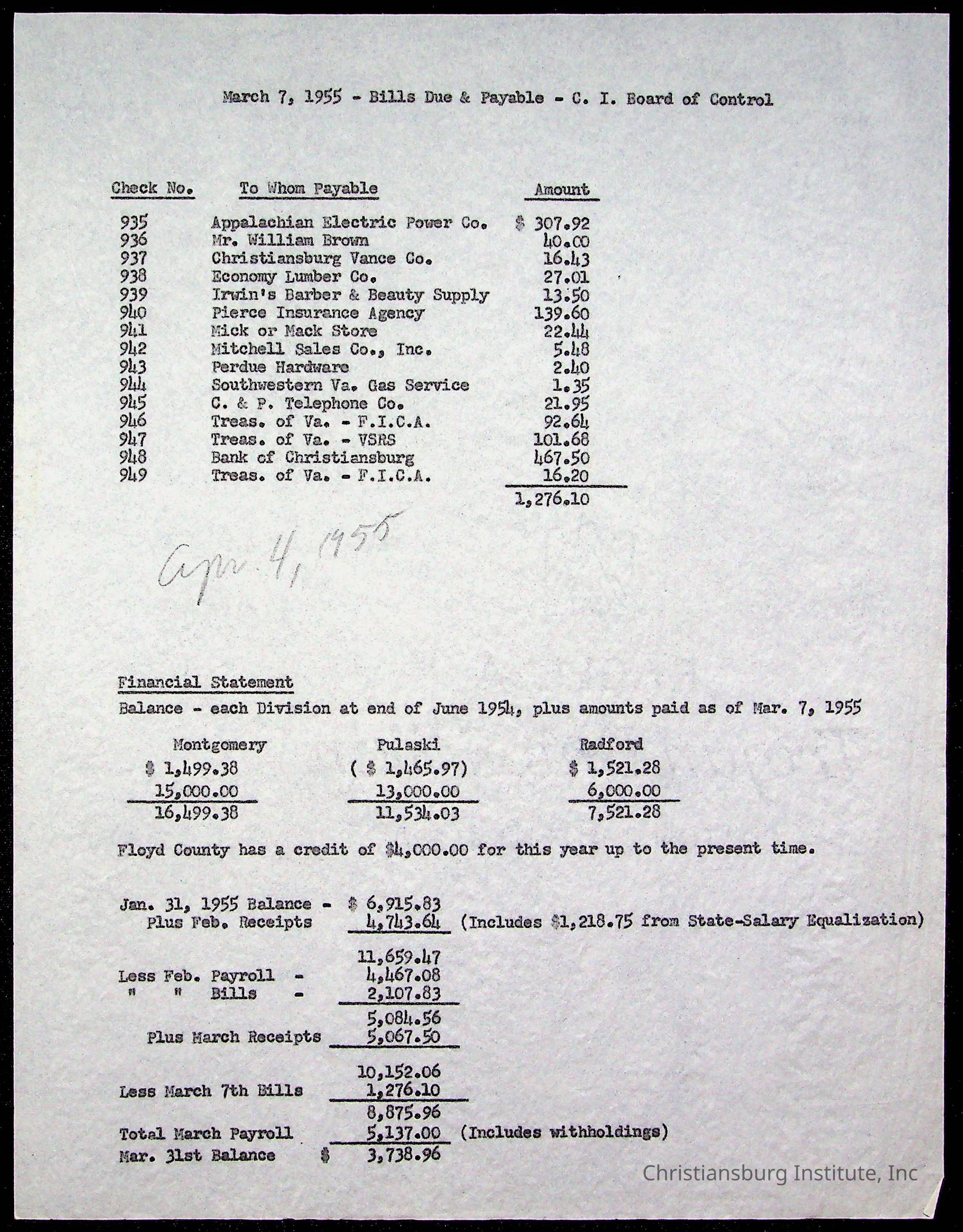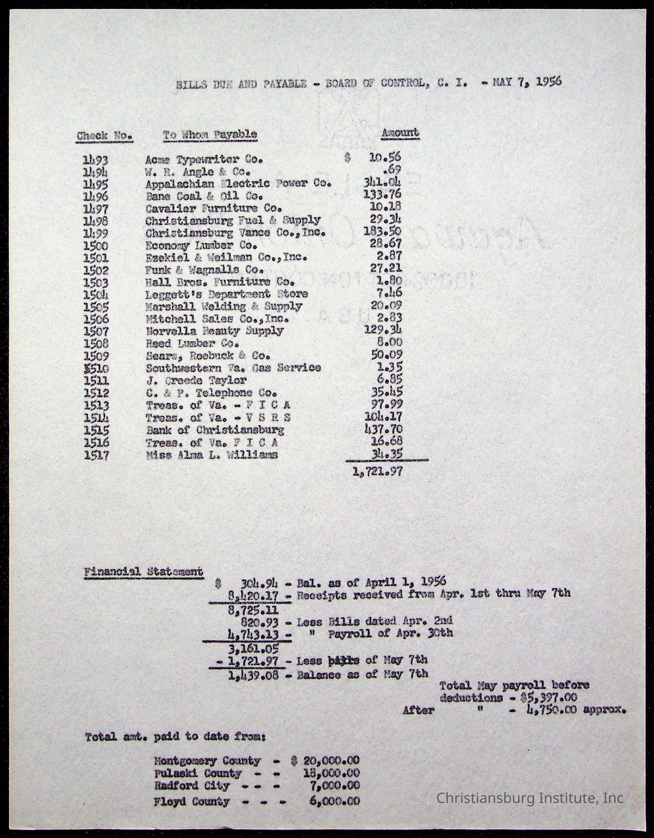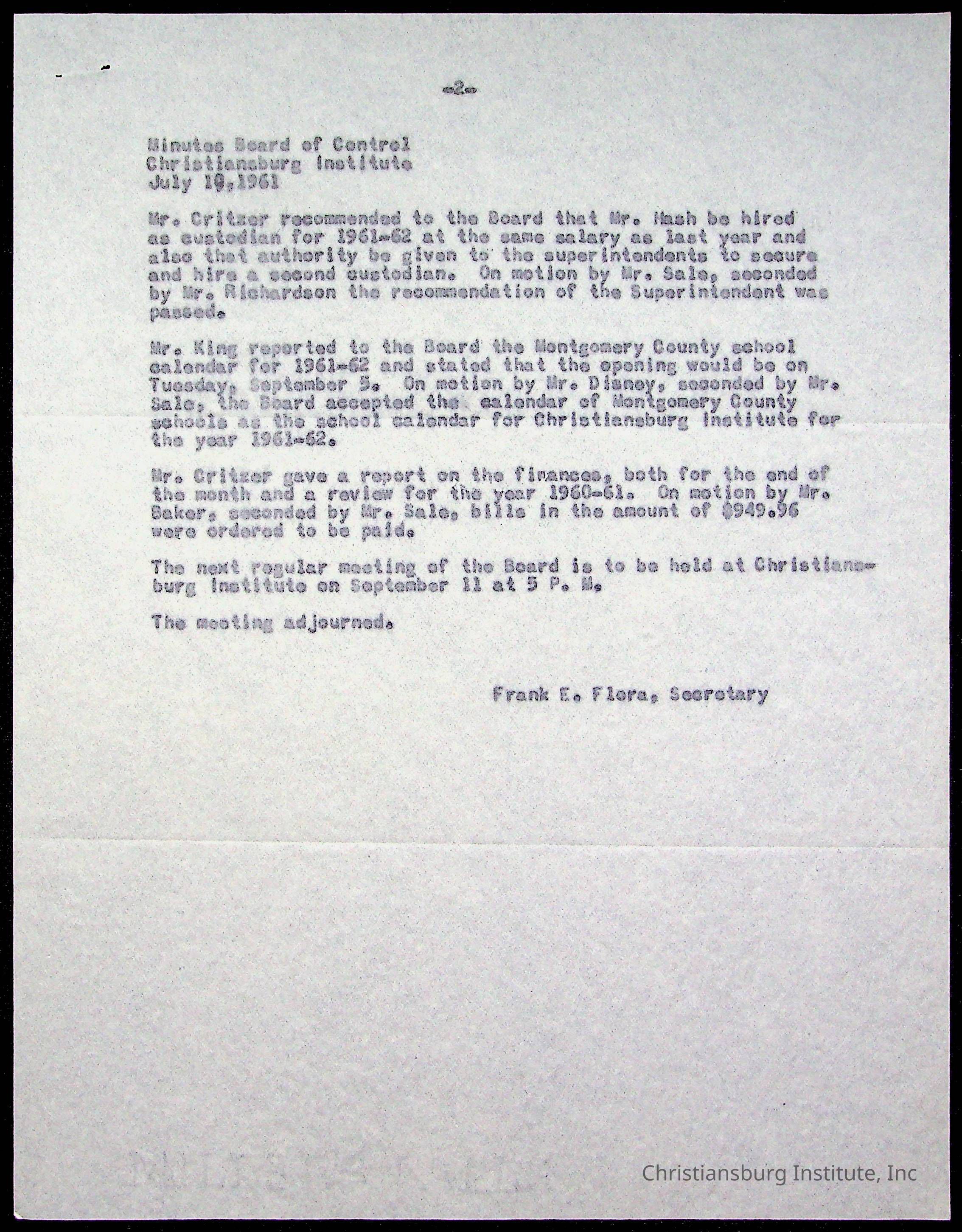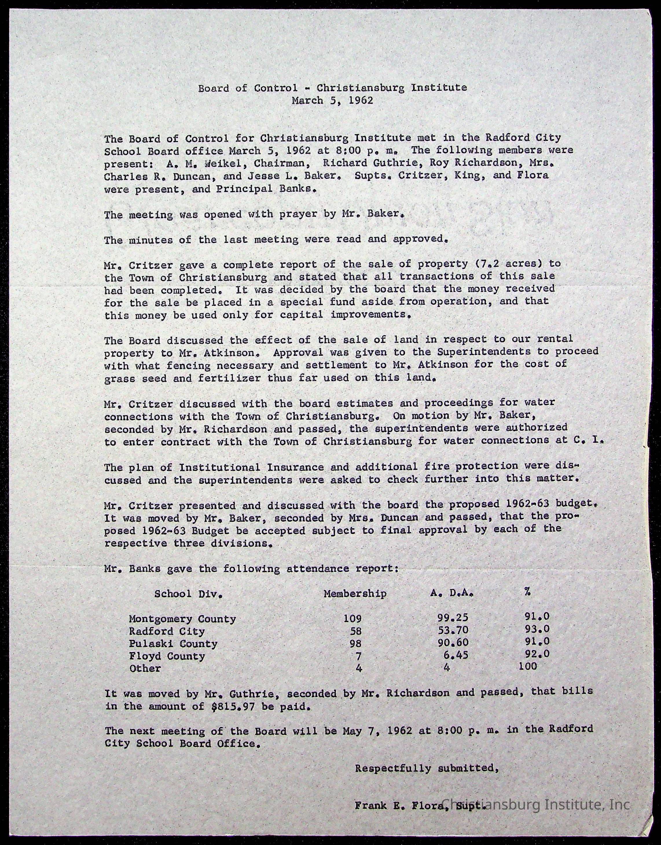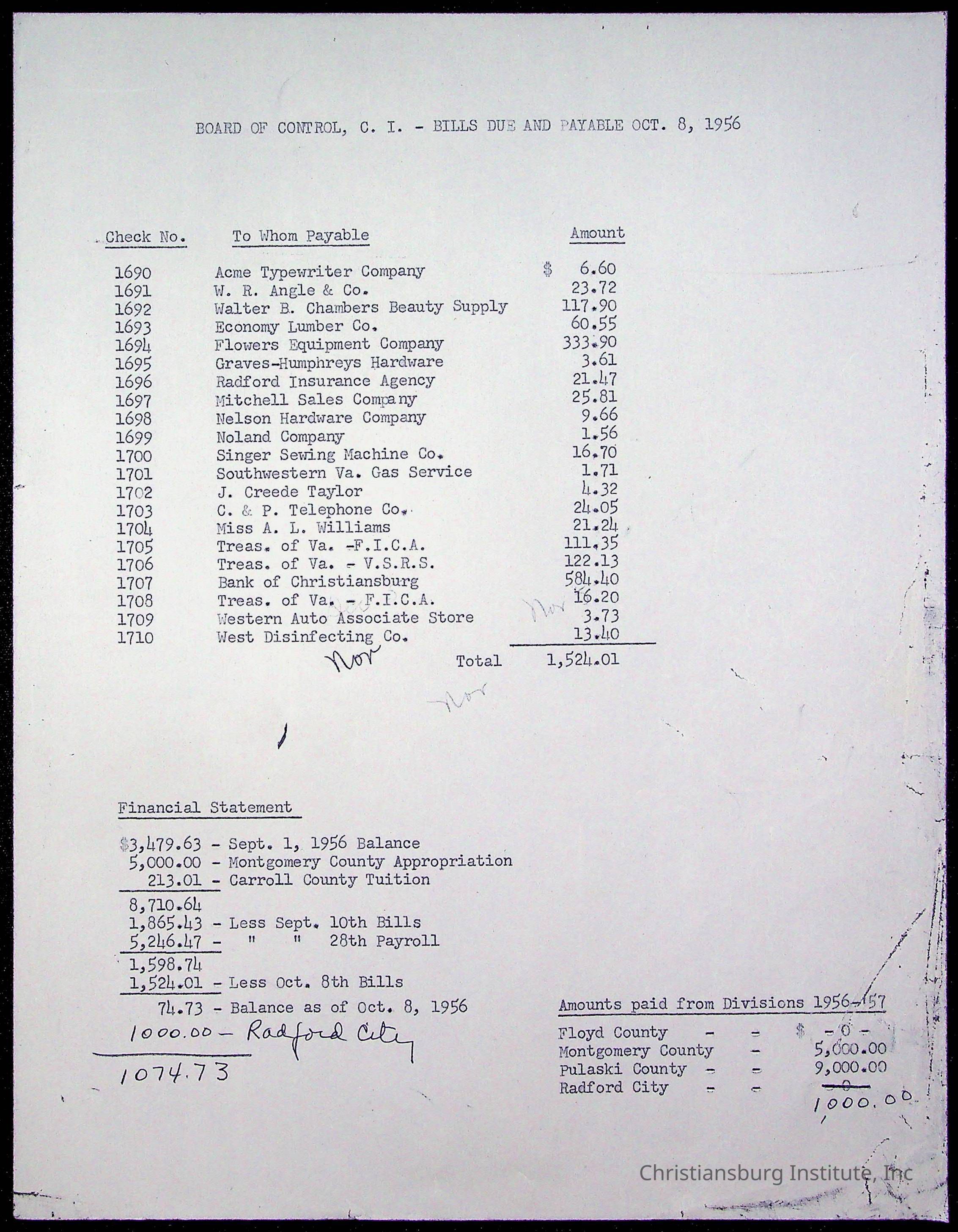 The Board of Control, Christiansburg Institute, Montgomery County School Board