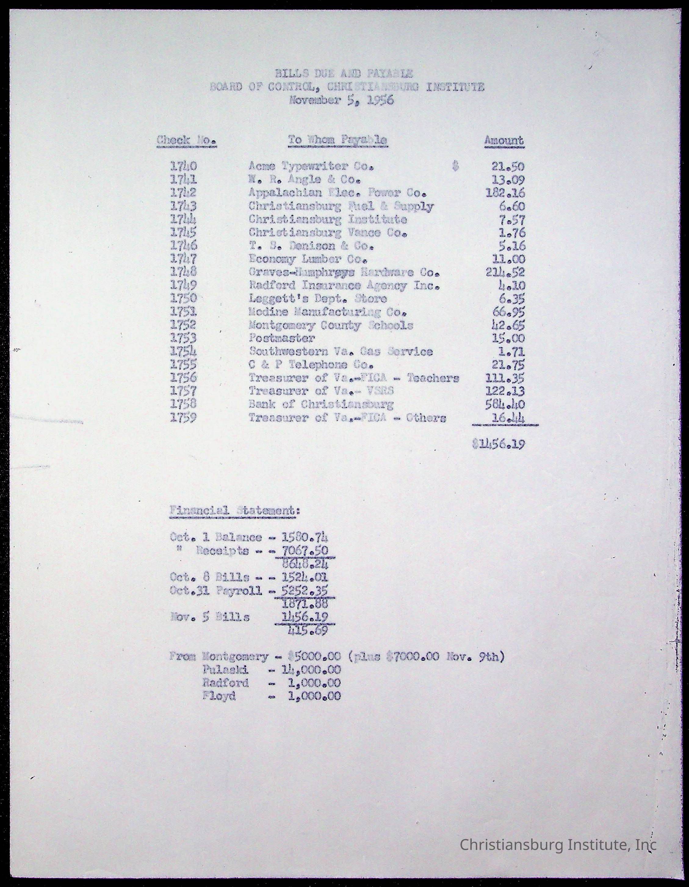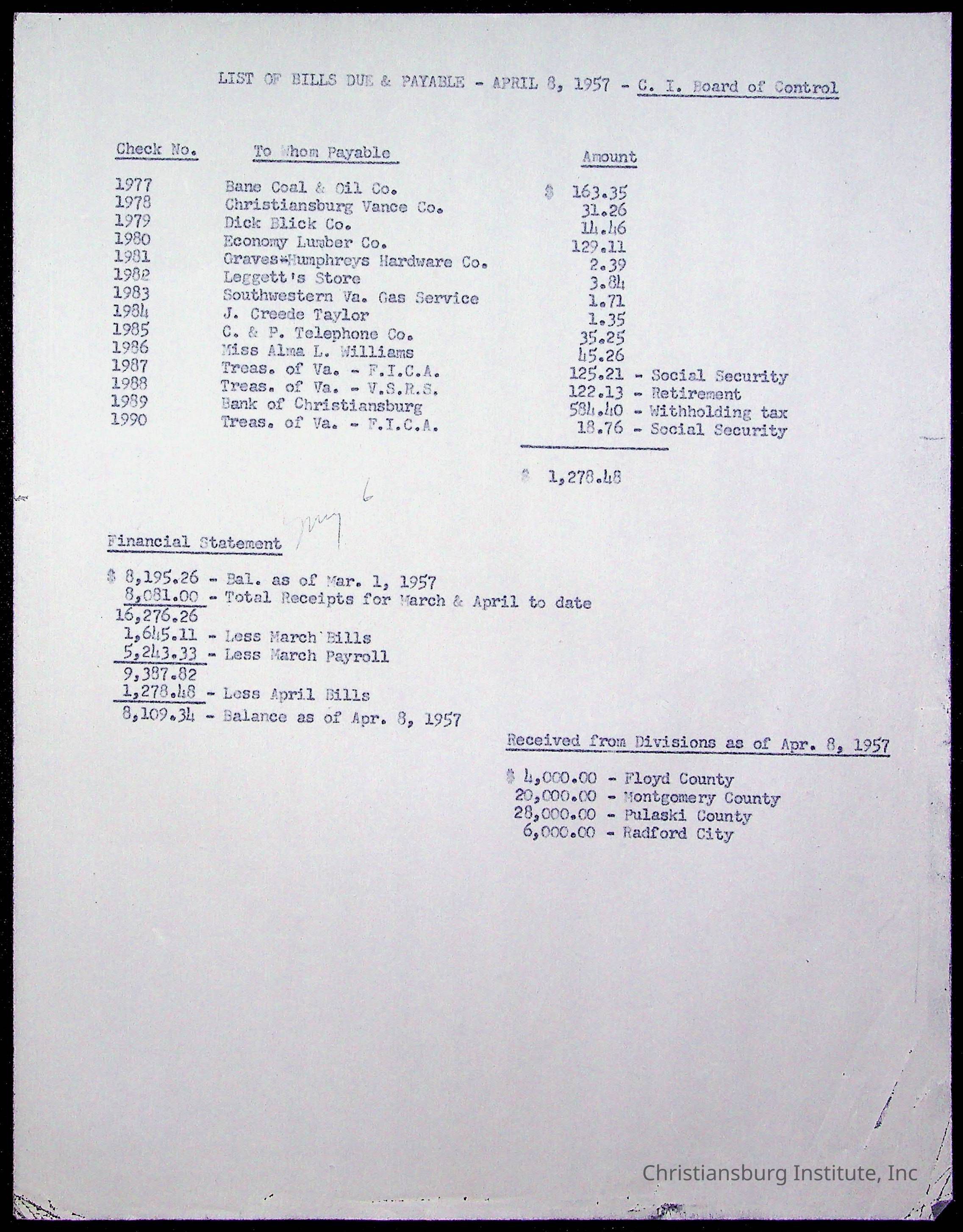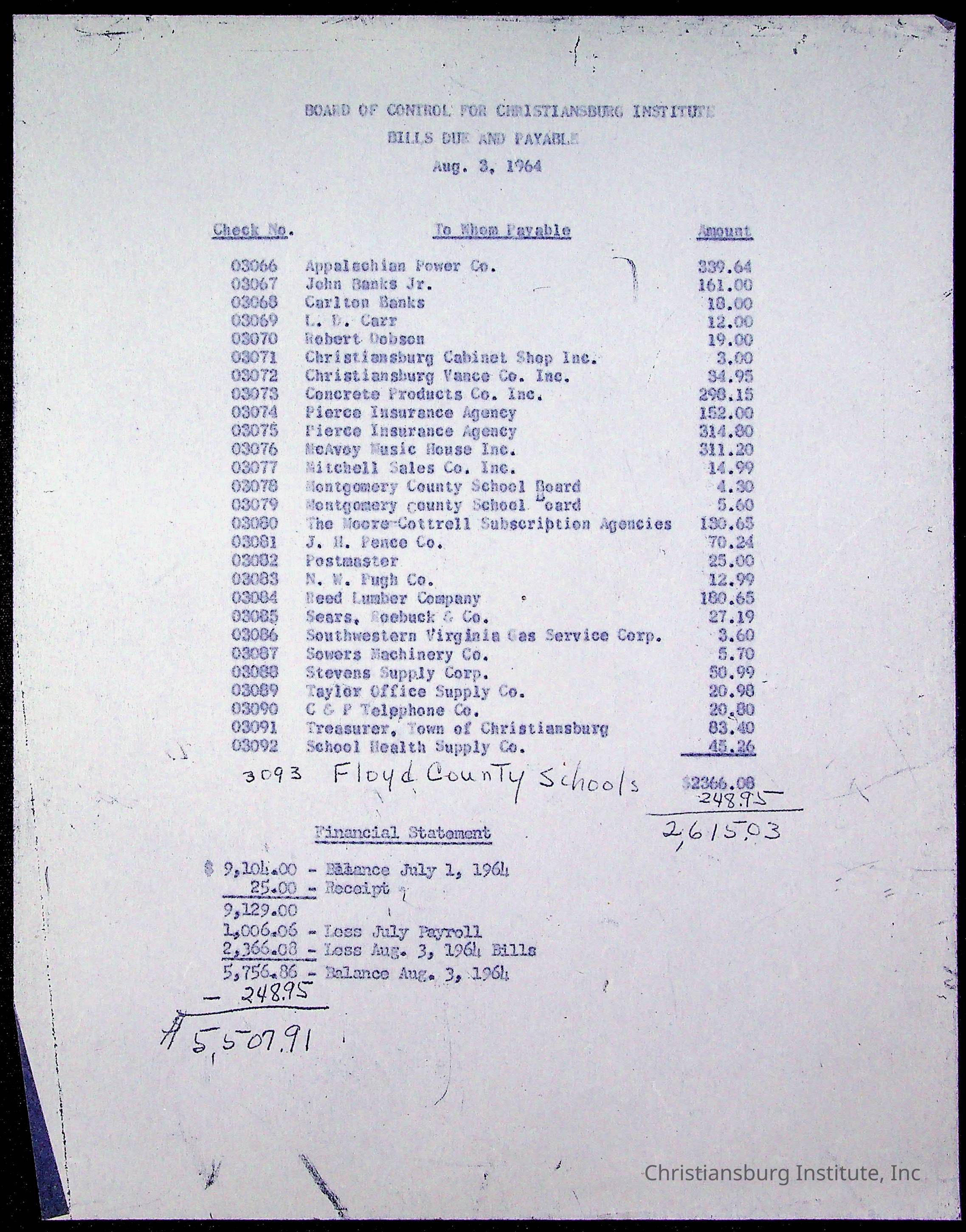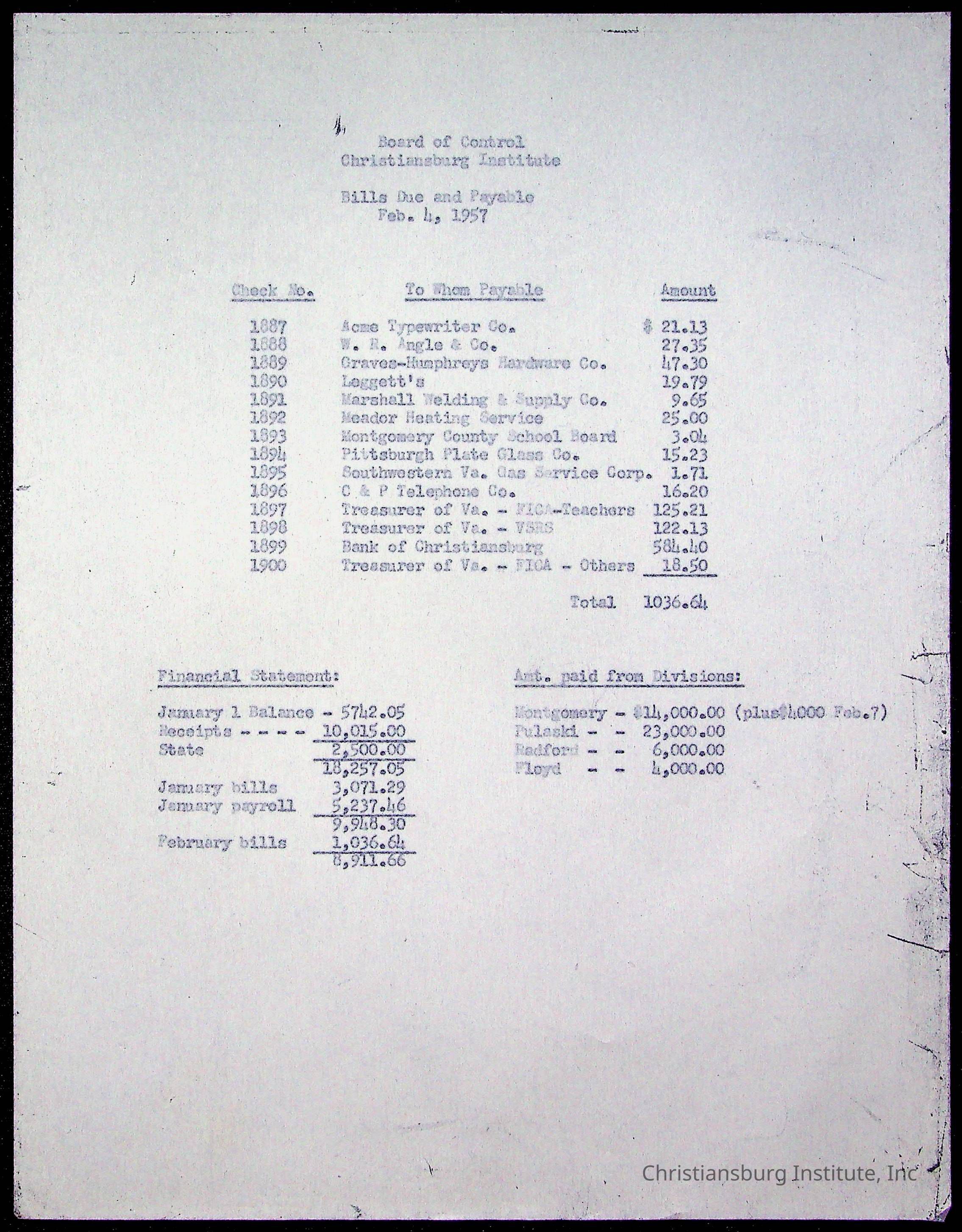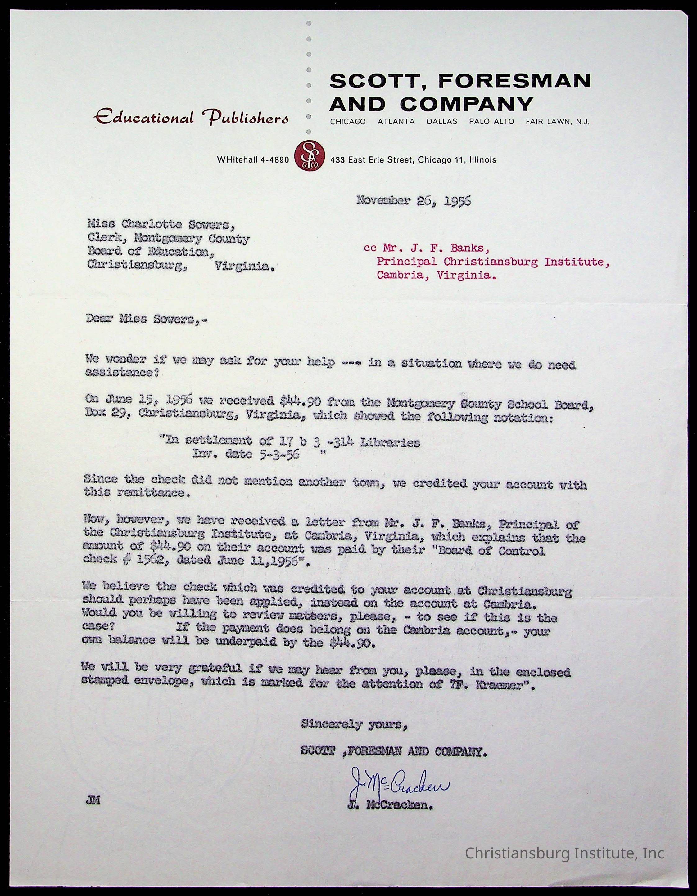 The Board of Control, Christiansburg Institute, Montgomery County School Board