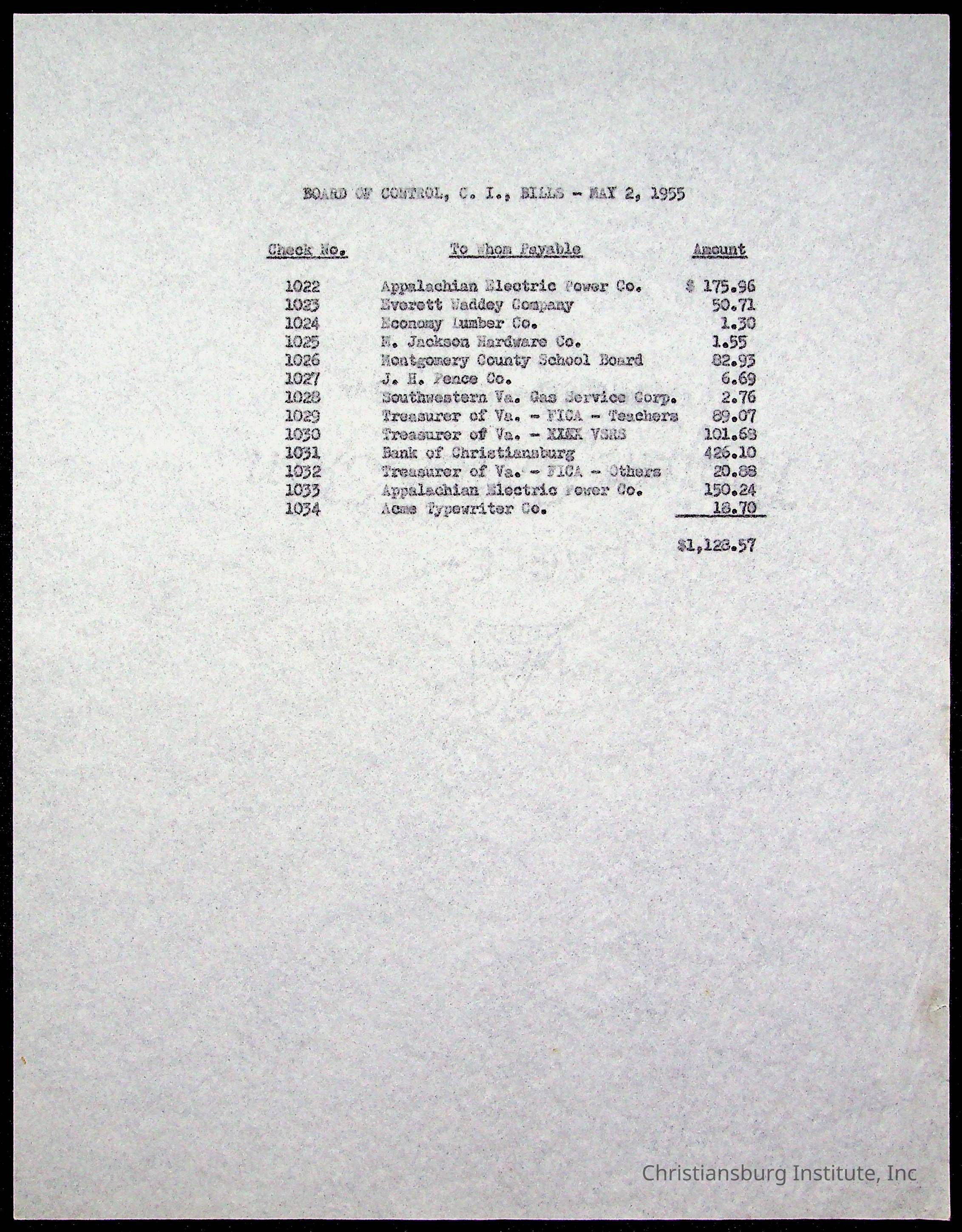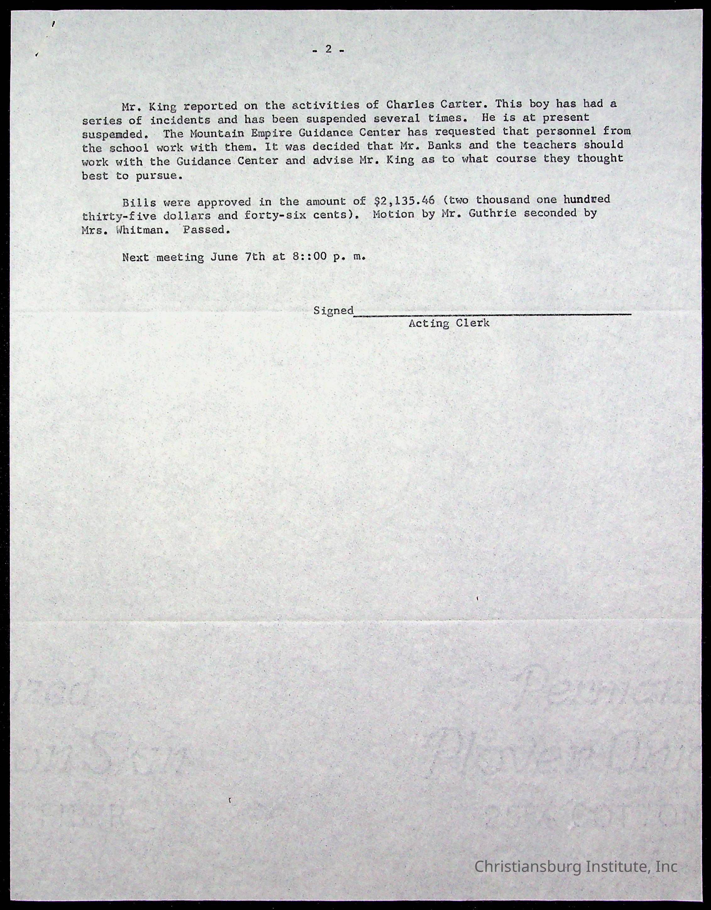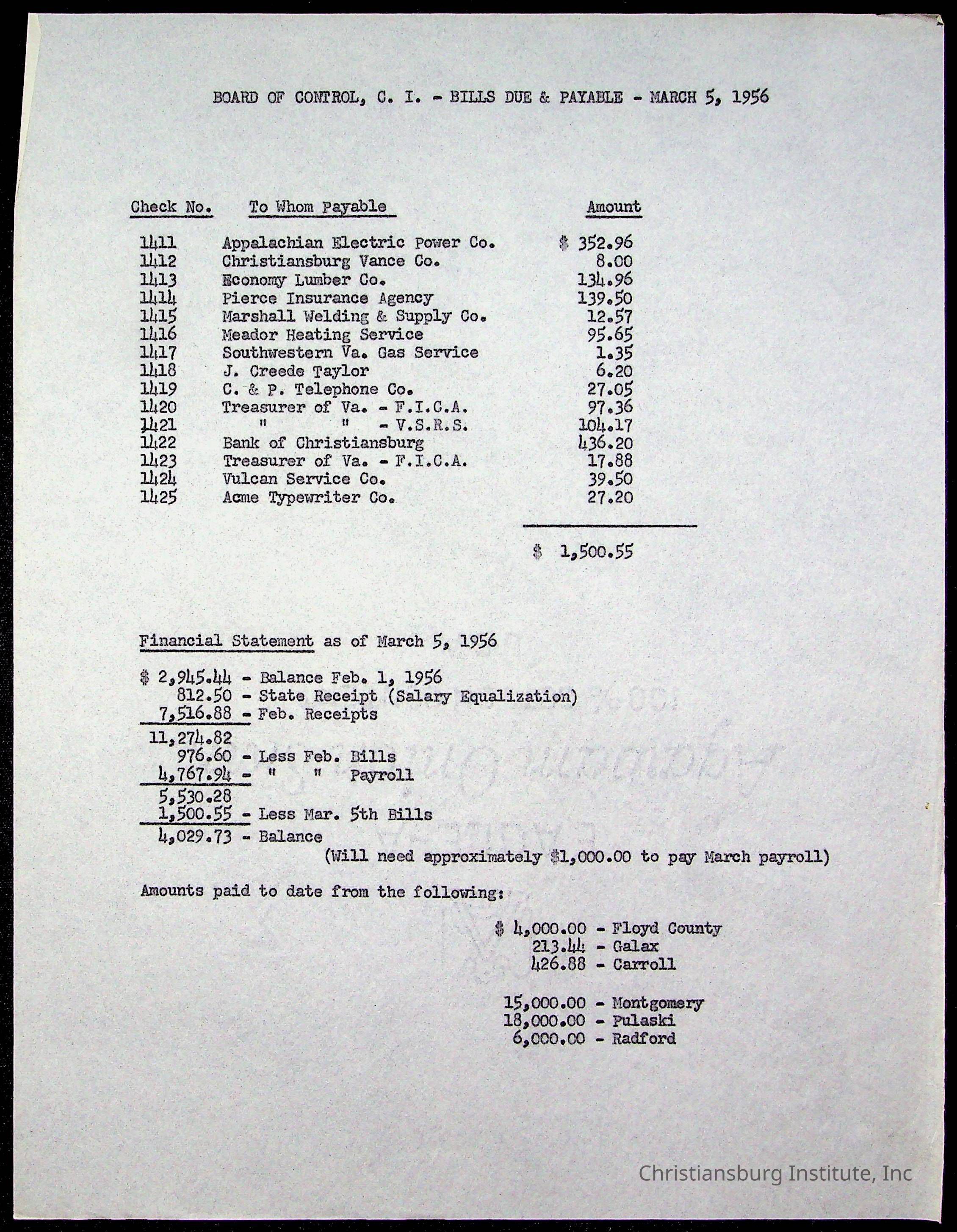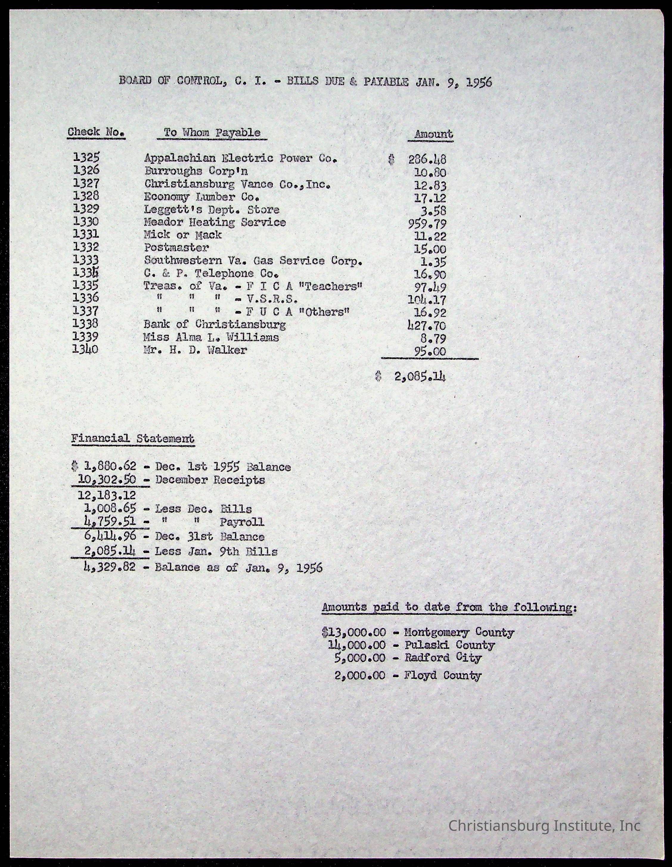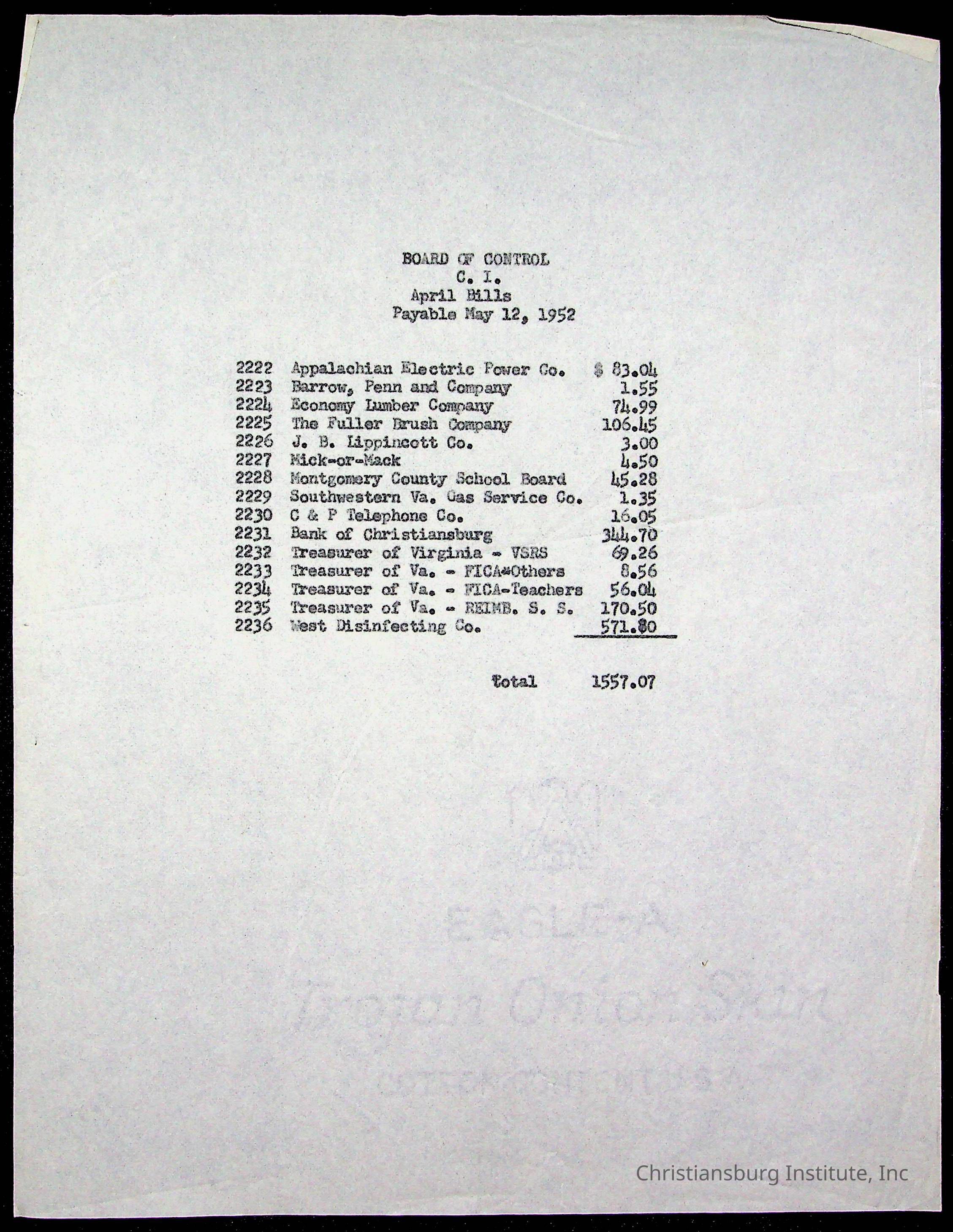 The Board of Control, Christiansburg Institute, Montgomery County School Board