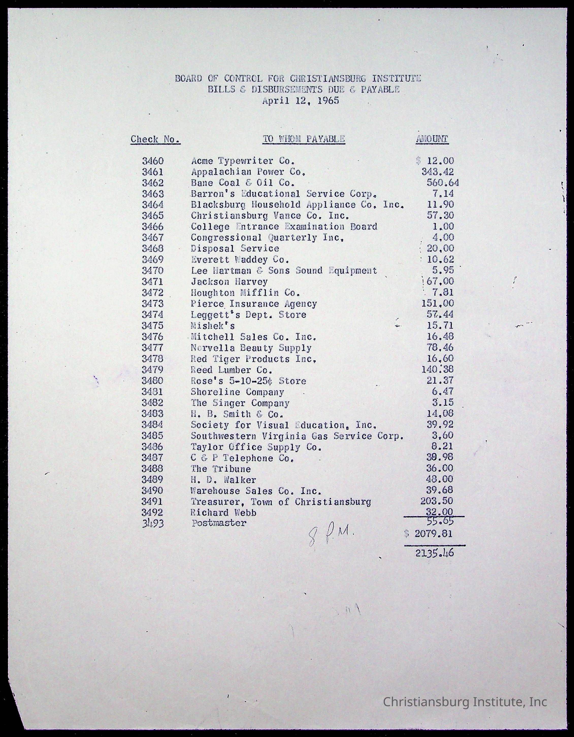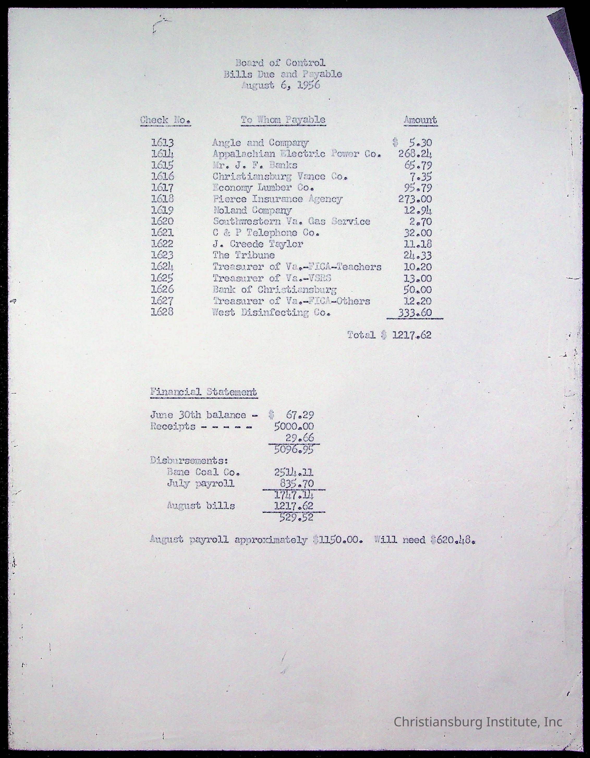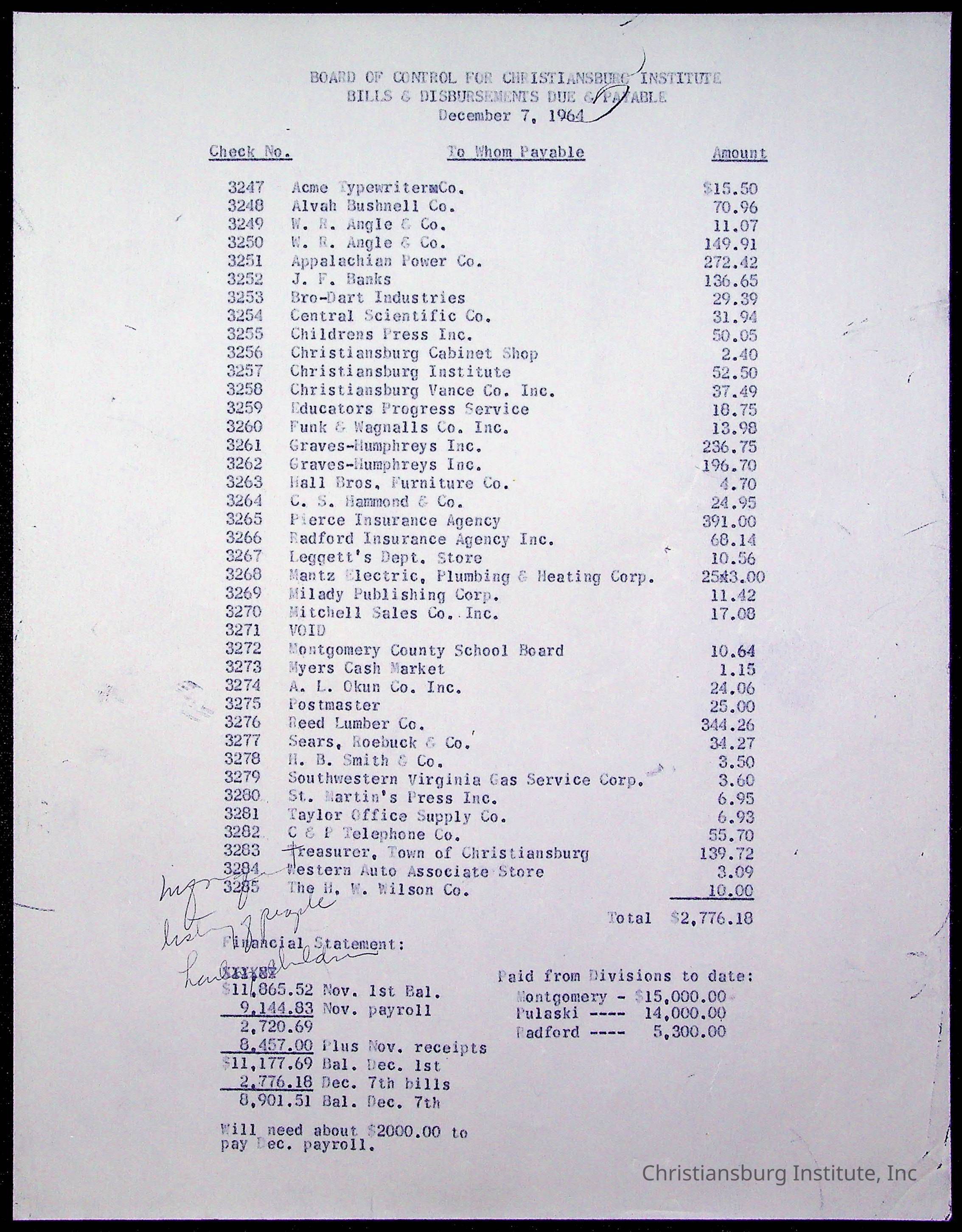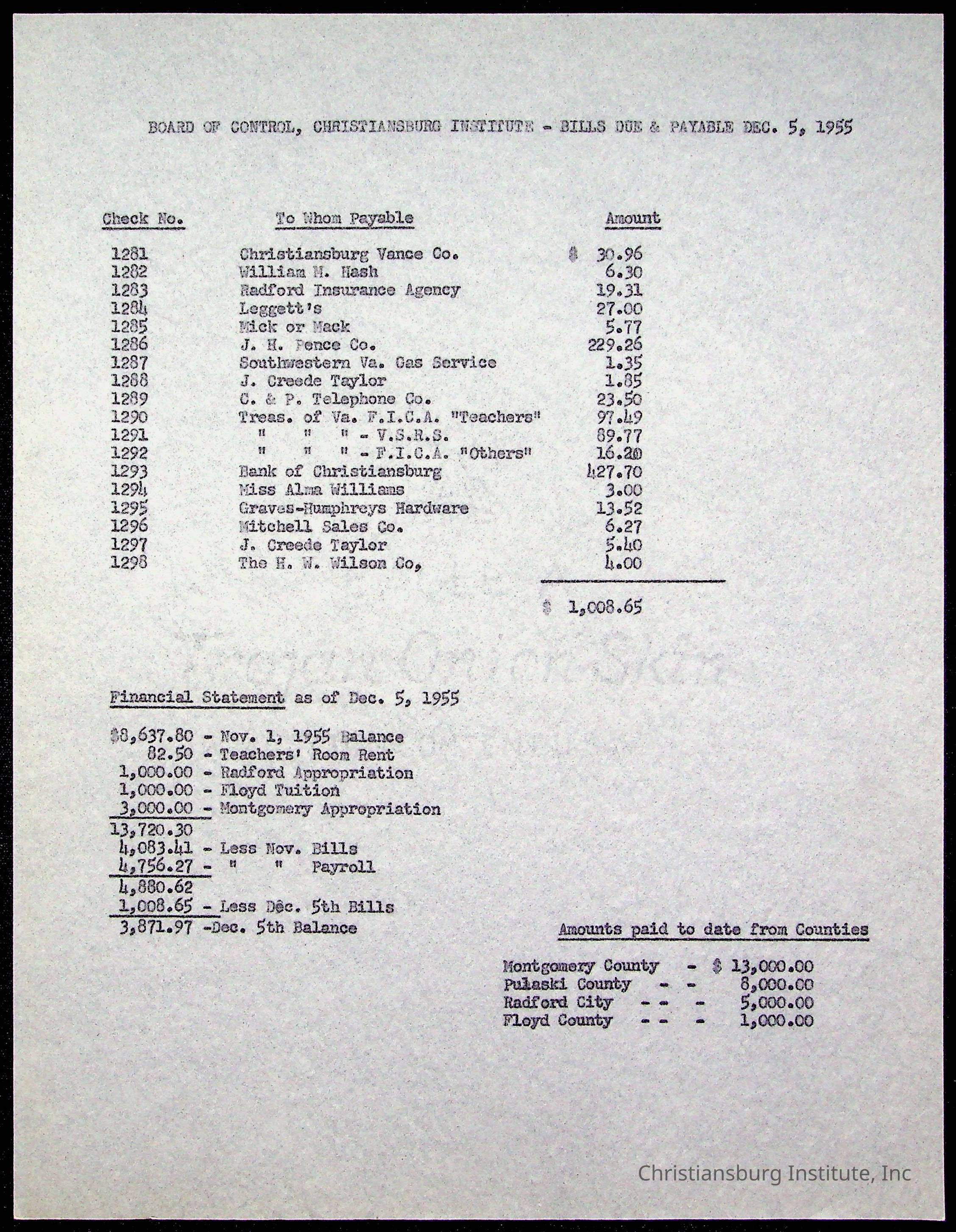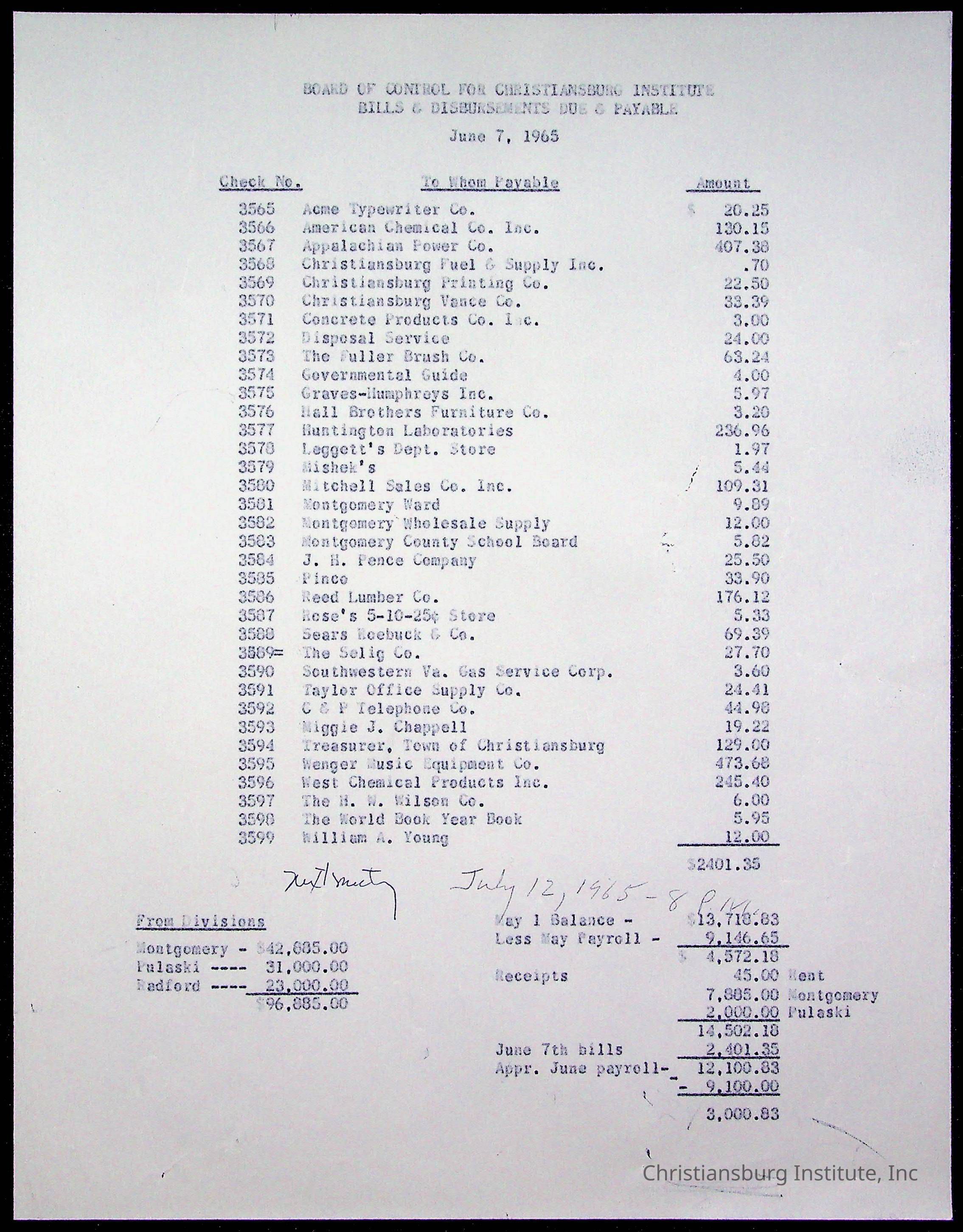 The Board of Control, Christiansburg Institute, Montgomery County School Board