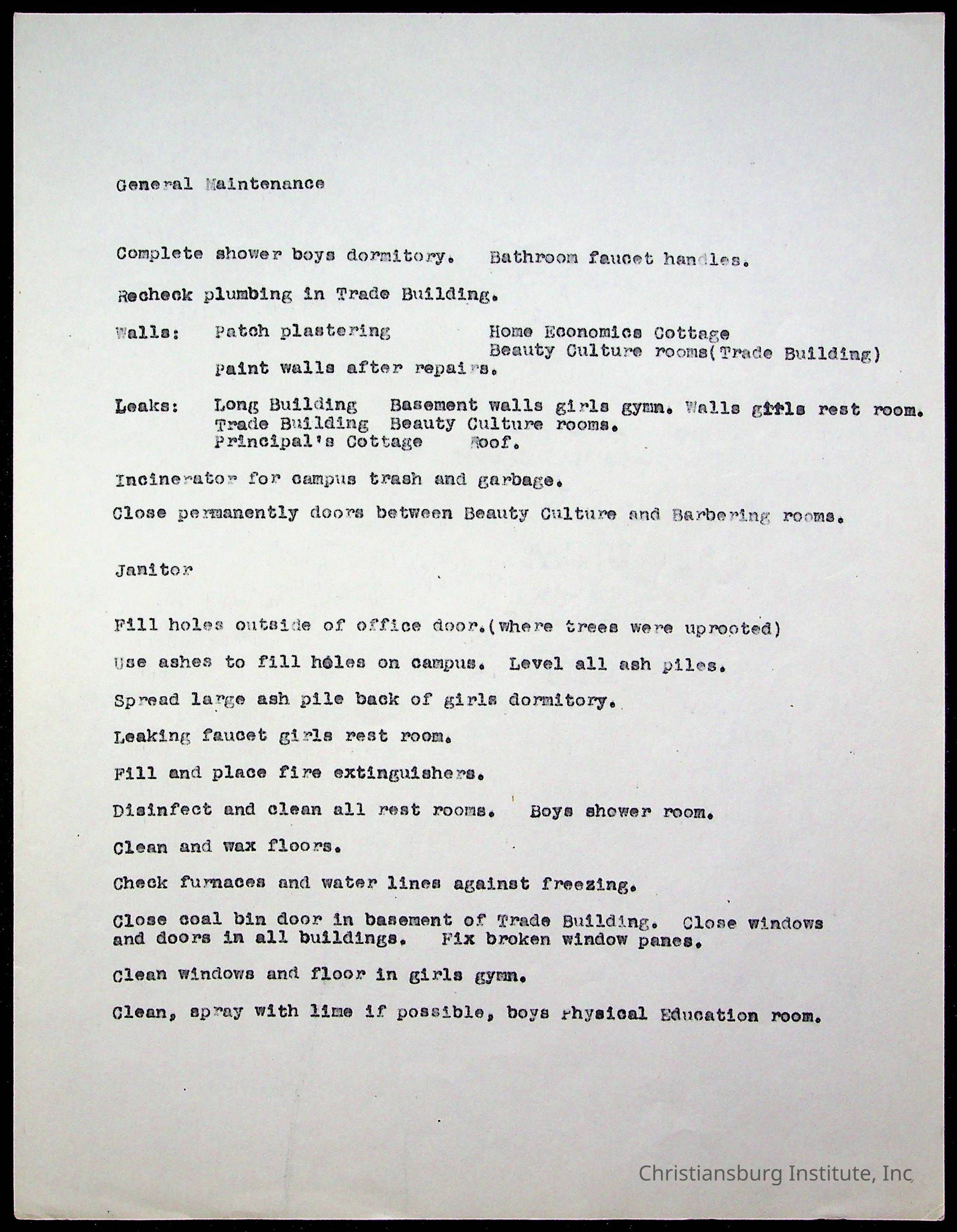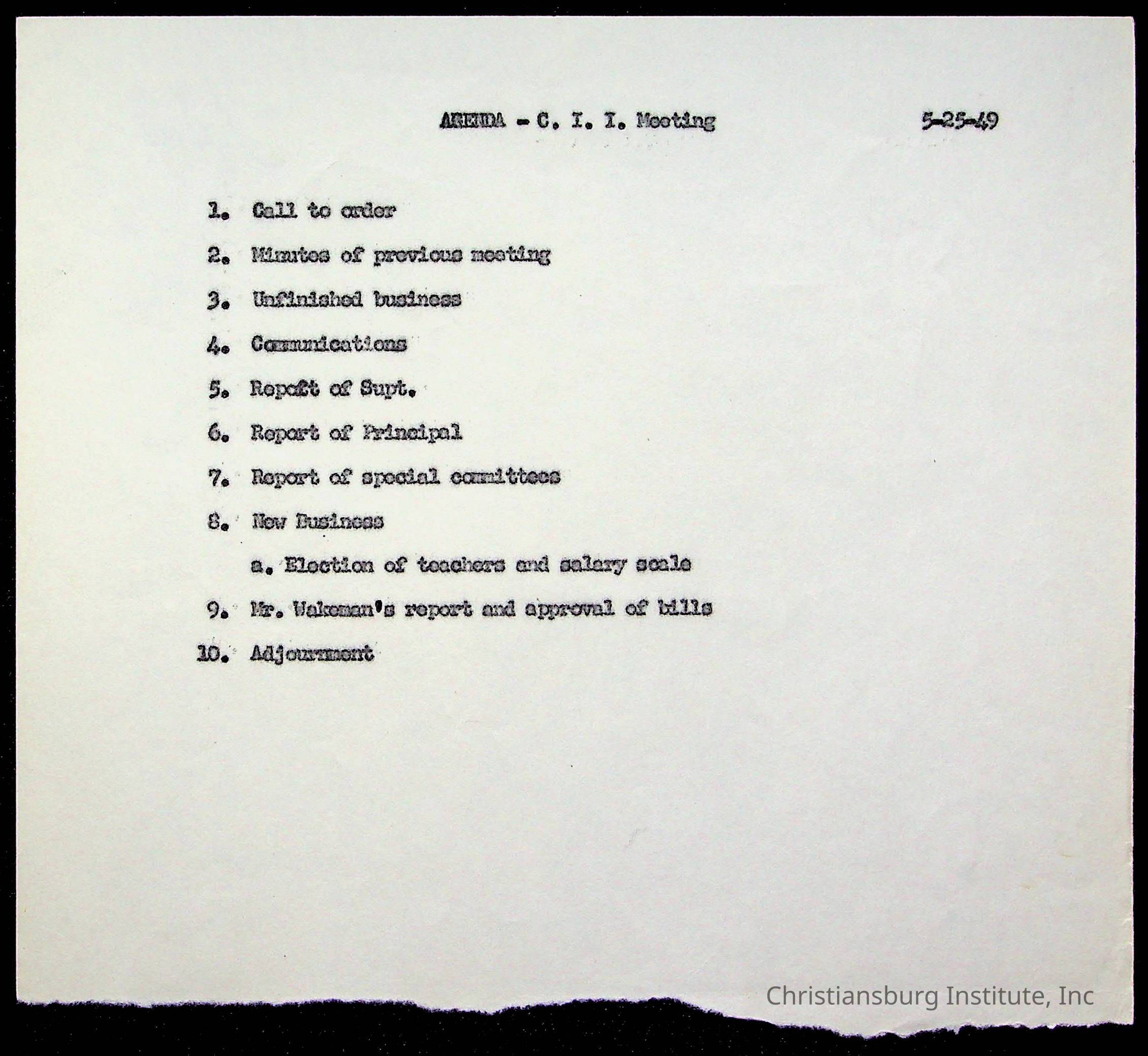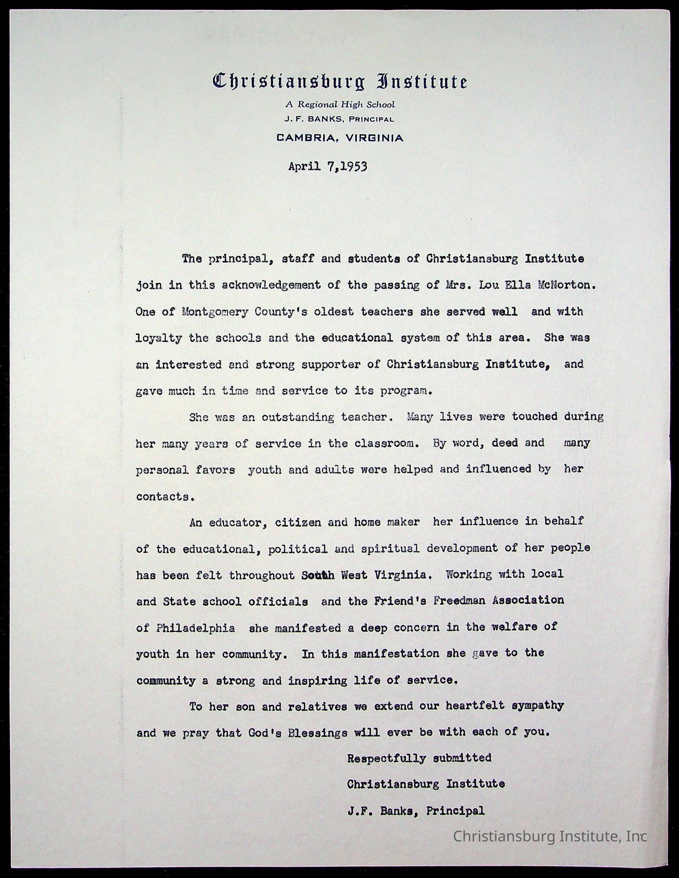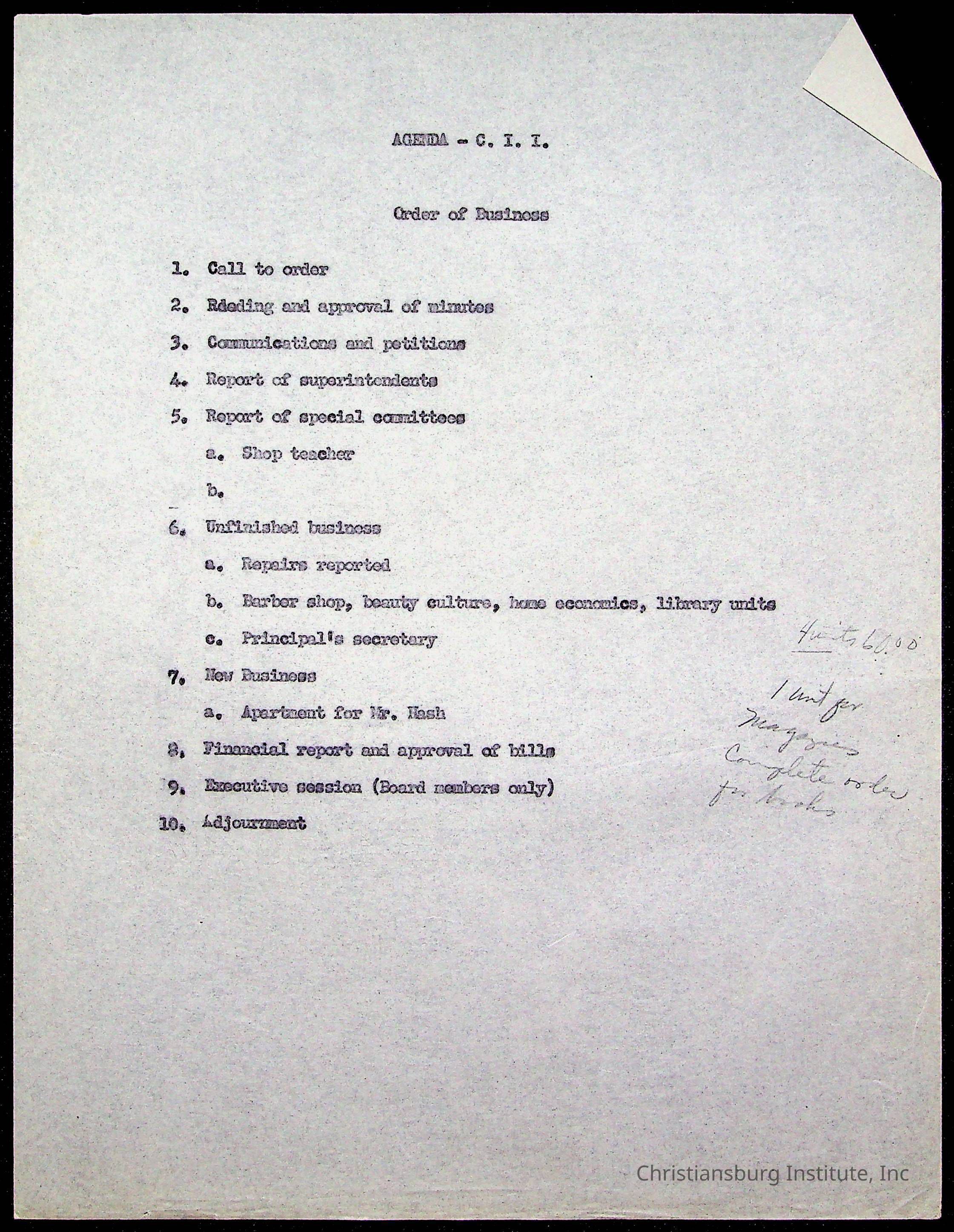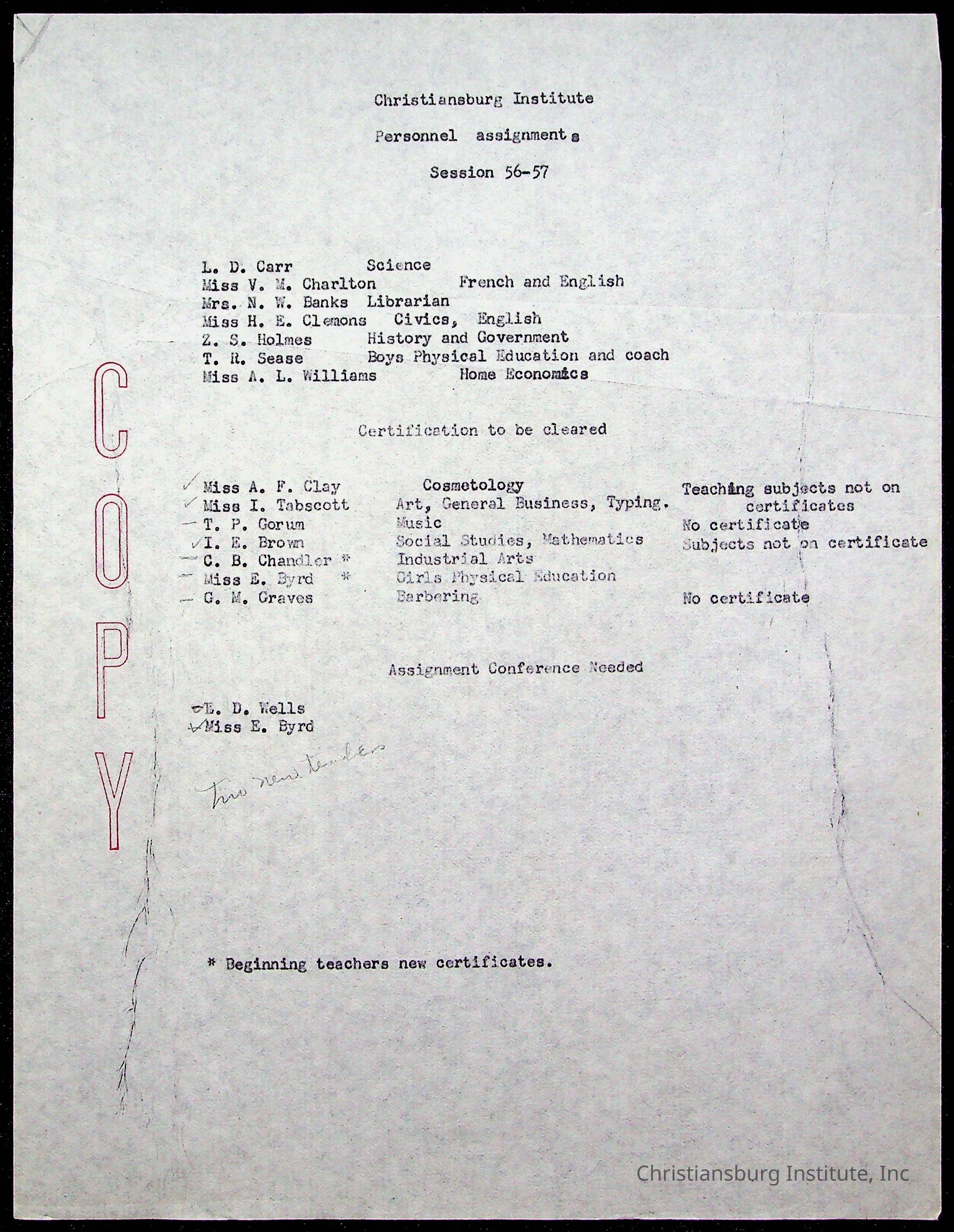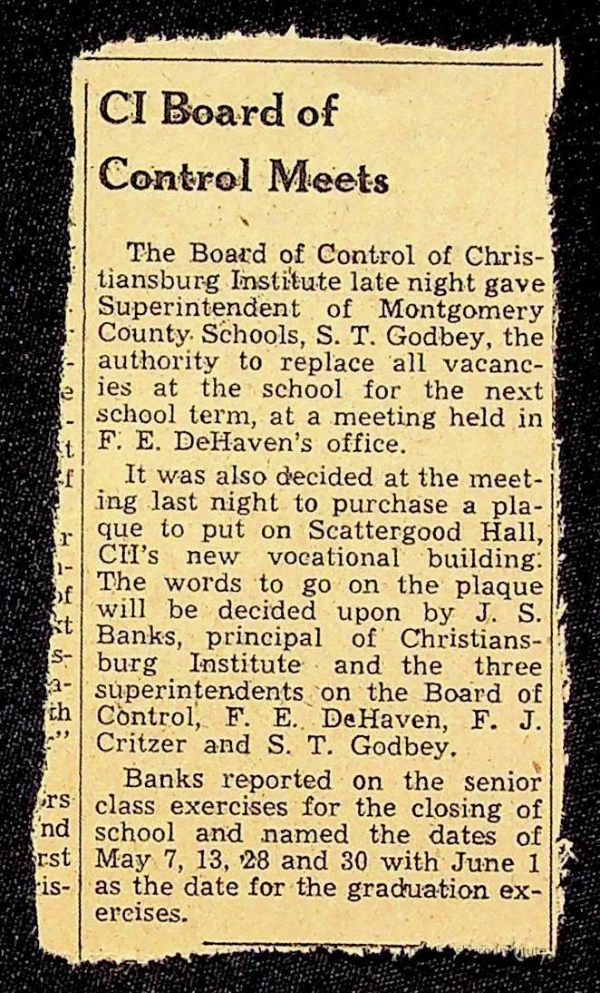 Copyright has been assigned to Christiansburg Institute Museum & Archives by Montgomery County Public Schools. For permission to publish materials created by the donor, contact CIMA@christiansburginstitute.com. Materials not created by Christiansburg Industrial Institute may still be under copyright.