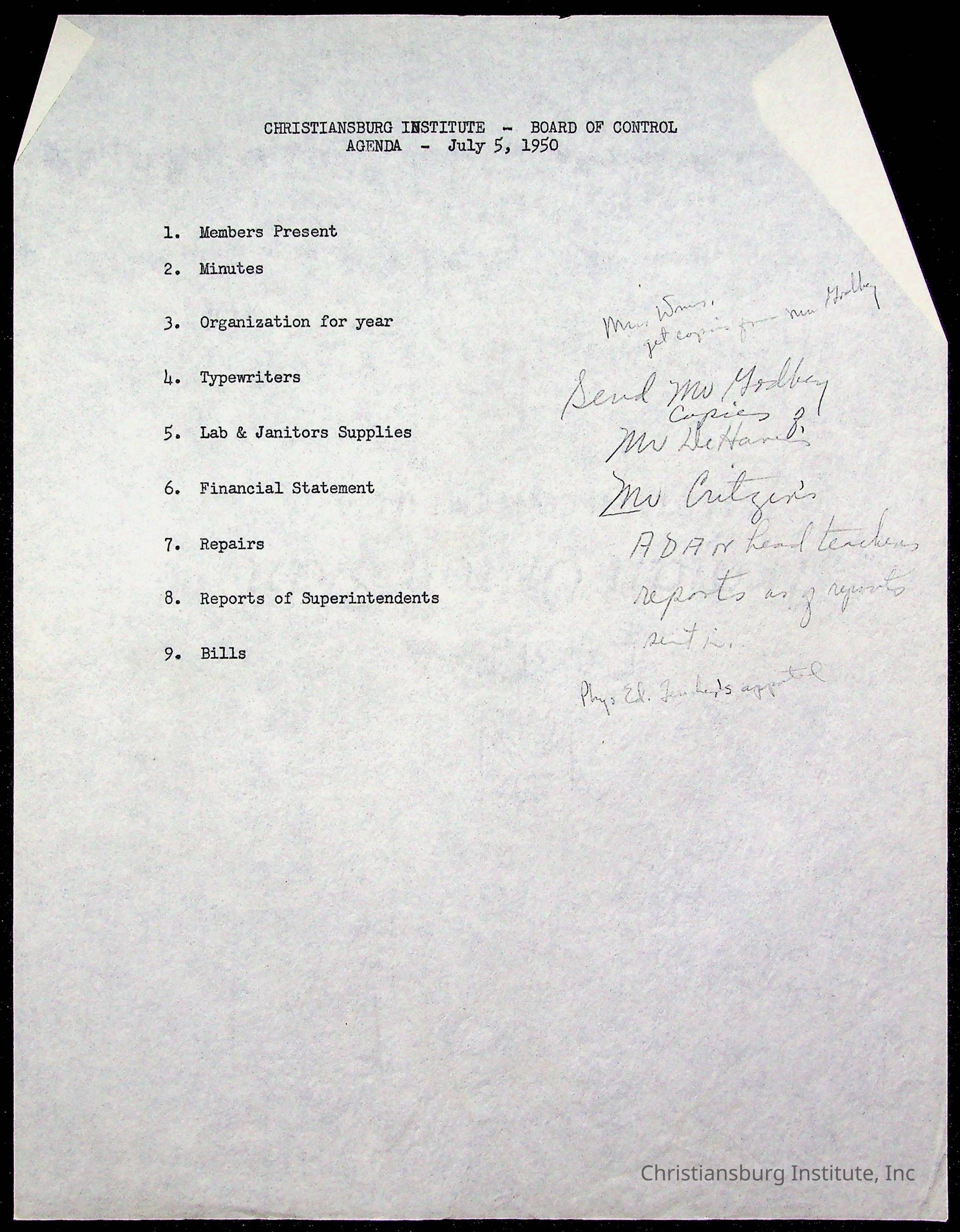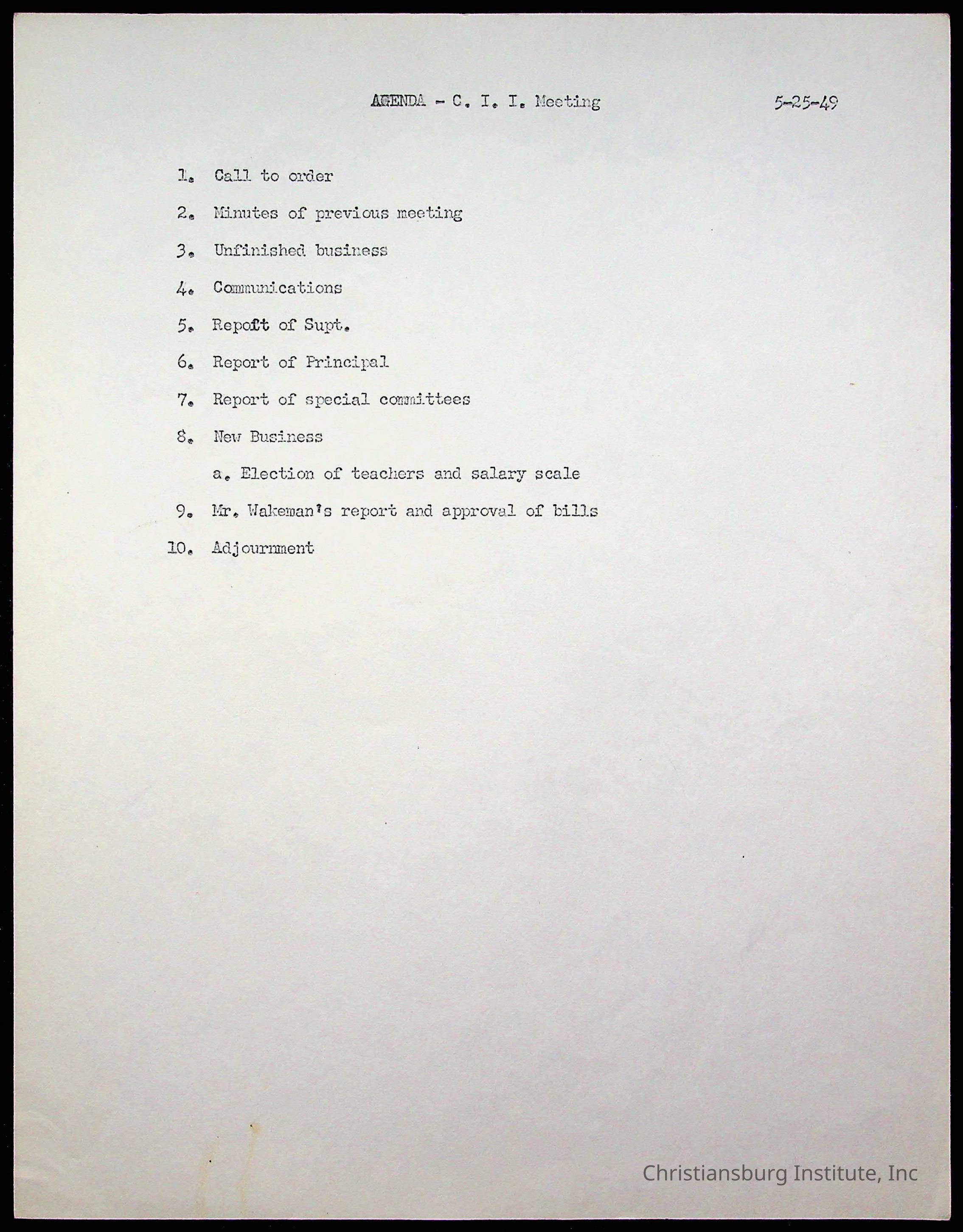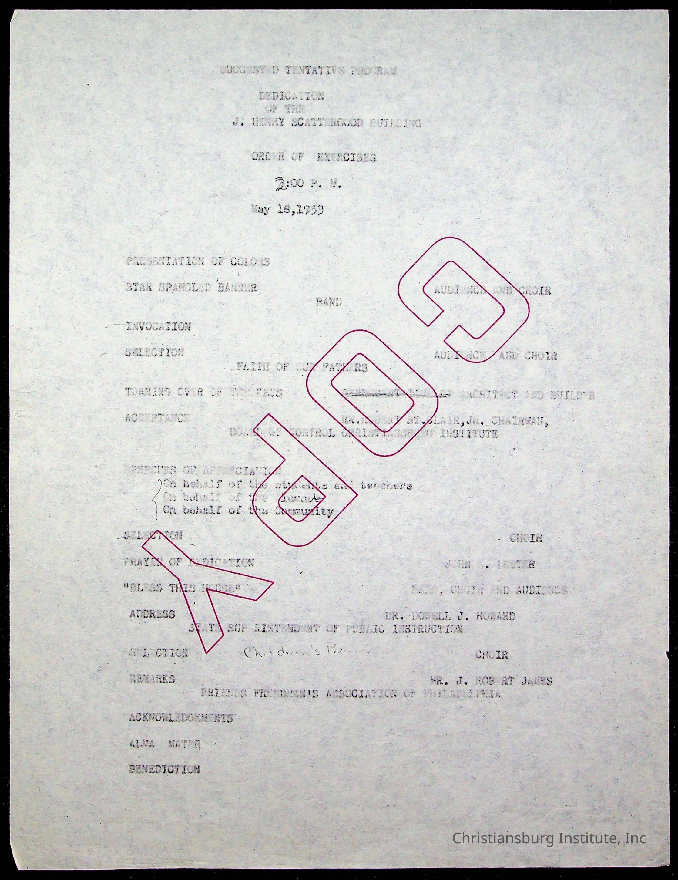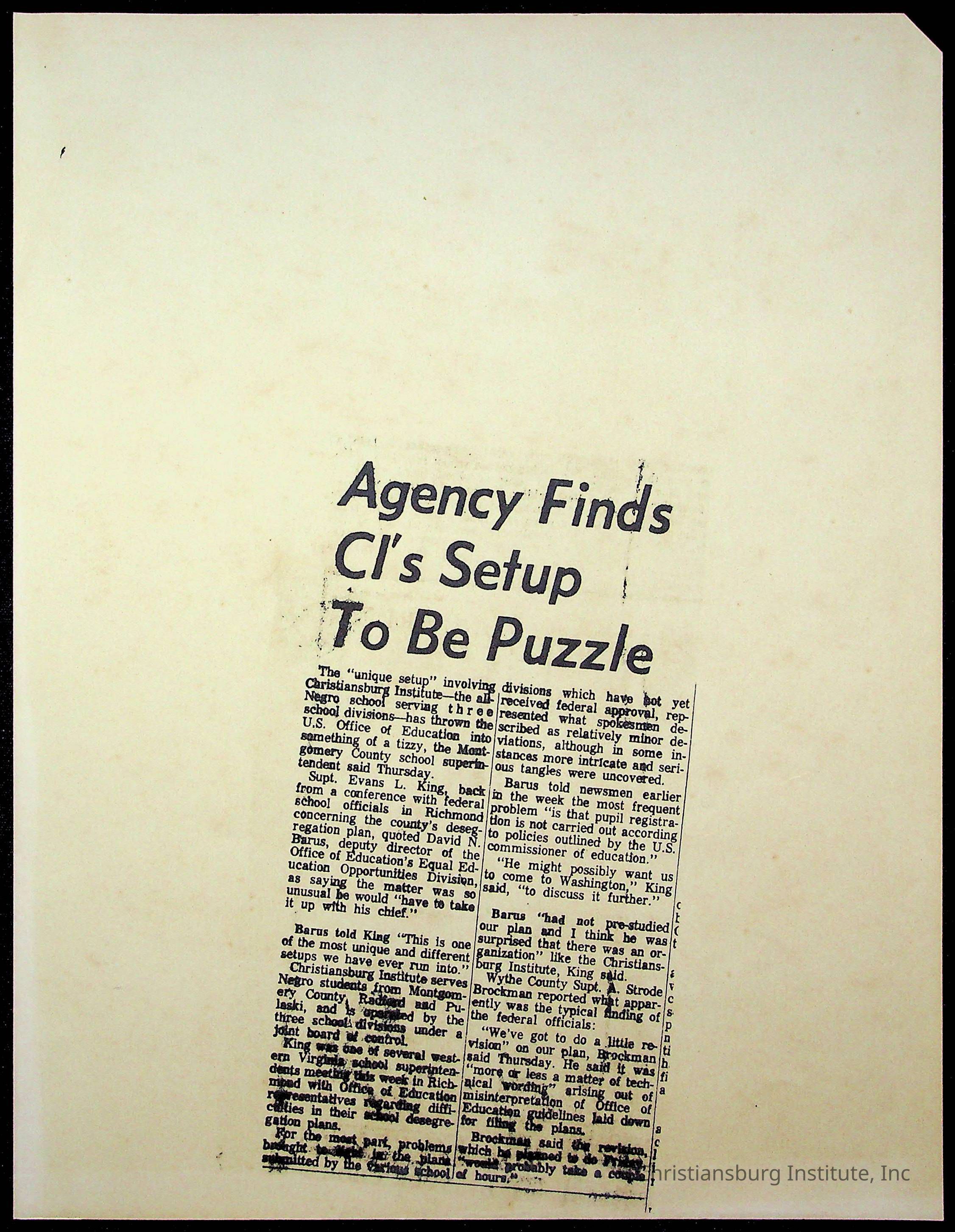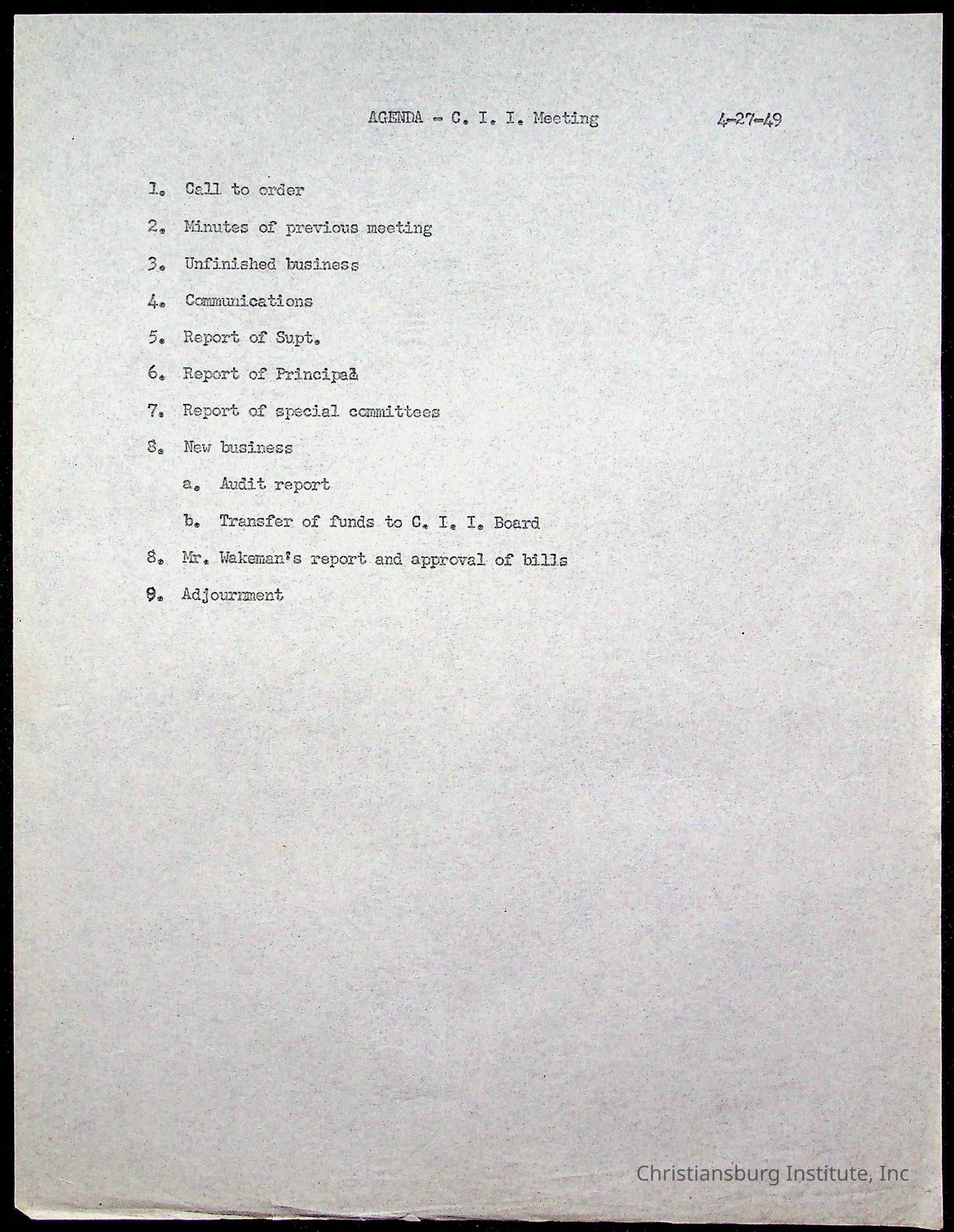 Copyright has been assigned to Christiansburg Institute Museum & Archives by Montgomery County Public Schools. For permission to publish materials created by the donor, contact CIMA@christiansburginstitute.com. Materials not created by Christiansburg Industrial Institute may still be under copyright.