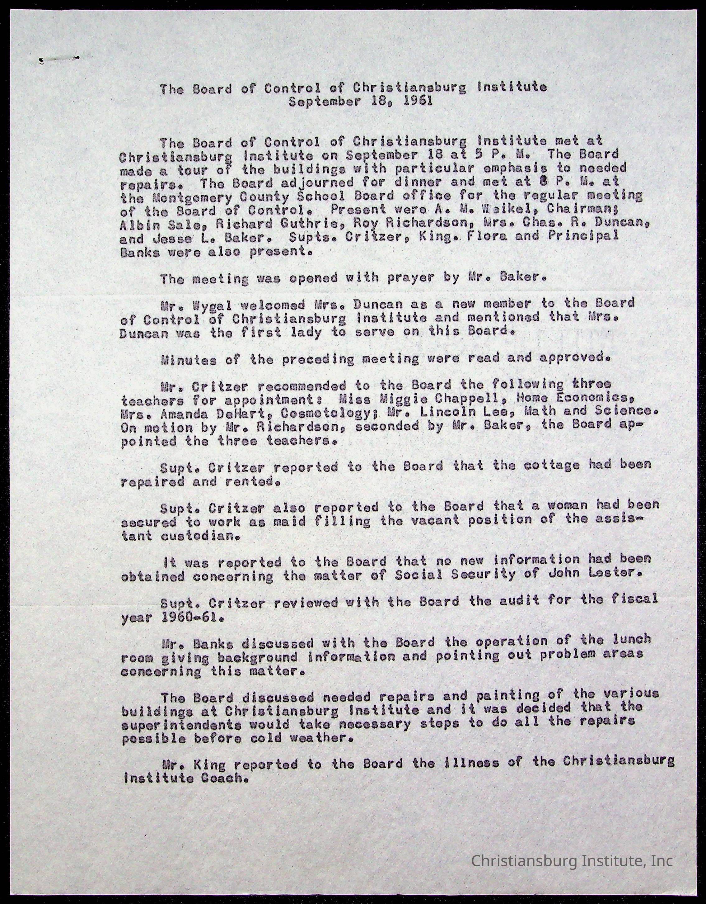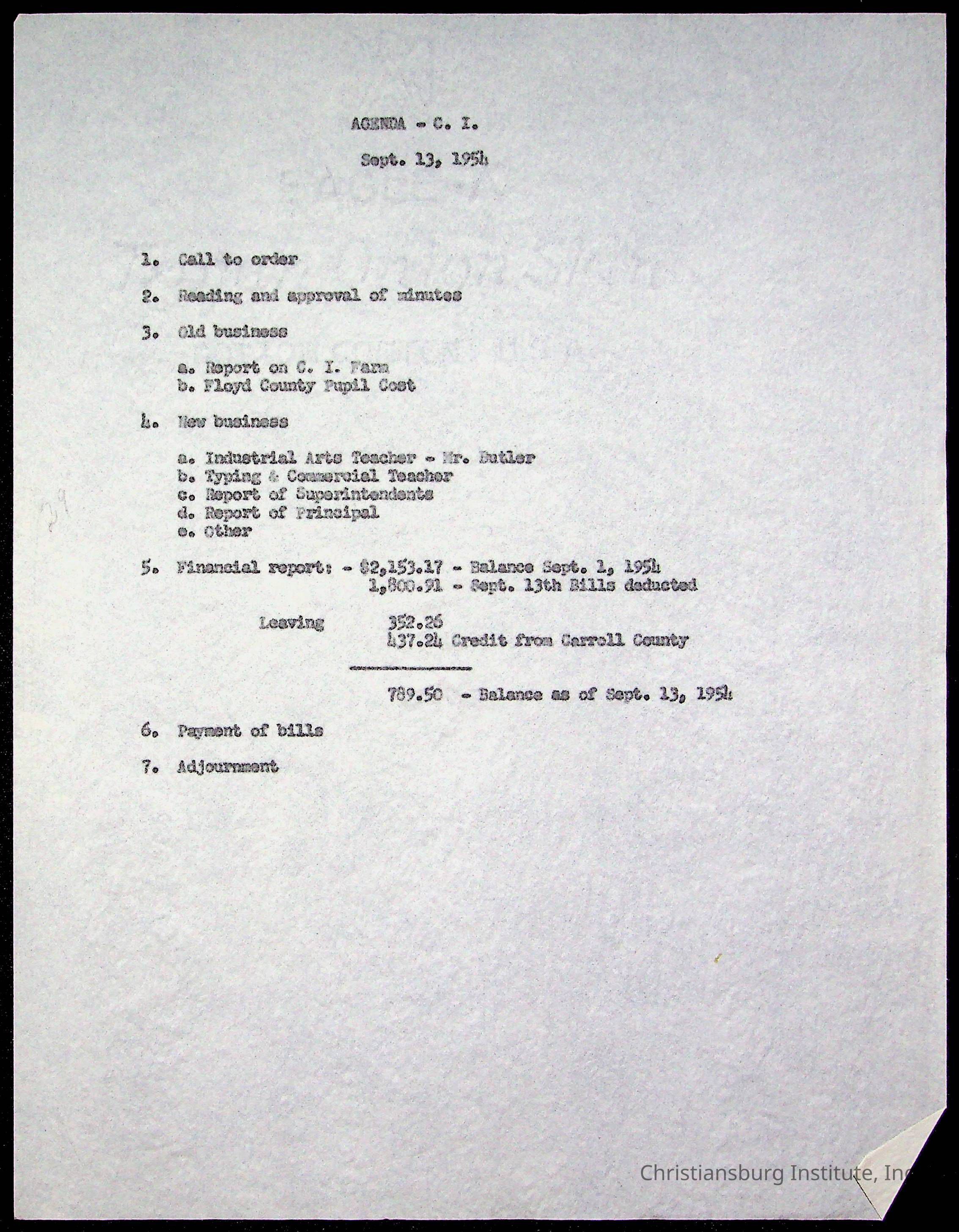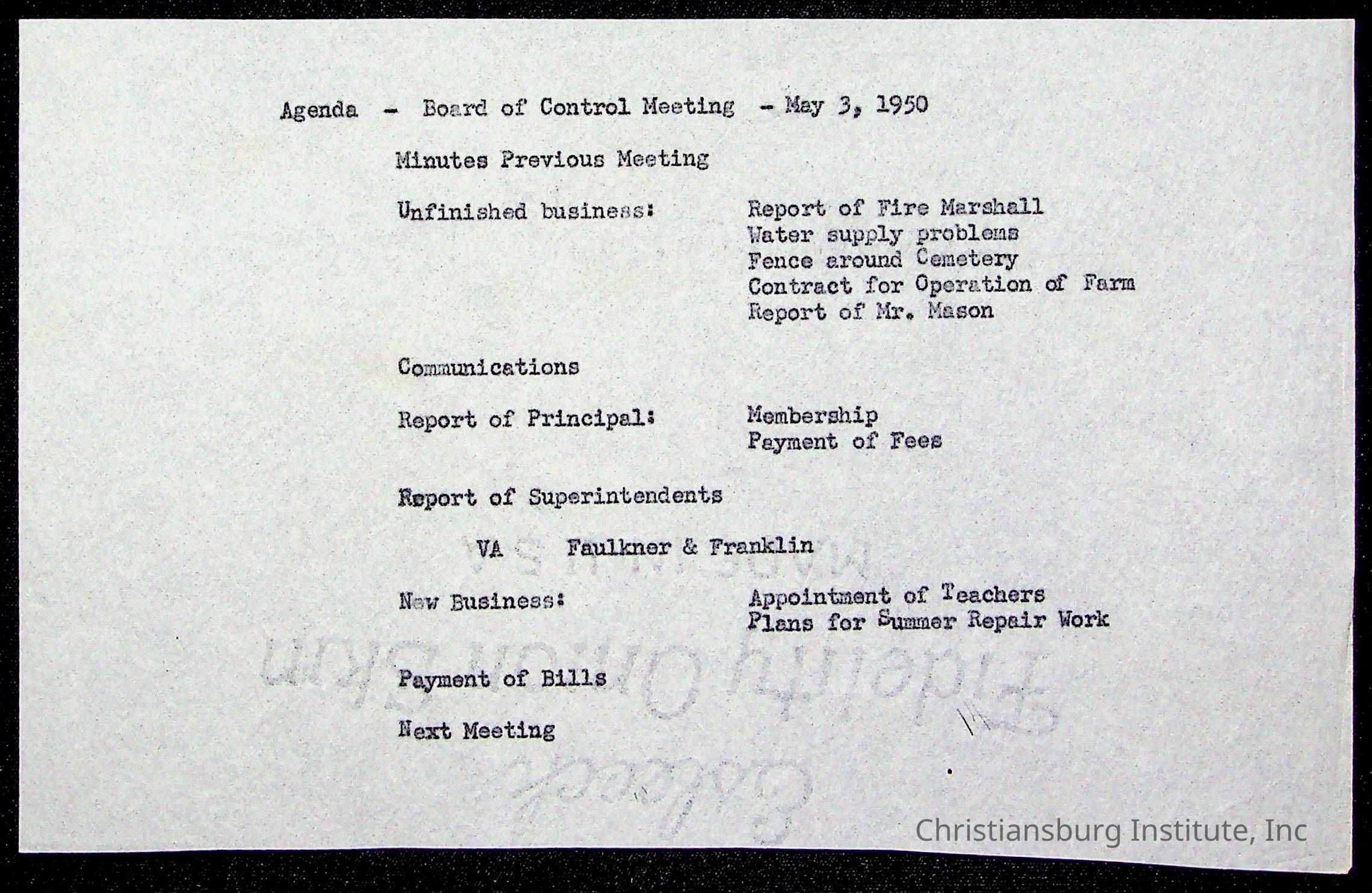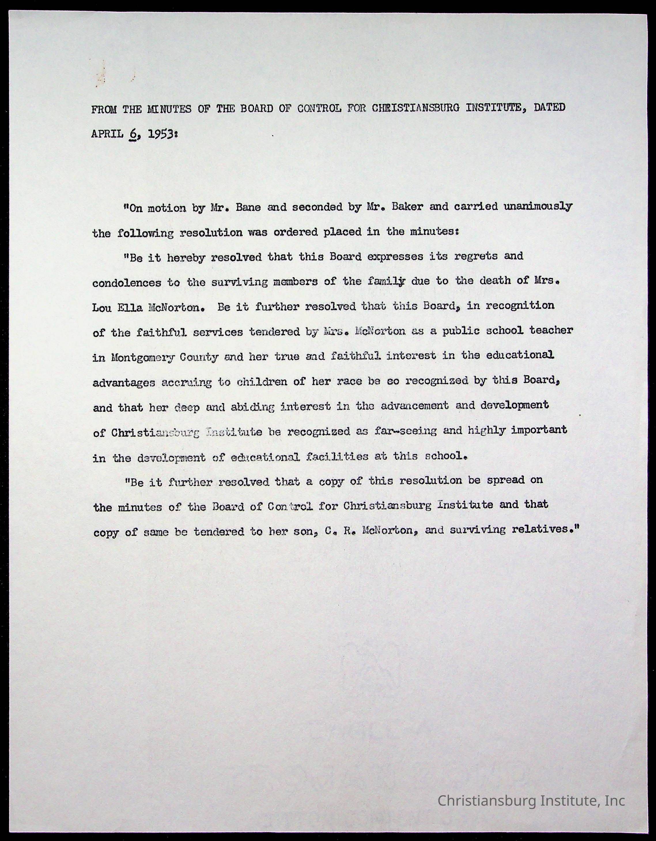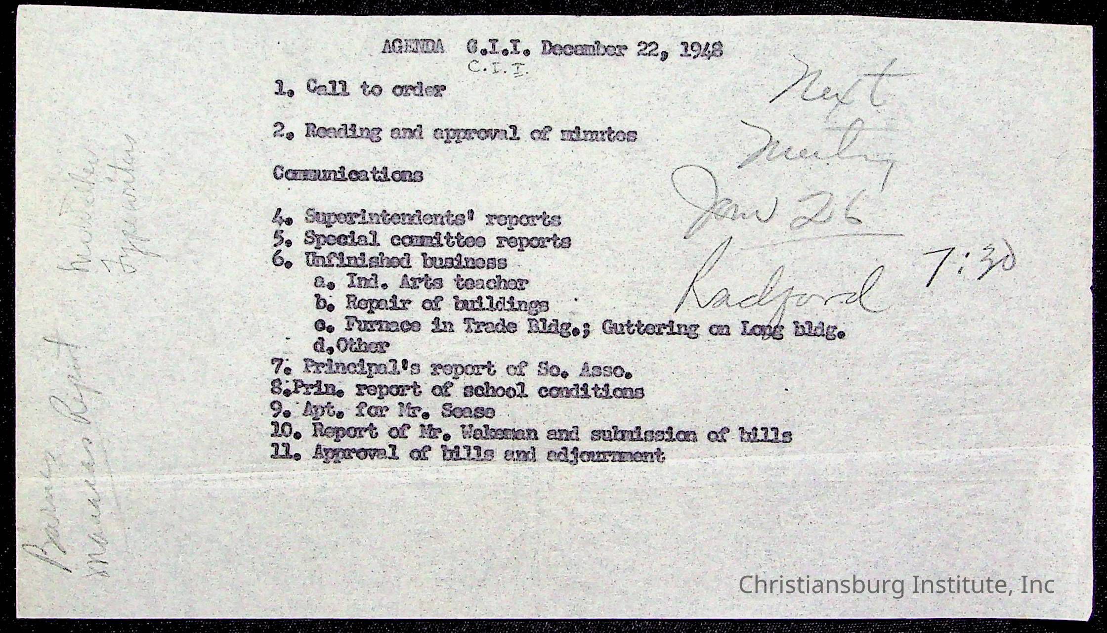 Copyright has been assigned to Christiansburg Institute Museum & Archives by Montgomery County Public Schools. For permission to publish materials created by the donor, contact CIMA@christiansburginstitute.com. Materials not created by Christiansburg Industrial Institute may still be under copyright.