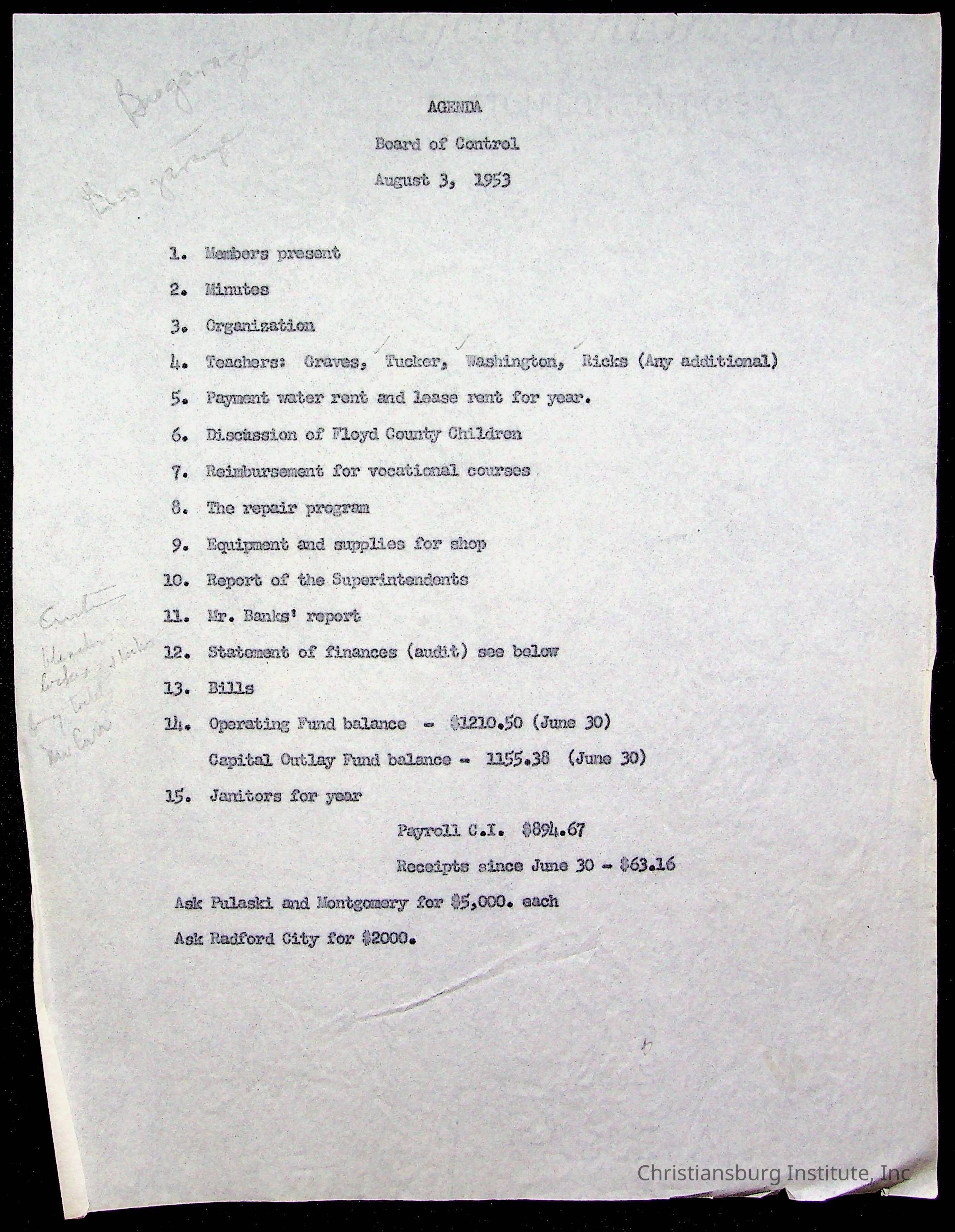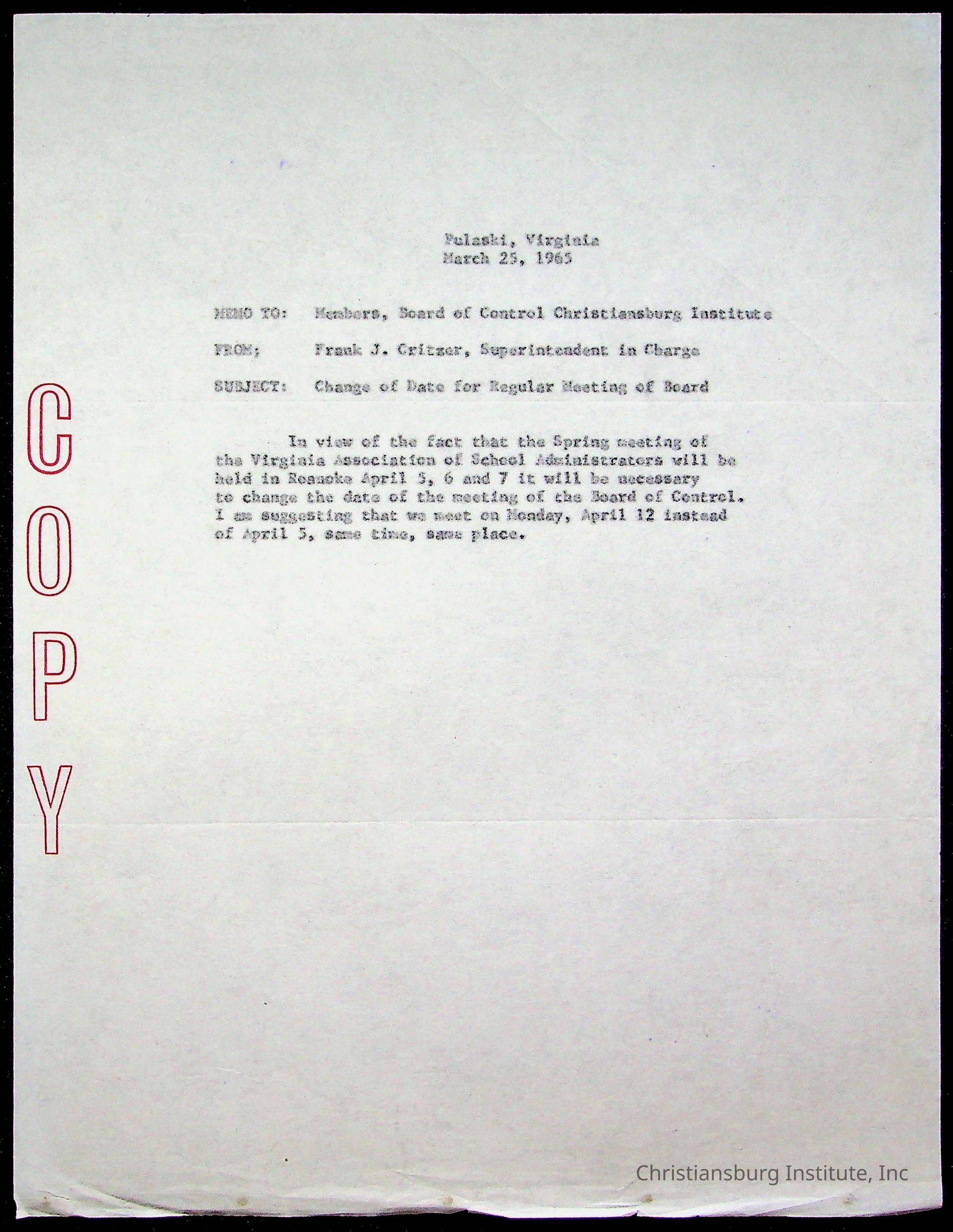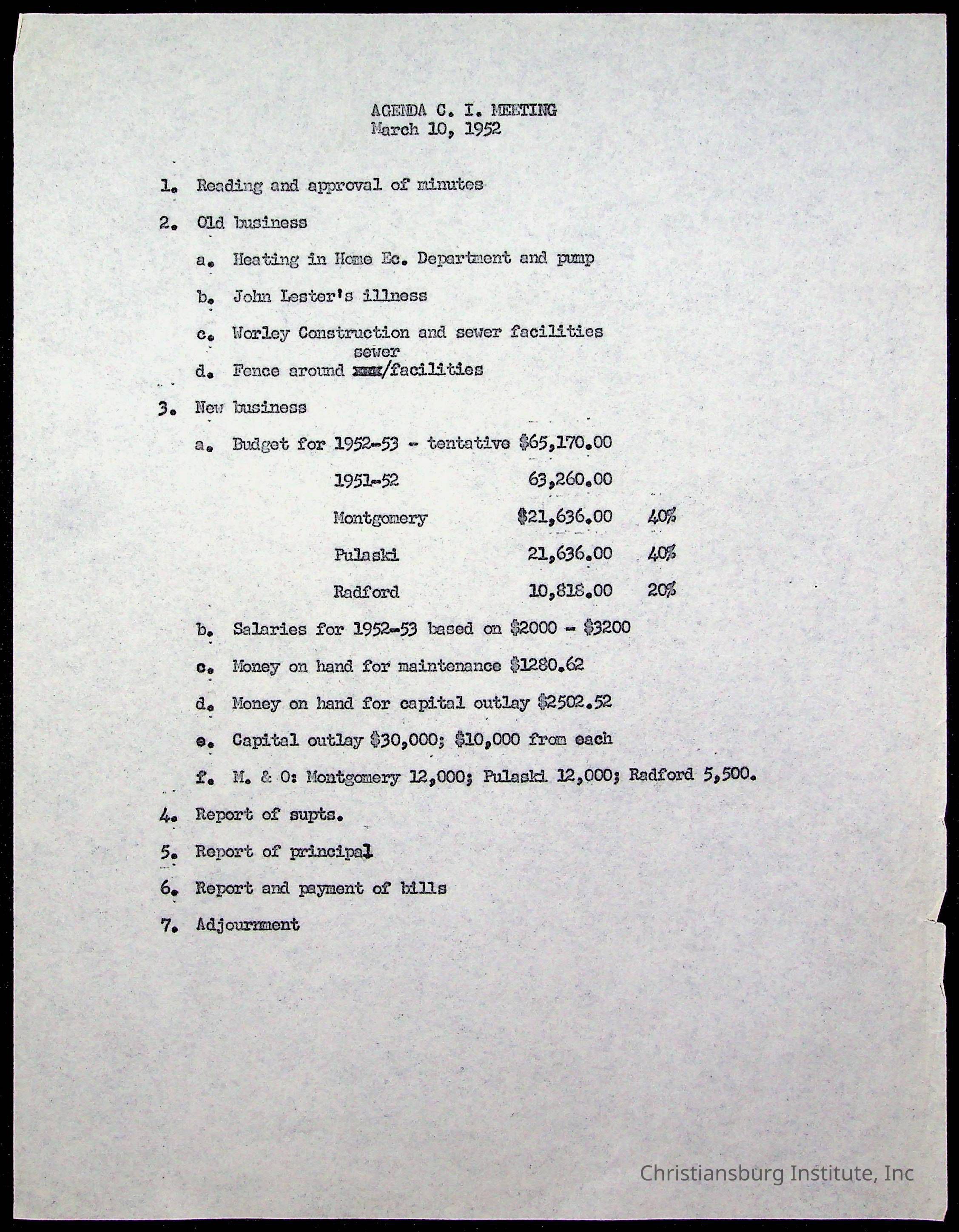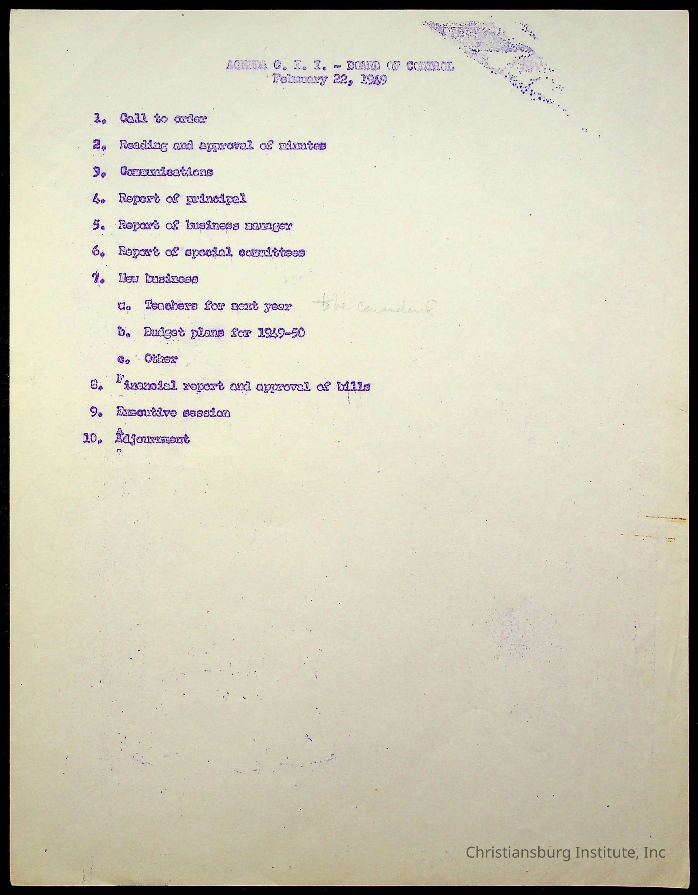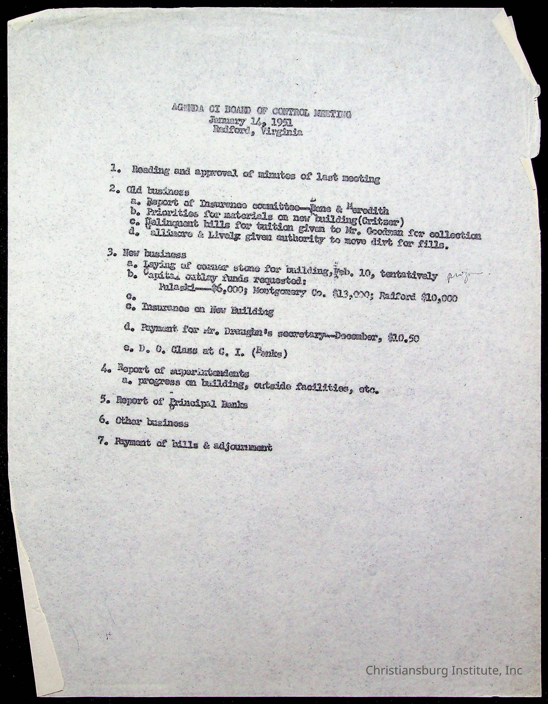 Copyright has been assigned to Christiansburg Institute Museum & Archives by Montgomery County Public Schools. For permission to publish materials created by the donor, contact CIMA@christiansburginstitute.com. Materials not created by Christiansburg Industrial Institute may still be under copyright.