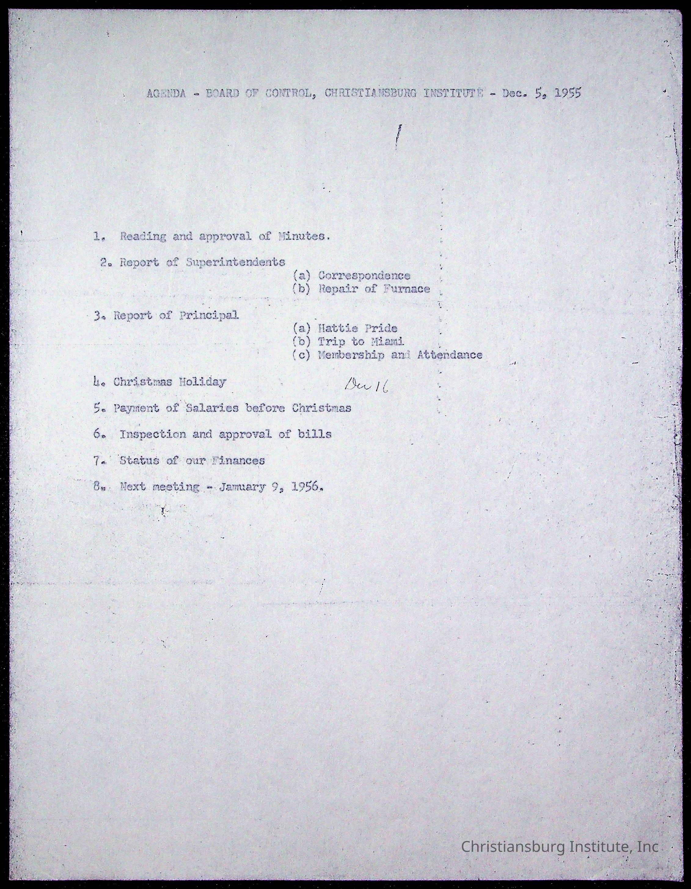 Christiansburg Institute Administrative Records Collection