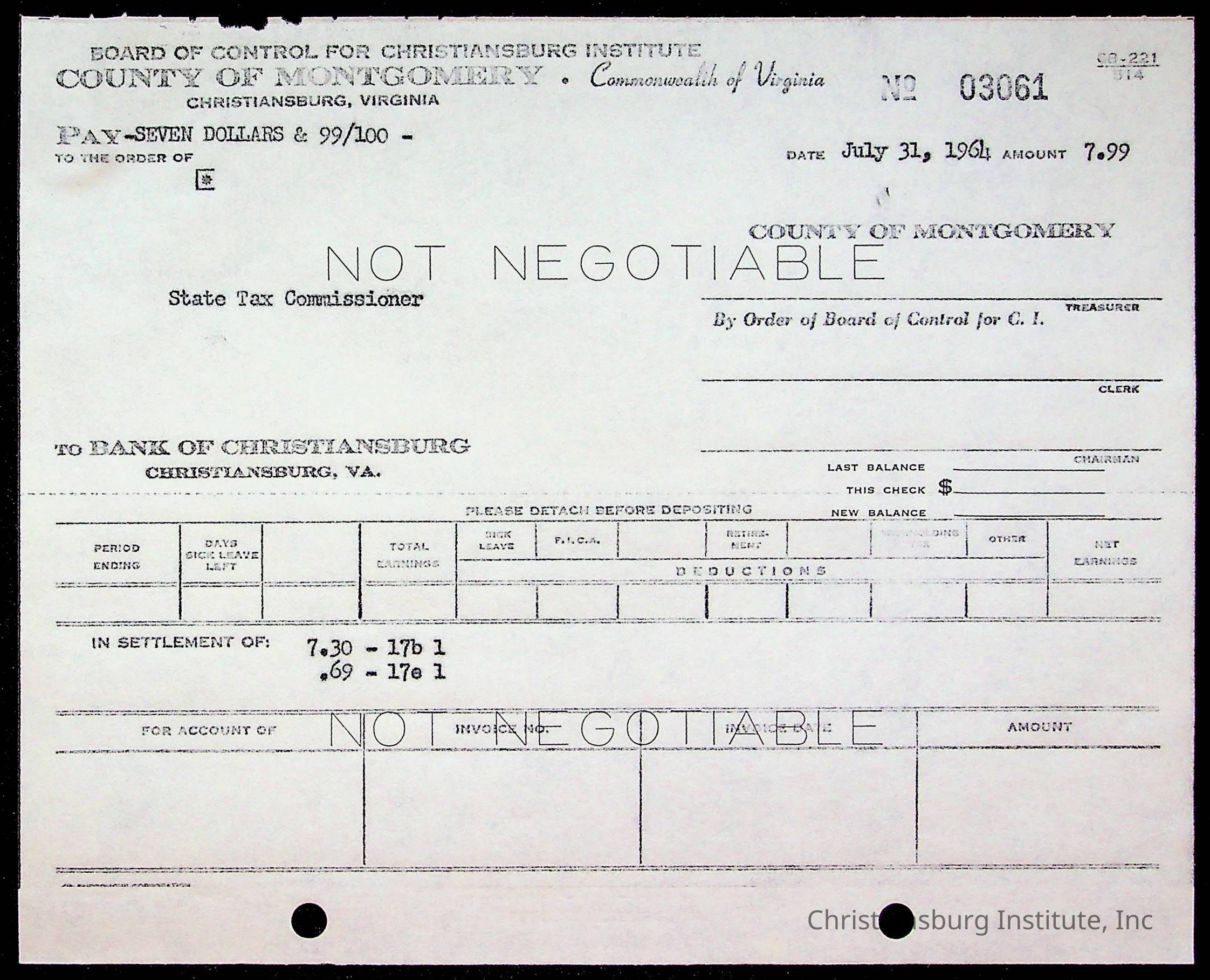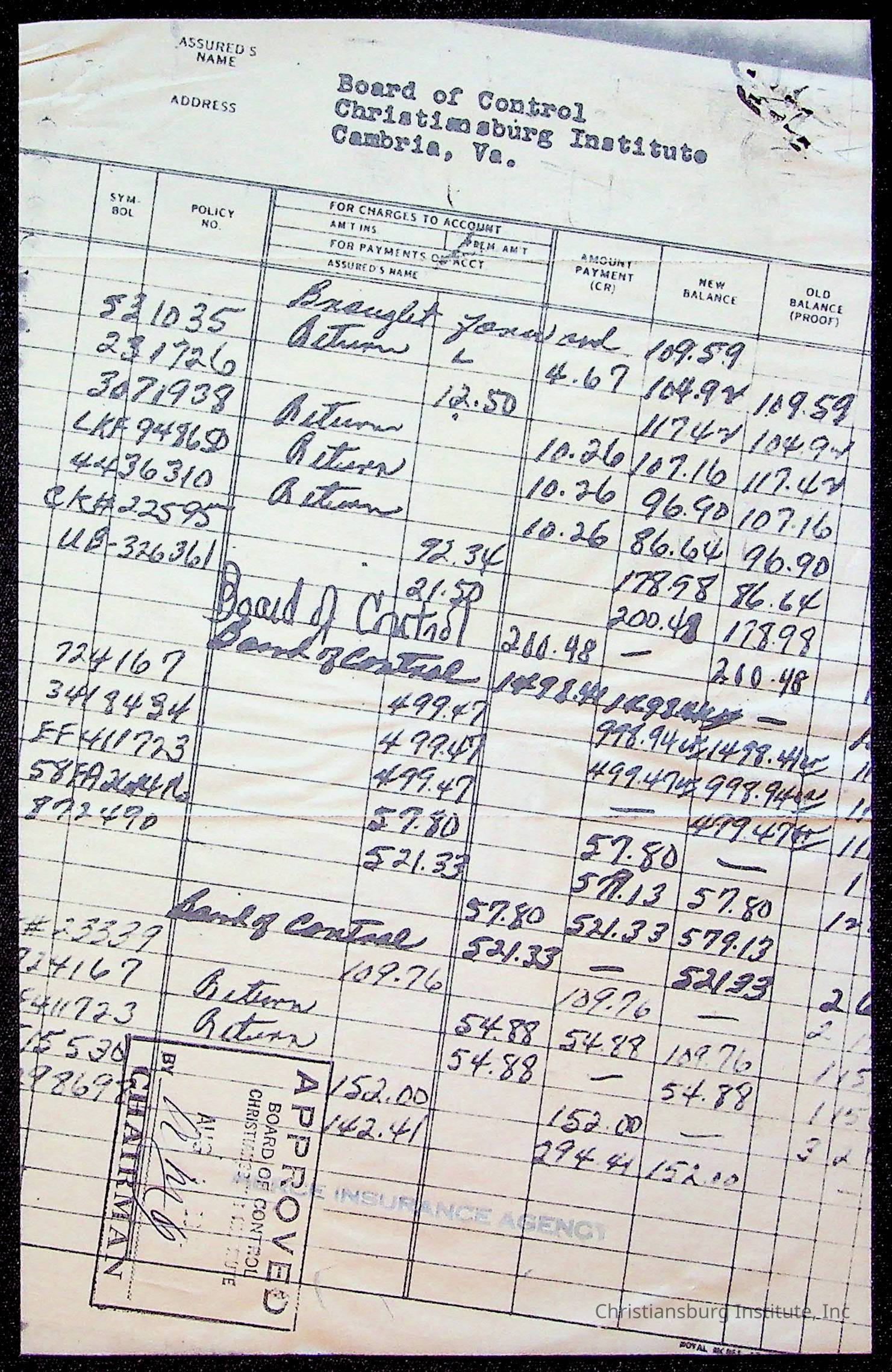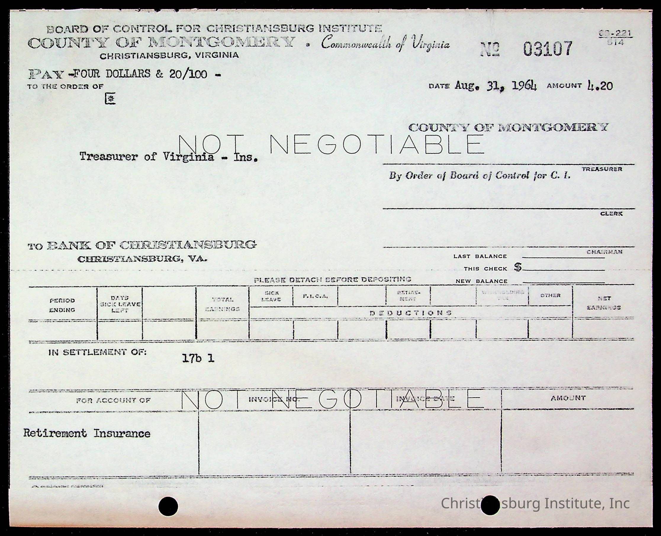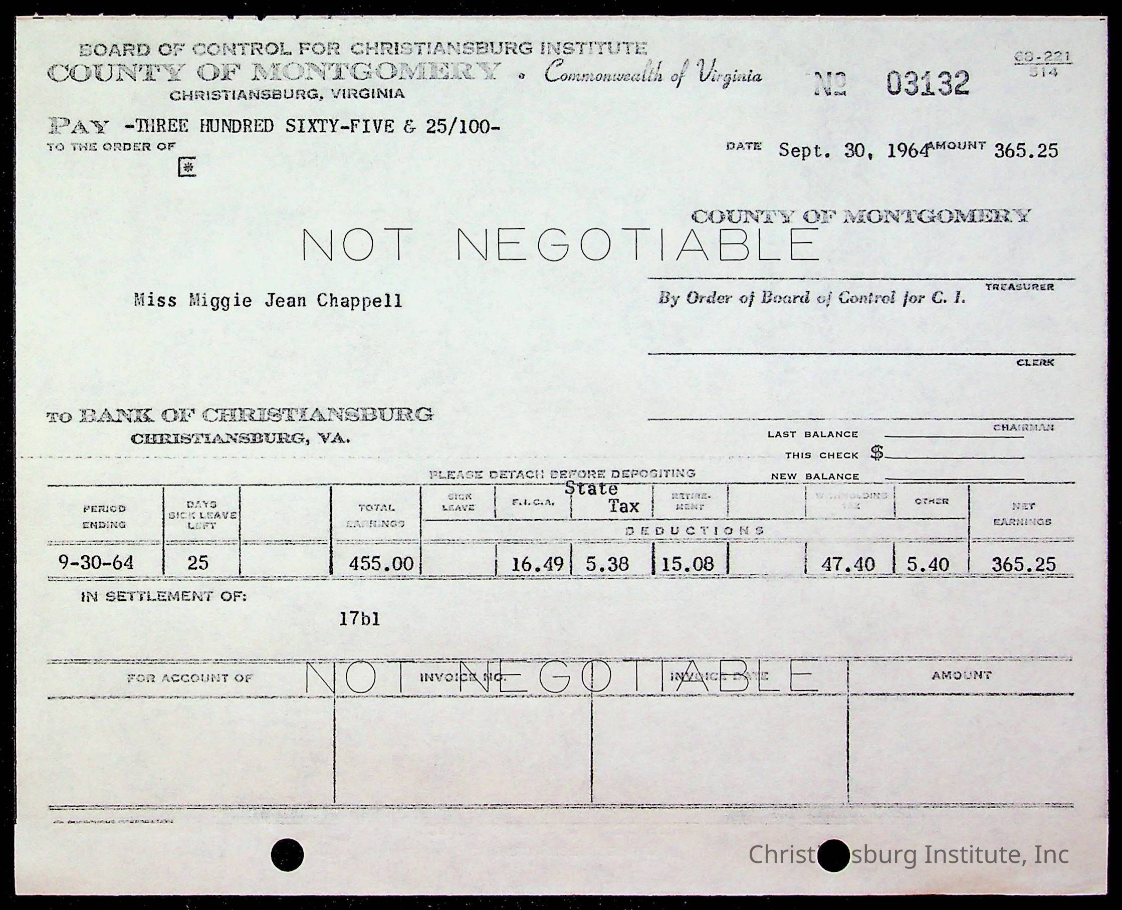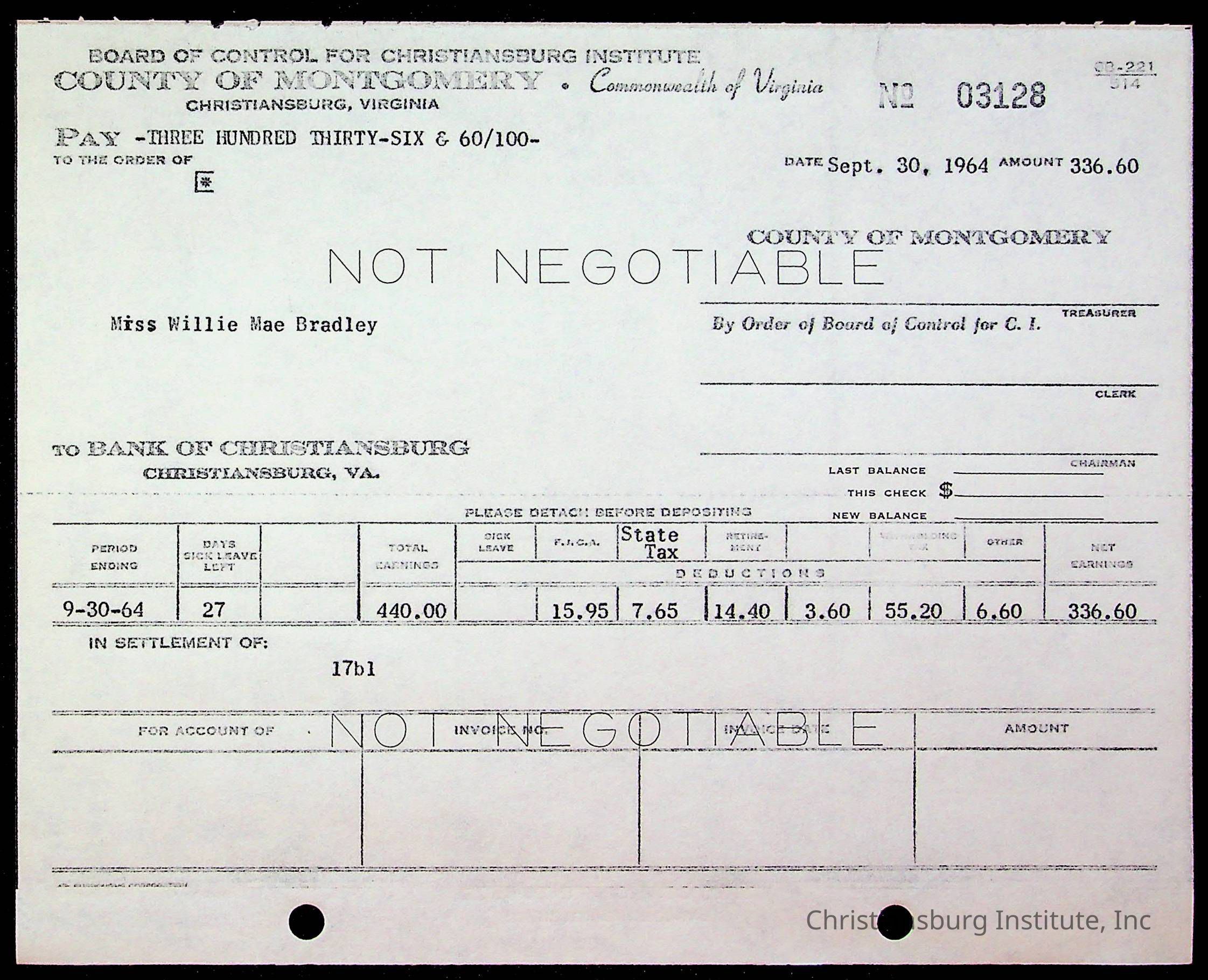 An archive of bills and receipts for the Board of Control of Christiansburg Institute and the Montgomery County School Board, circa 1960s.