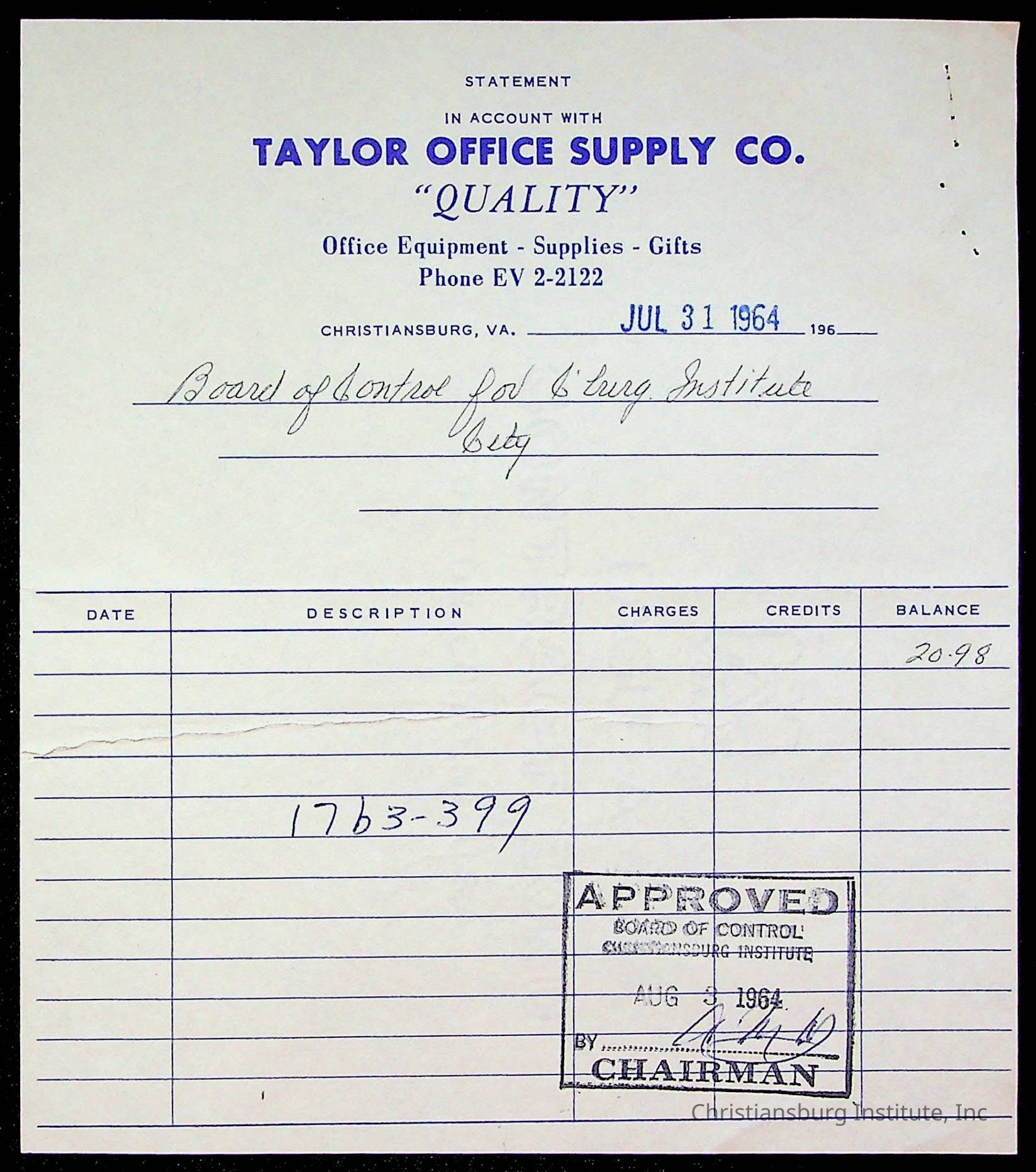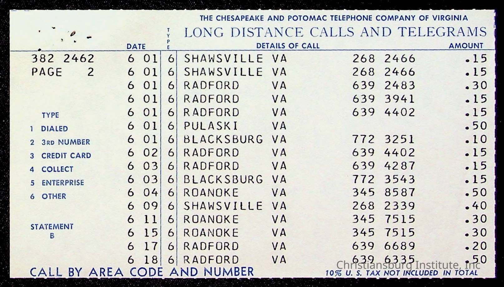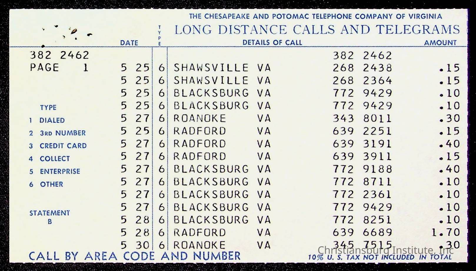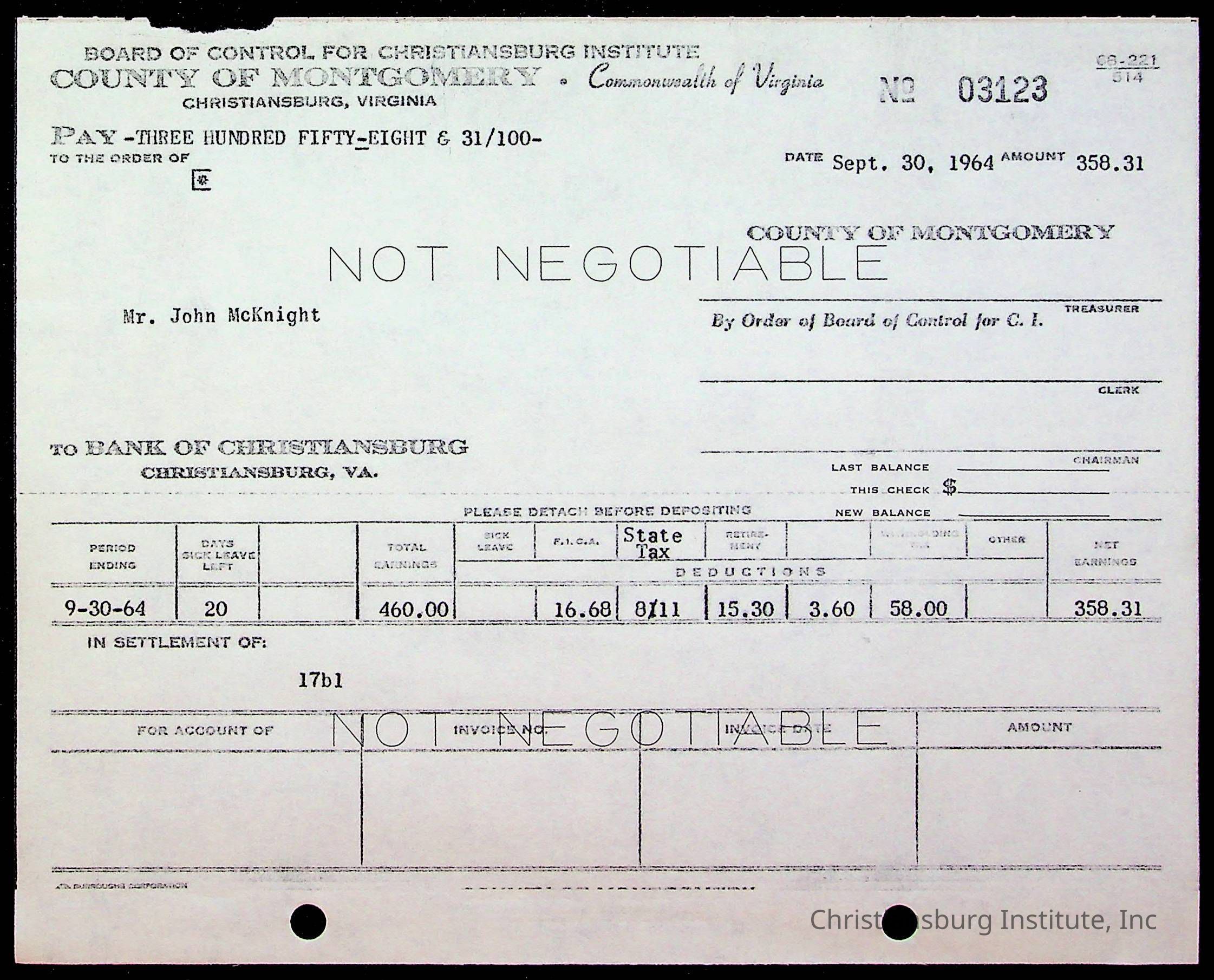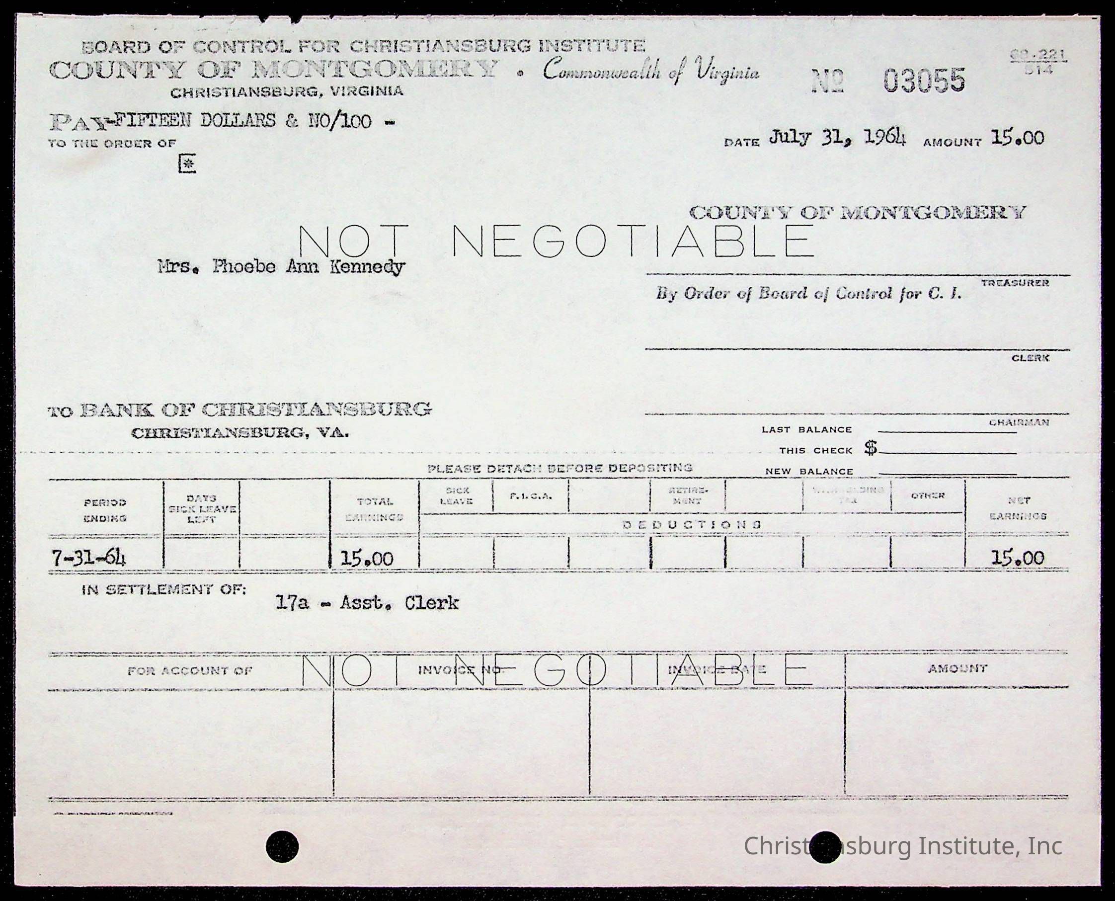 An archive of bills and receipts for the Board of Control of Christiansburg Institute and the Montgomery County School Board, circa 1960s.