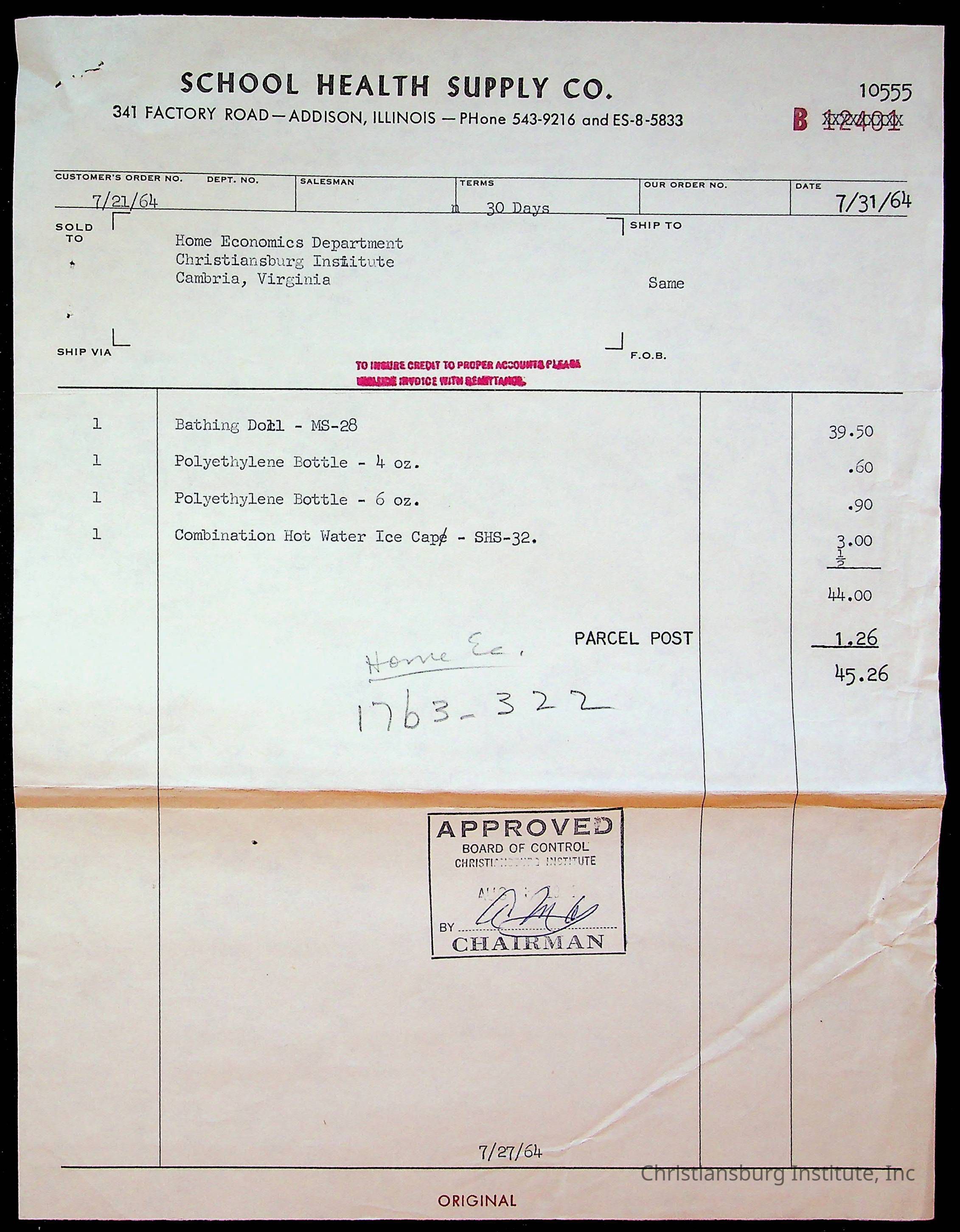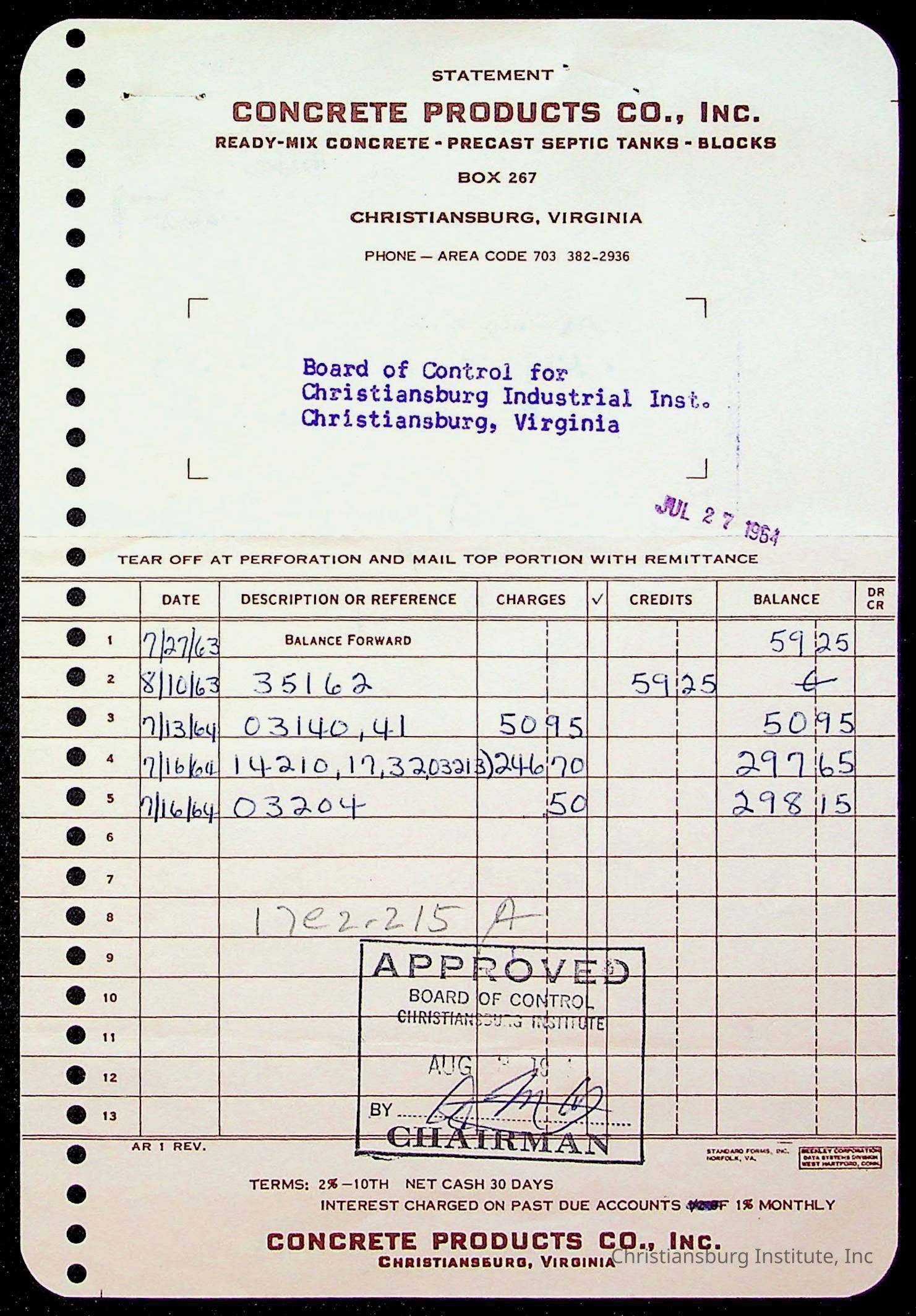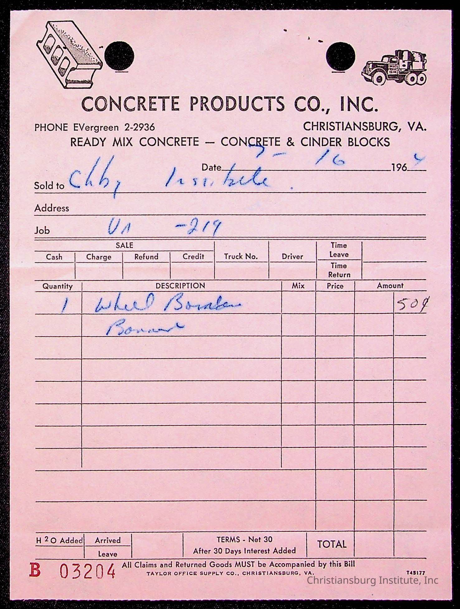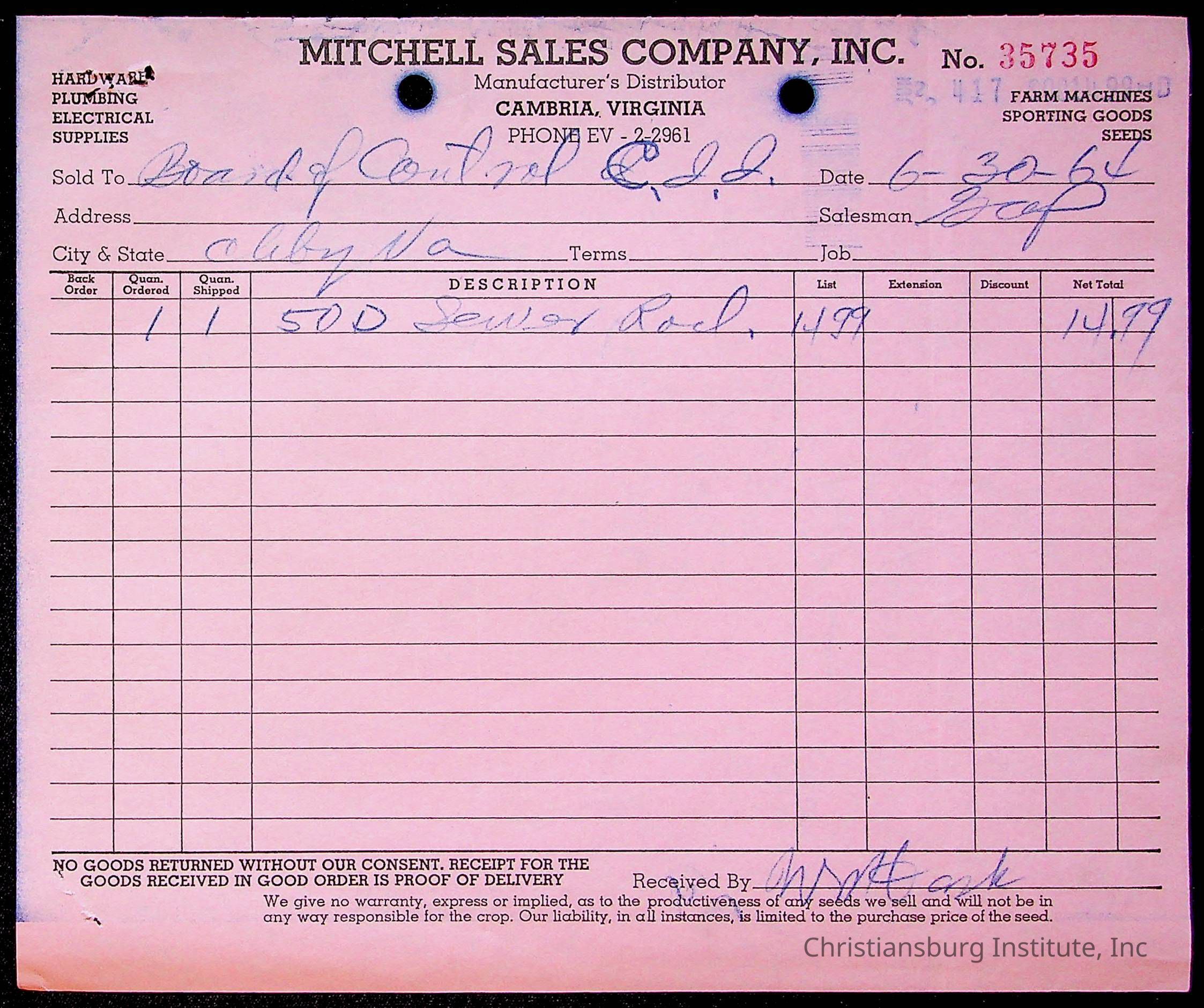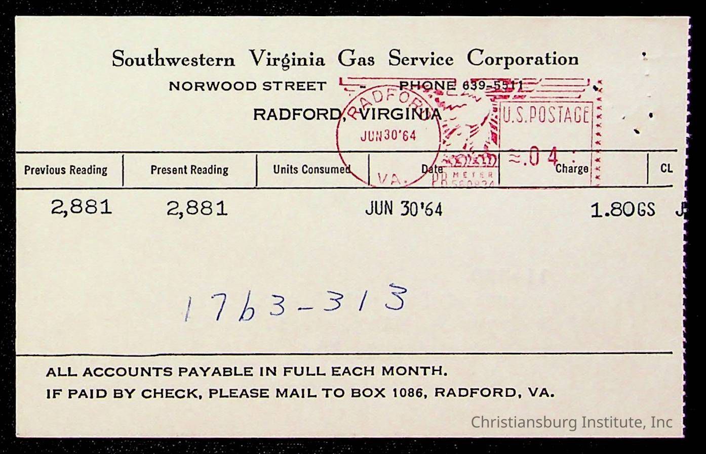 An archive of bills and receipts for the Board of Control of Christiansburg Institute and the Montgomery County School Board, circa 1960s.