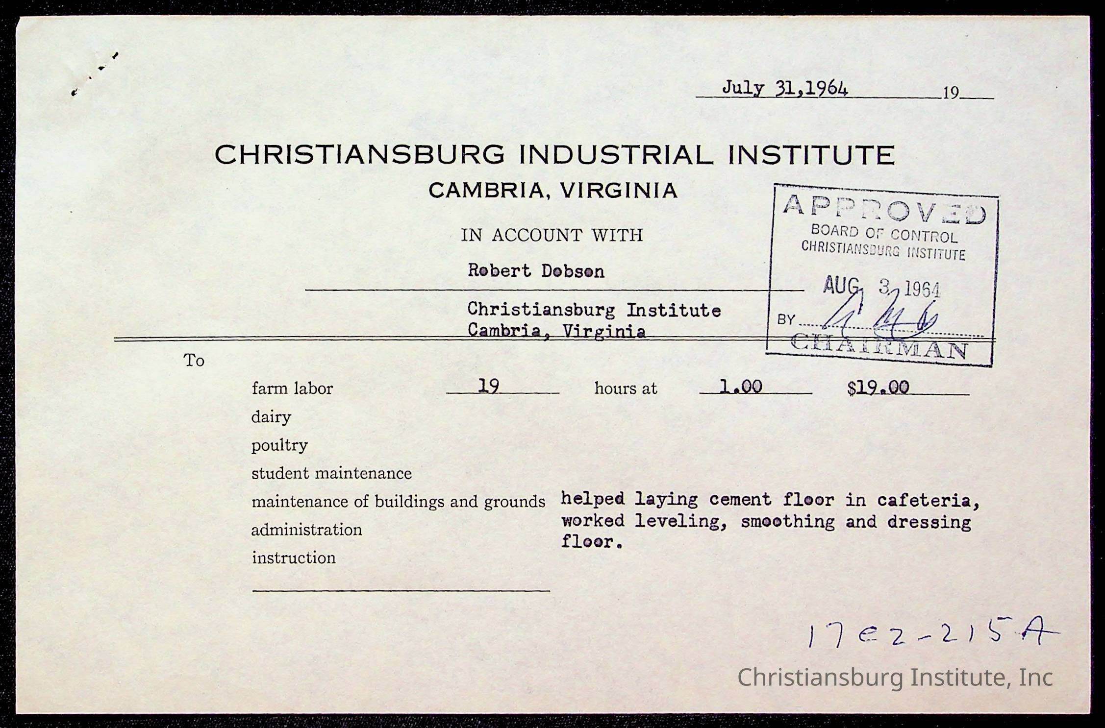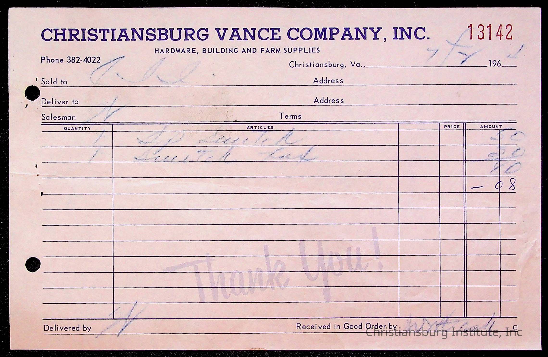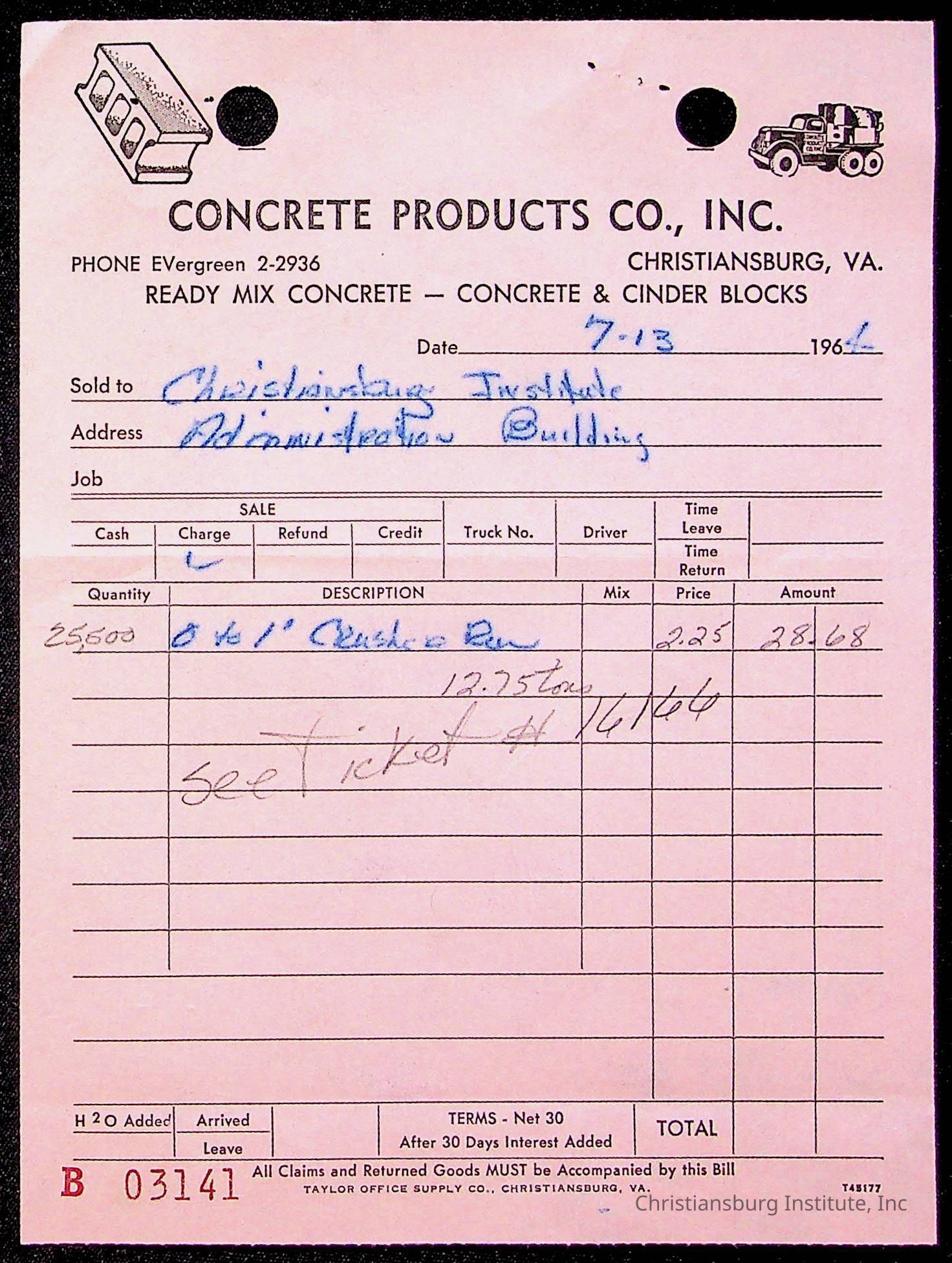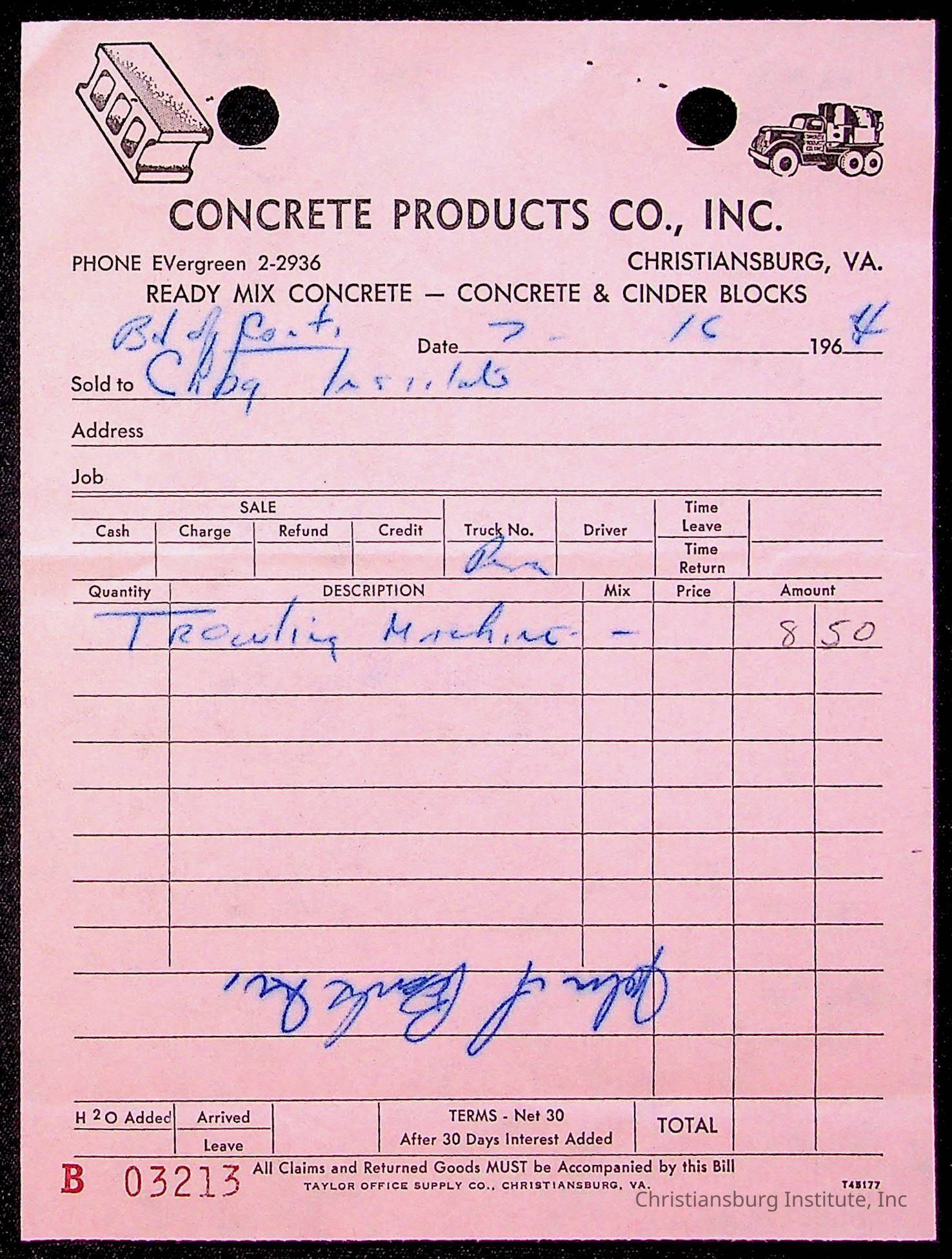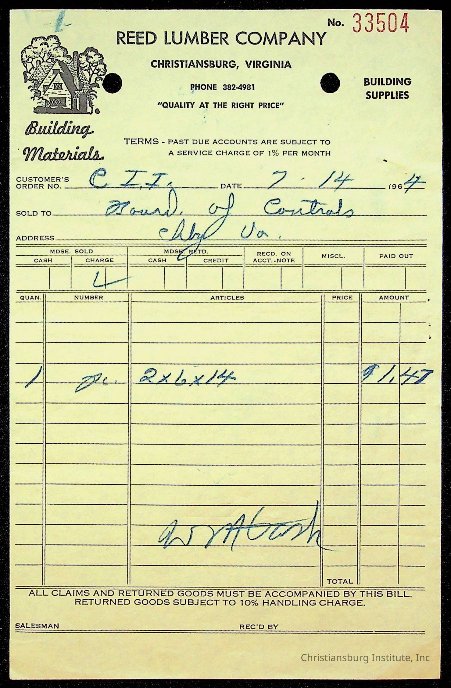 An archive of bills and receipts for the Board of Control of Christiansburg Institute and the Montgomery County School Board, circa 1960s.