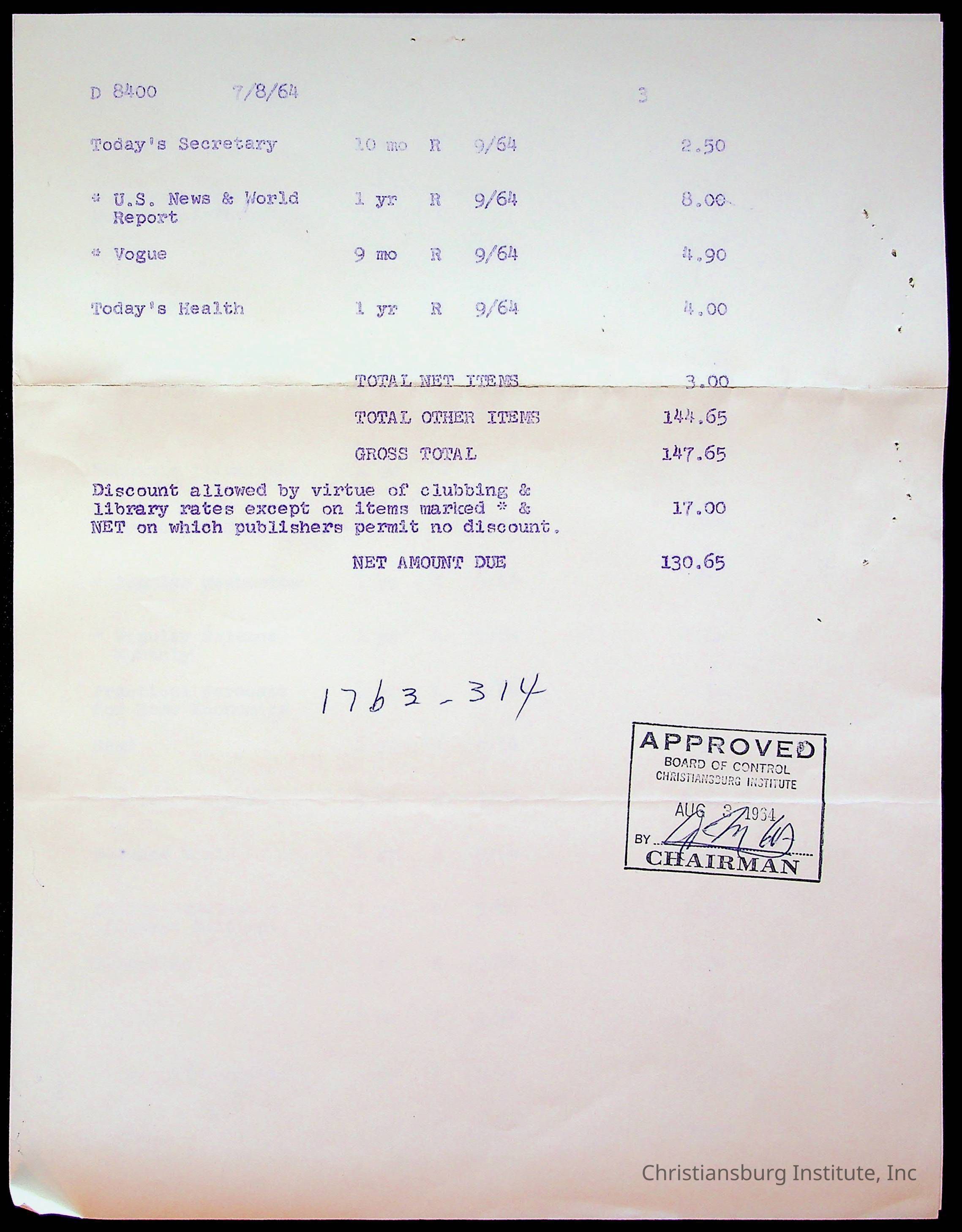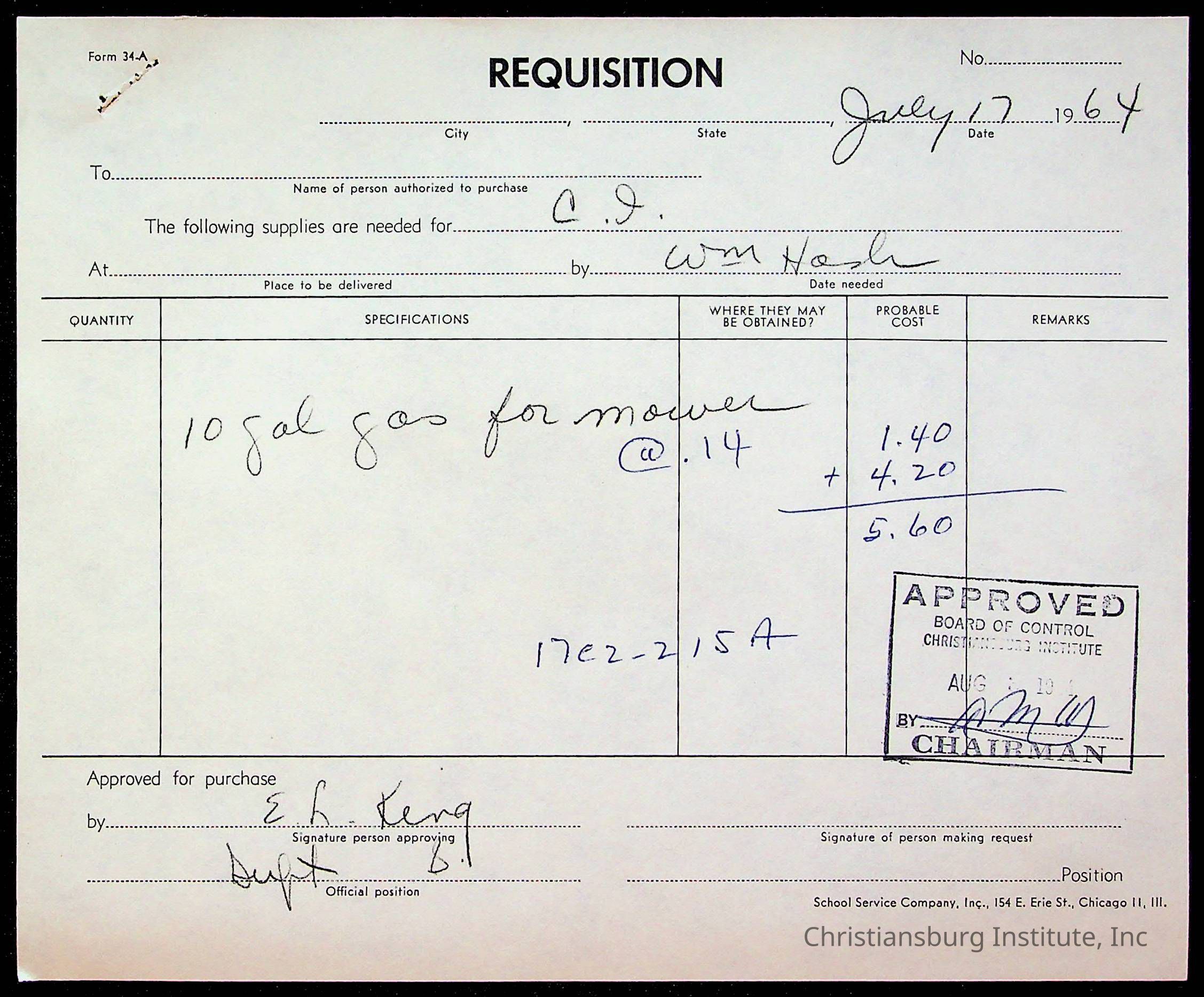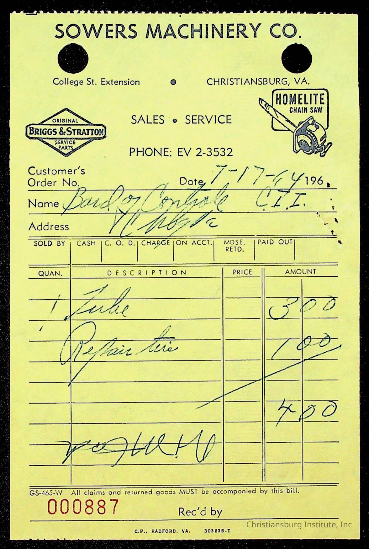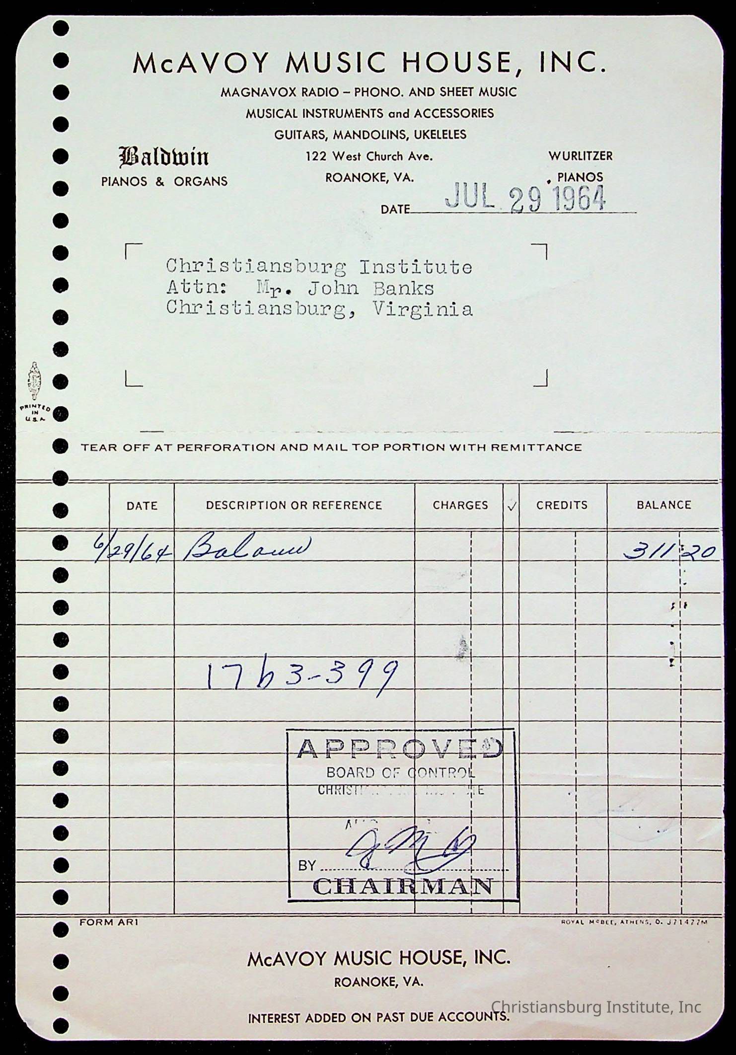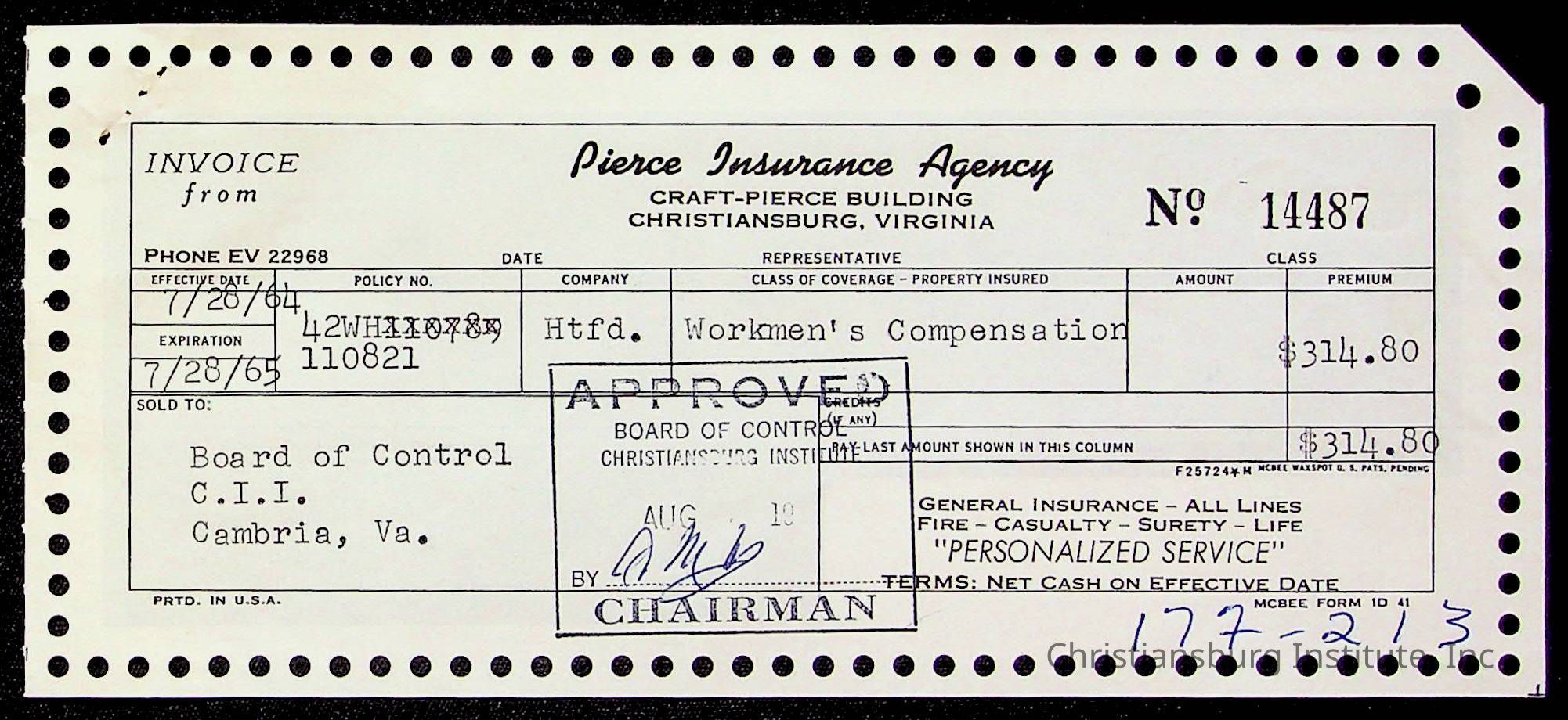 An archive of bills and receipts for the Board of Control of Christiansburg Institute and the Montgomery County School Board, circa 1960s.