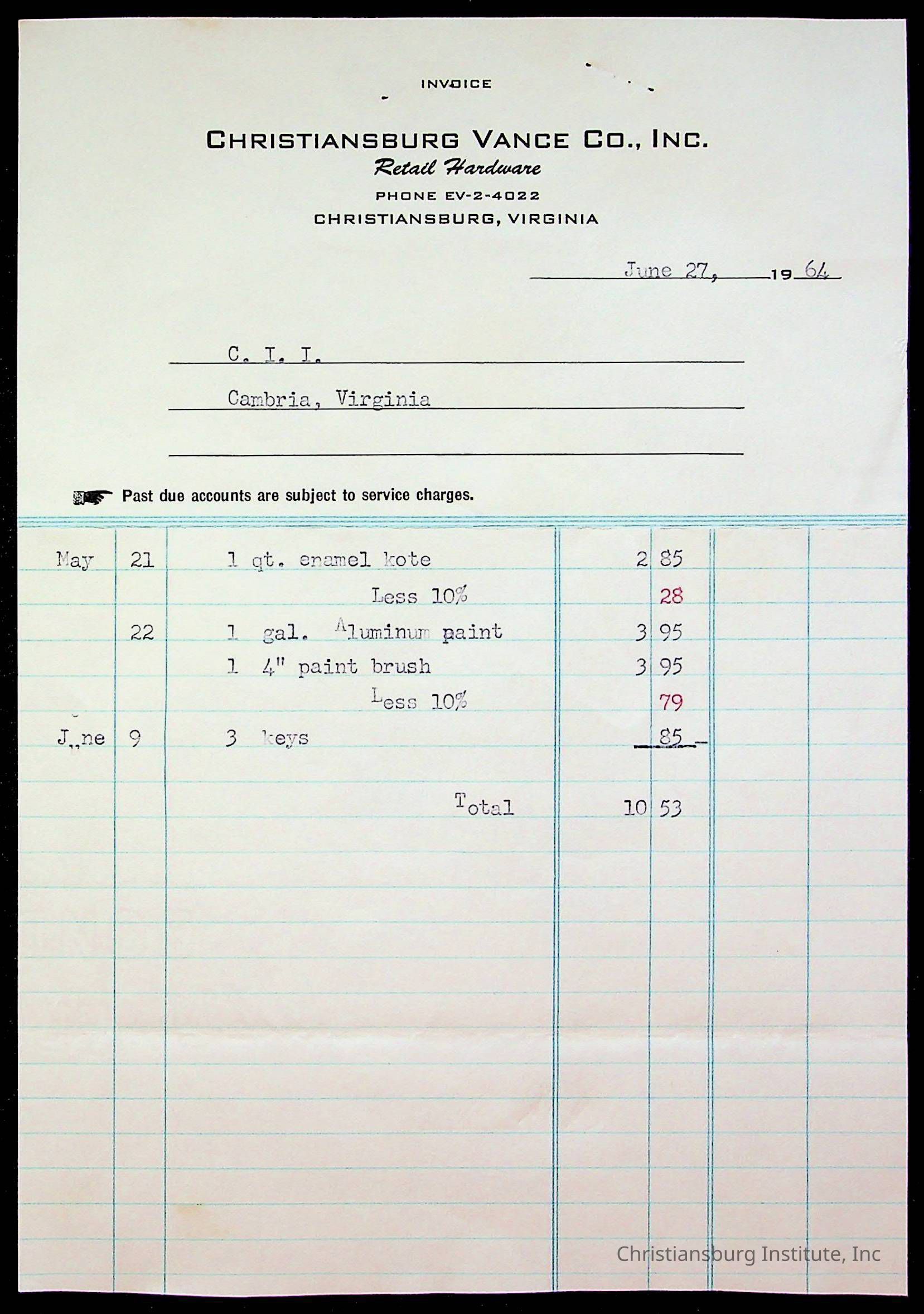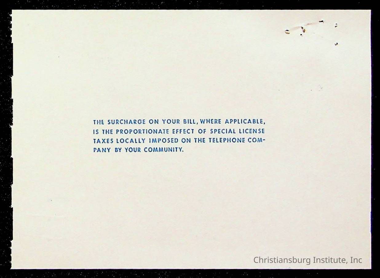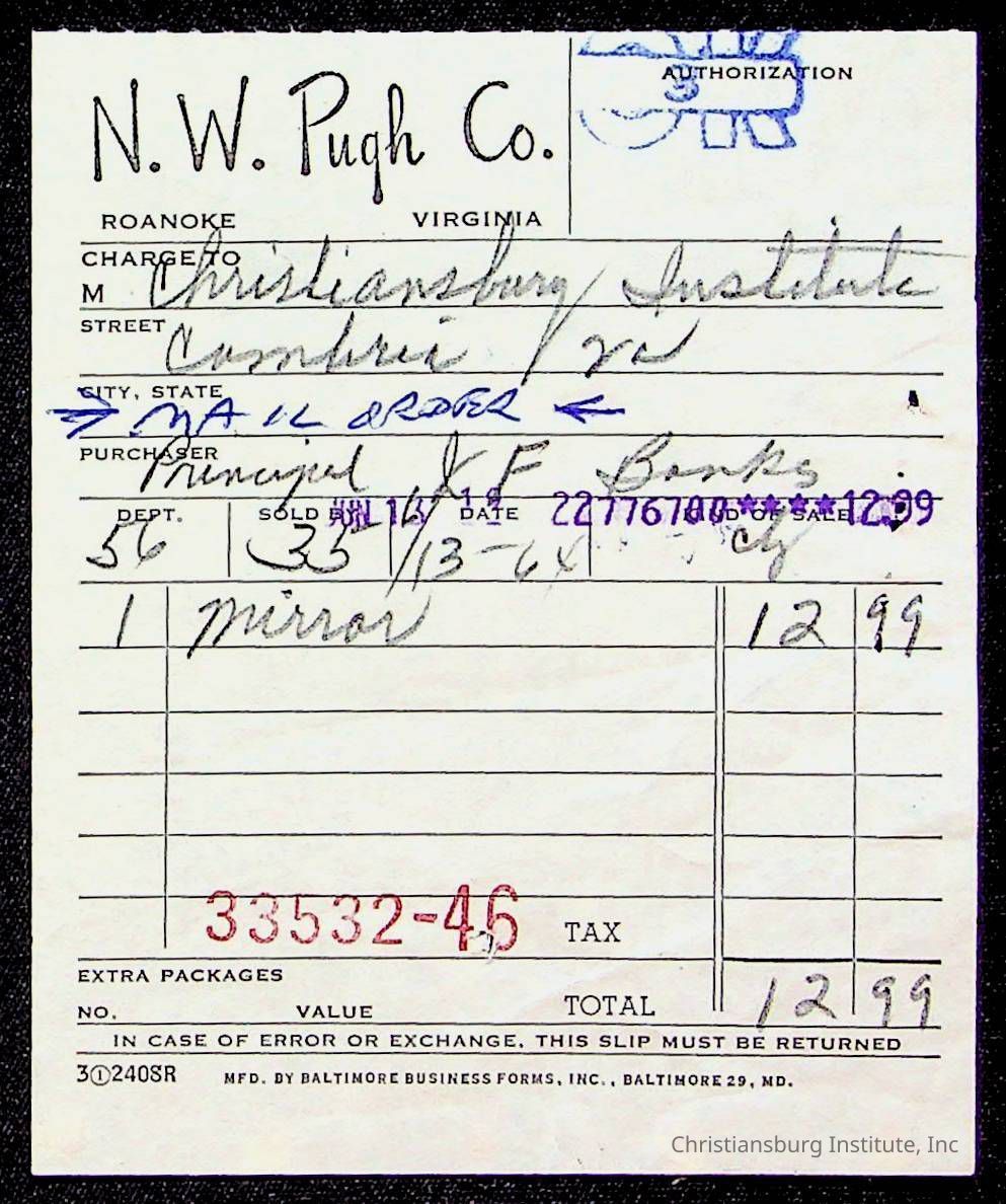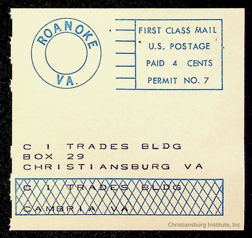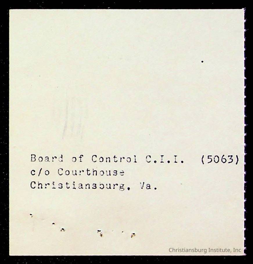 Copyright has been assigned to Christiansburg Institute Museum & Archives by Montgomery County Public Schools. For permission to publish materials created by the donor, contact CIMA@christiansburginstitute.com. Materials not created by Christiansburg Industrial Institute may still be under copyright.