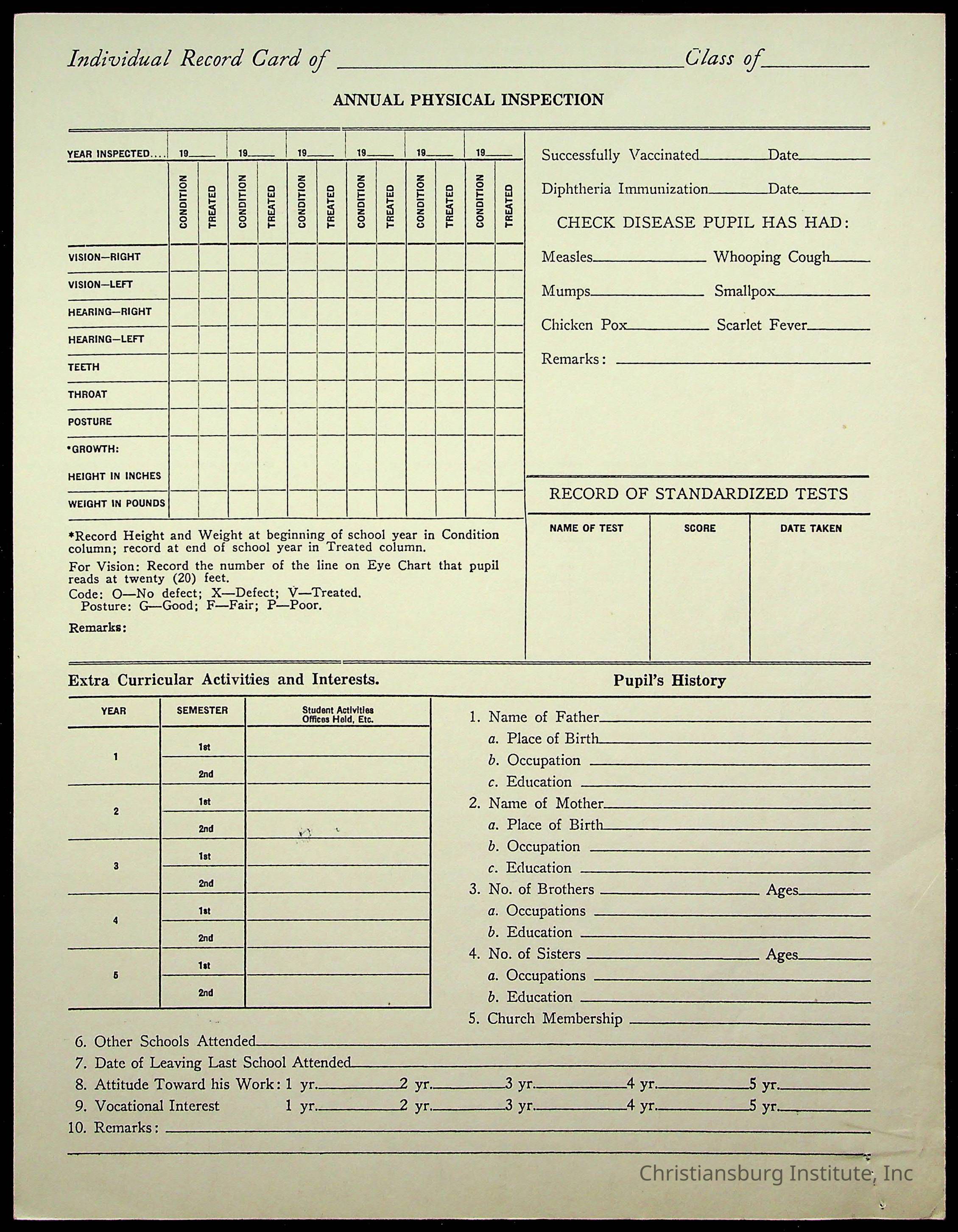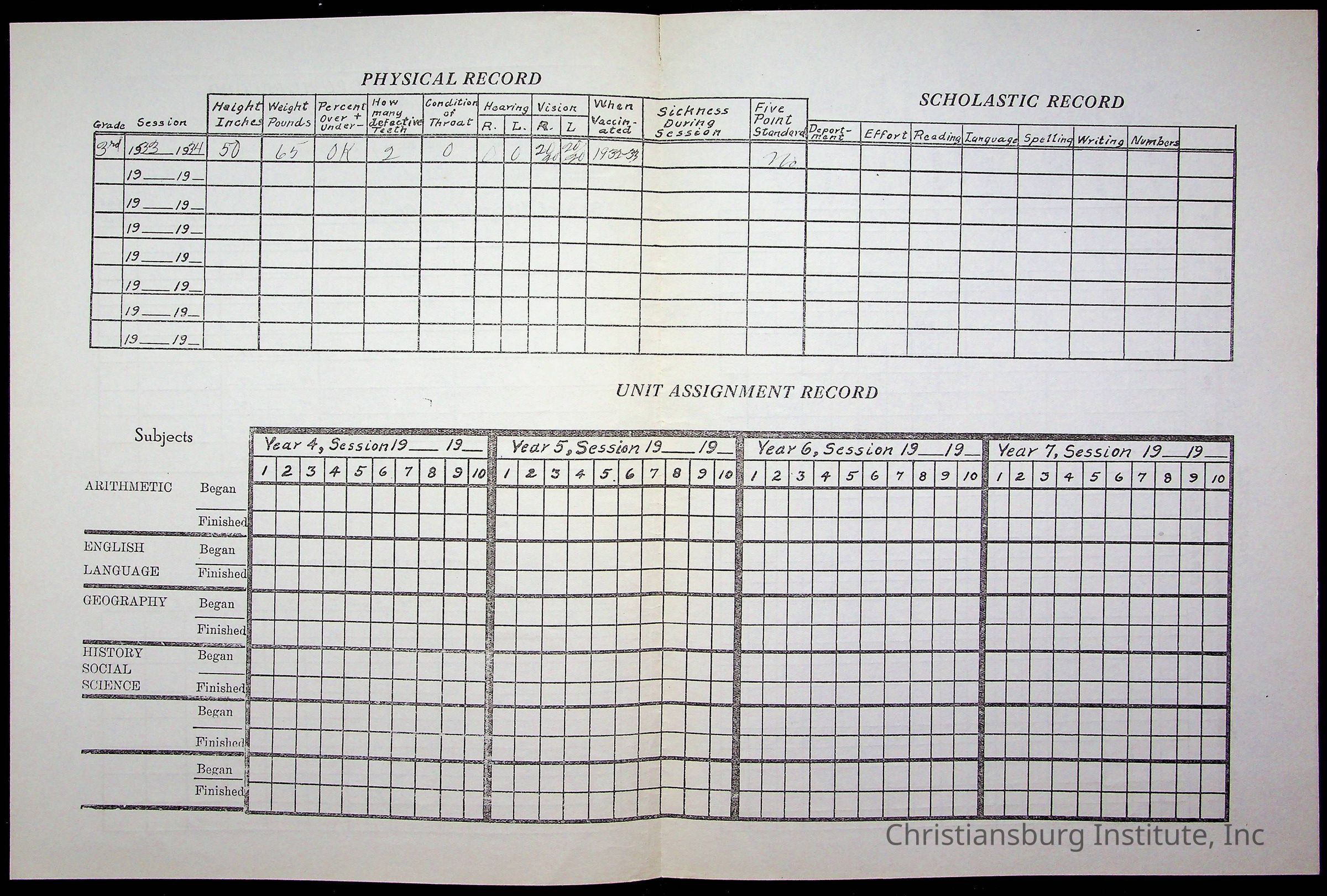 Christiansburg Institute Student Records Collection