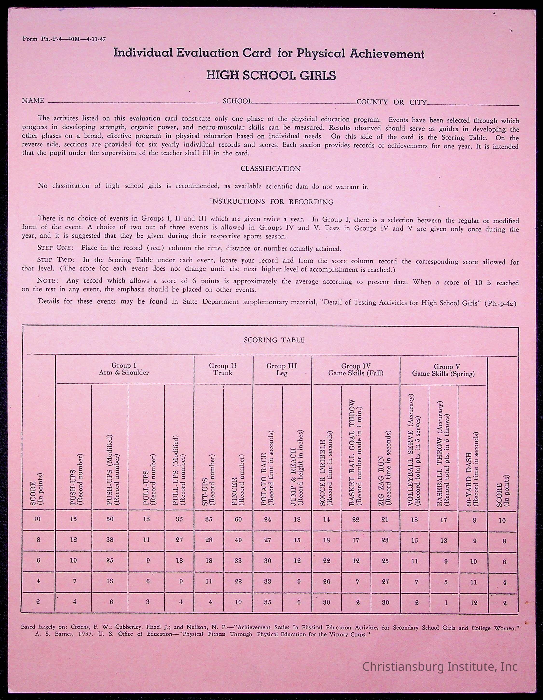 Copyright has been assigned to Christiansburg Institute Museum & Archives by Montgomery County Public Schools. For permission to publish materials created by the donor, contact CIMA@christiansburginstitute.com. Materials not created by Christiansburg Industrial Institute may still be under copyright.