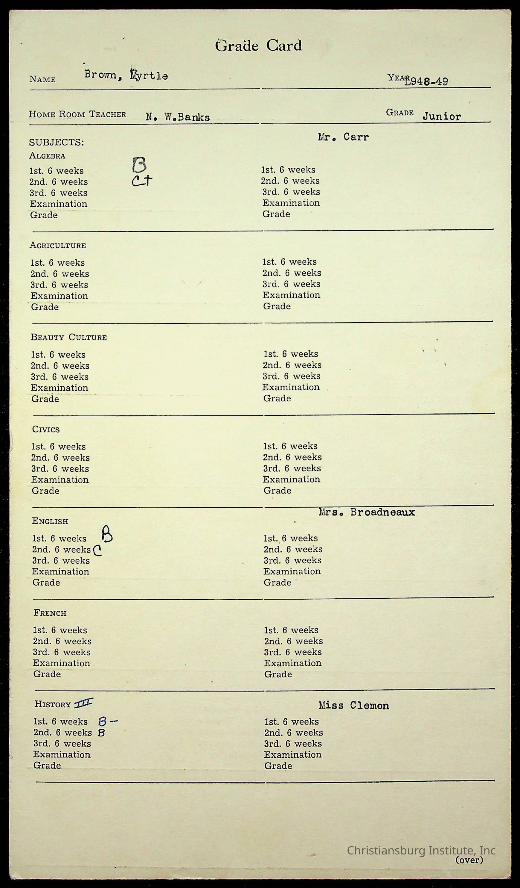 Christiansburg Institute, Montgomery County Public Schools, Brown, Myrtle