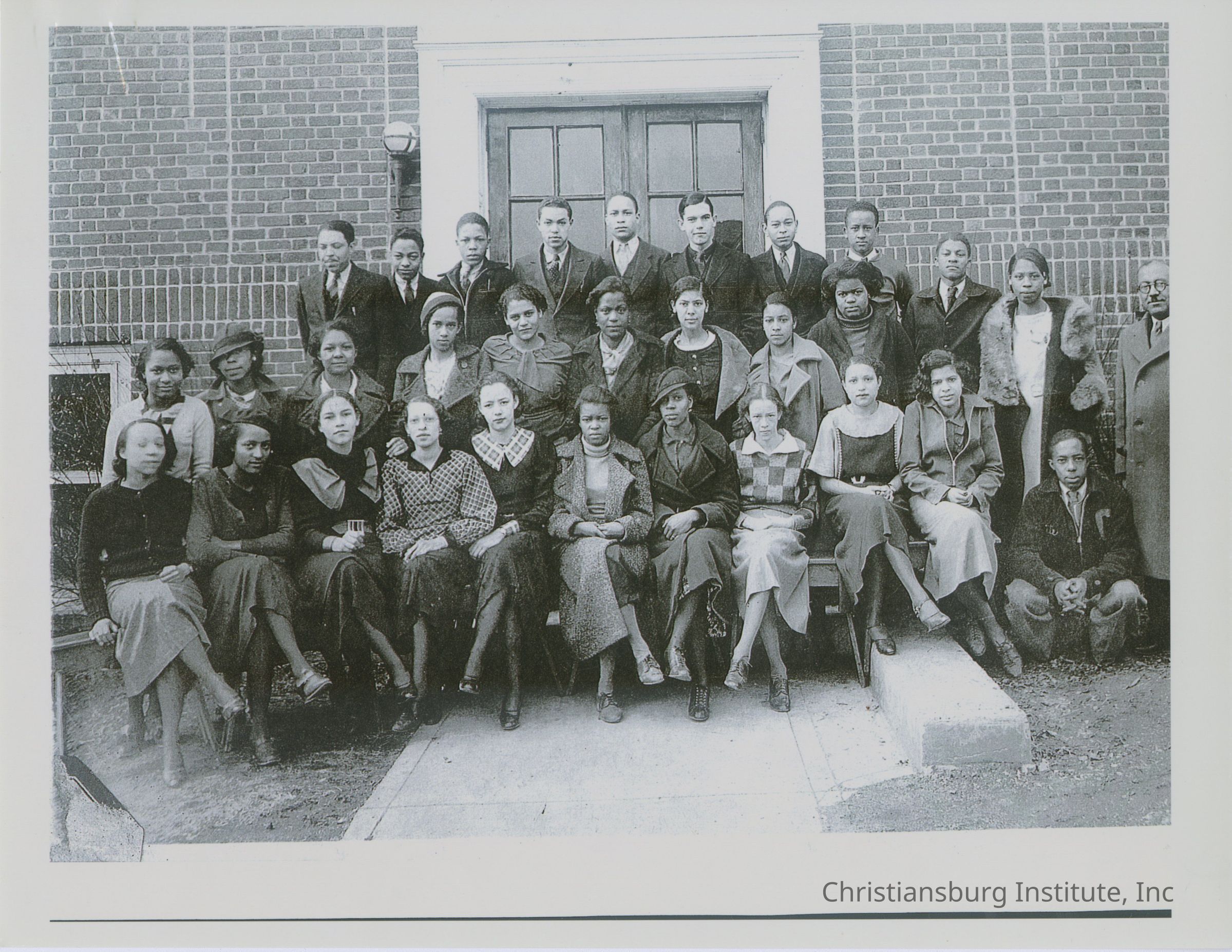 A photograph of principal Abraham Walker with students from Christiansburg Institute dated 1940.
