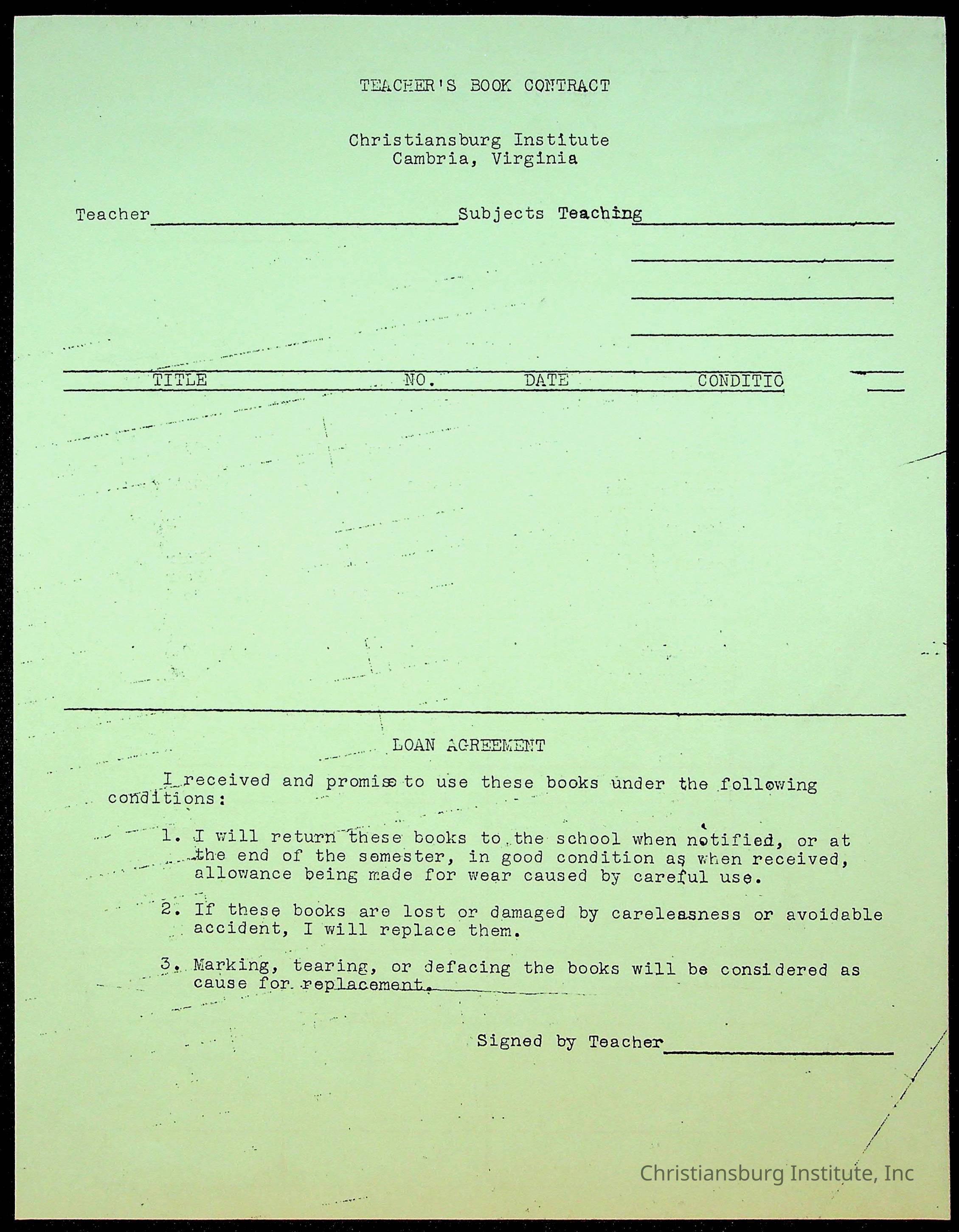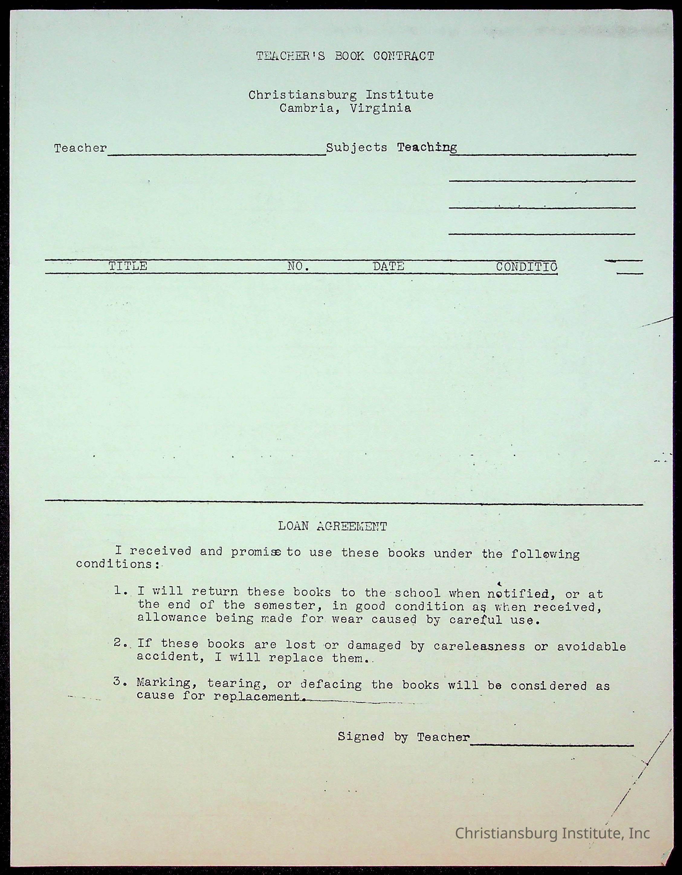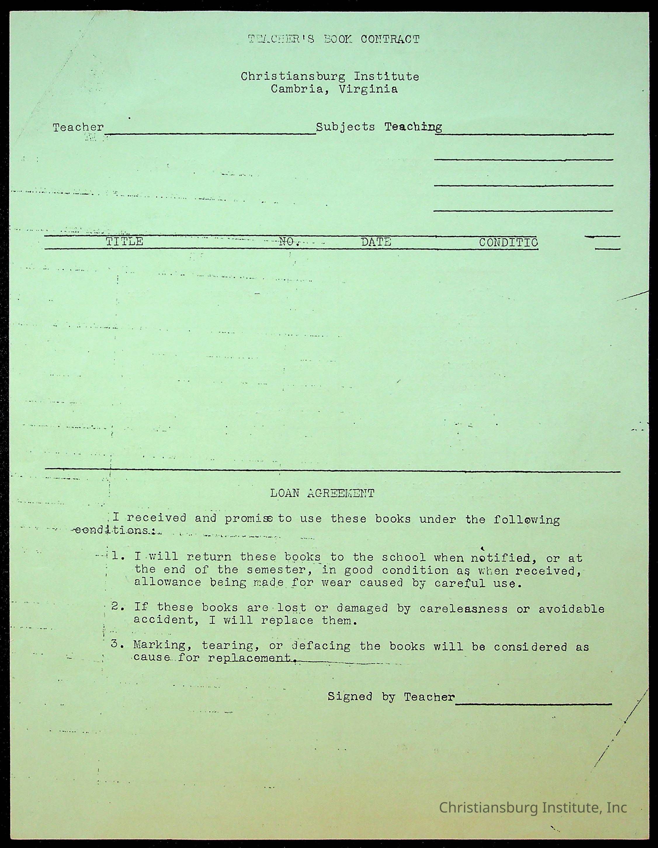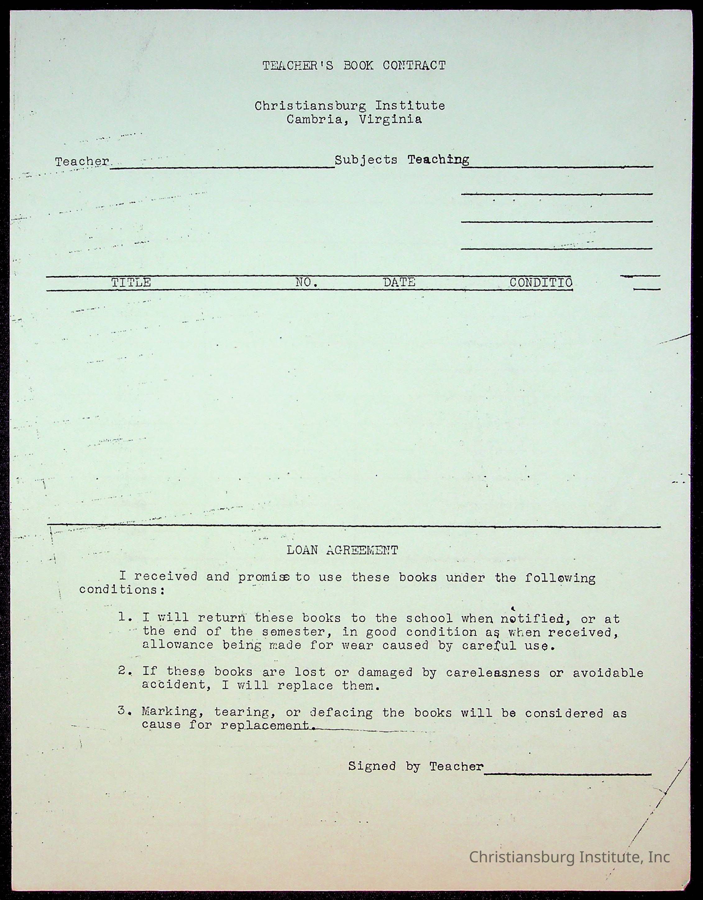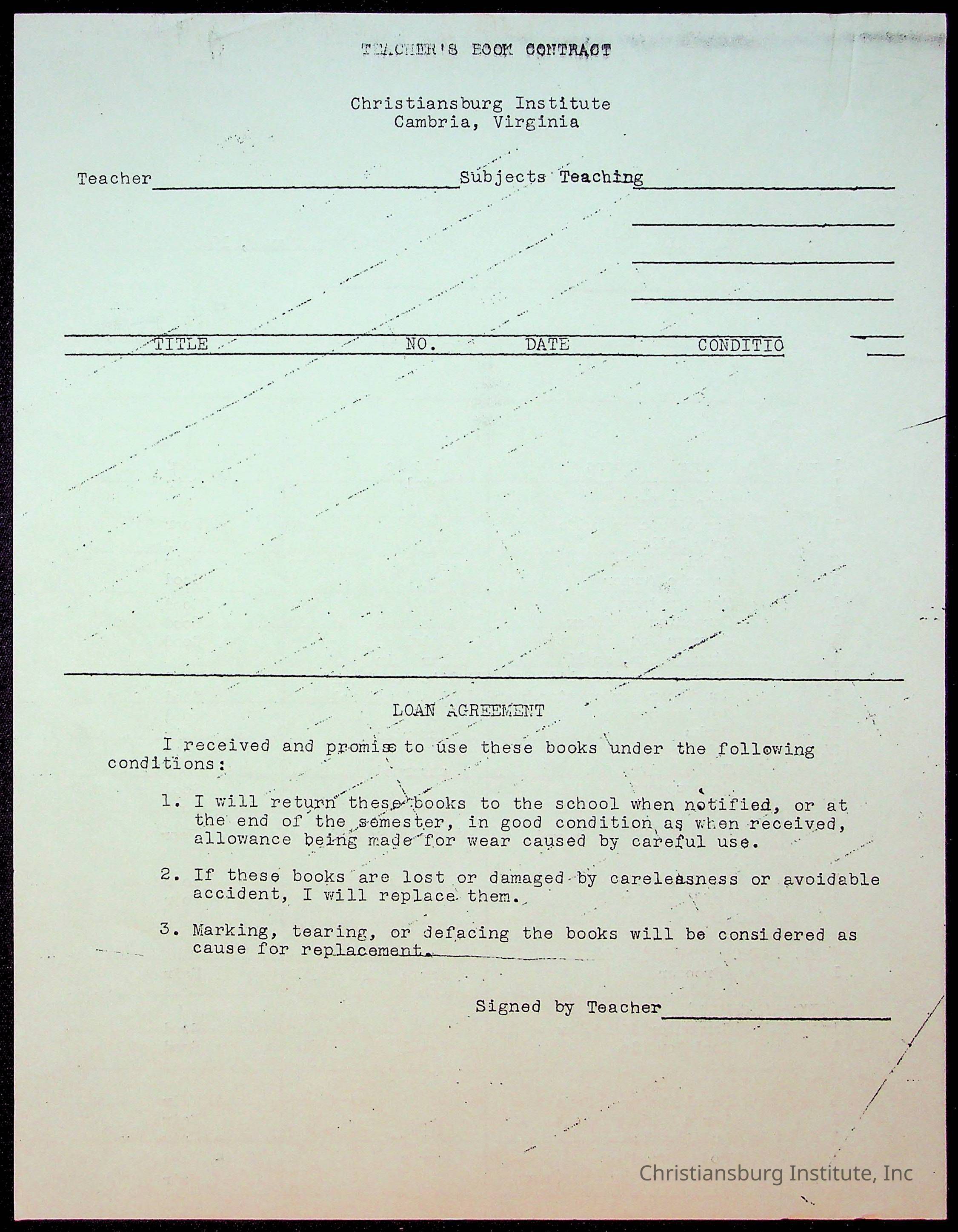 Copyright has been assigned to Christiansburg Institute Museum & Archives by Montgomery County Public Schools. For permission to publish materials created by the donor, contact CIMA@christiansburginstitute.com. Materials not created by Christiansburg Industrial Institute may still be under copyright.