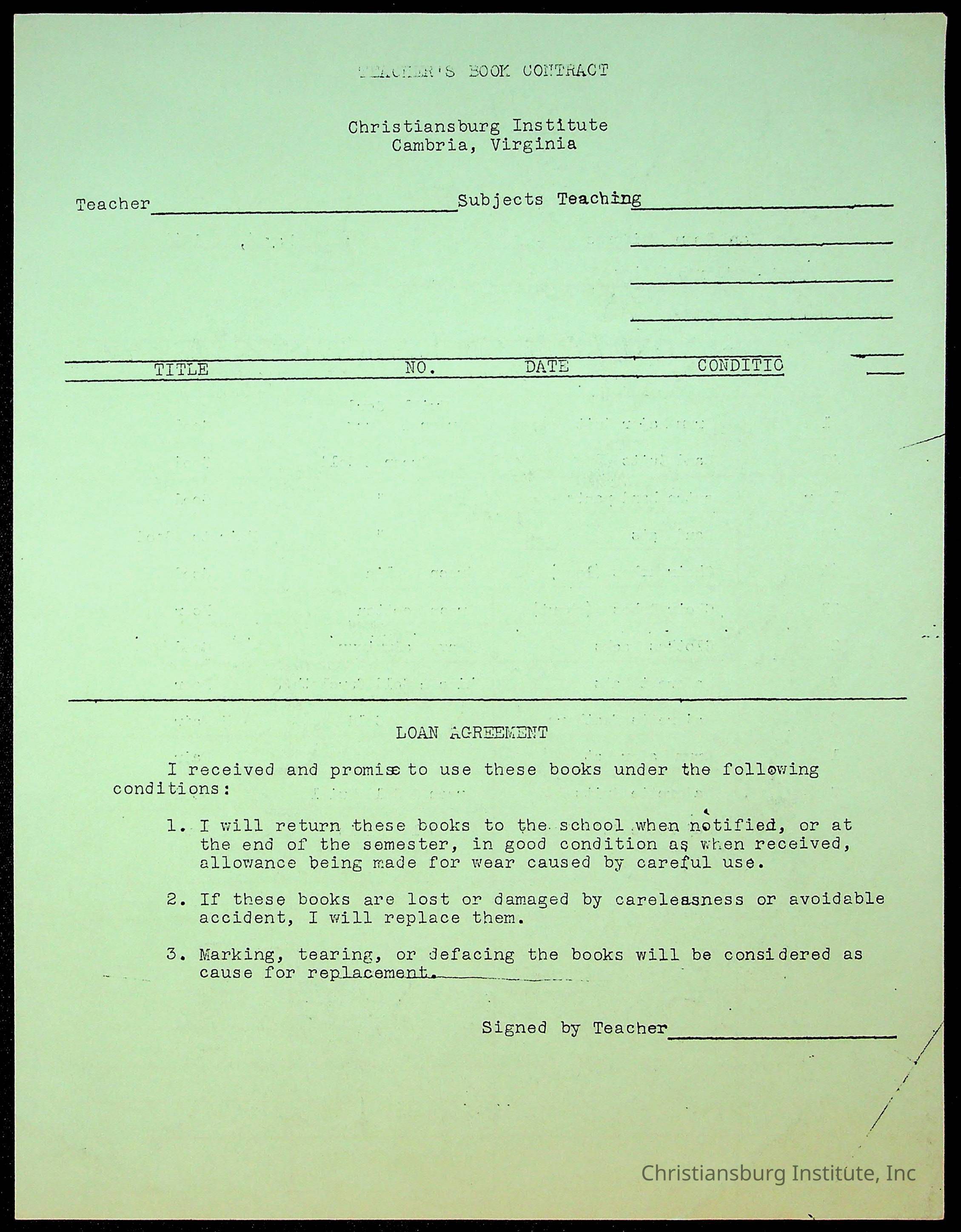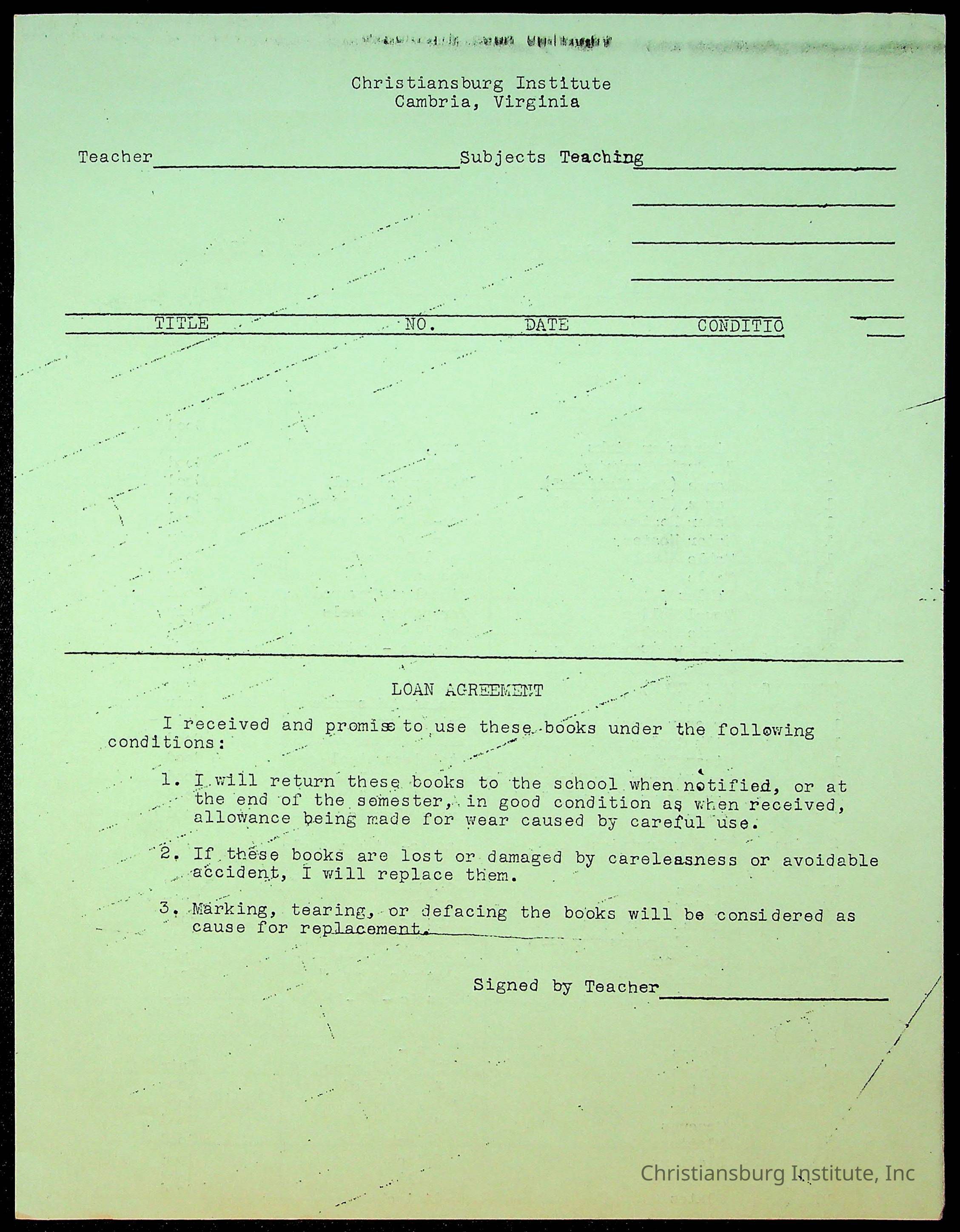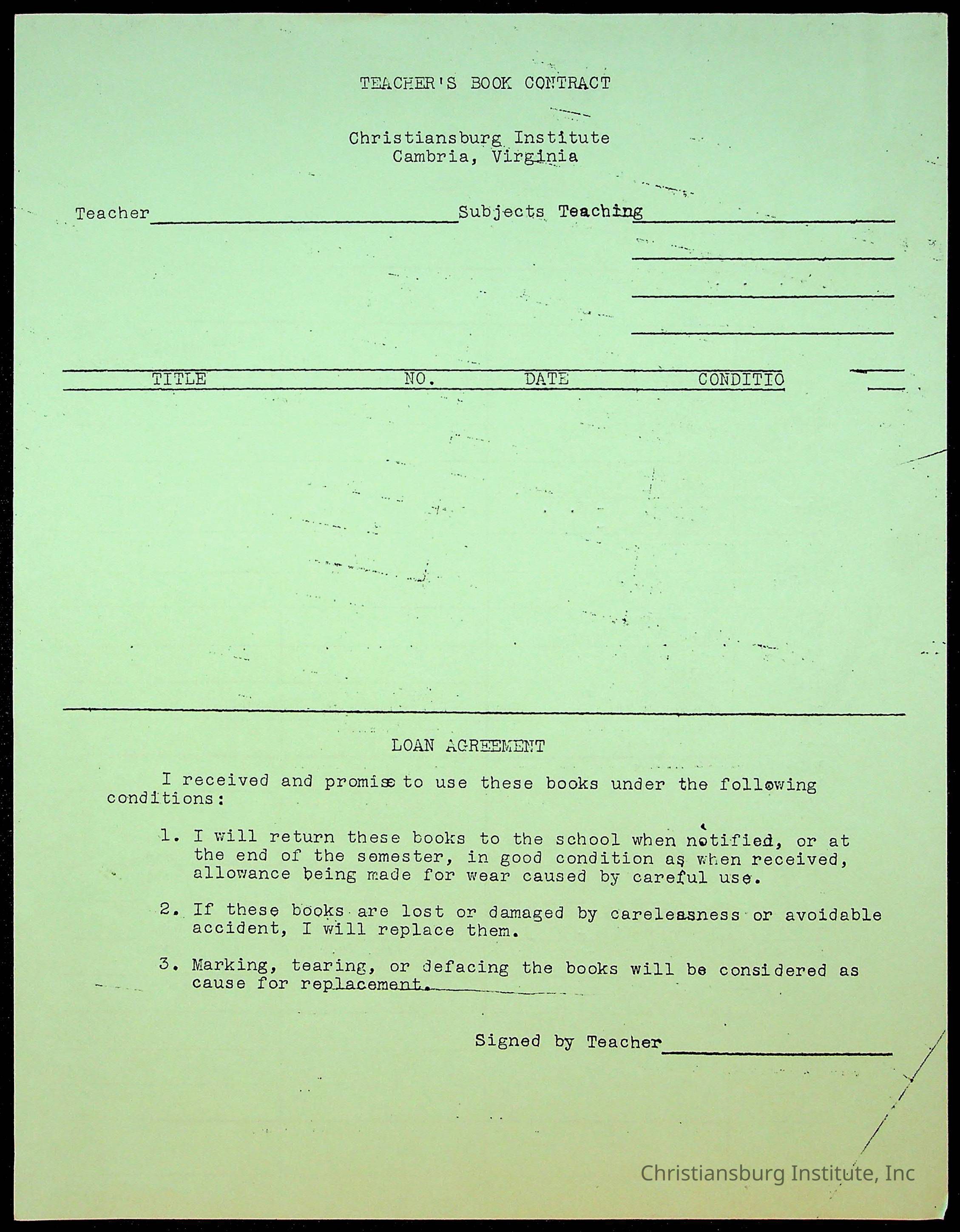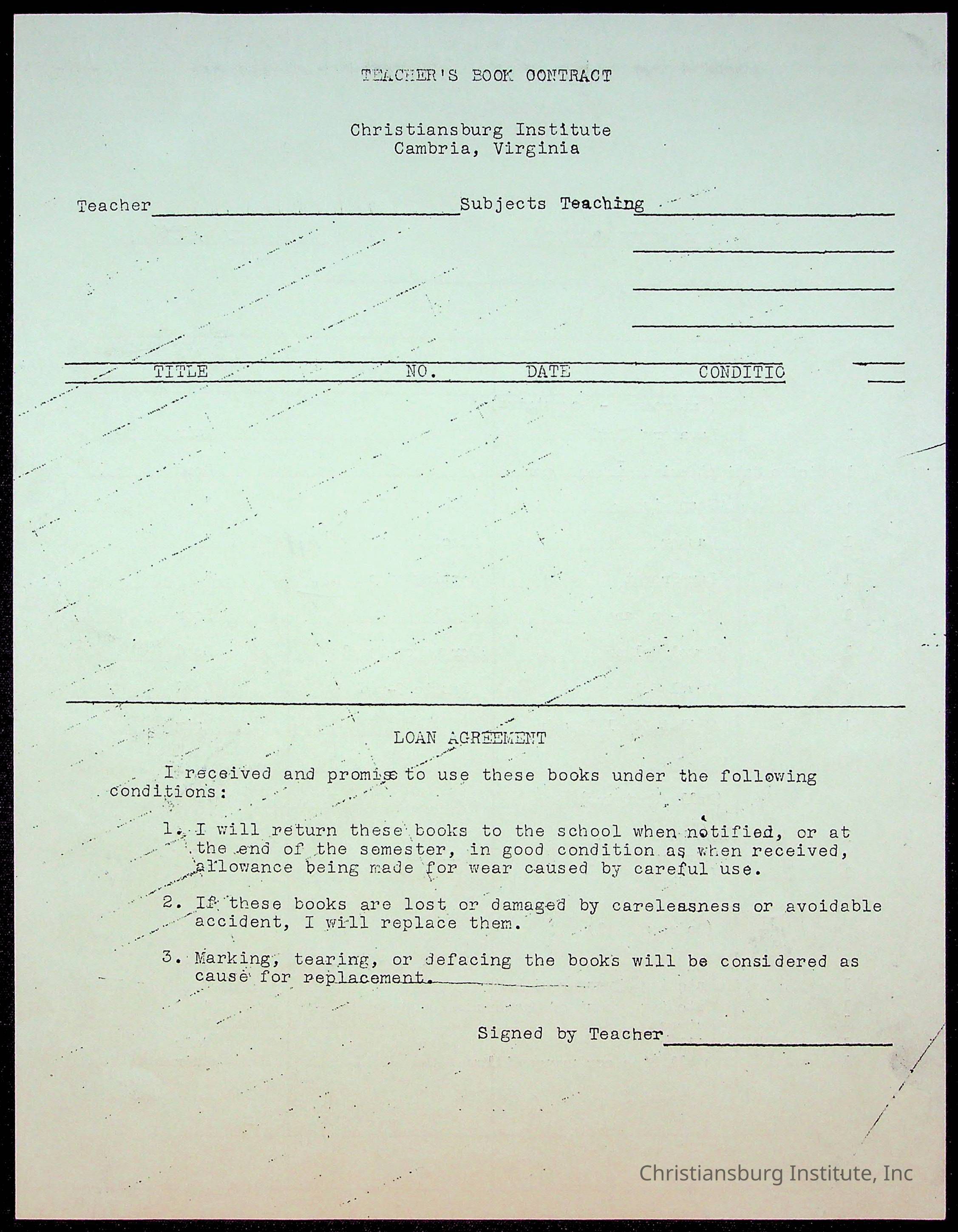 Copyright has been assigned to Christiansburg Institute Museum & Archives by Montgomery County Public Schools. For permission to publish materials created by the donor, contact CIMA@christiansburginstitute.com. Materials not created by Christiansburg Industrial Institute may still be under copyright.