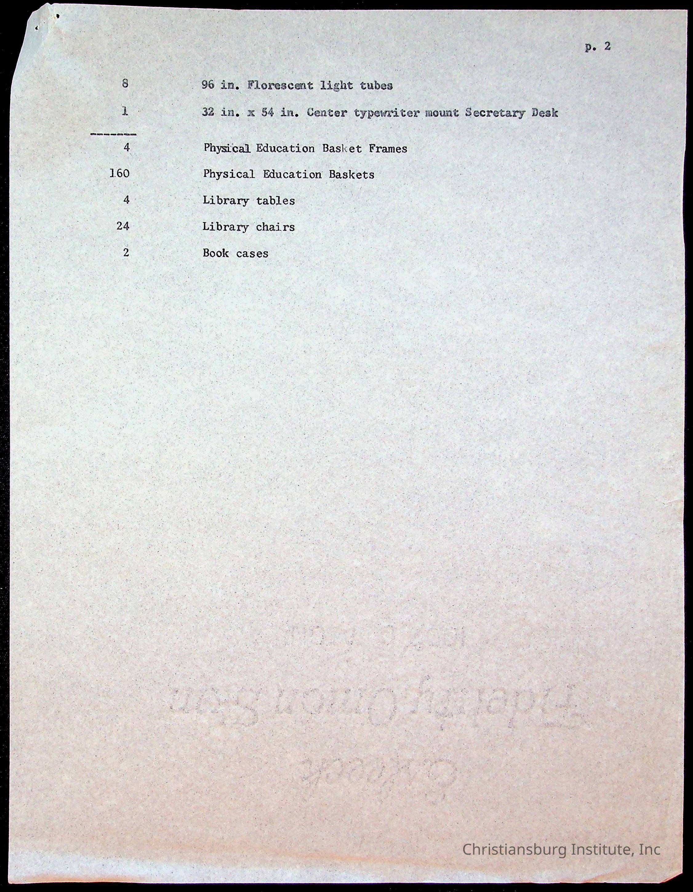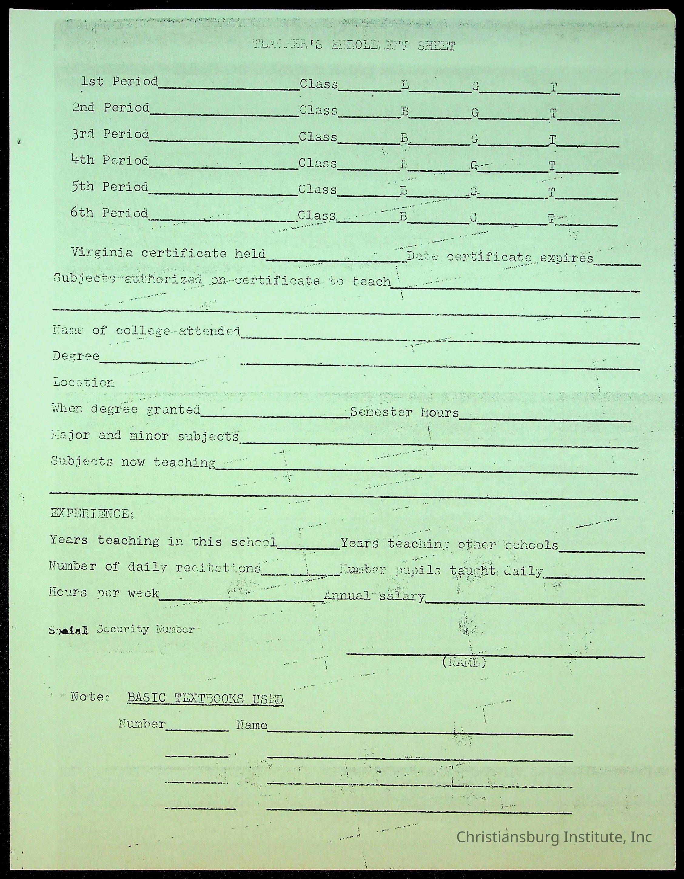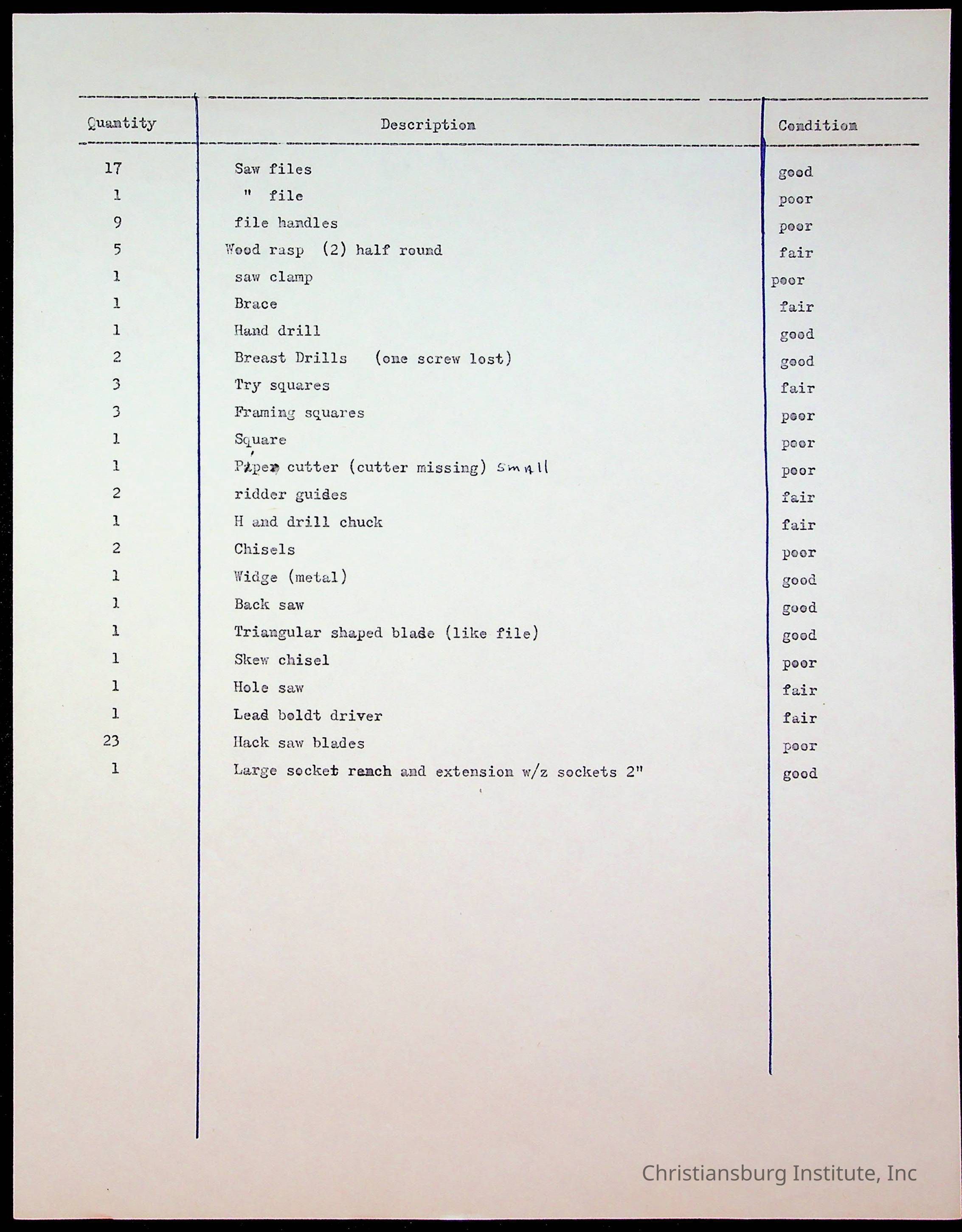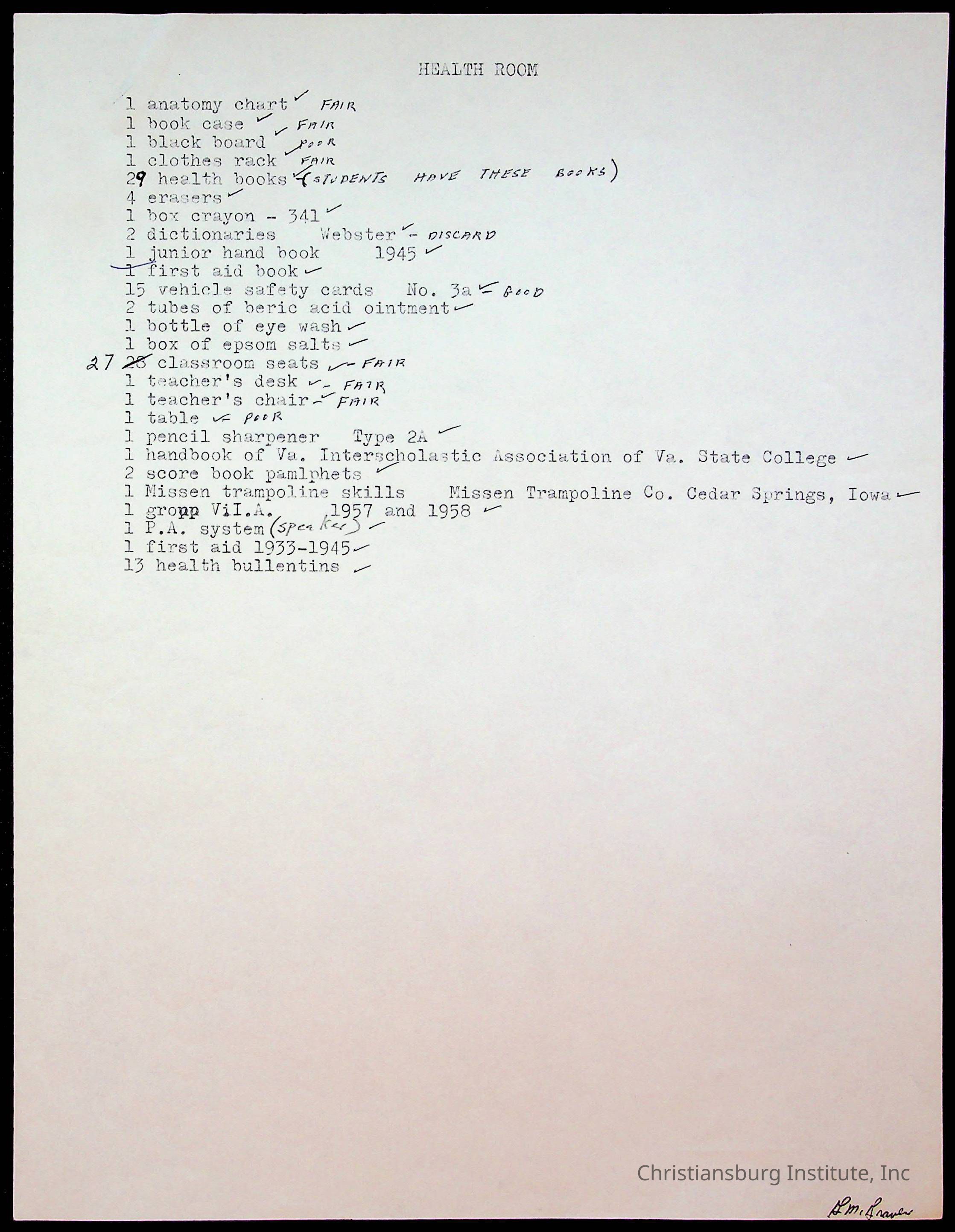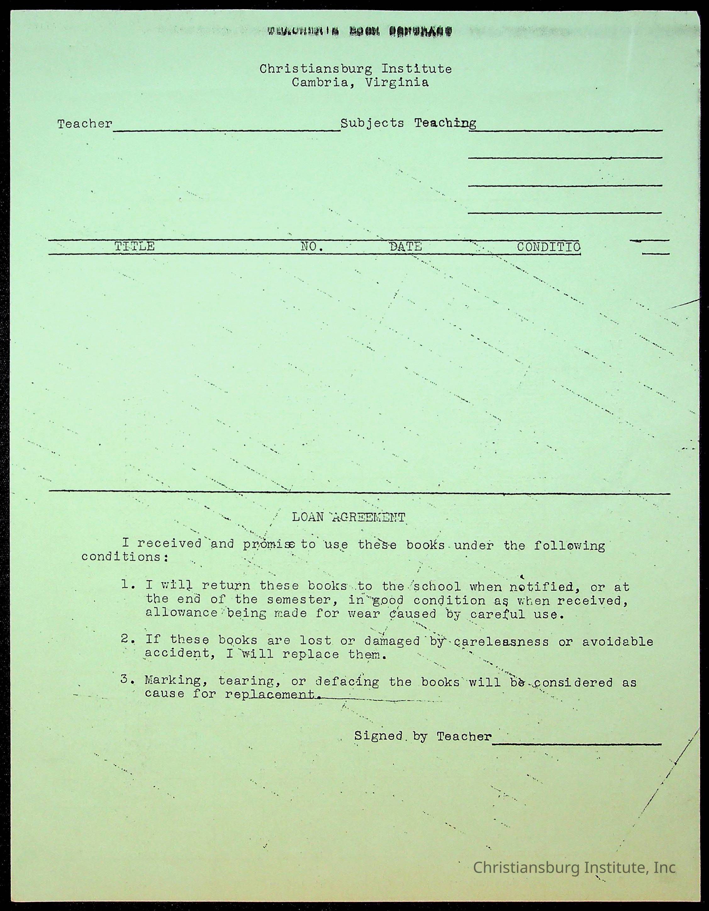 Copyright has been assigned to Christiansburg Institute Museum & Archives by Montgomery County Public Schools. For permission to publish materials created by the donor, contact CIMA@christiansburginstitute.com. Materials not created by Christiansburg Industrial Institute may still be under copyright.