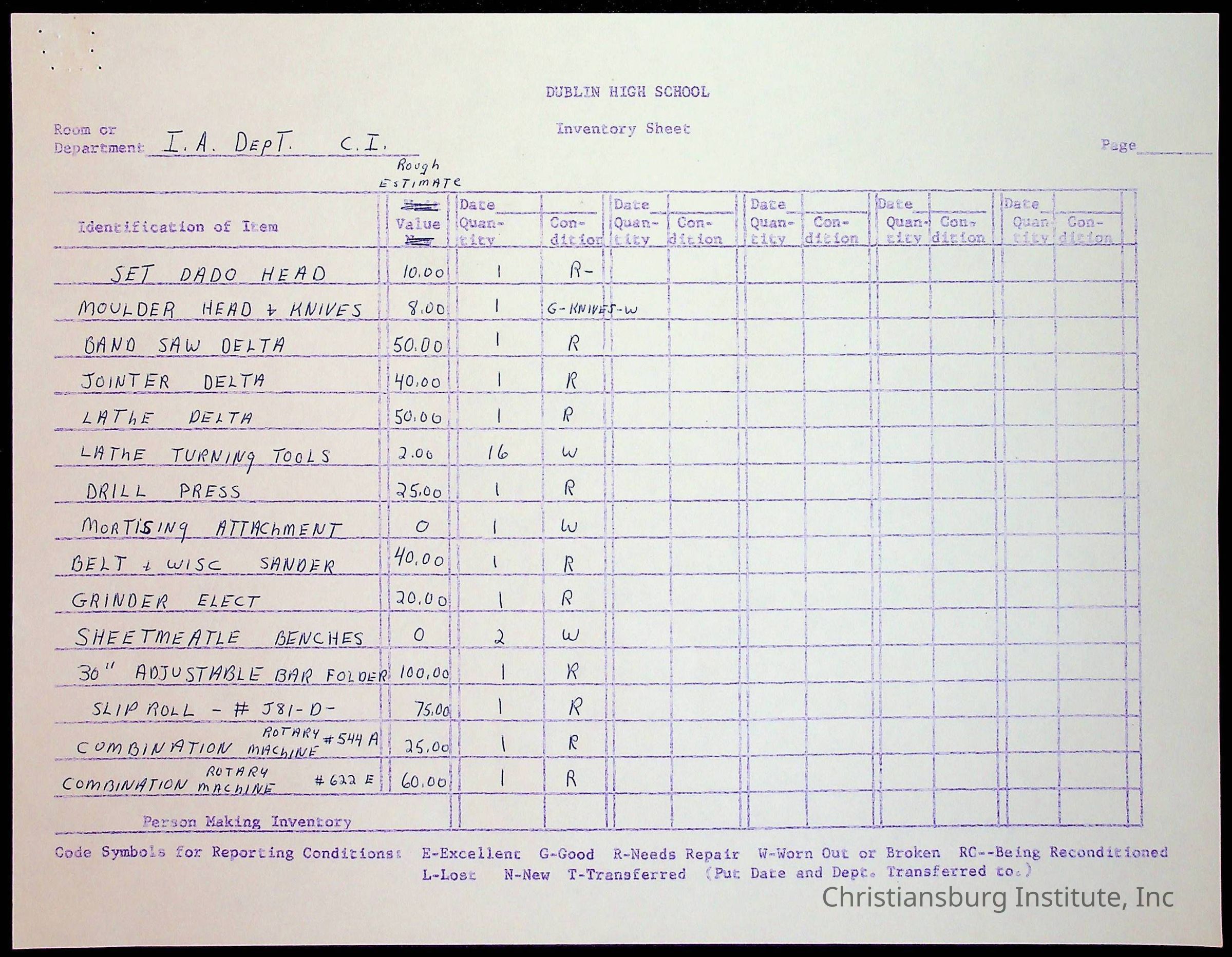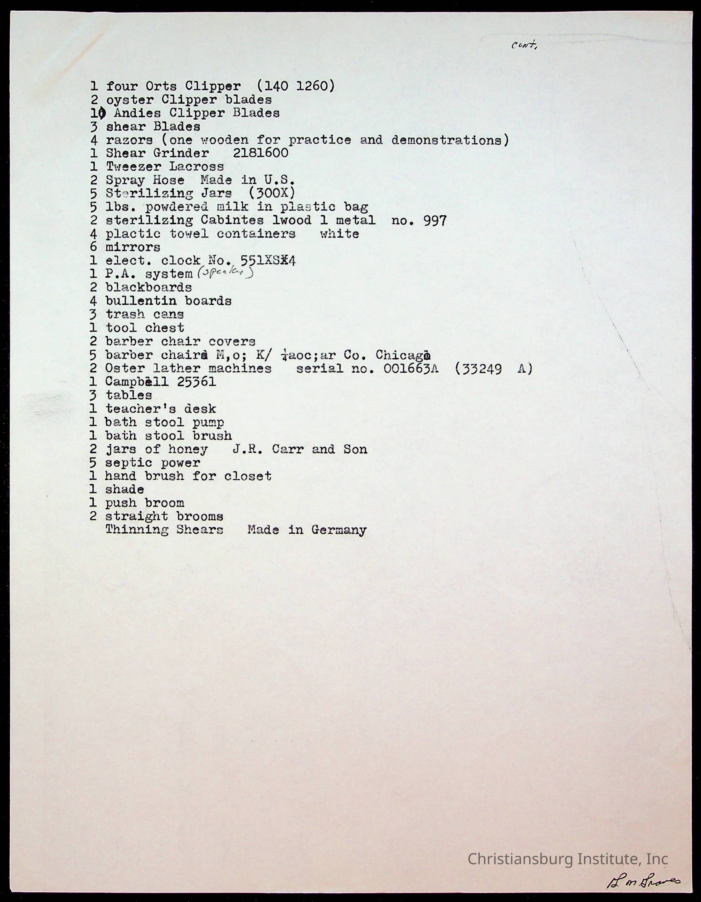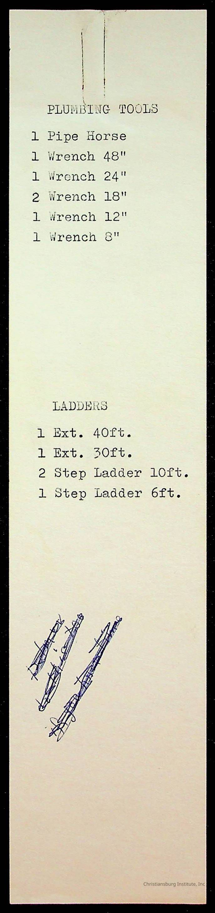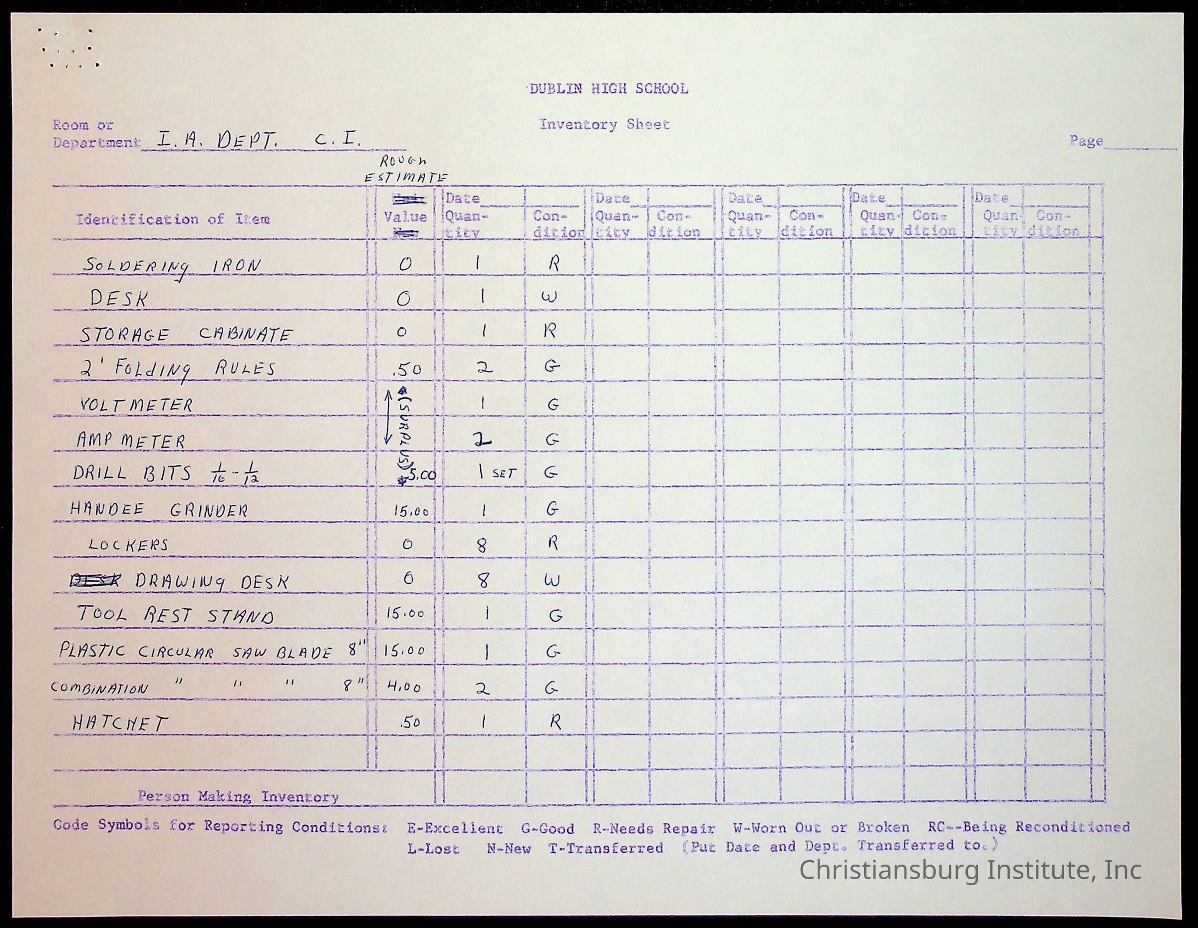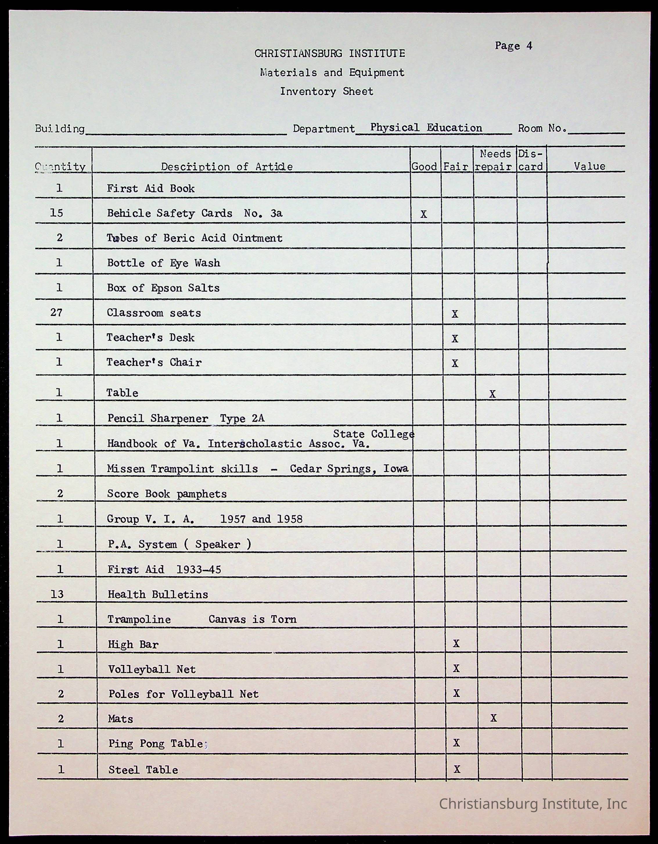 An archive of inventory sheets documenting Christiansburg Institute's inventory in the year 1966.