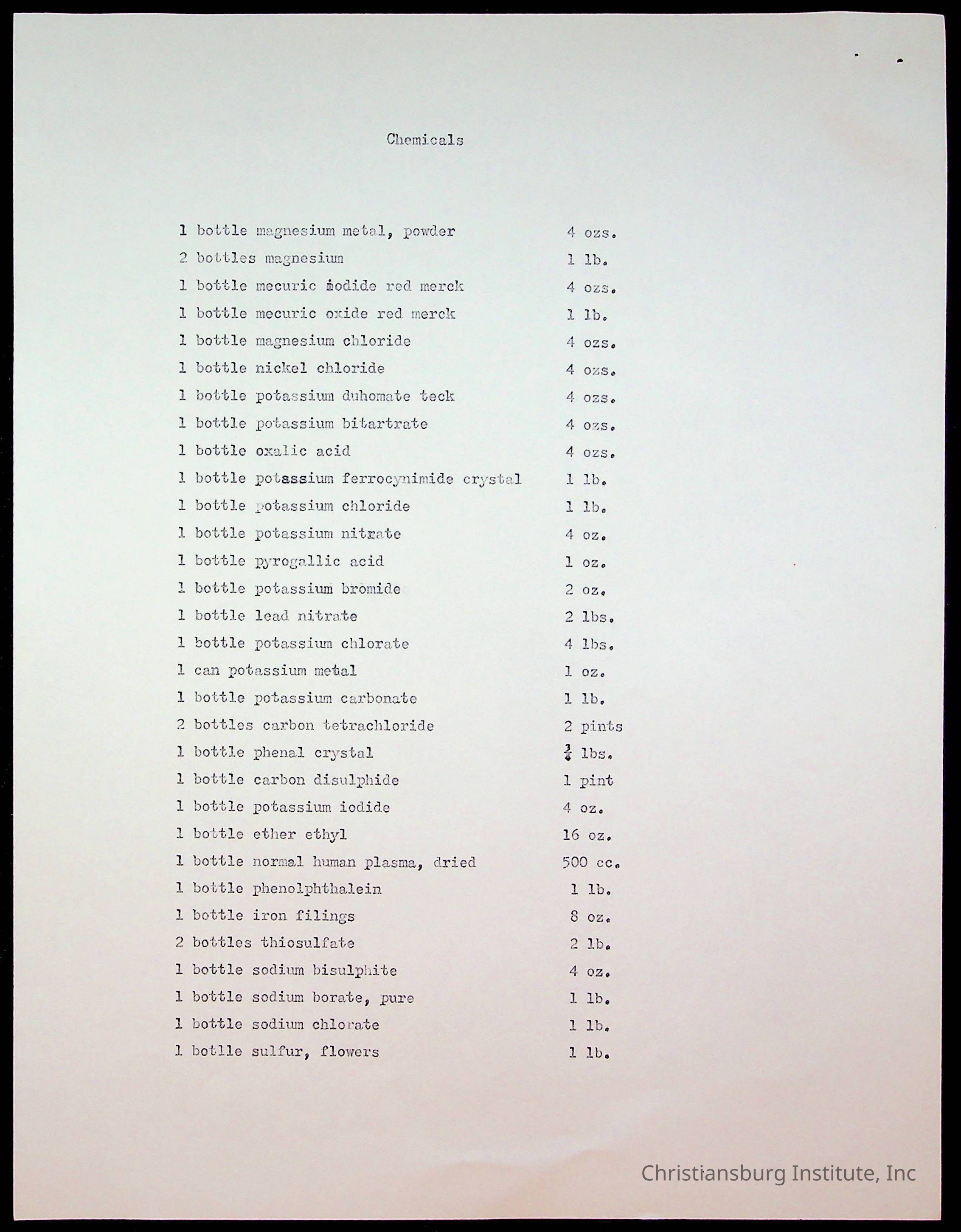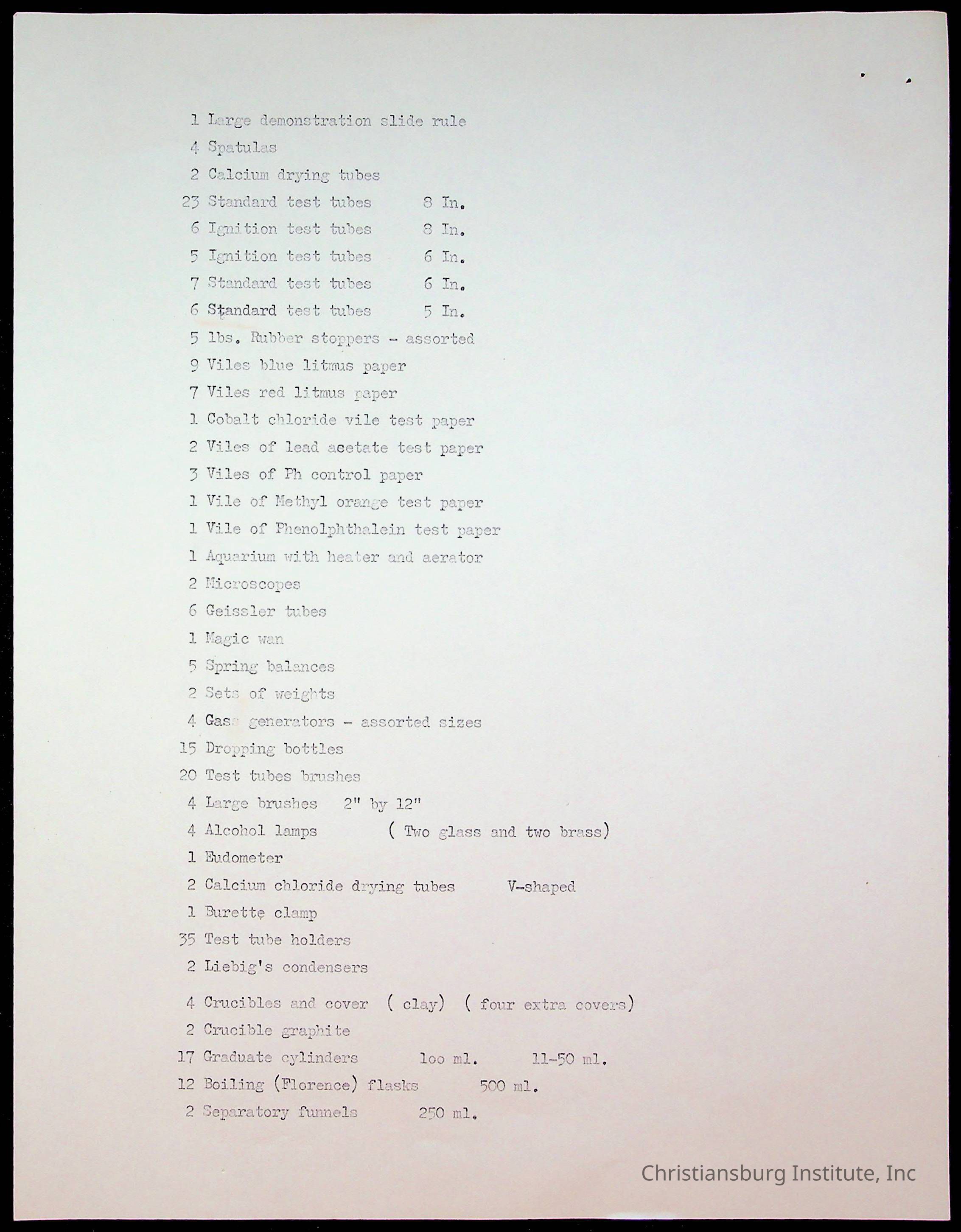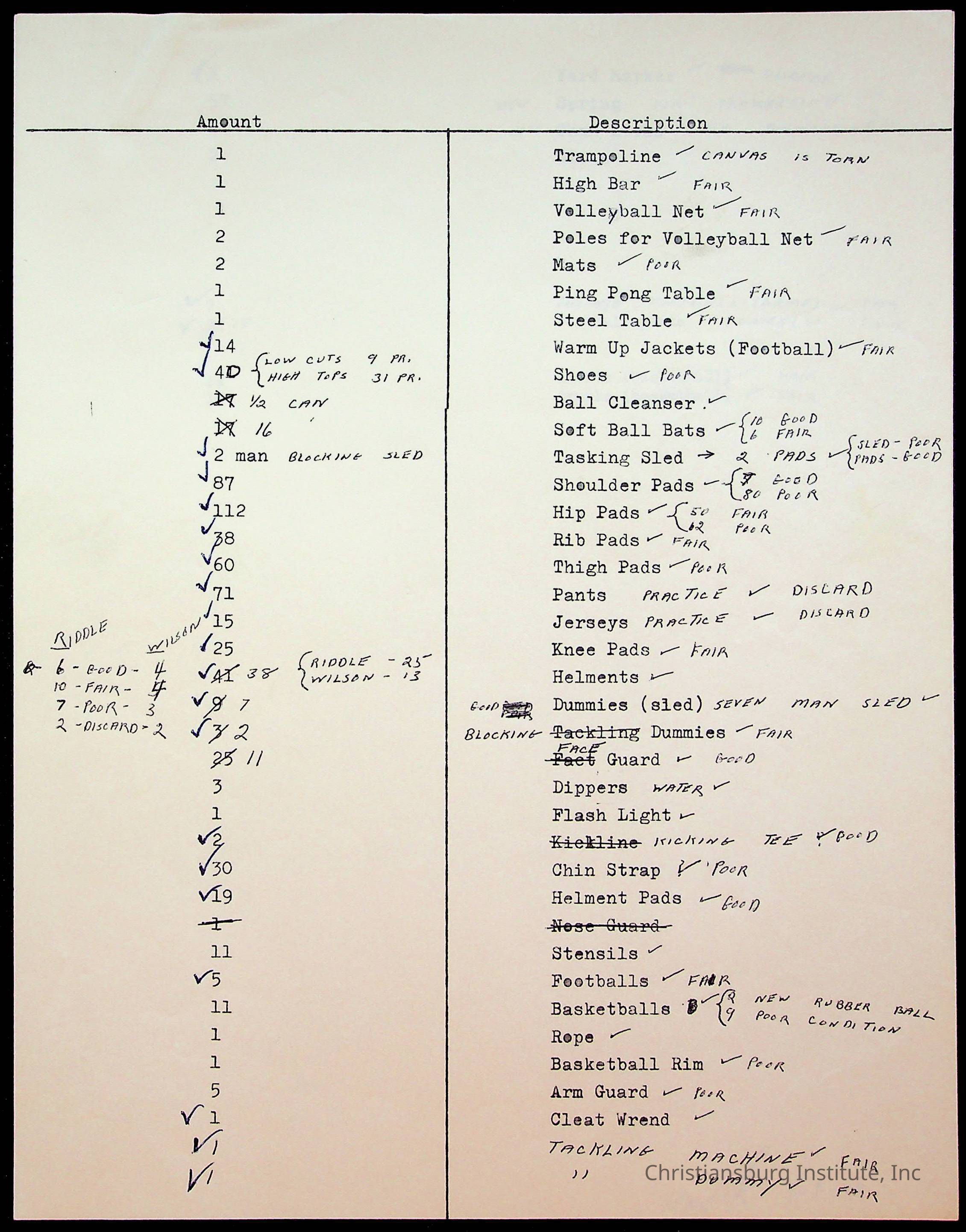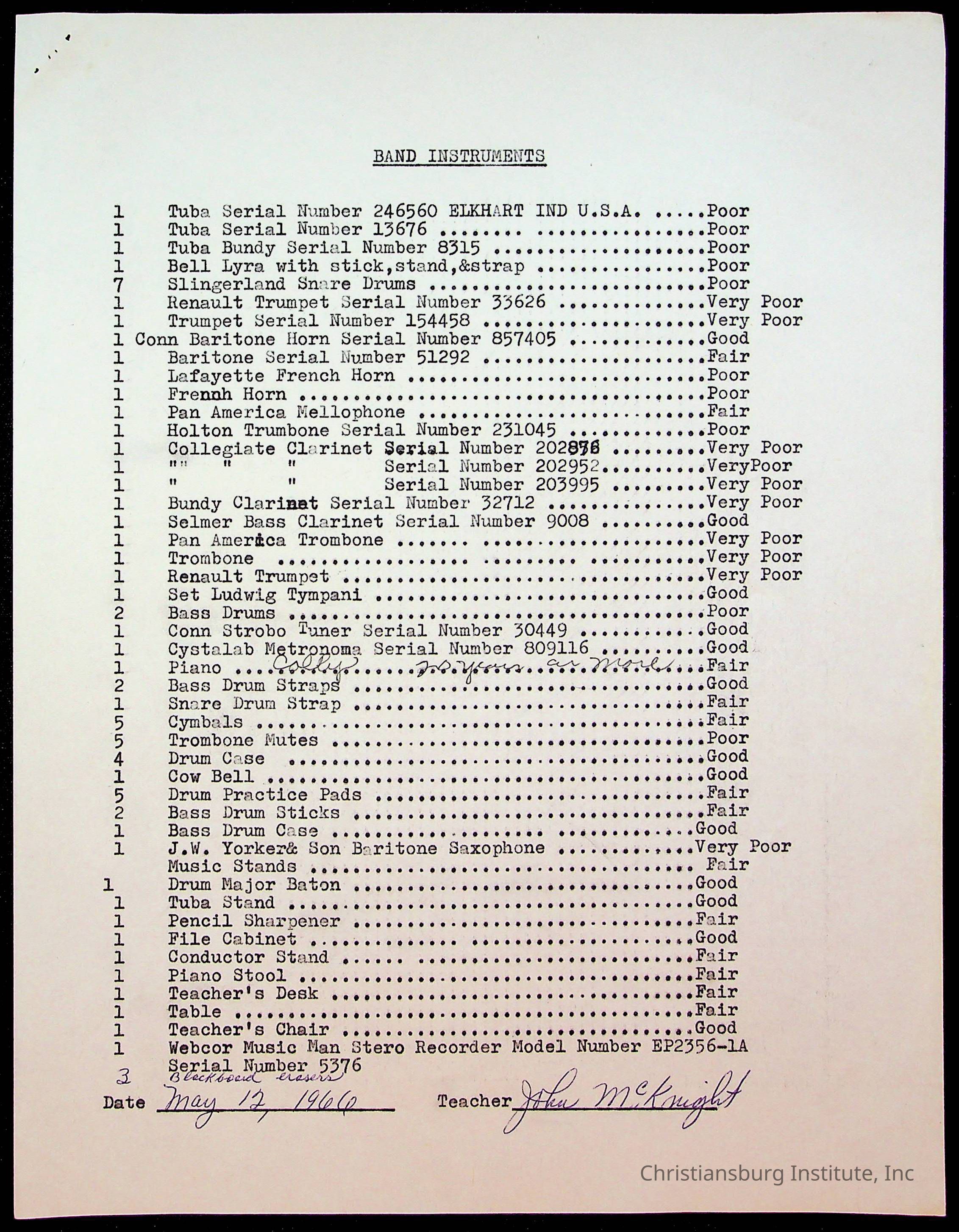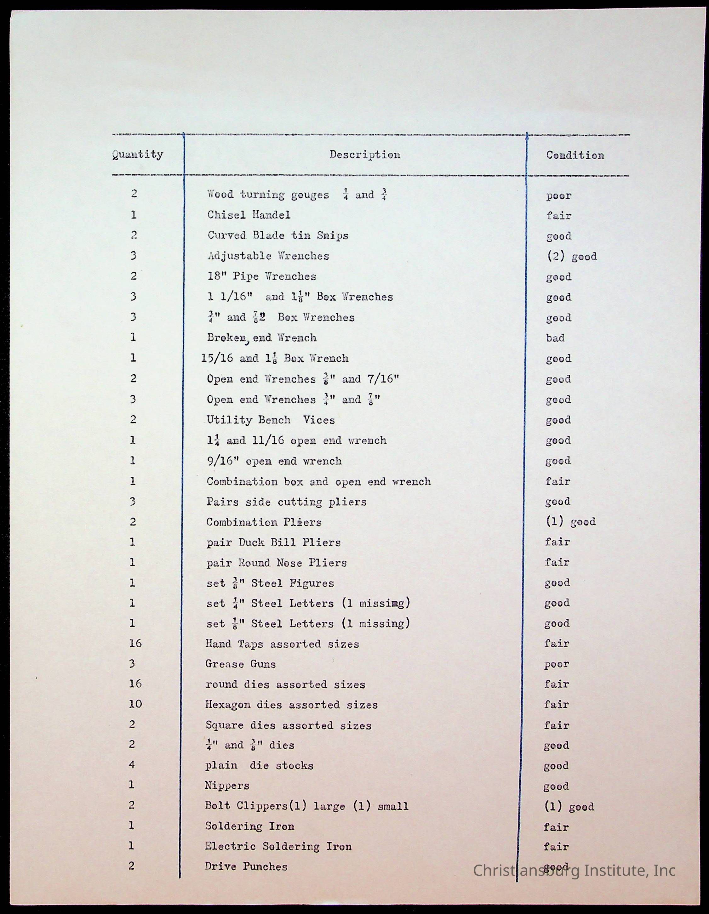 An archive of inventory sheets documenting Christiansburg Institute's inventory in the year 1966.