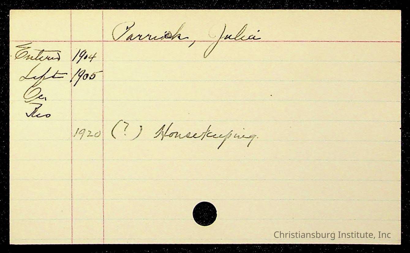 Copyright has been assigned to Christiansburg Institute Museum & Archives by Montgomery County Public Schools. For permission to publish materials created by the donor, contact CIMA@christiansburginstitute.com. Materials not created by Christiansburg Industrial Institute may still be under copyright.