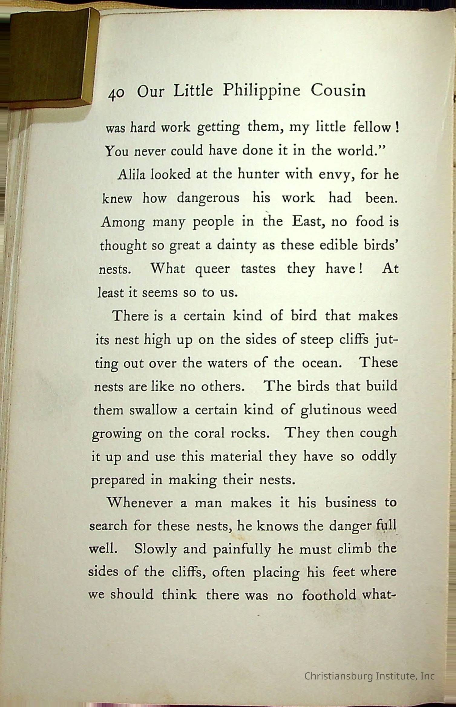"Our Little Philippine Cousin" written by Mary Hazelton Wade and the 13th edition was published by the L. C. Page & Company in the year 1913. This book was part of Friends Elementary School's library.