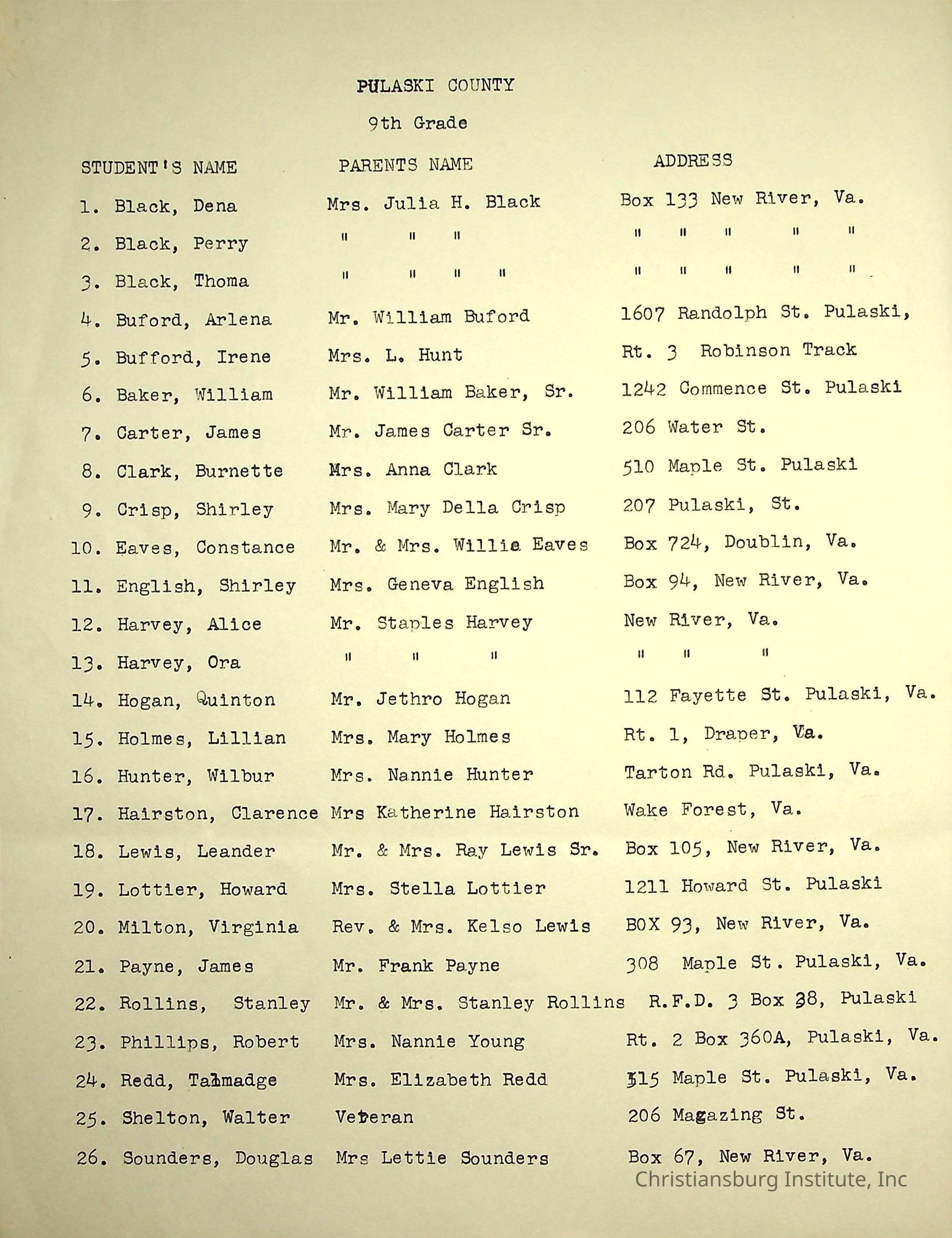 A set of Christiansburg Institute administrative records that are from 1953 through 1956. This series of records was put together by Archie Rollins in 1990.