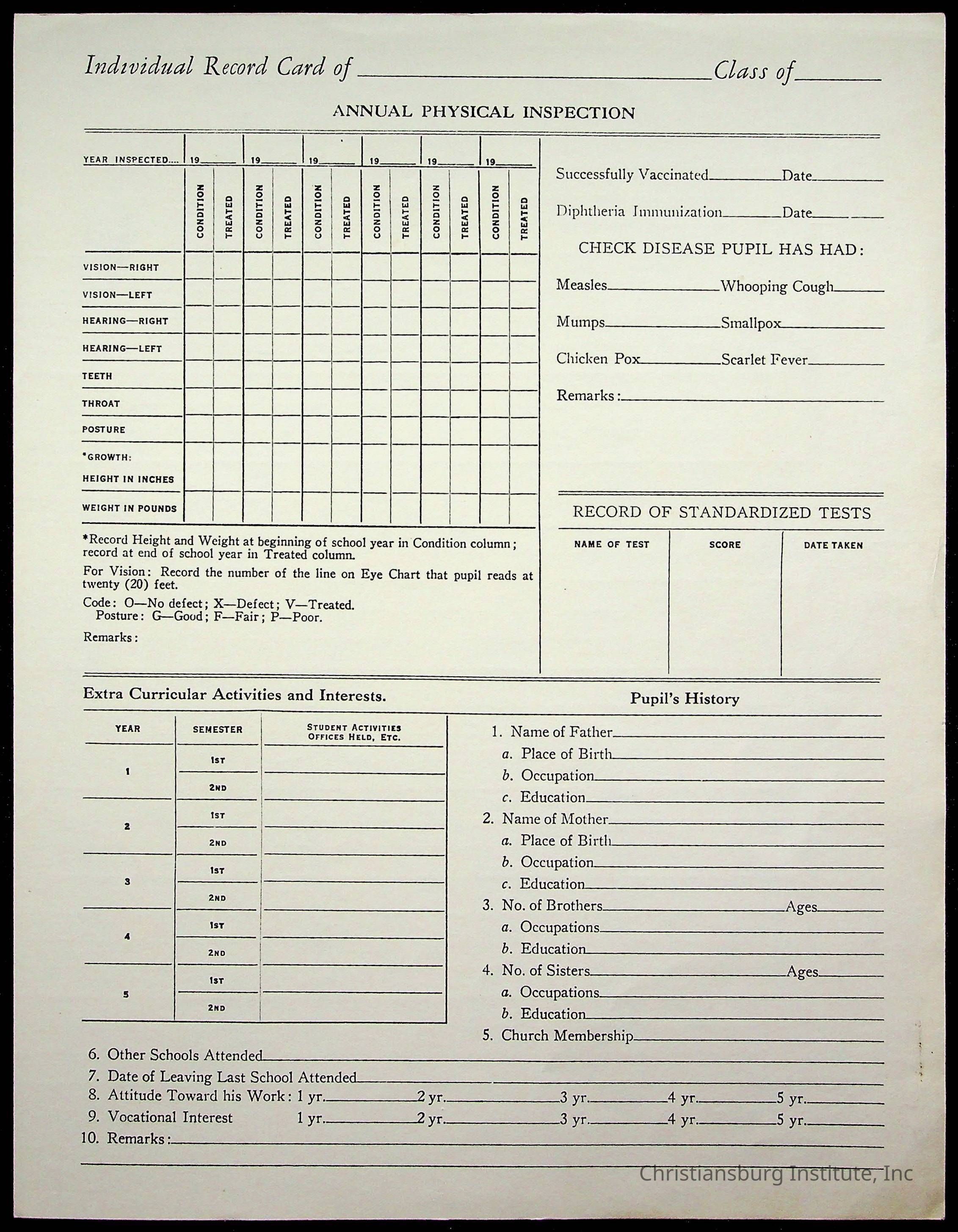 Christiansburg Institute Student Records Collection