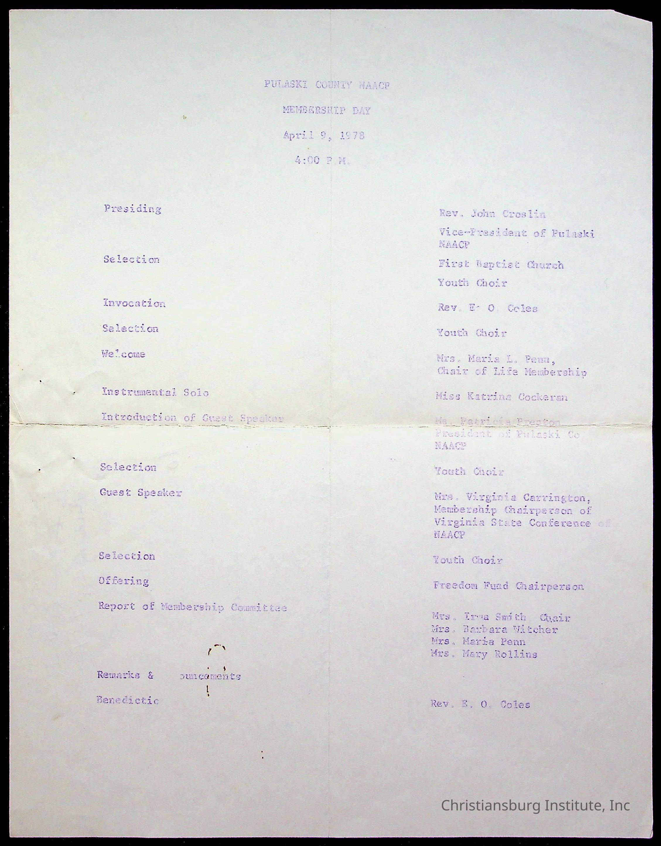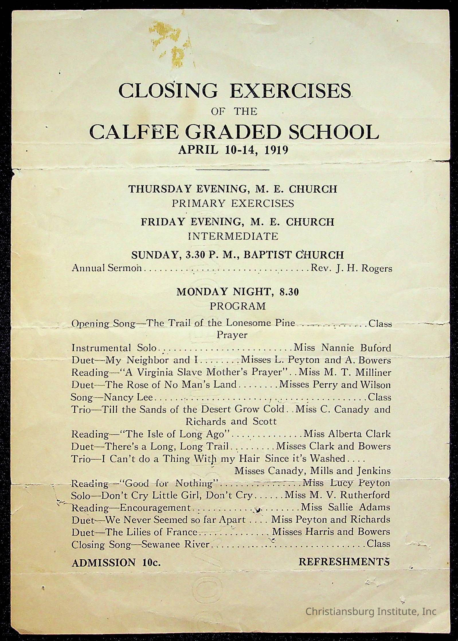 Copyright has been assigned to Christiansburg Institute Museum & Archives by Amanda DeHart. For permission to publish materials created by the donor, contact CIMA@christiansburginstitute.com. Materials not created by Amanda DeHart may still be under copyright.