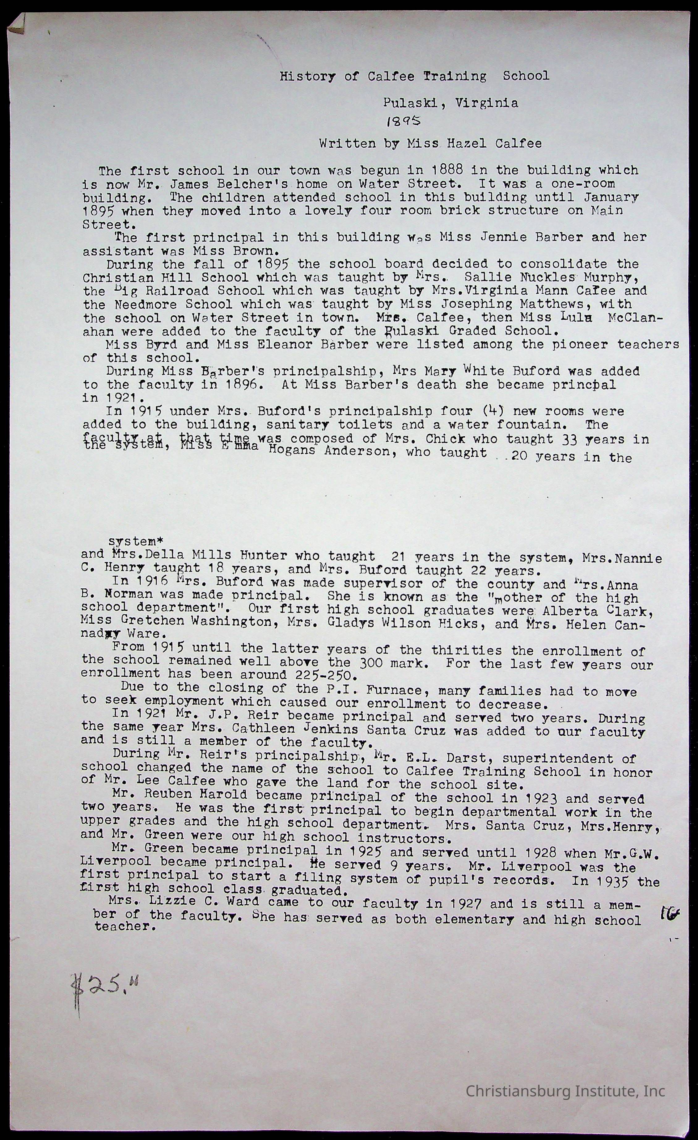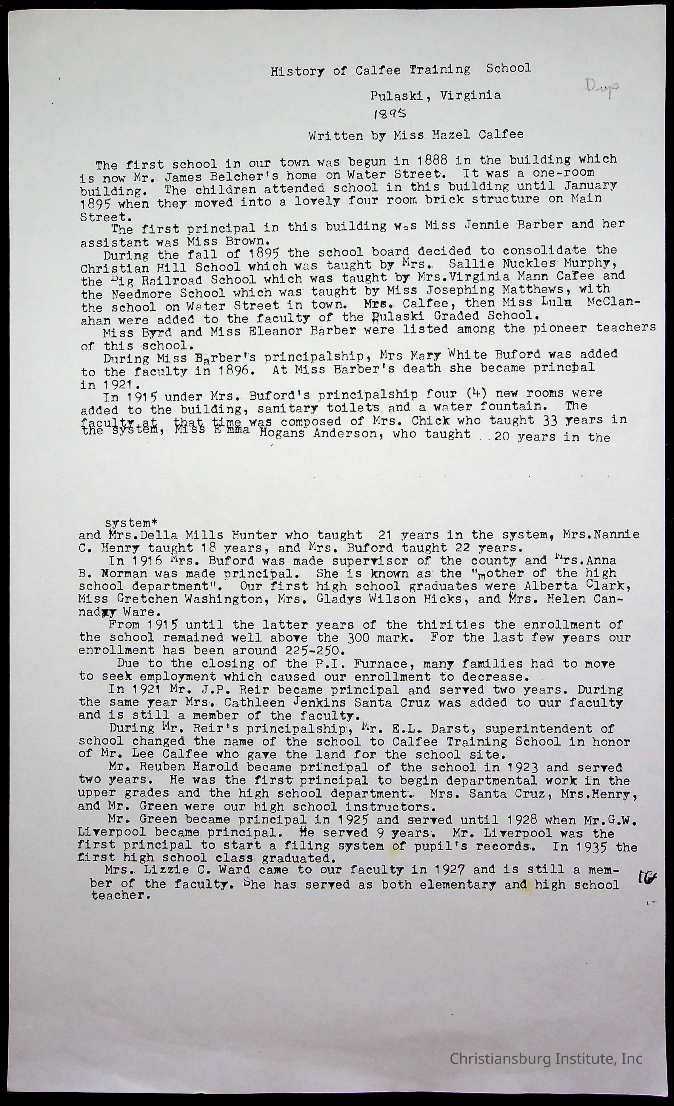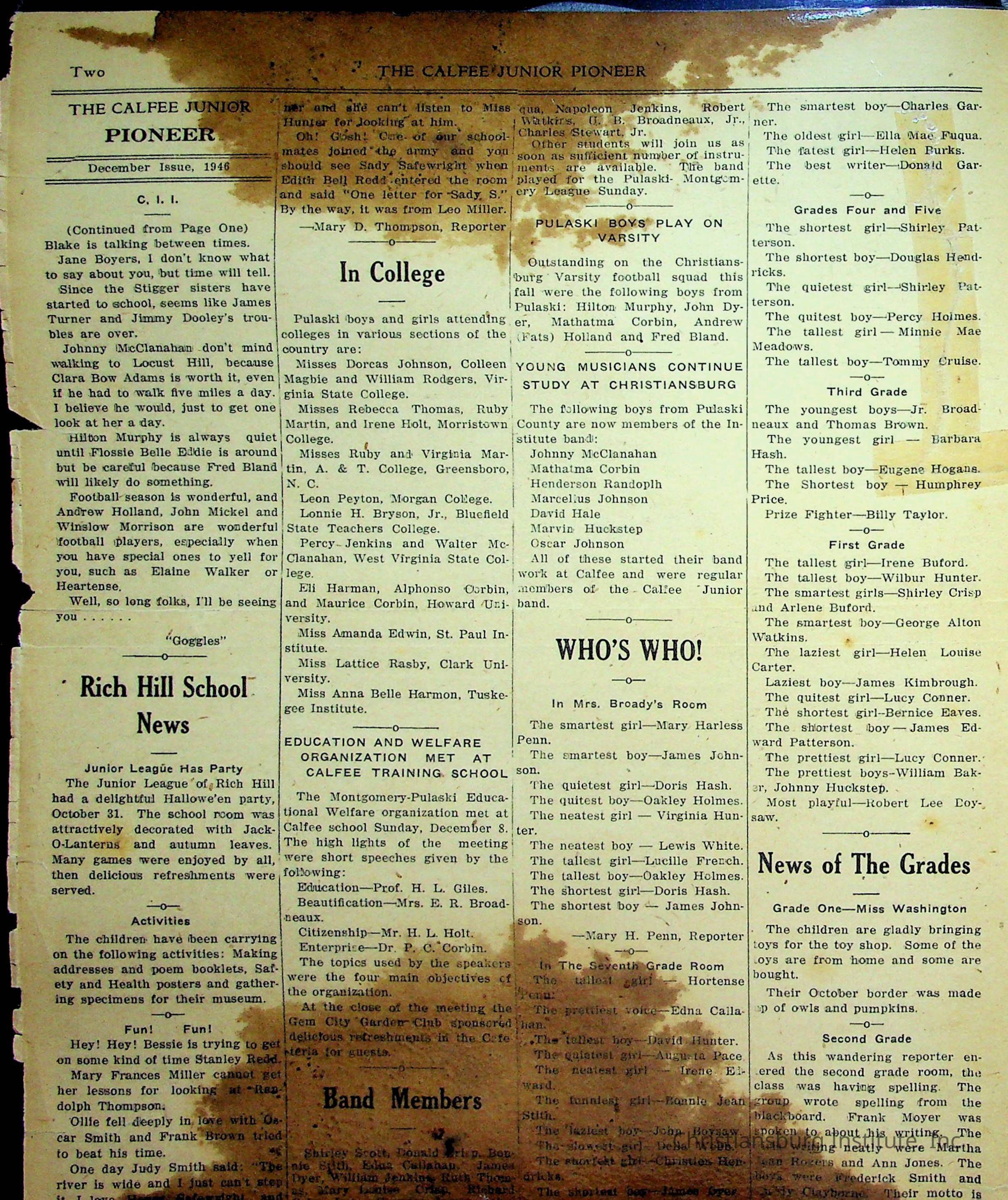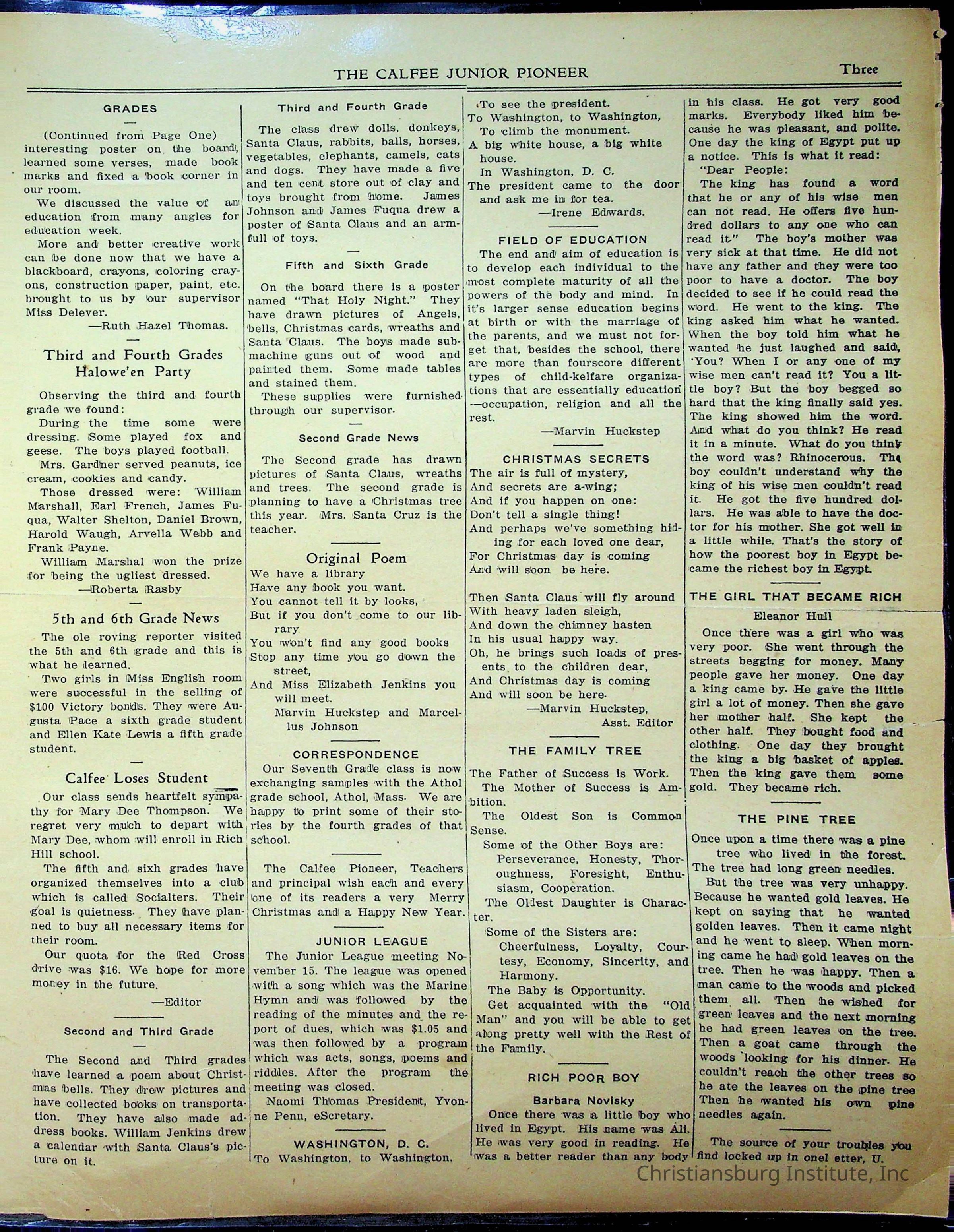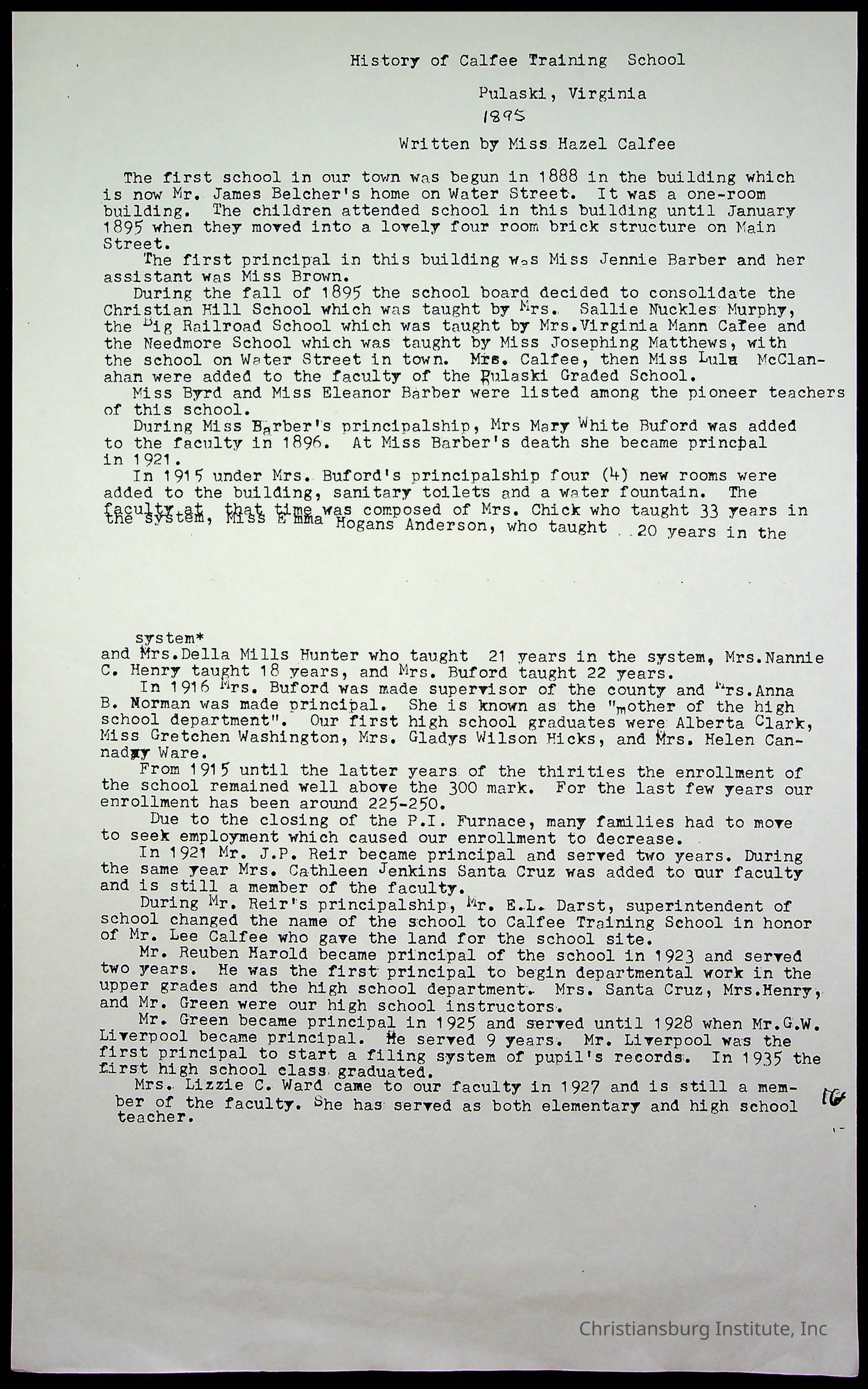 An archive of materials from the Calfee Training School including photographs, educational exercises, and the student publication, Calfee Junior Pioneer. The archive materials are from 1919-1946.Collection