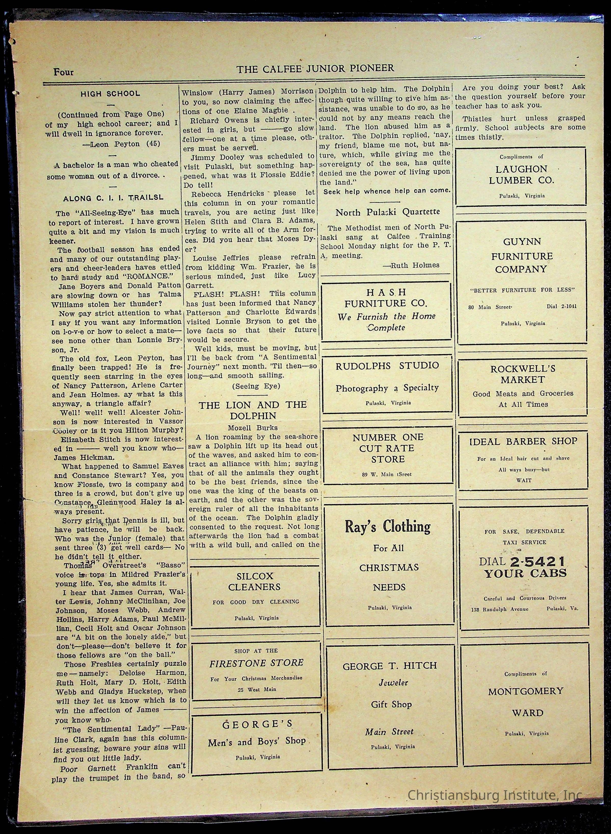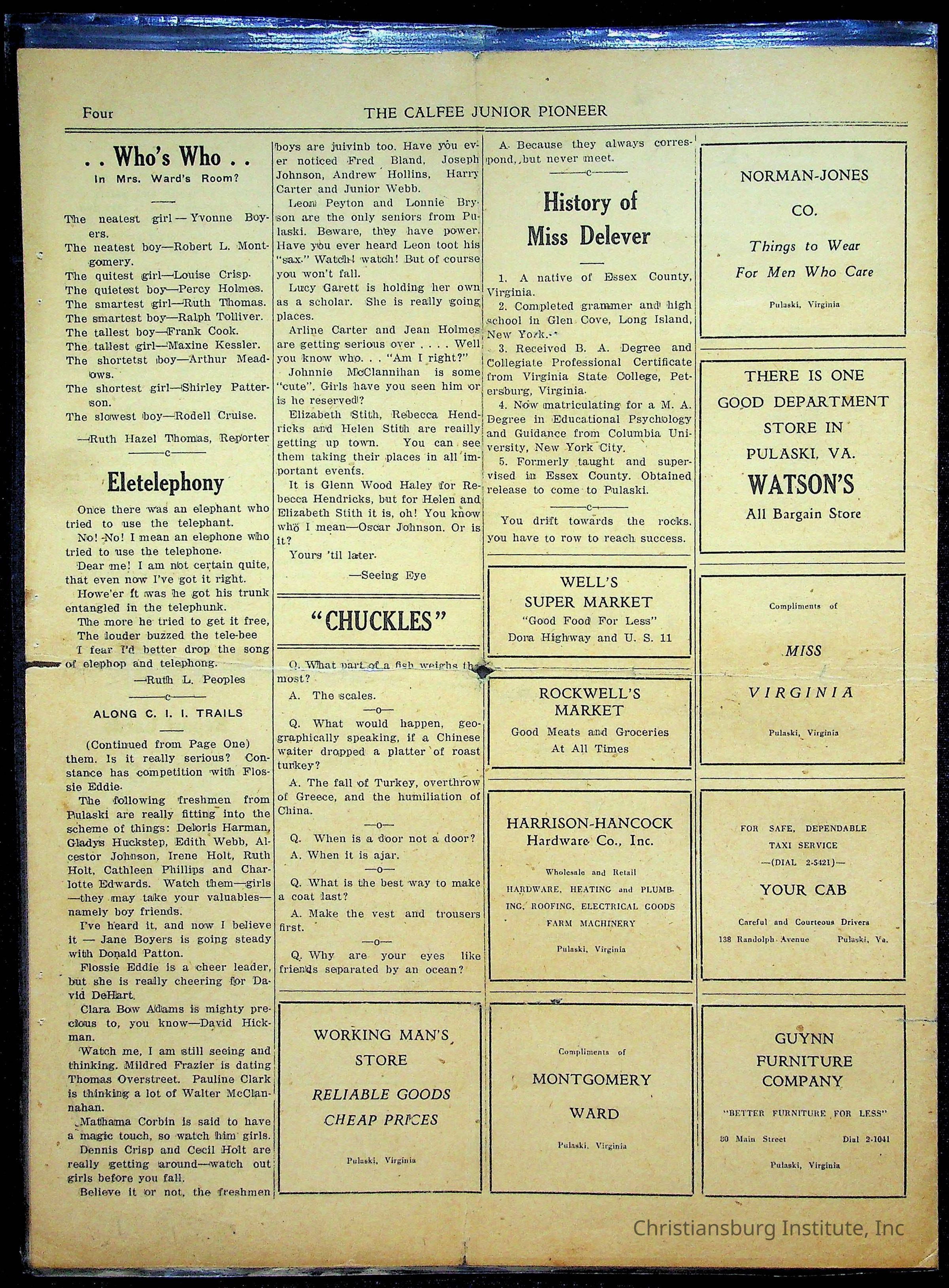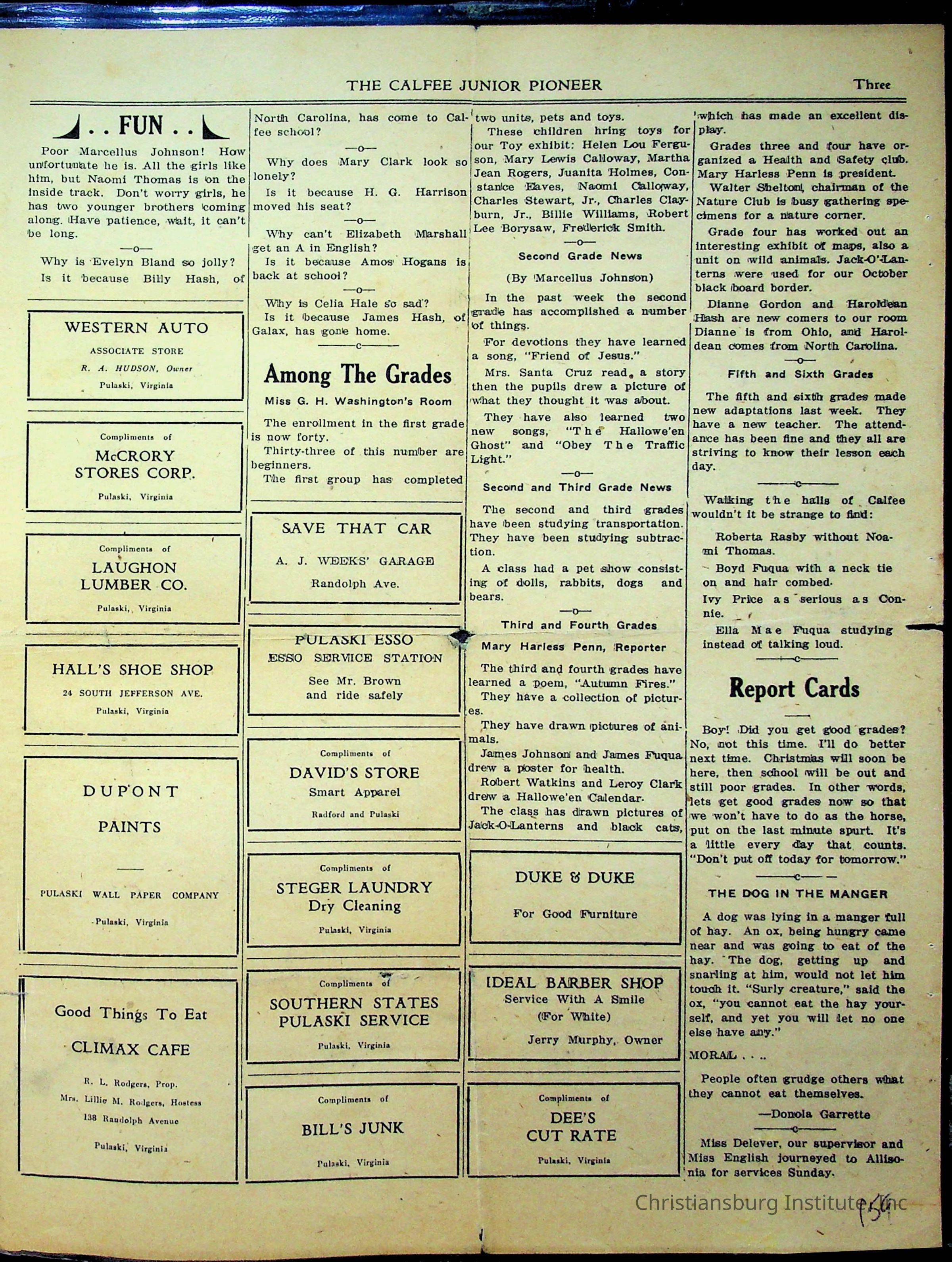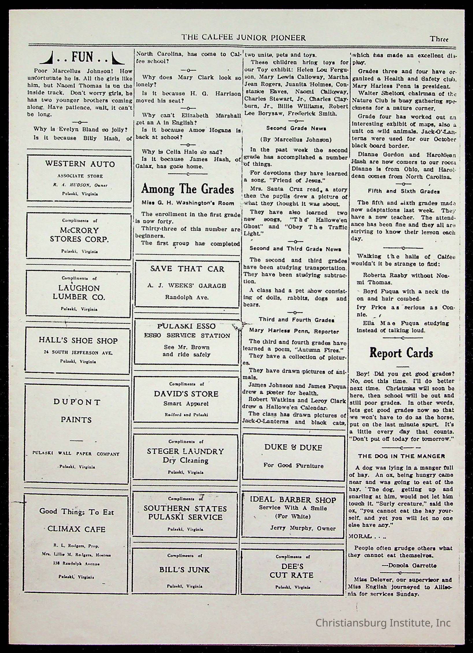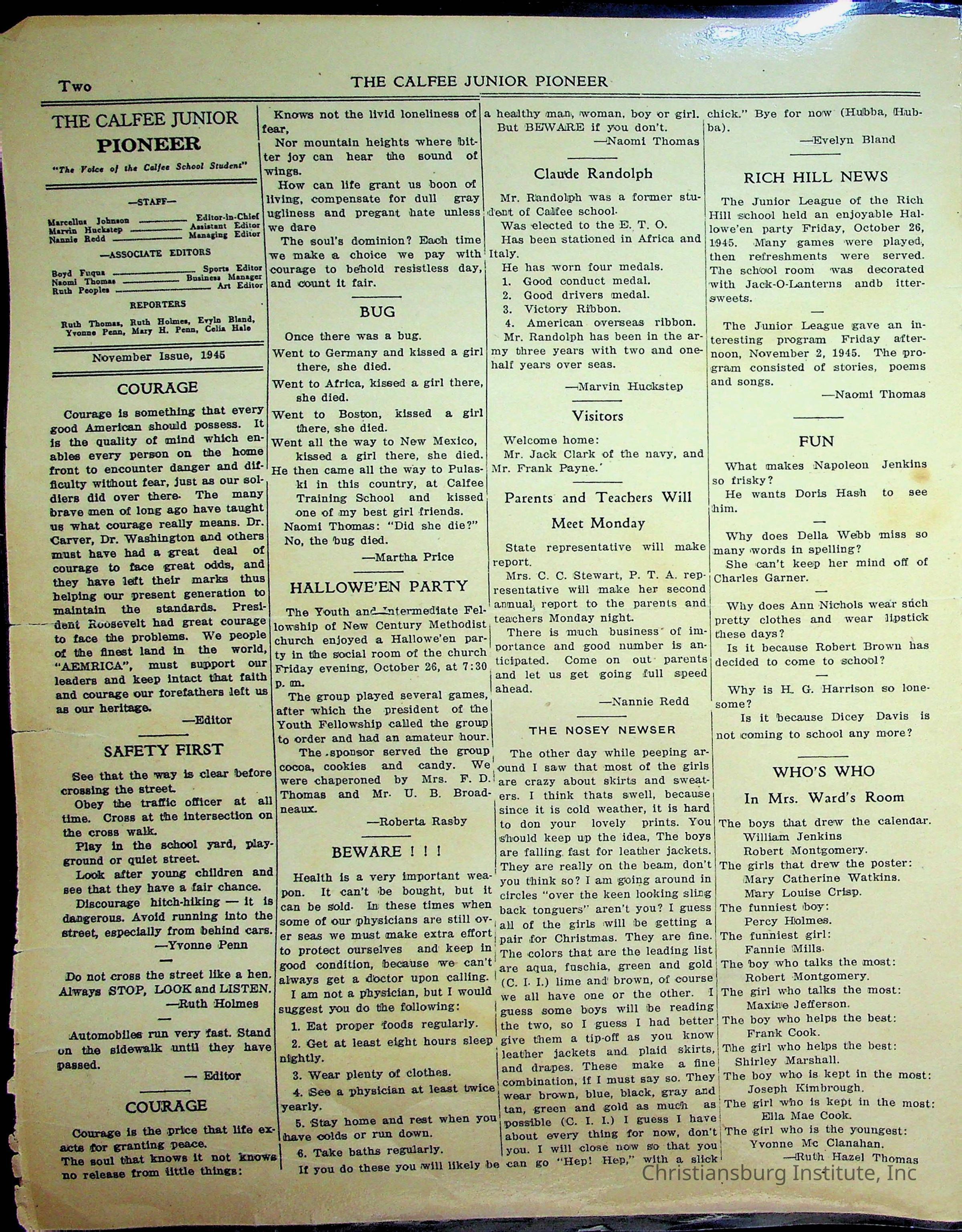 An archive of materials from the Calfee Training School including photographs, educational exercises, and the student publication, Calfee Junior Pioneer. The archive materials are from 1919-1946.Collection
