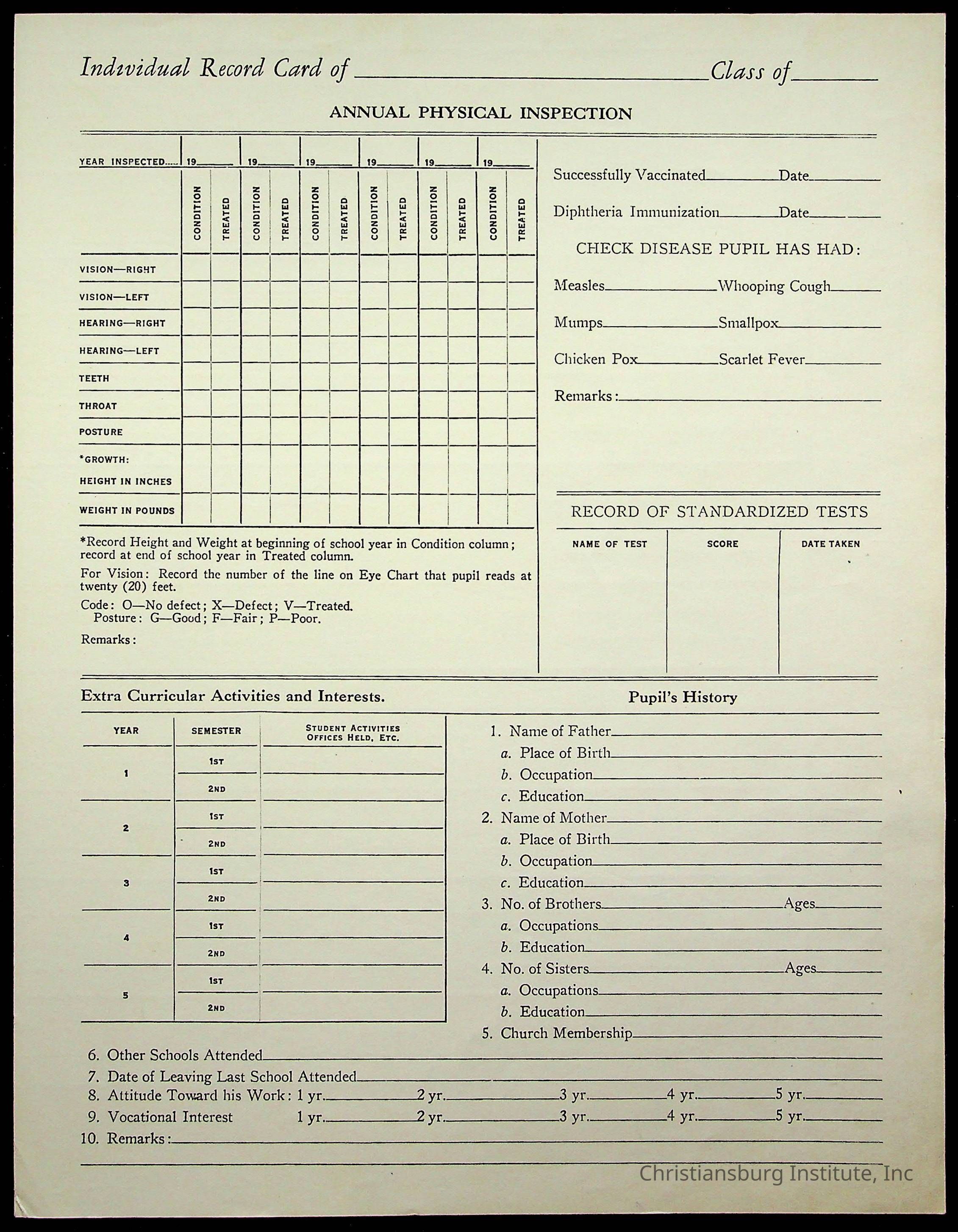 Christiansburg Institute Student Records Collection