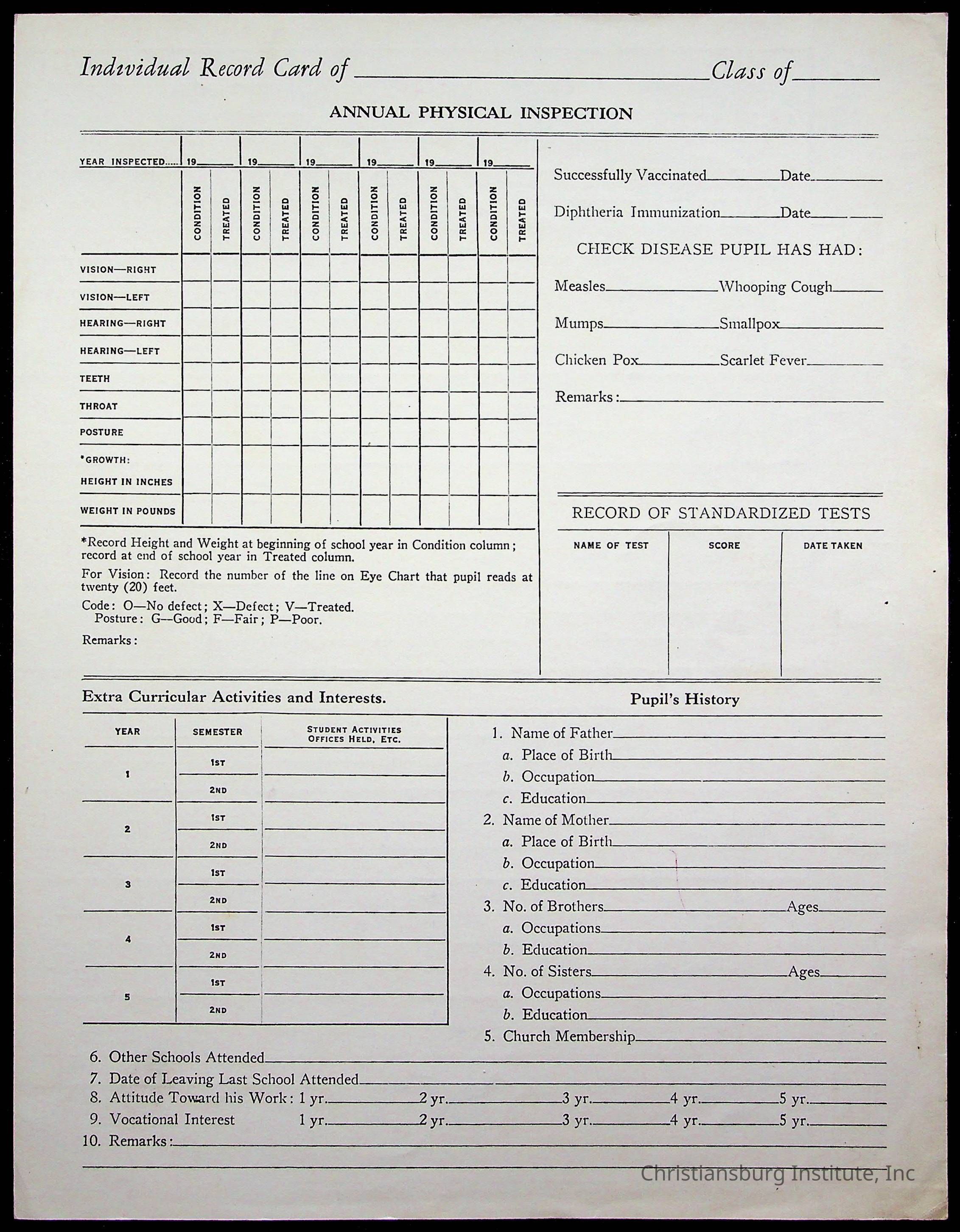 Christiansburg Institute Student Records Collection