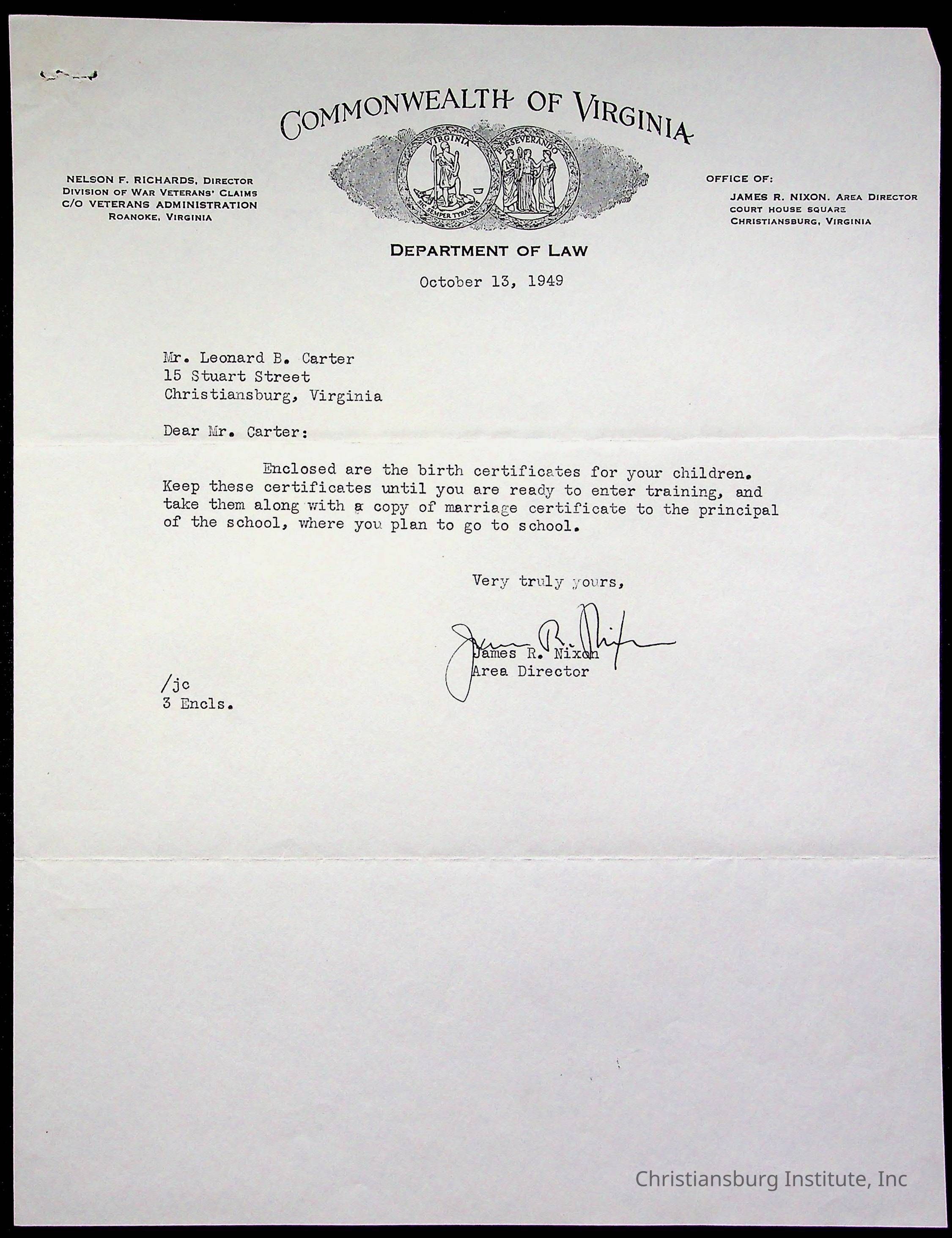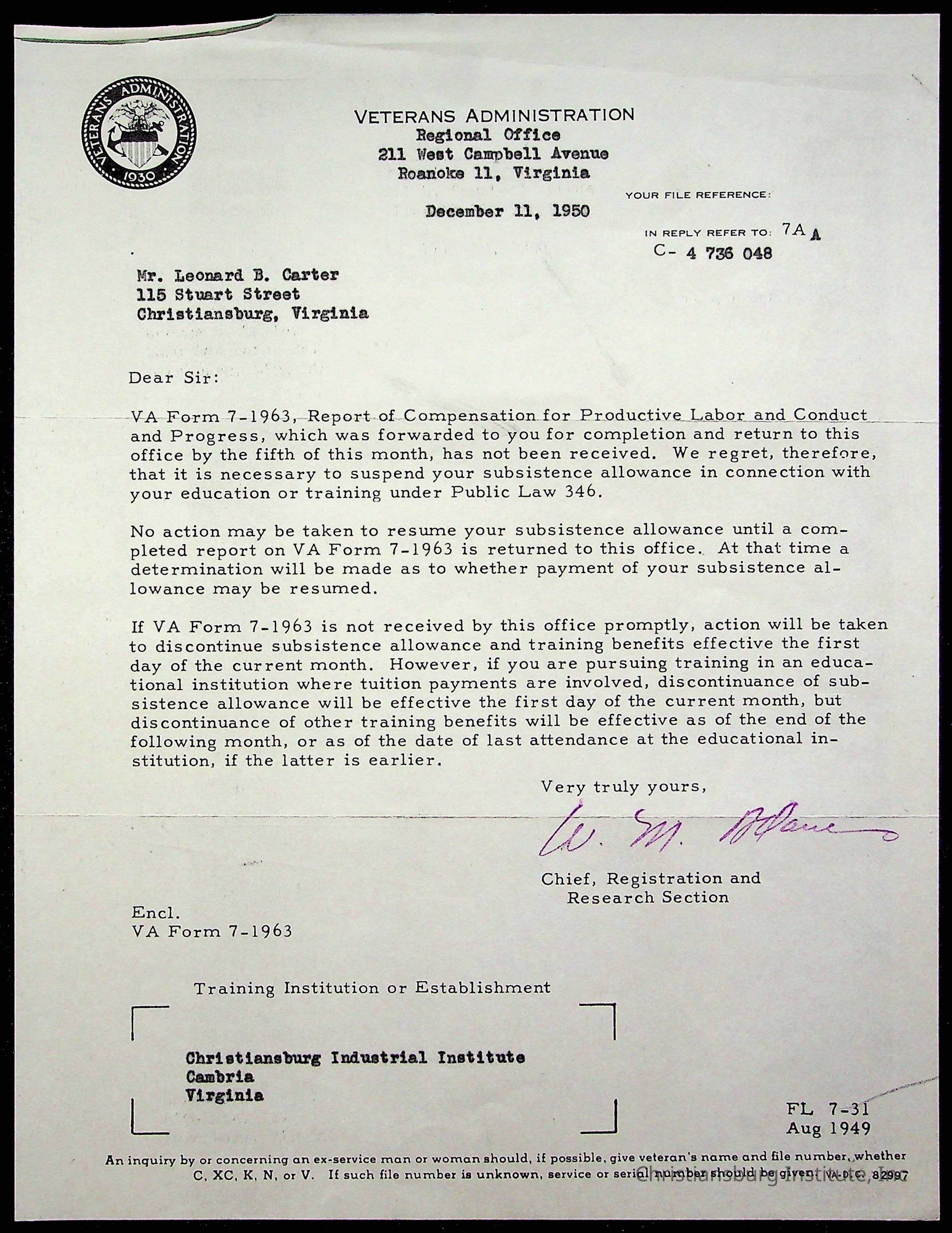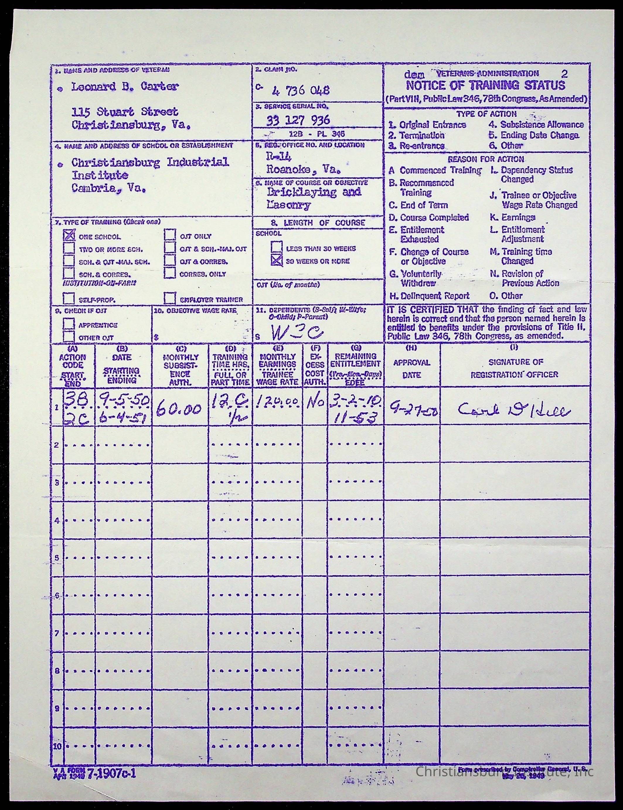 Christiansburg Institute, Montgomery County Public Schools, Carter, Leonard