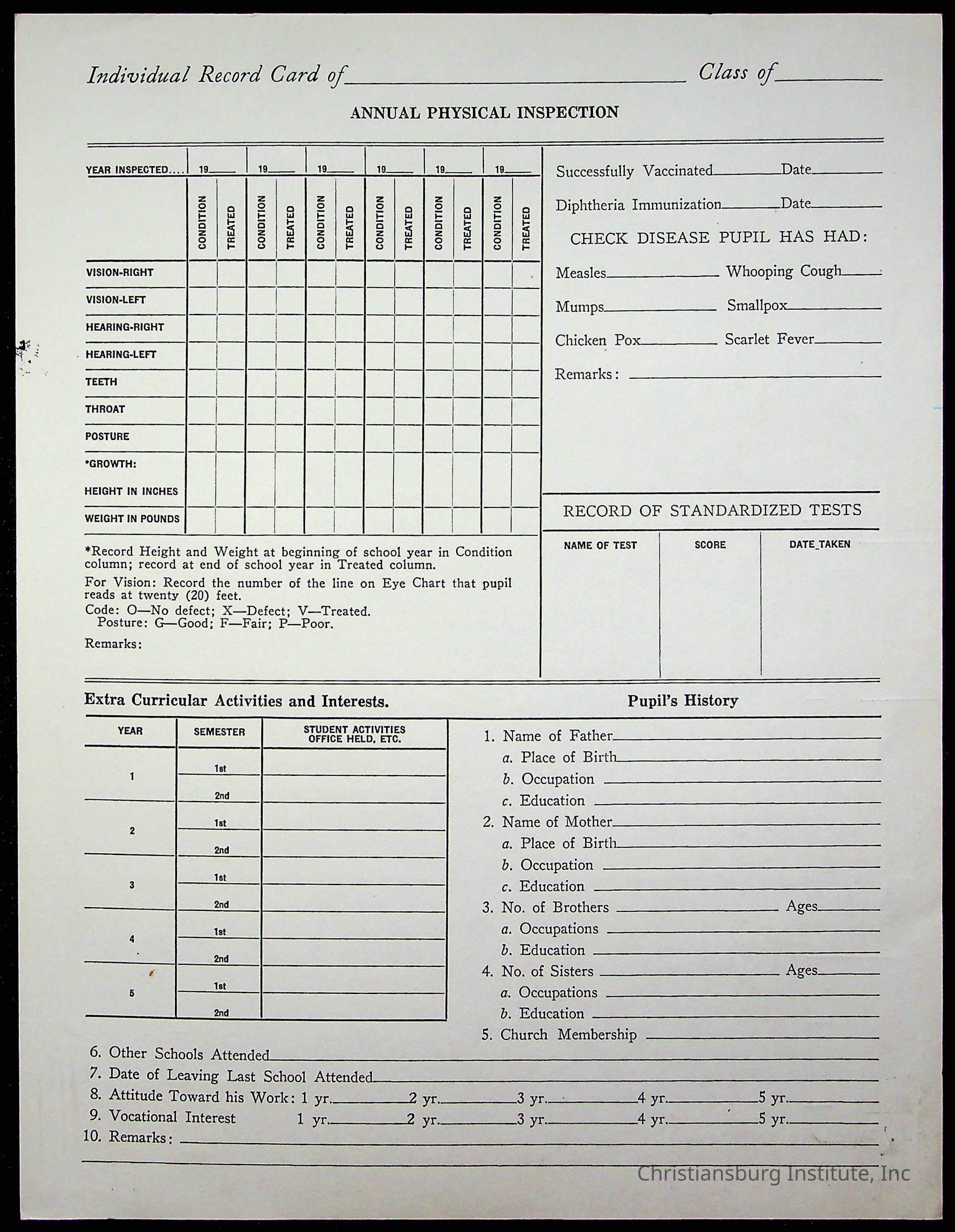 Christiansburg Institute Student Records Collection