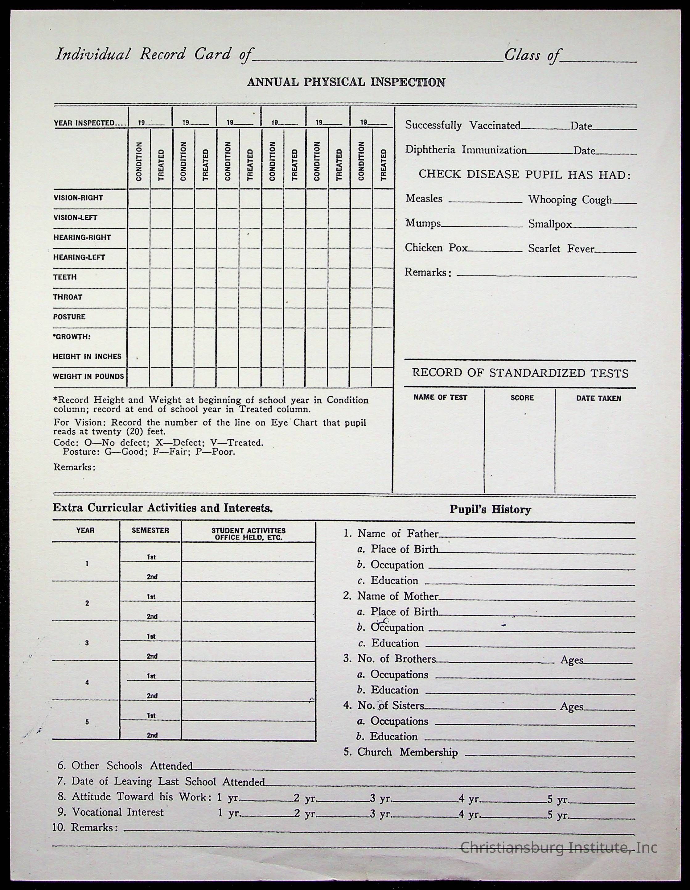 Copyright has been assigned to Christiansburg Institute Museum & Archives by Montgomery County Public Schools. For permission to publish materials created by the donor, contact CIMA@christiansburginstitute.com. Materials not created by Christiansburg Industrial Institute may still be under copyright.