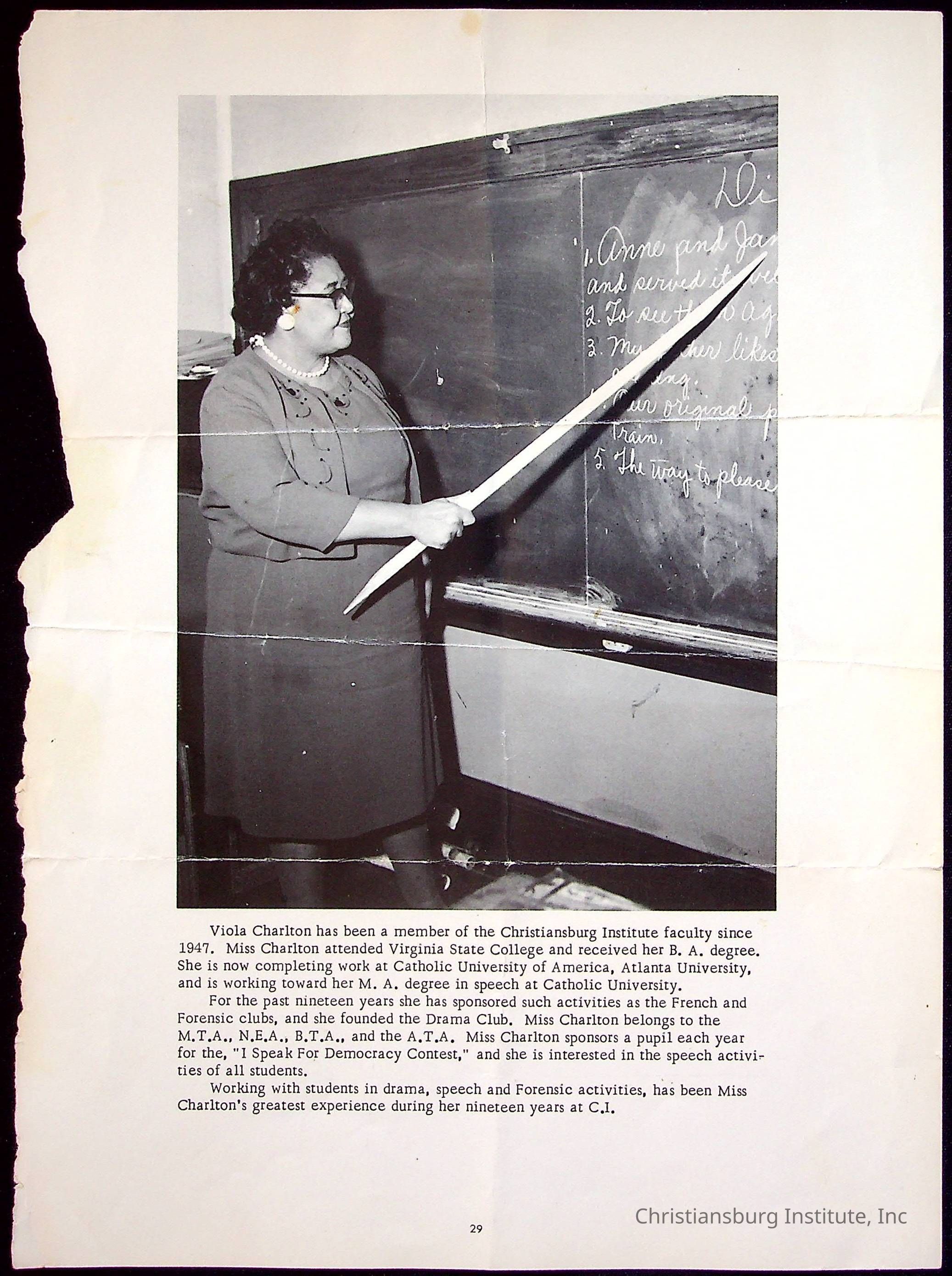 A series of photographs from a binder compiled by former Christiansburg Institute teacher, Viola Charlton circa 1960s-1990s. These photographs include graduation, school activities, and photos of Viola Charlton's personal life.Creator
