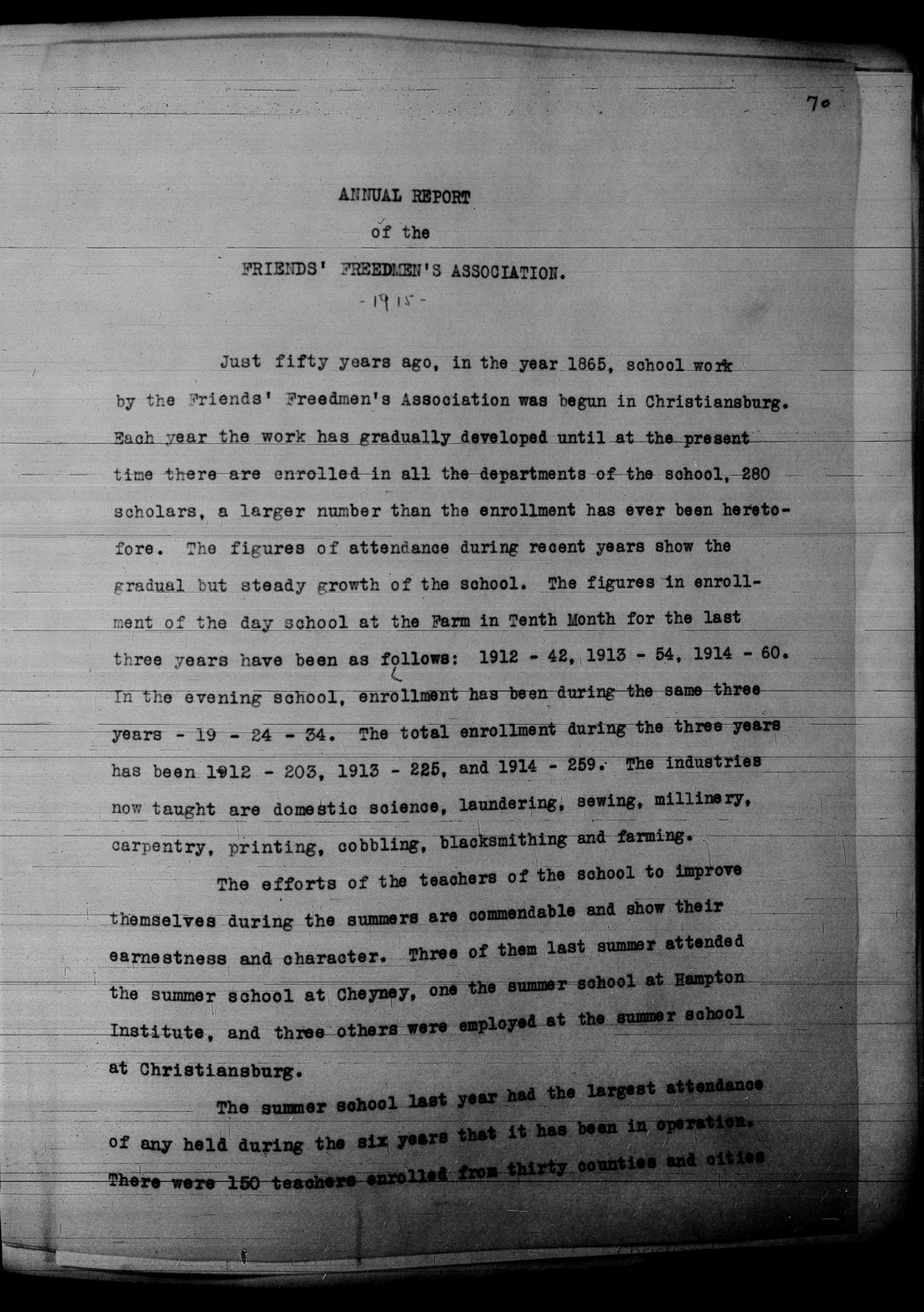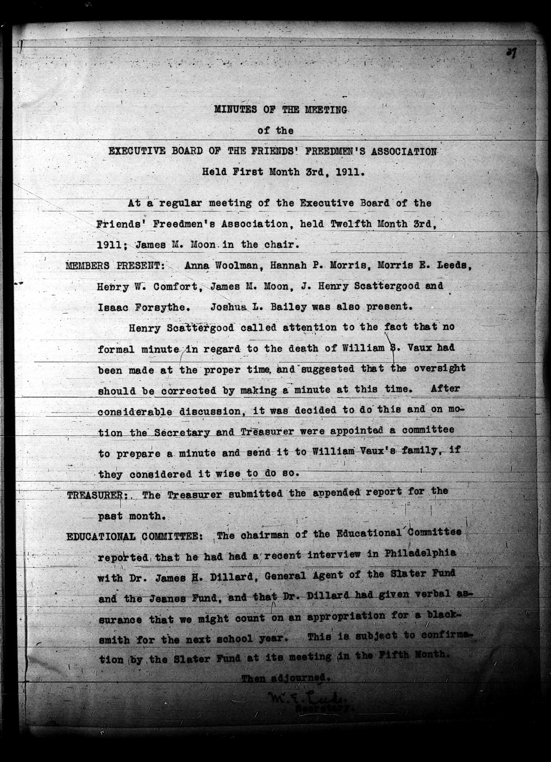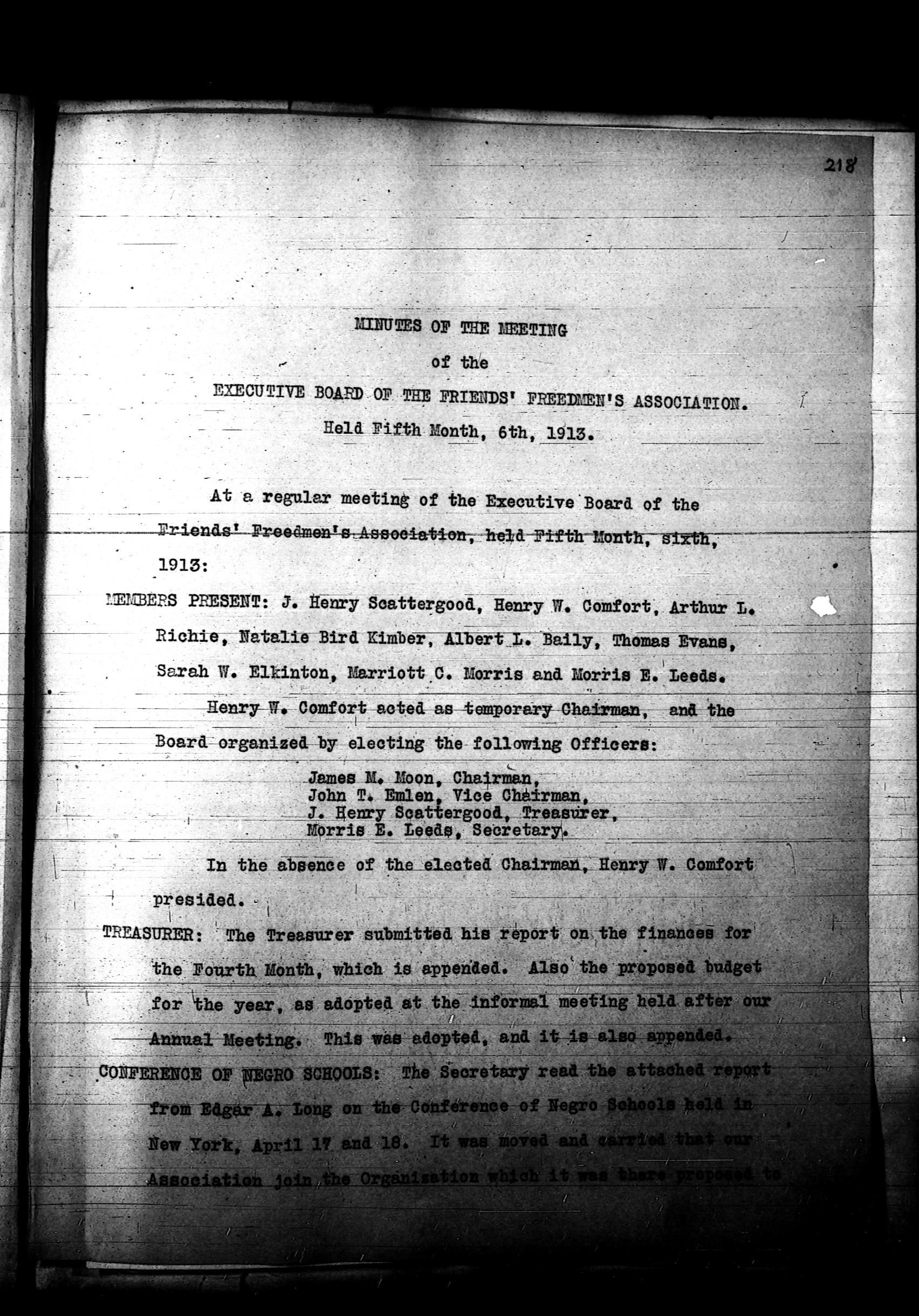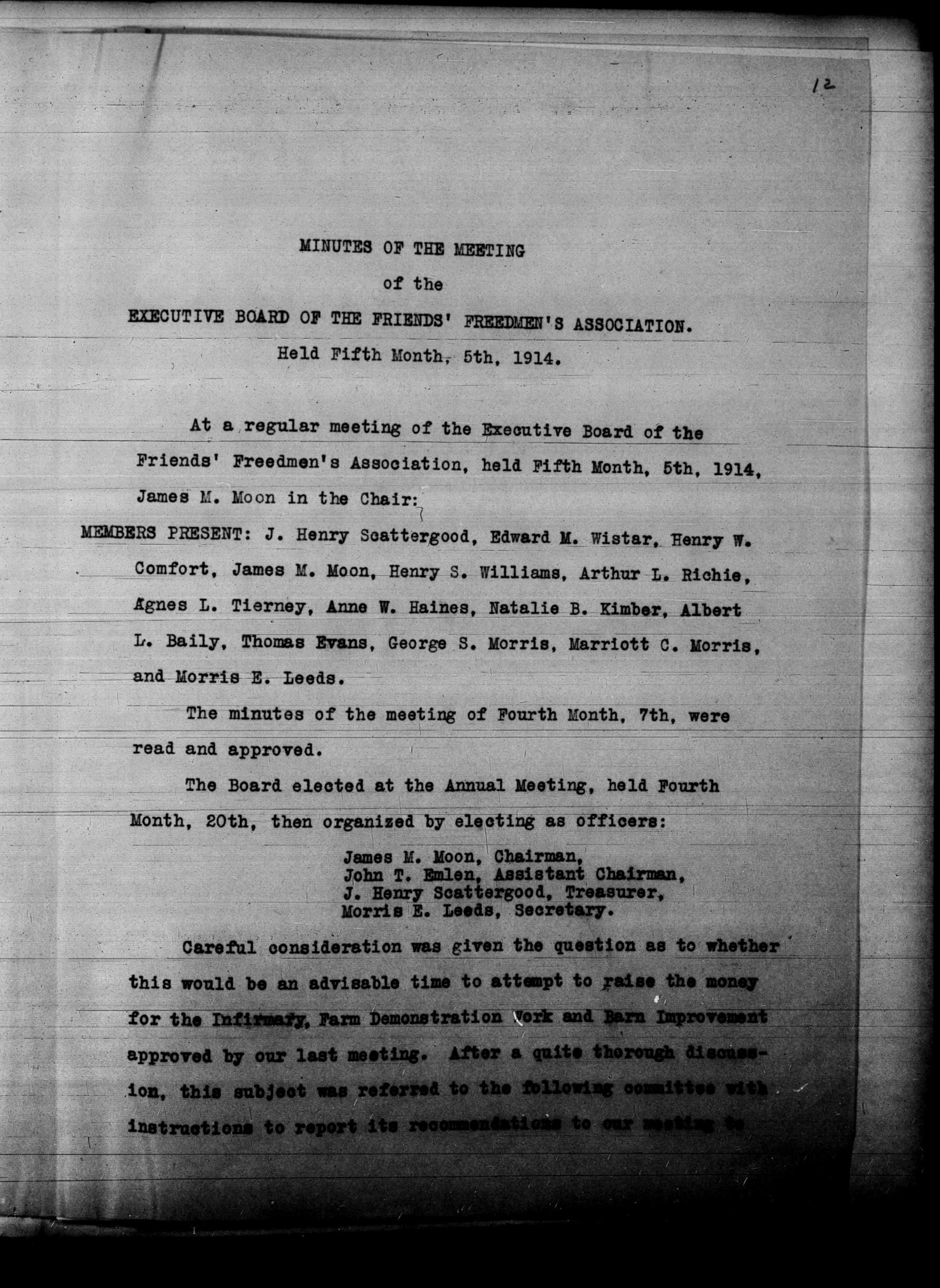 Friends Freedman's Association Reel Three: Executive Committee Minutes 1910-1920Scope and Content