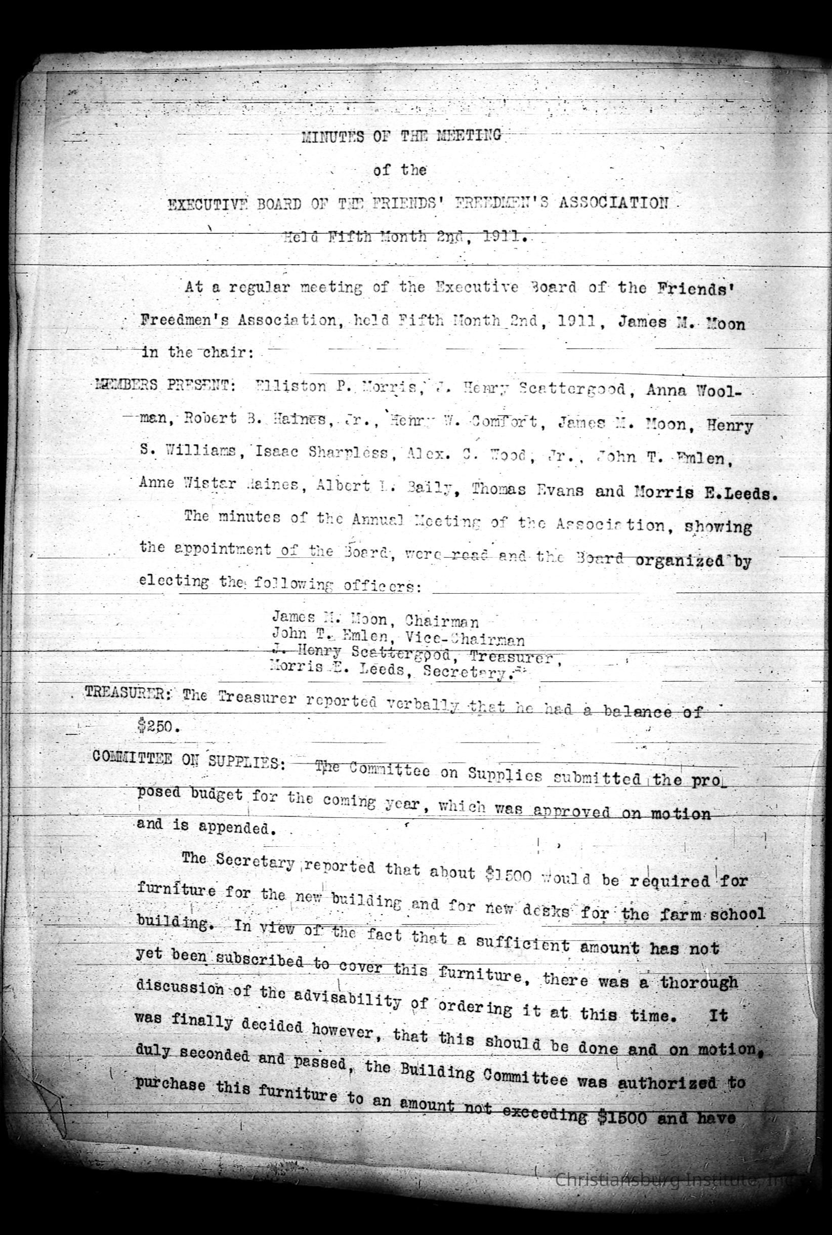 A series of digitally scanned photocopies of Friends Freedman's Association: Executive Committee Minutes 1910-1920 on a DVD disk. Originally scanned on April 5th, 1974 by Princeton Datafilm Inc.Collection
