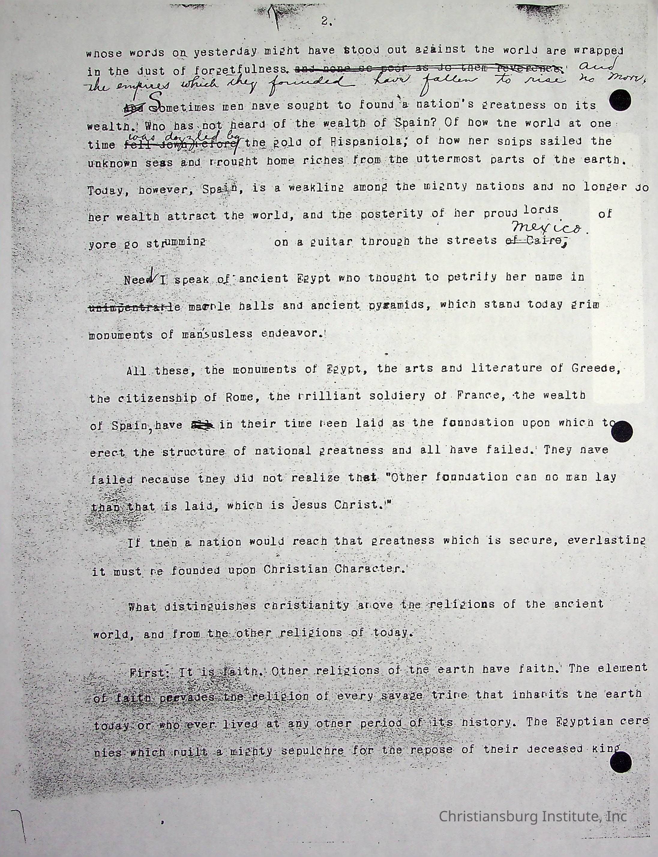 A photocopy version of a typed document written by Edgar A. Long titled 'Christian Education' that is undated. Gifted by Carlton Banks in 2001.Creator