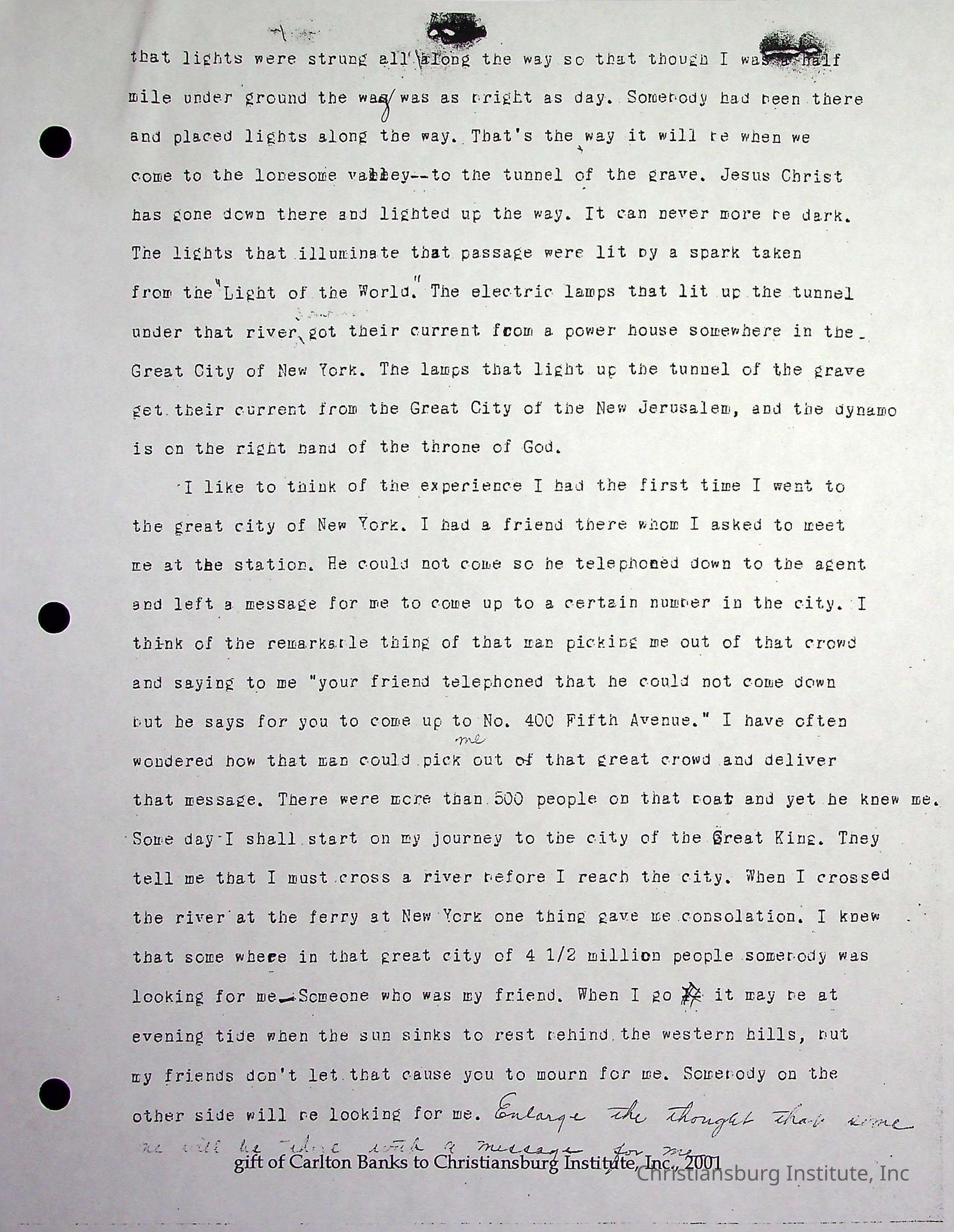 Copyright has been assigned to Christiansburg Institute Museum & Archives by Carlton Banks. For permission to publish materials created by the donor, contact CIMA@christiansburginstitute.com. Materials not created by John F. Banks may still be under copyright.