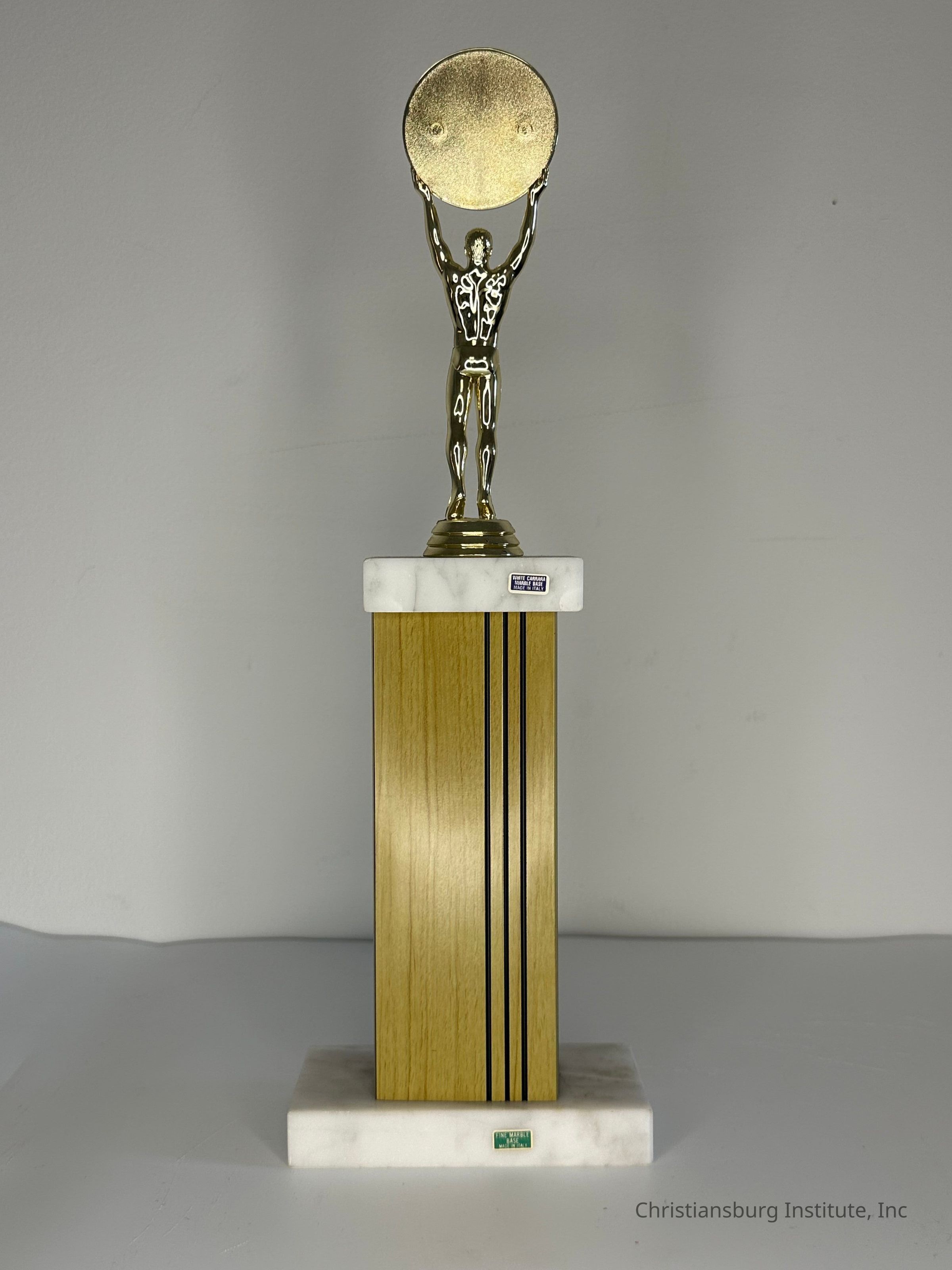 A trophy for the Christiansburg Bicentennial Grand Float Competition awarded to Christiansburg Institute, undated.