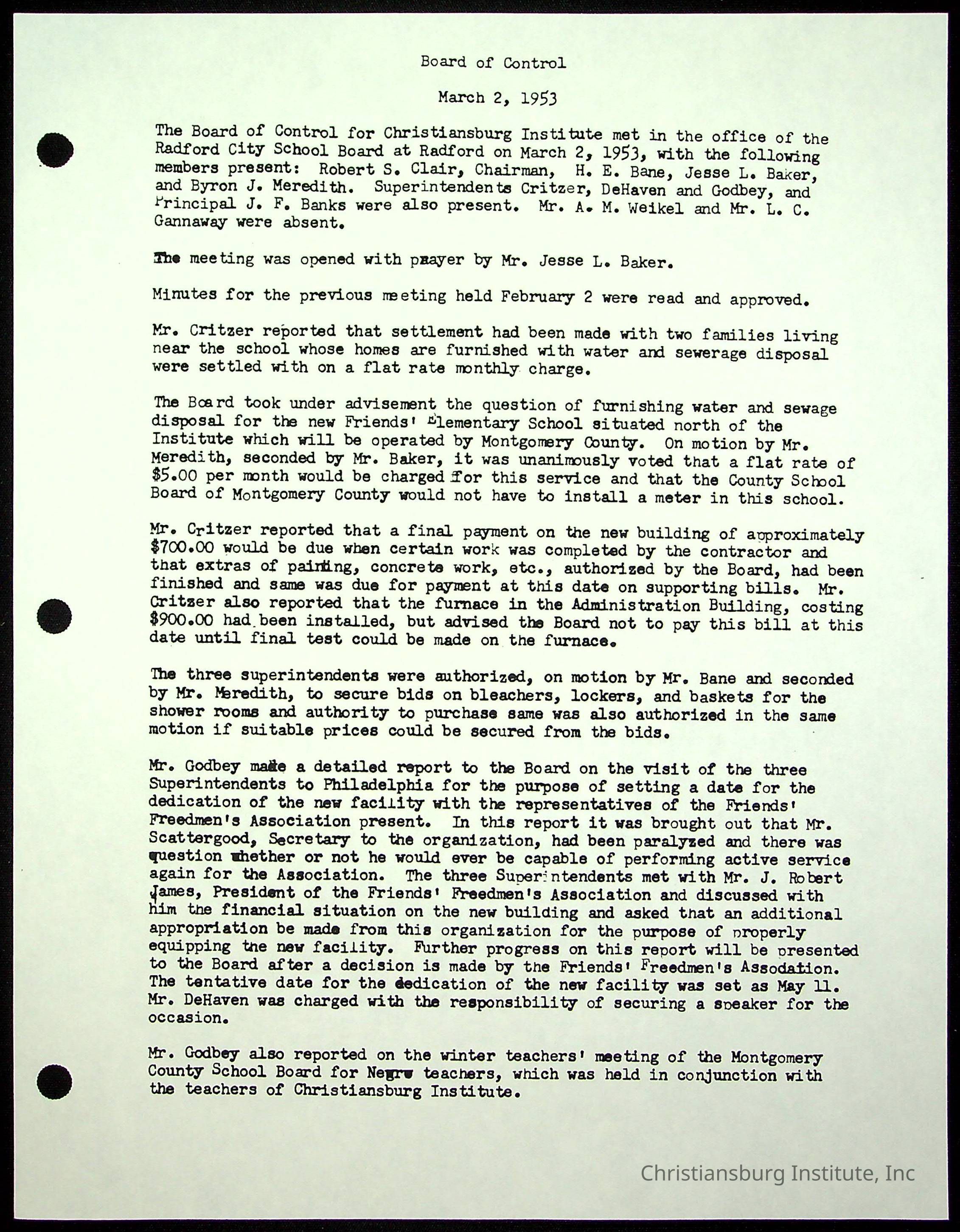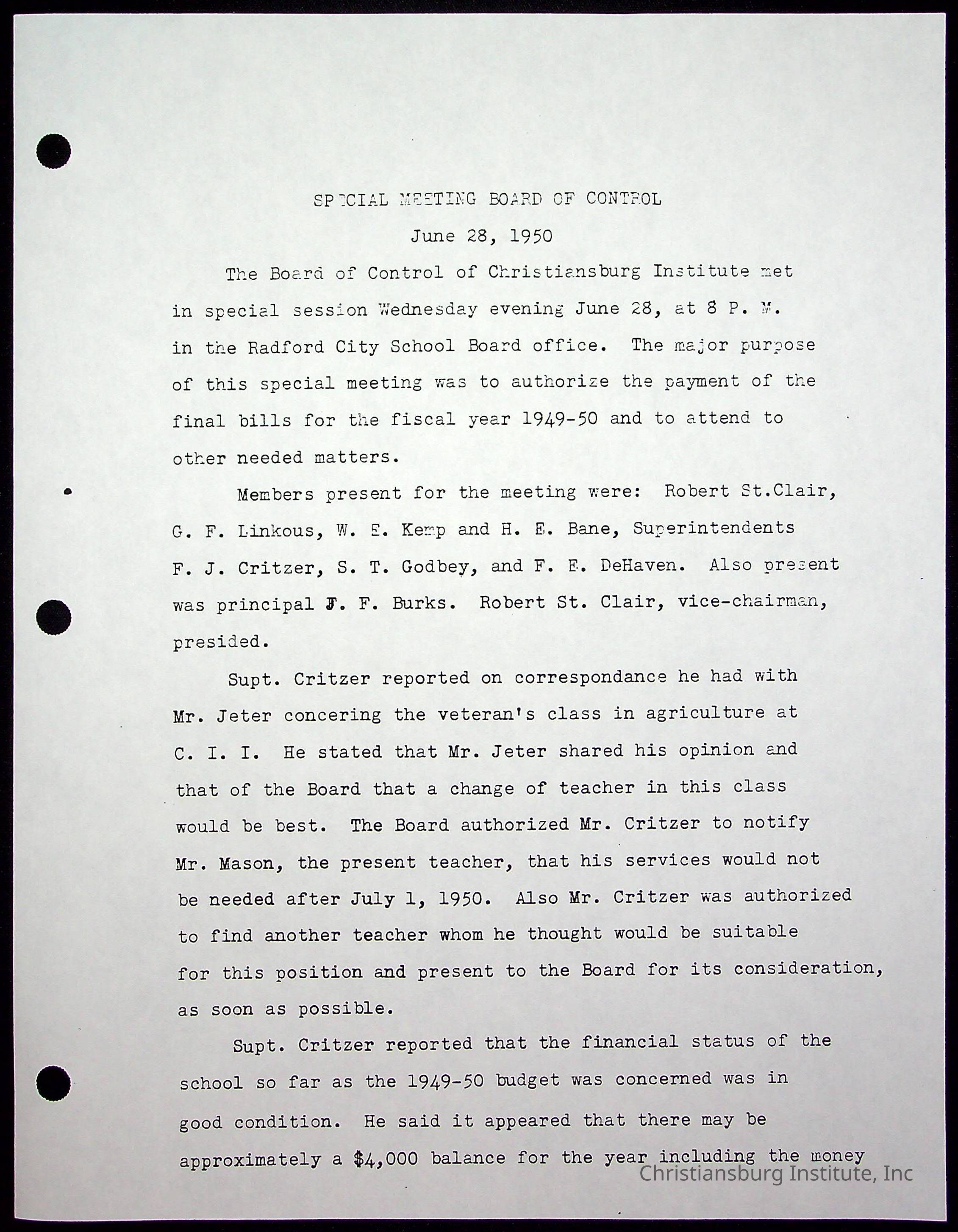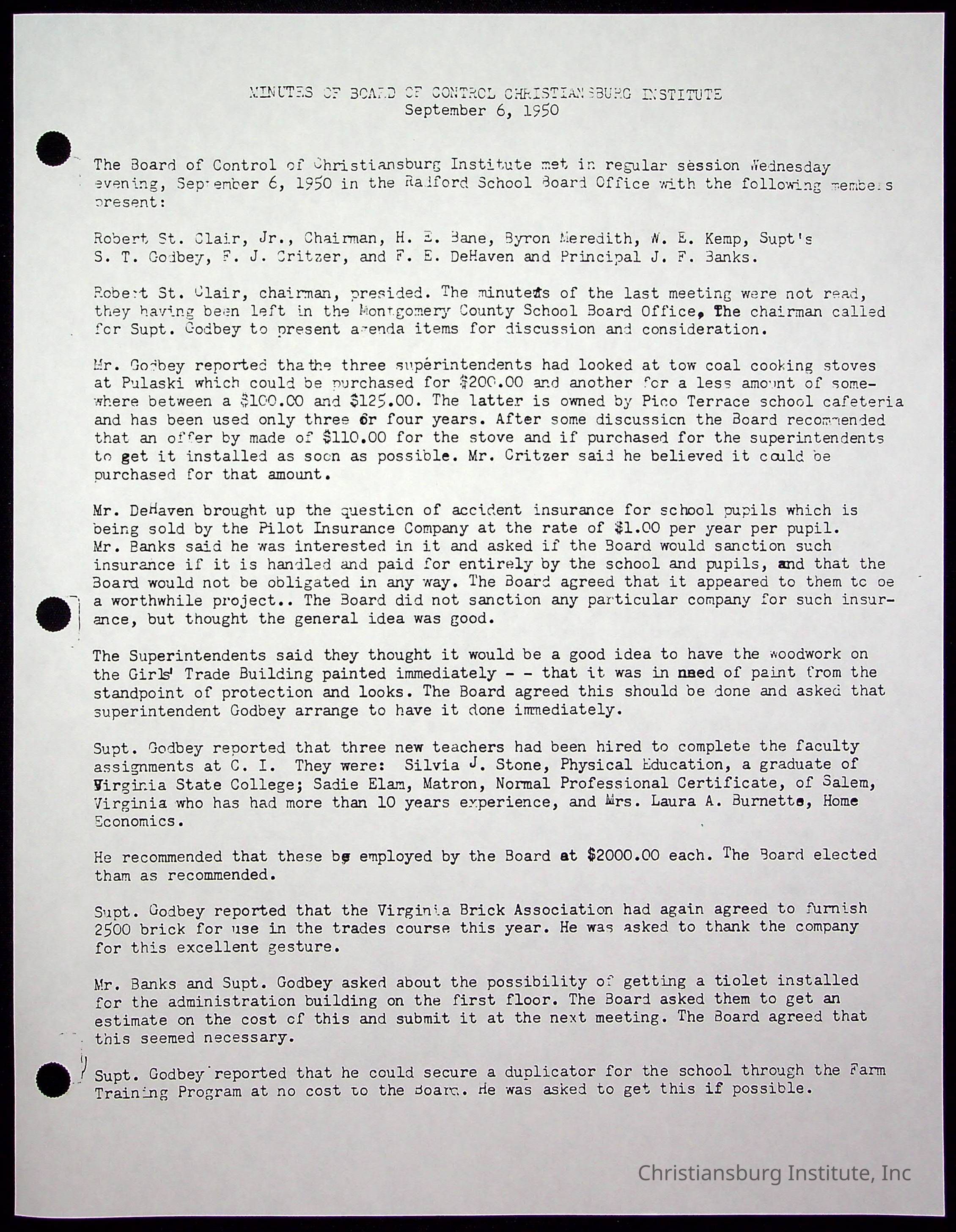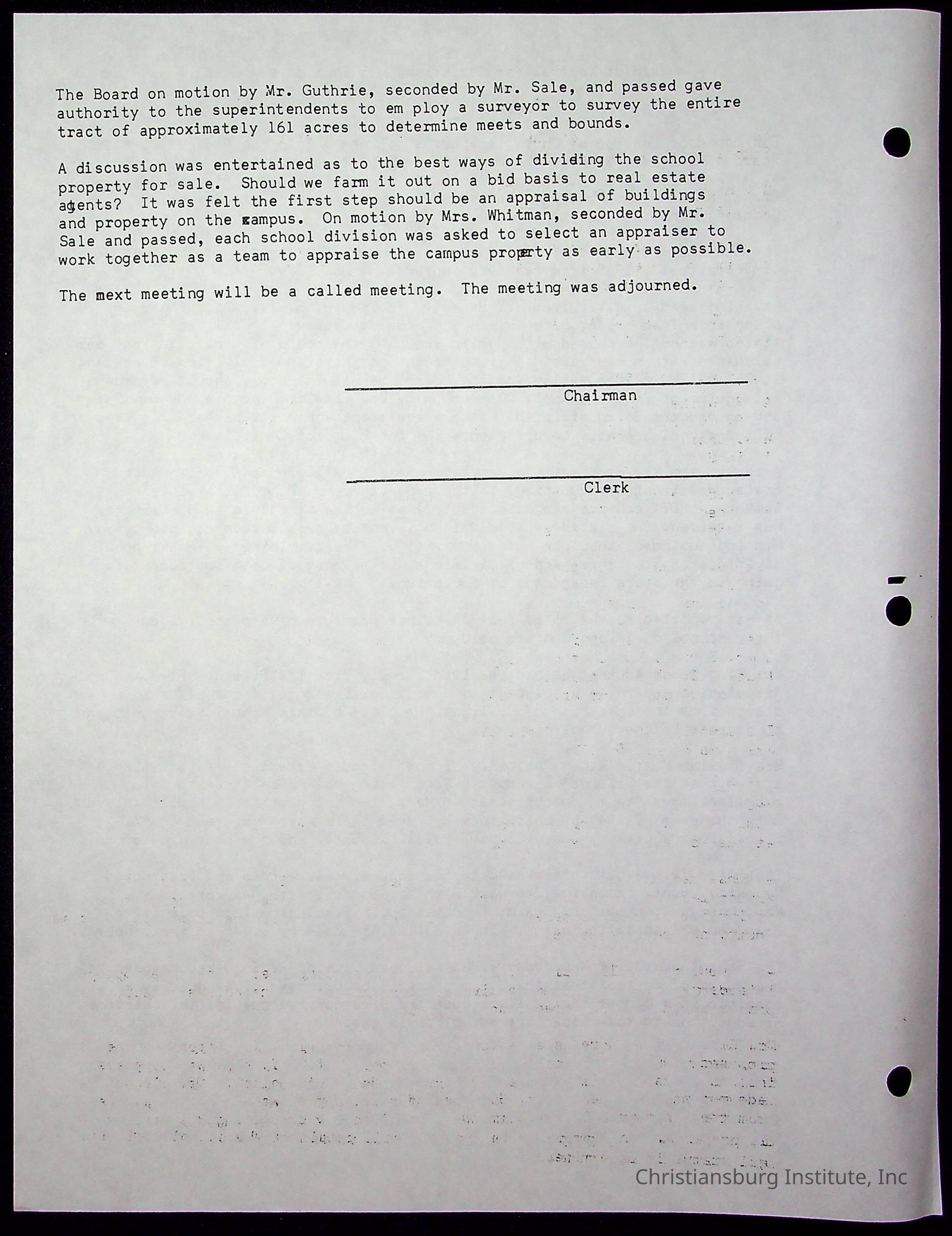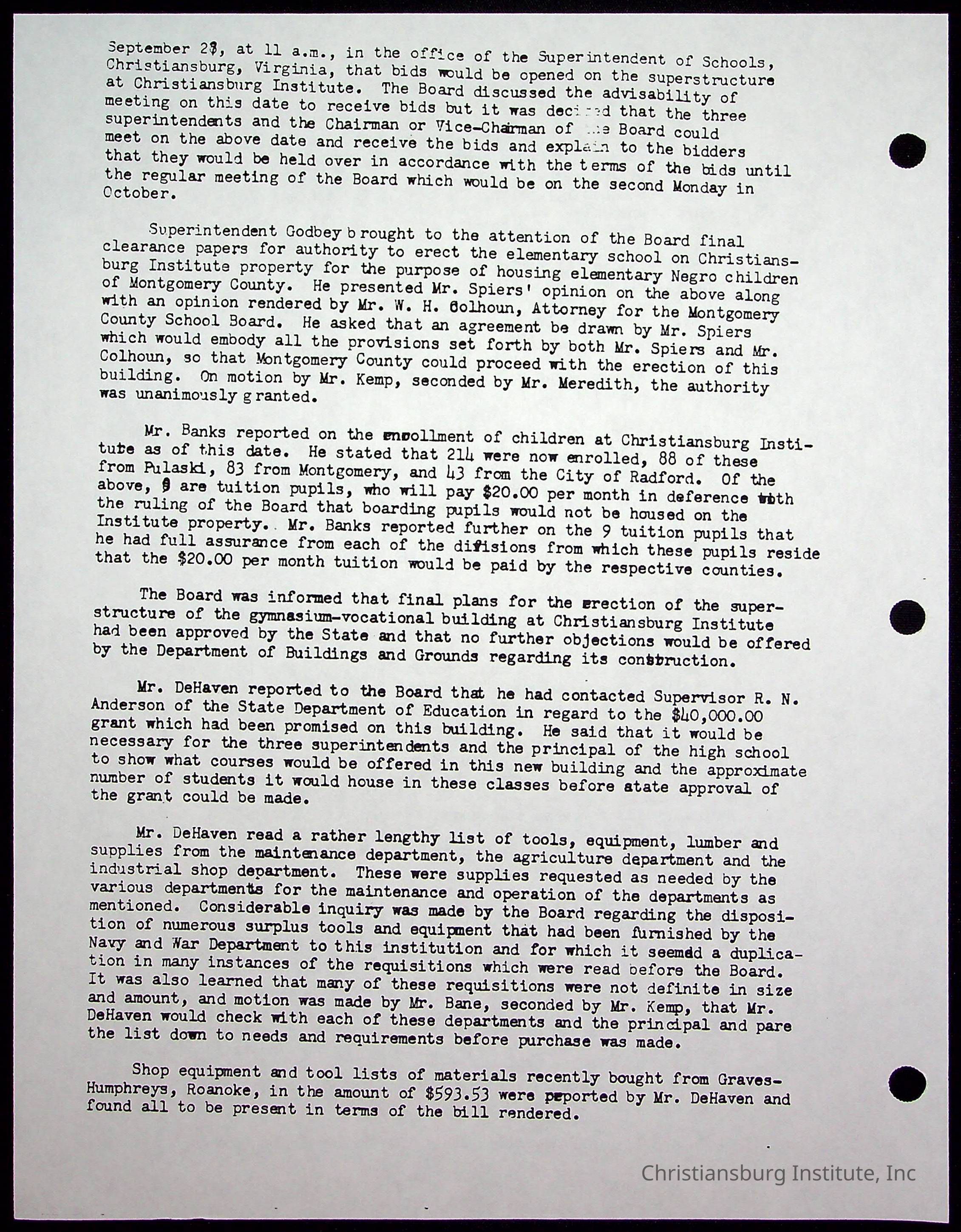 Christiansburg Industrial Institute Board Minutes, July 1947-August 1963 (photocopy)Description