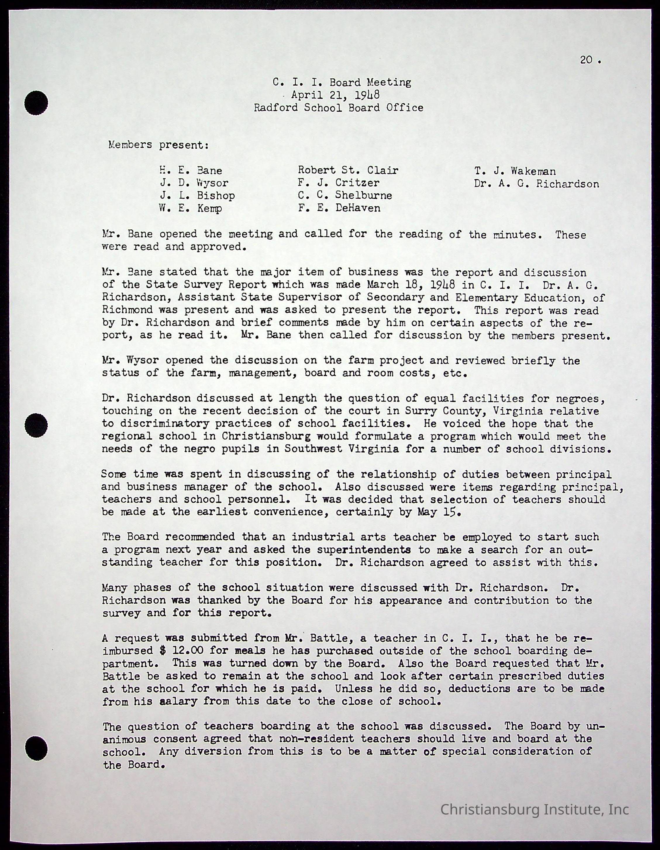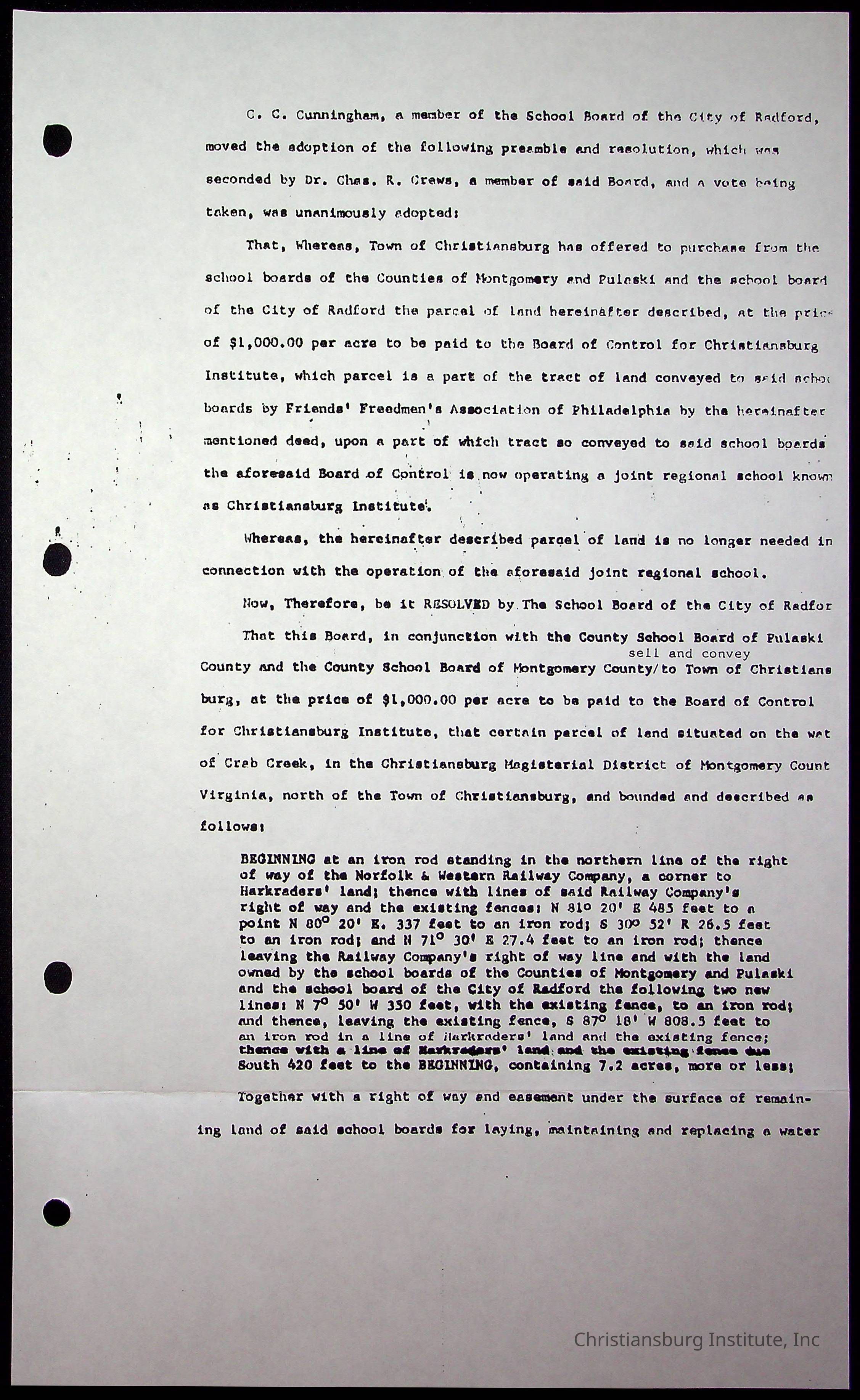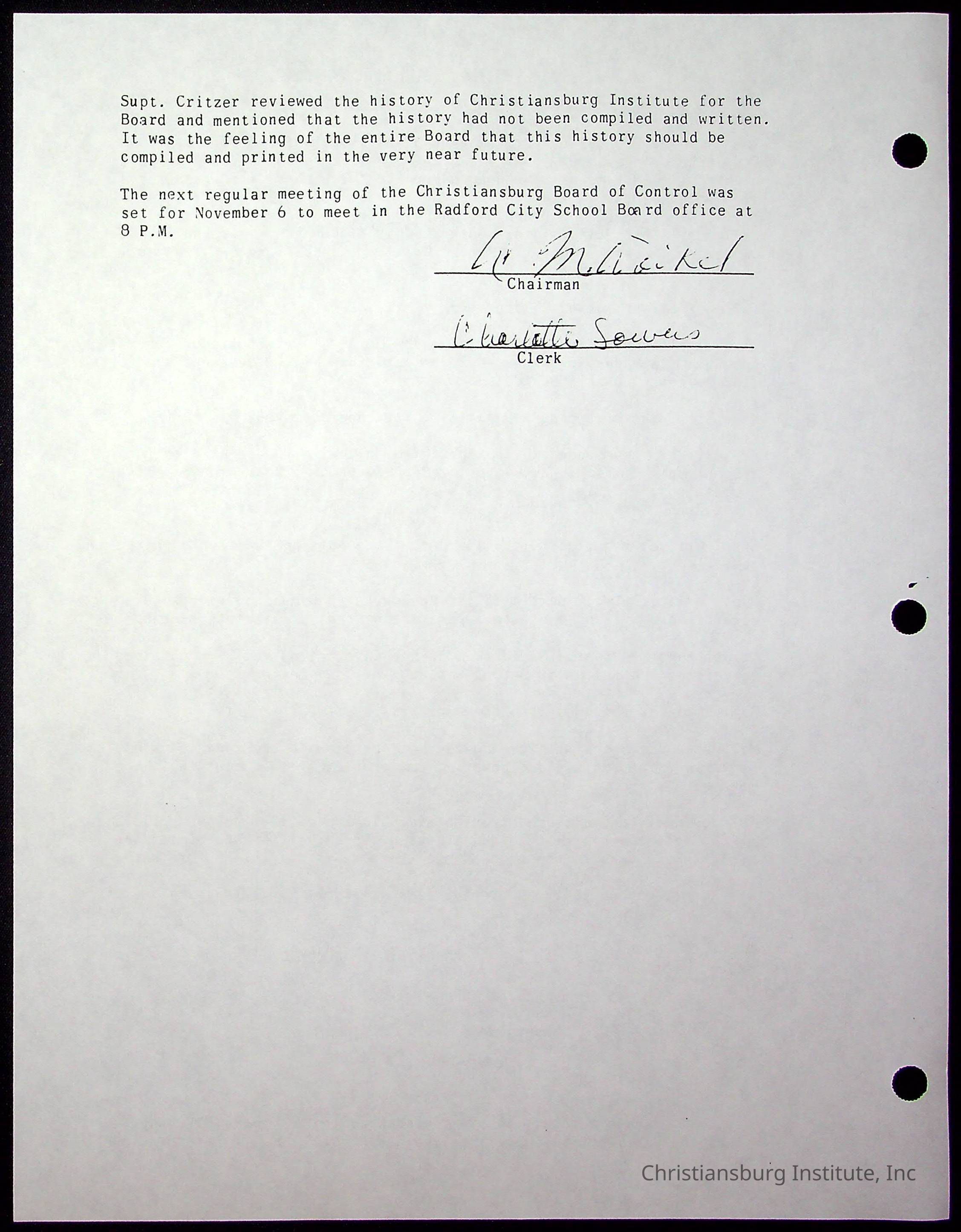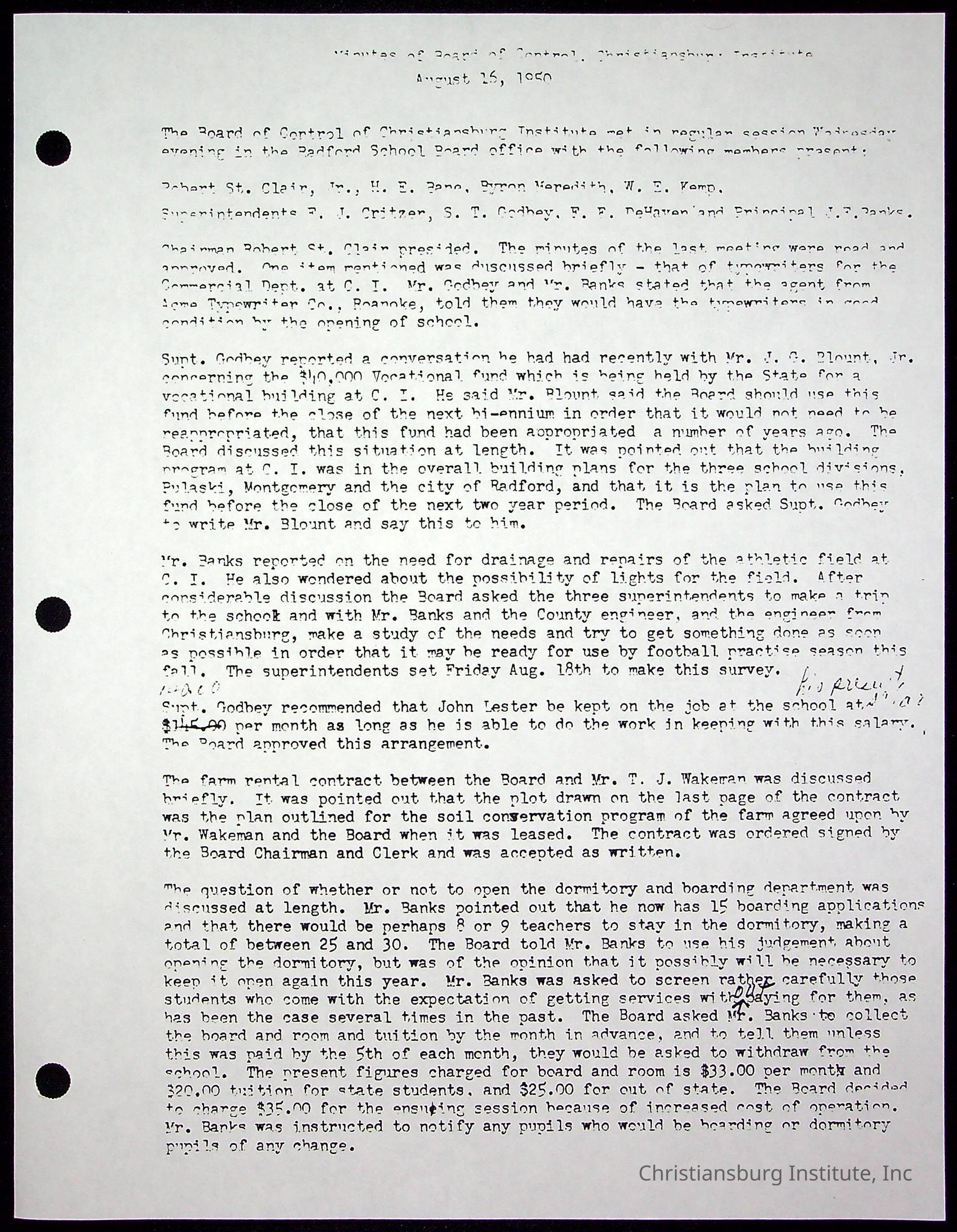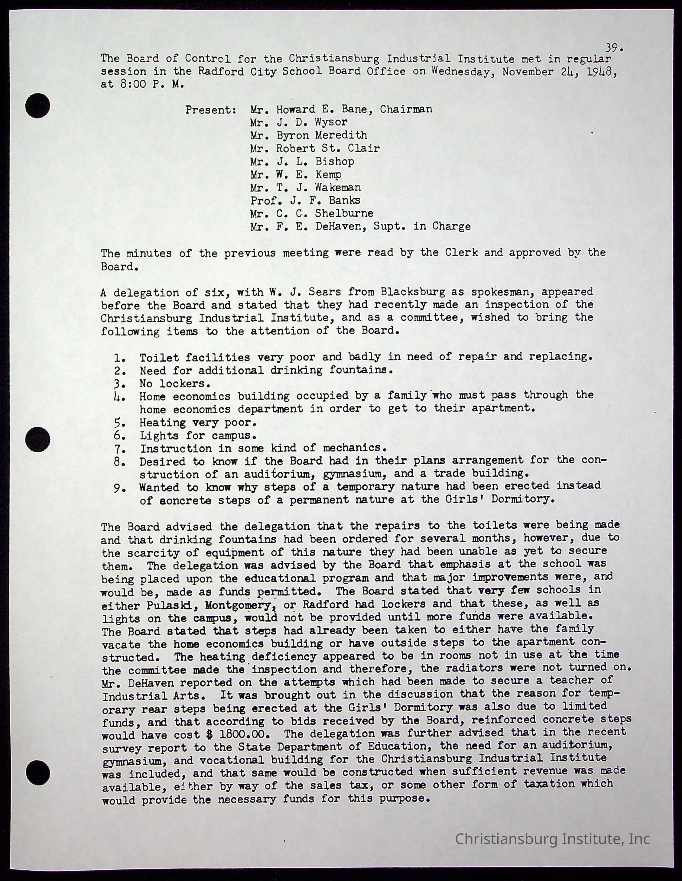Christiansburg Industrial Institute Board Minutes, July 1947-August 1963 (photocopy)Description
