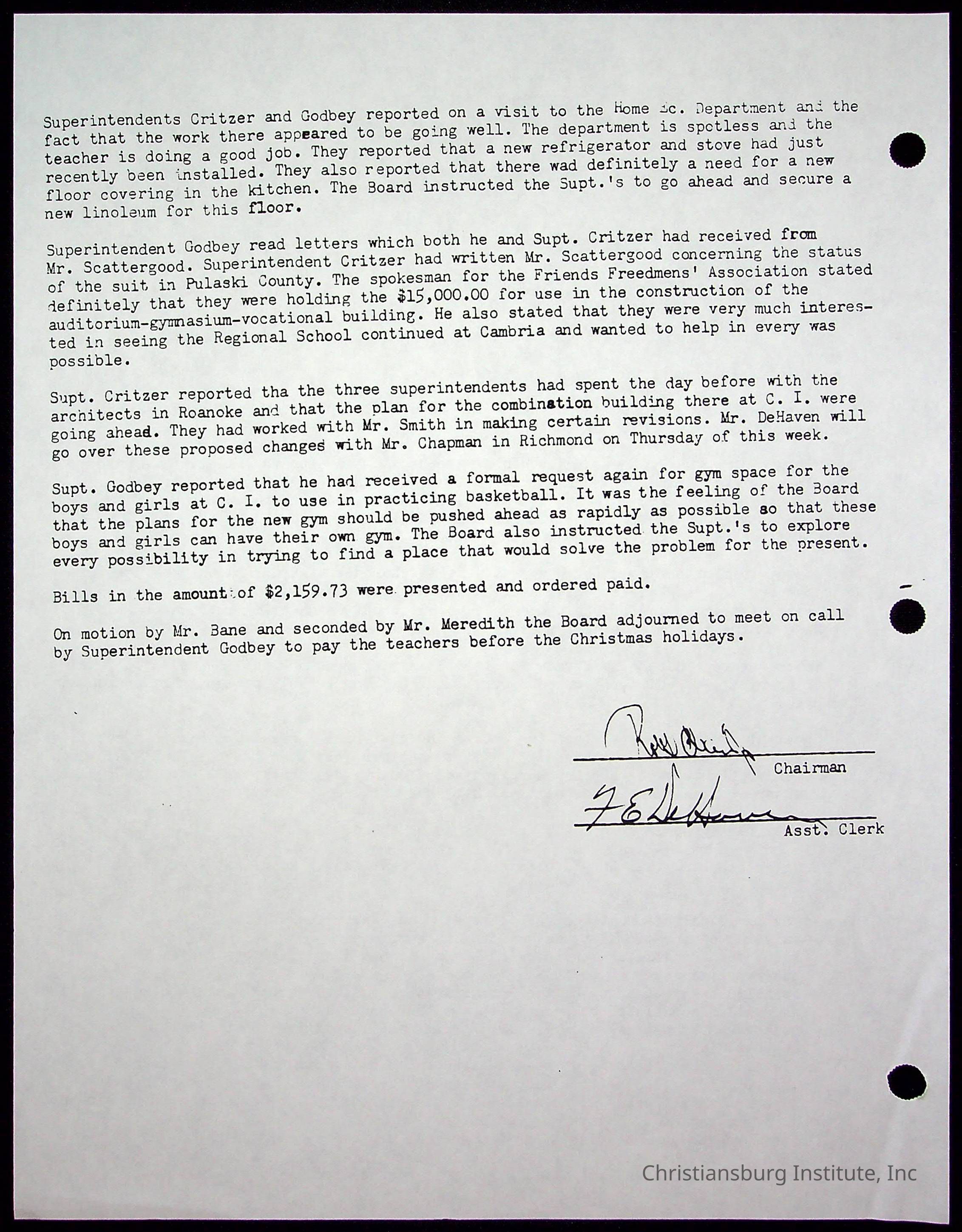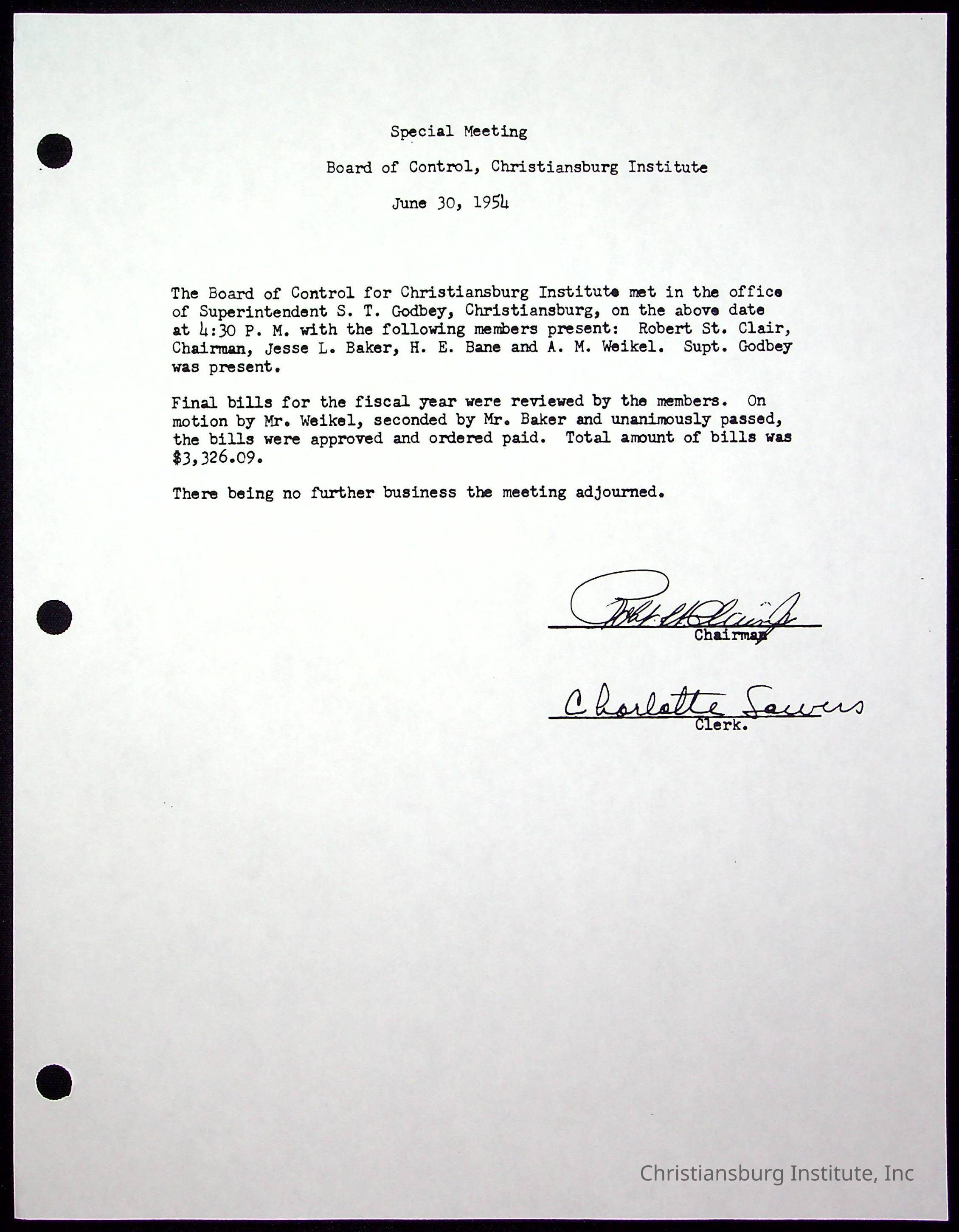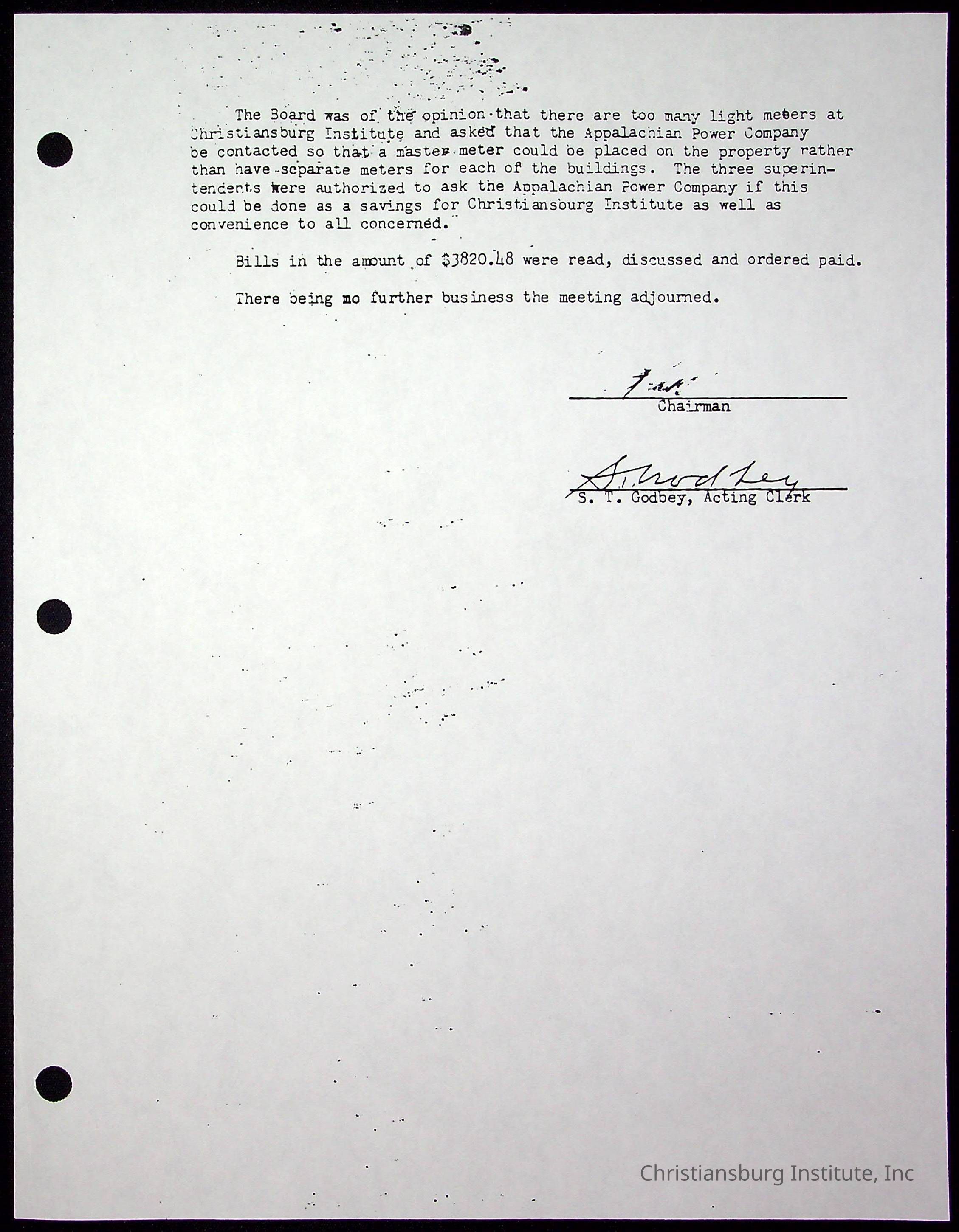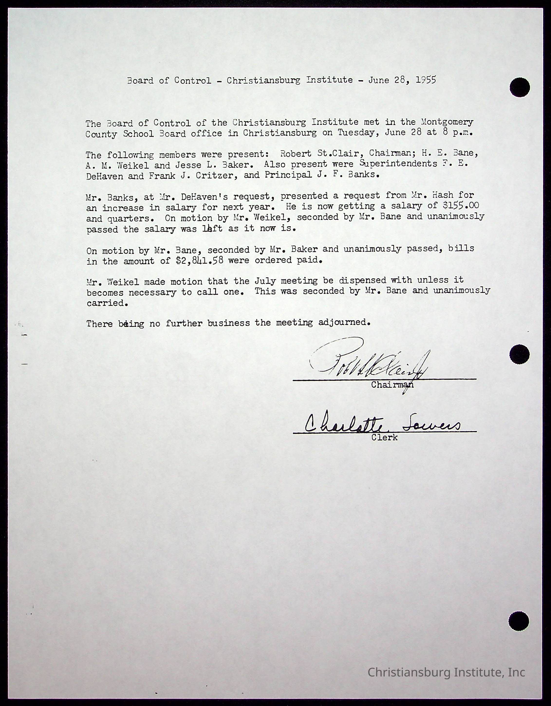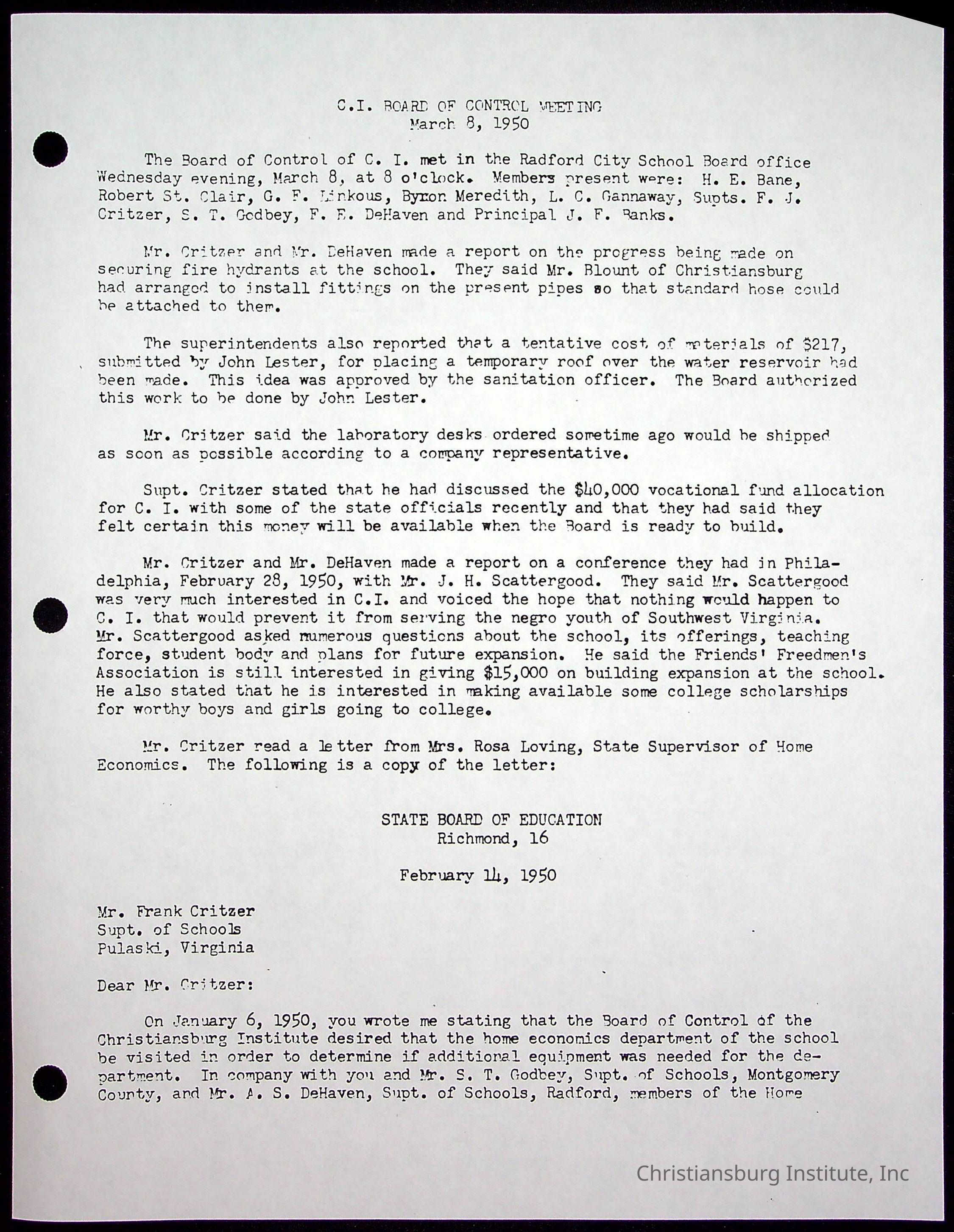 Christiansburg Industrial Institute Board Minutes, July 1947-August 1963 (photocopy)Description